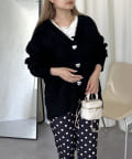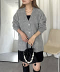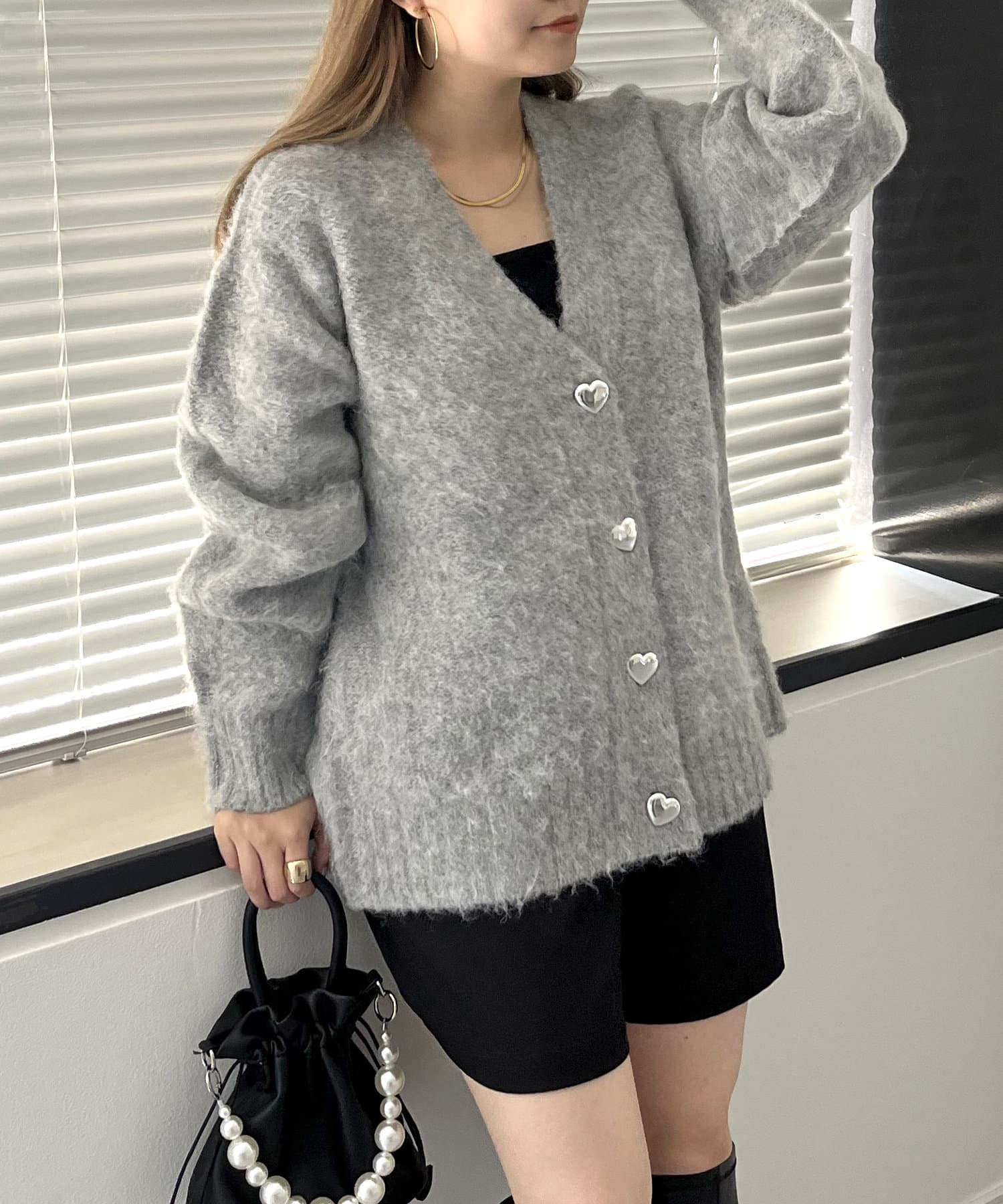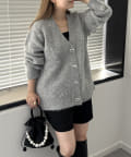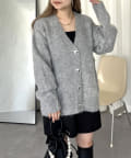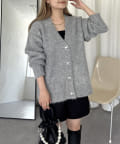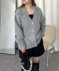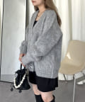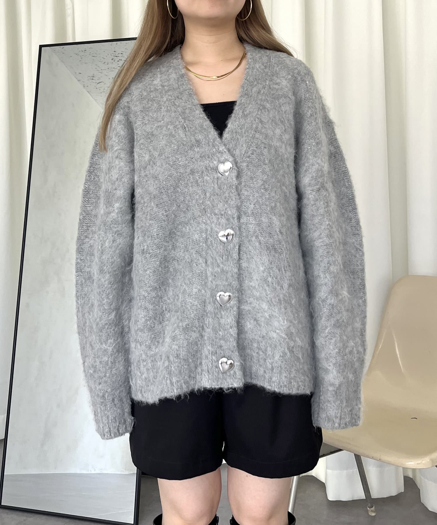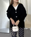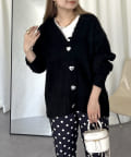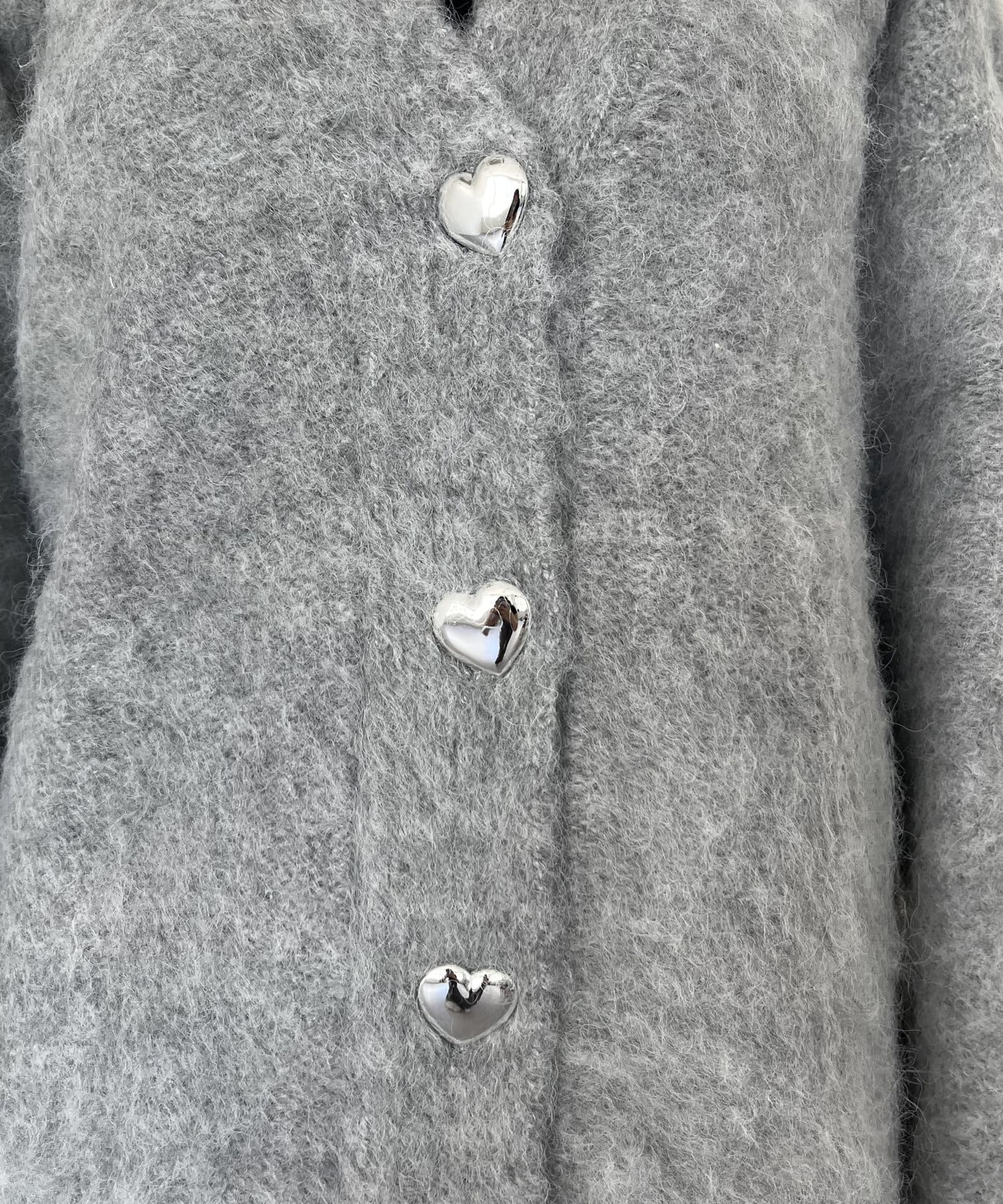ハートボタンモヘアライクVニットカーデ