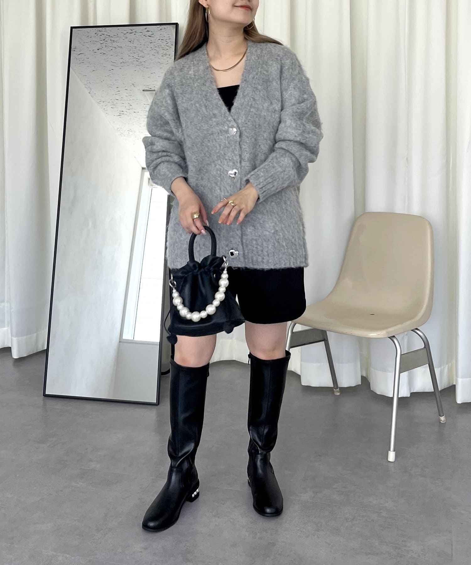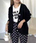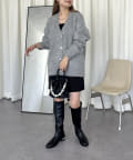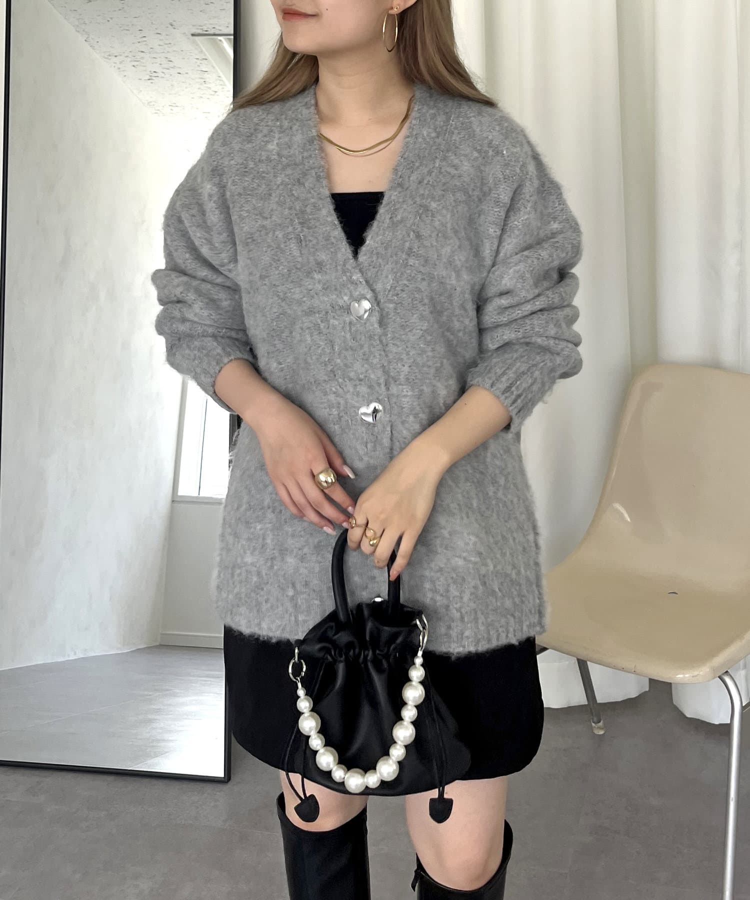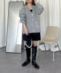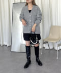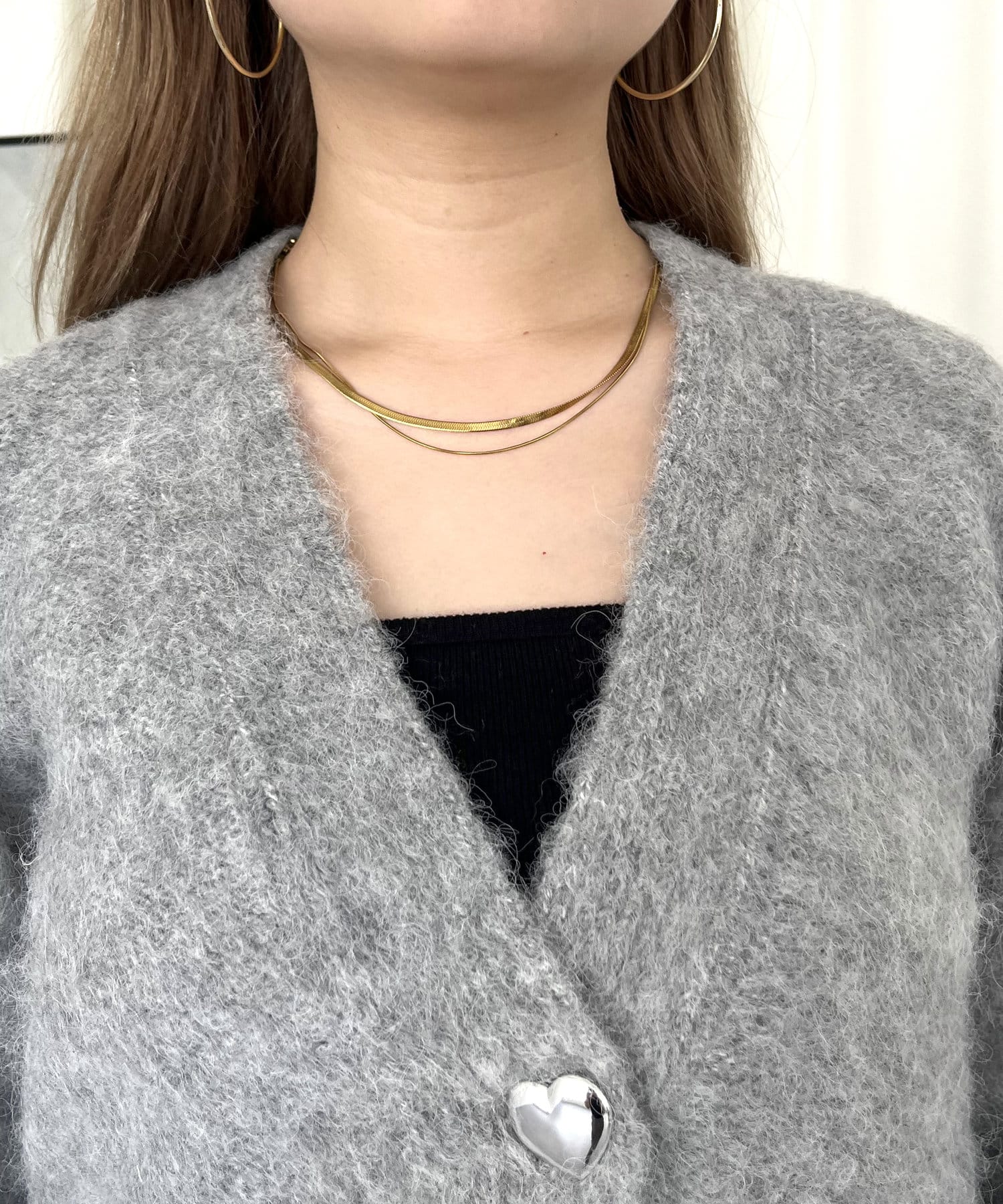 ハートボタンがアクセントになるネックニットカーデ