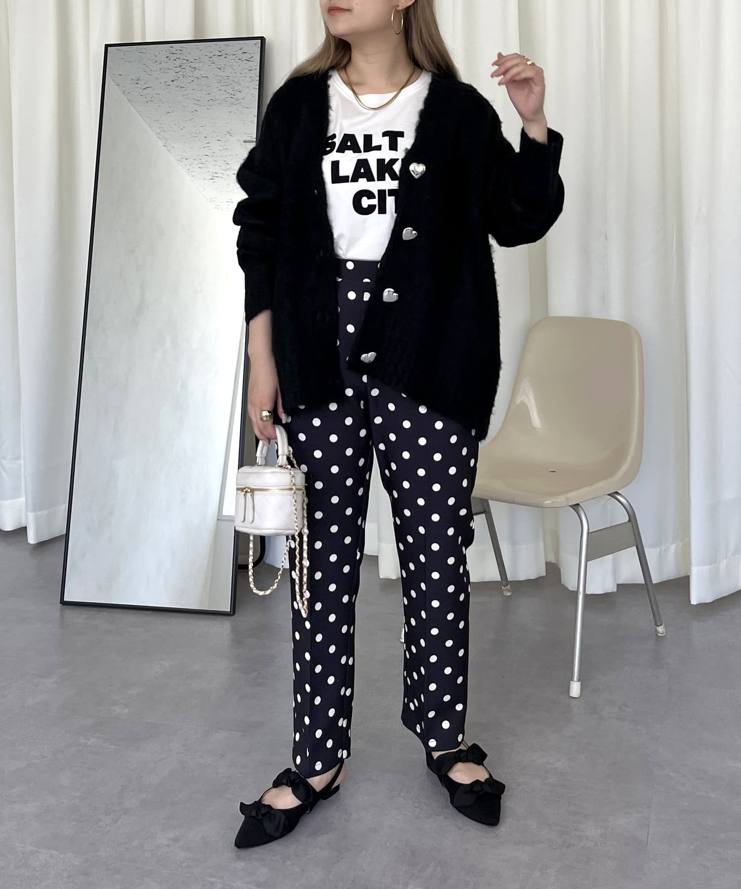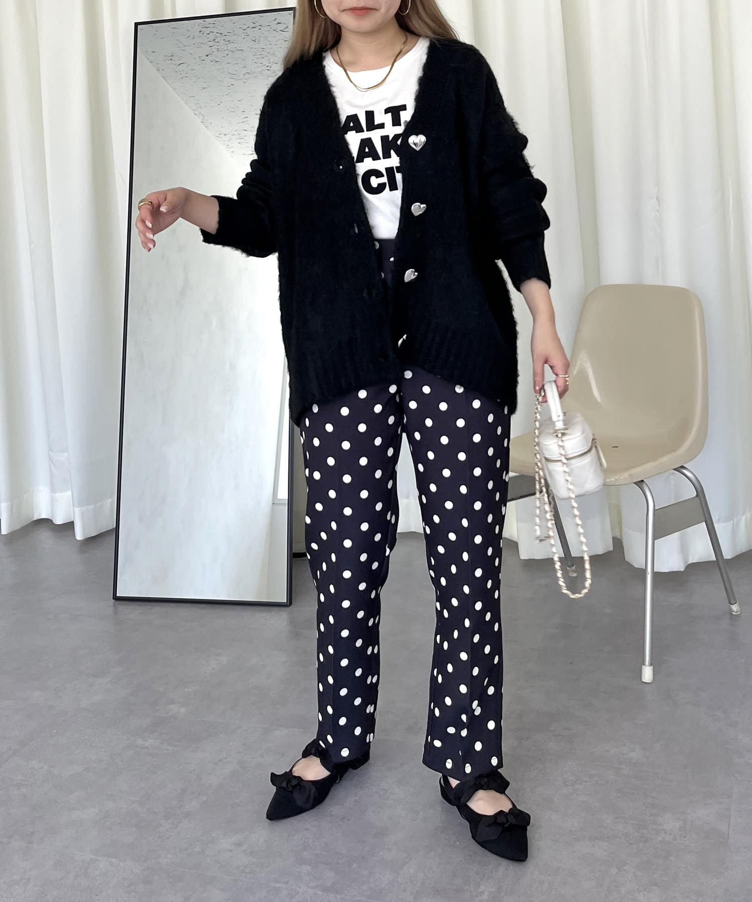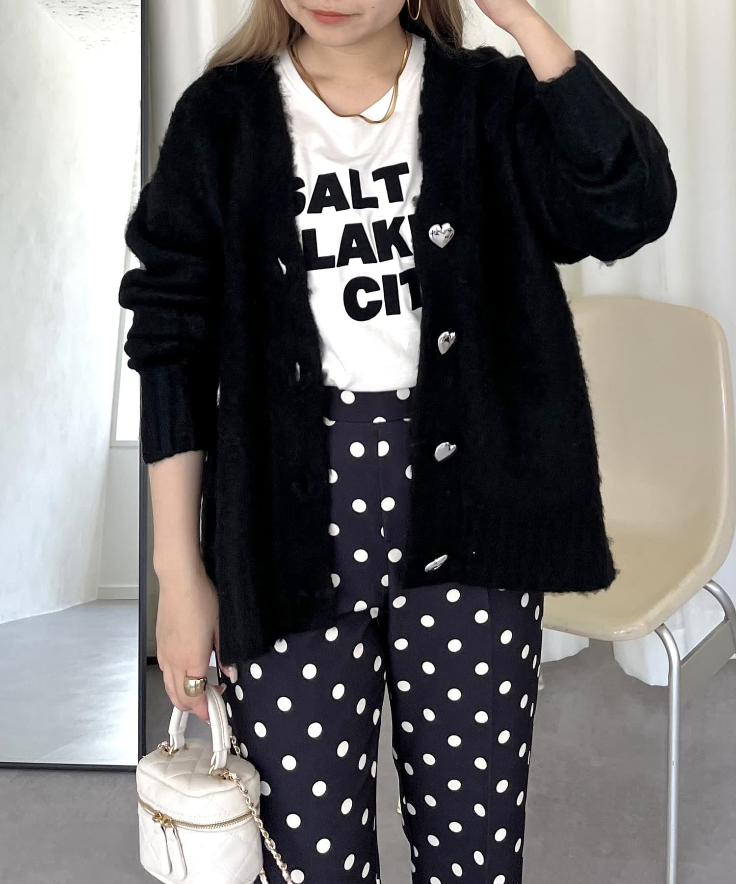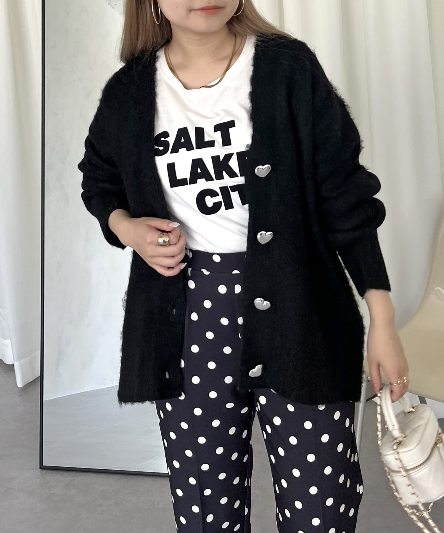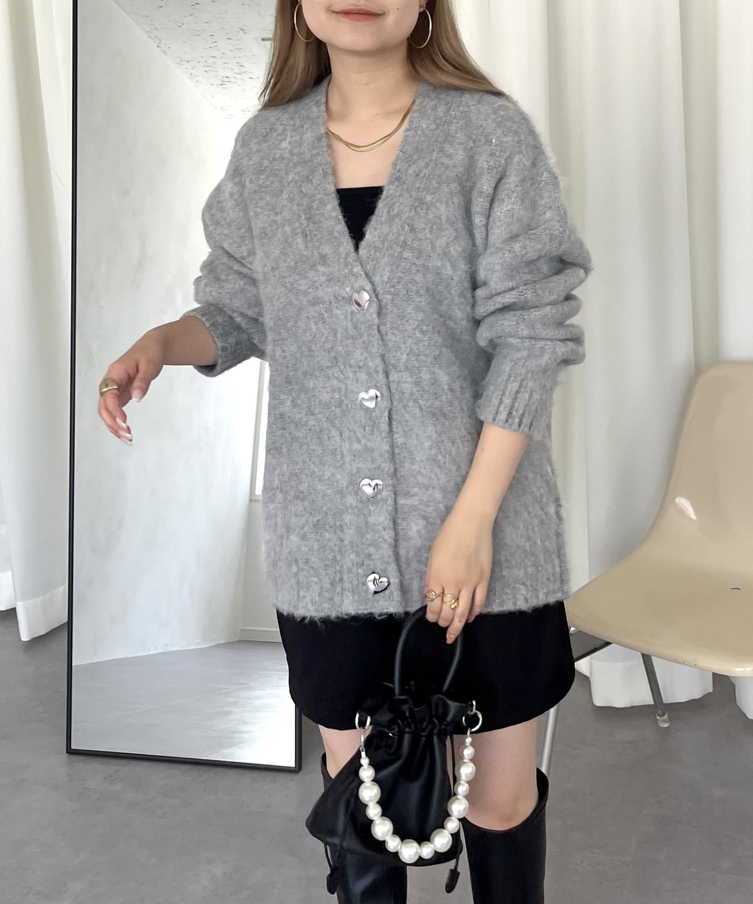 ●ハートボタンがシルバーなので女の子過ぎず大人可愛く着ていただけます
