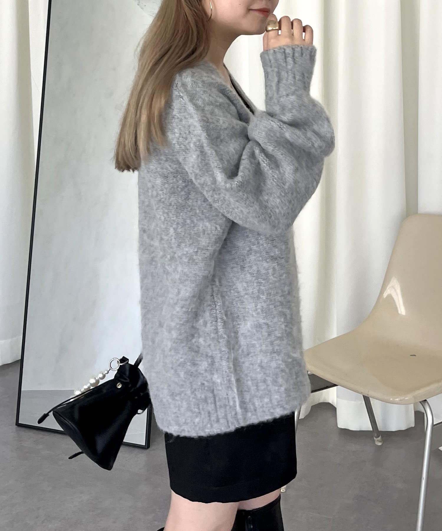 • prose verse(プロズヴェール) ハートボタンモヘアライクVニットカーデ