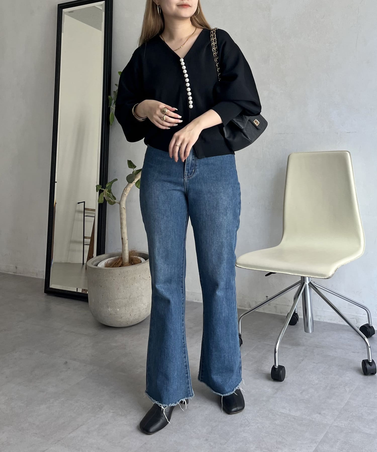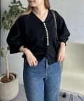 ●Vネックなのでさりげなく鎖骨や首元をスッキリ見せてくれます!