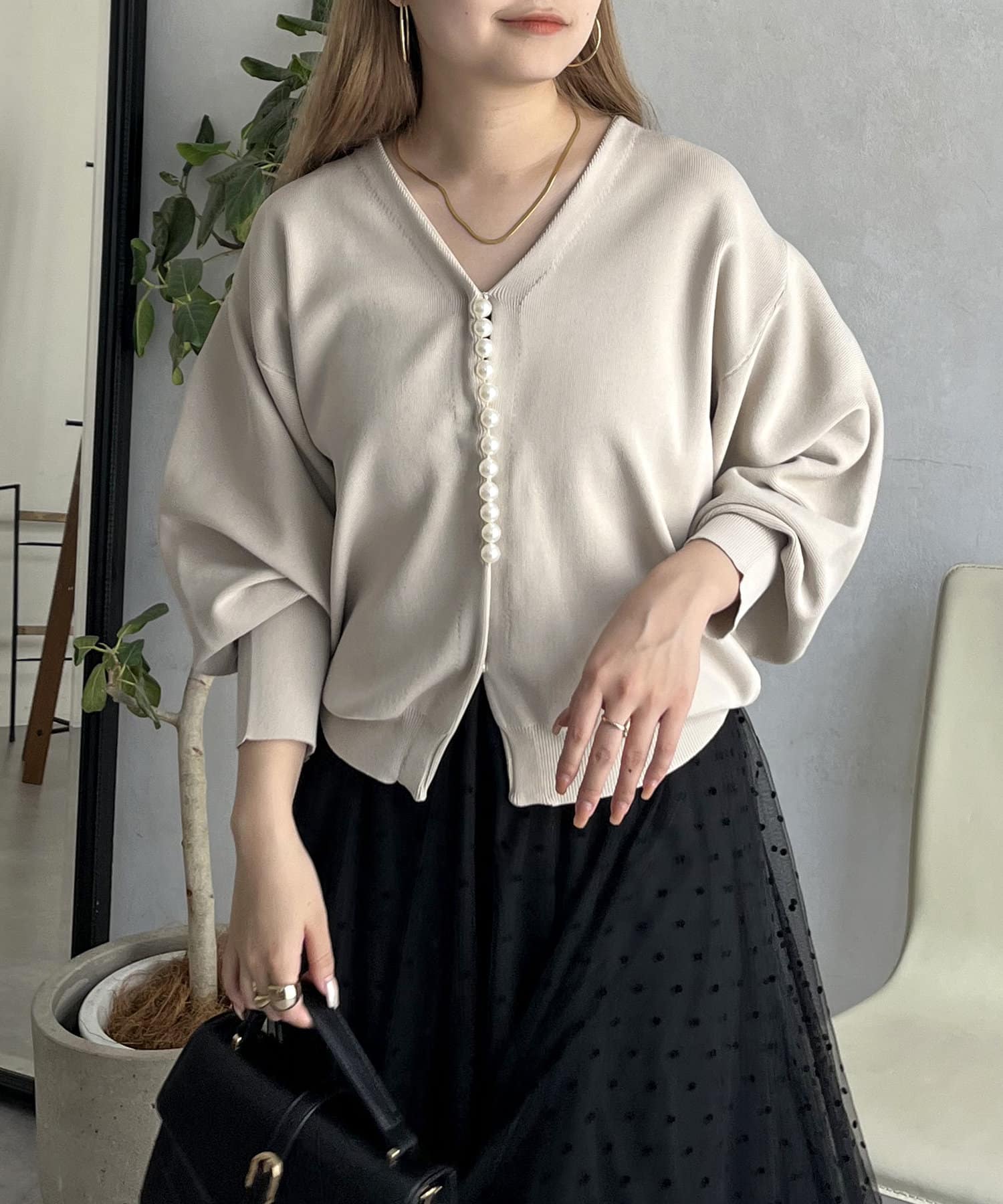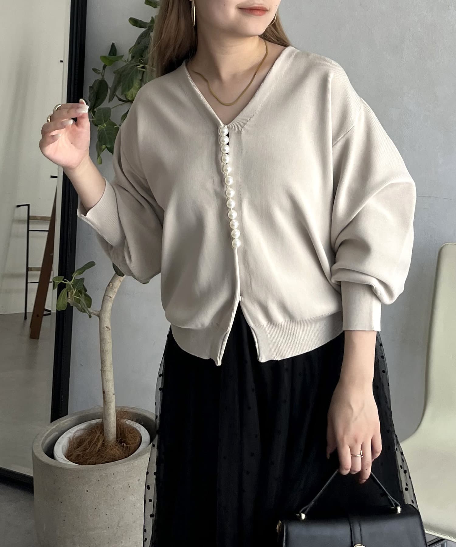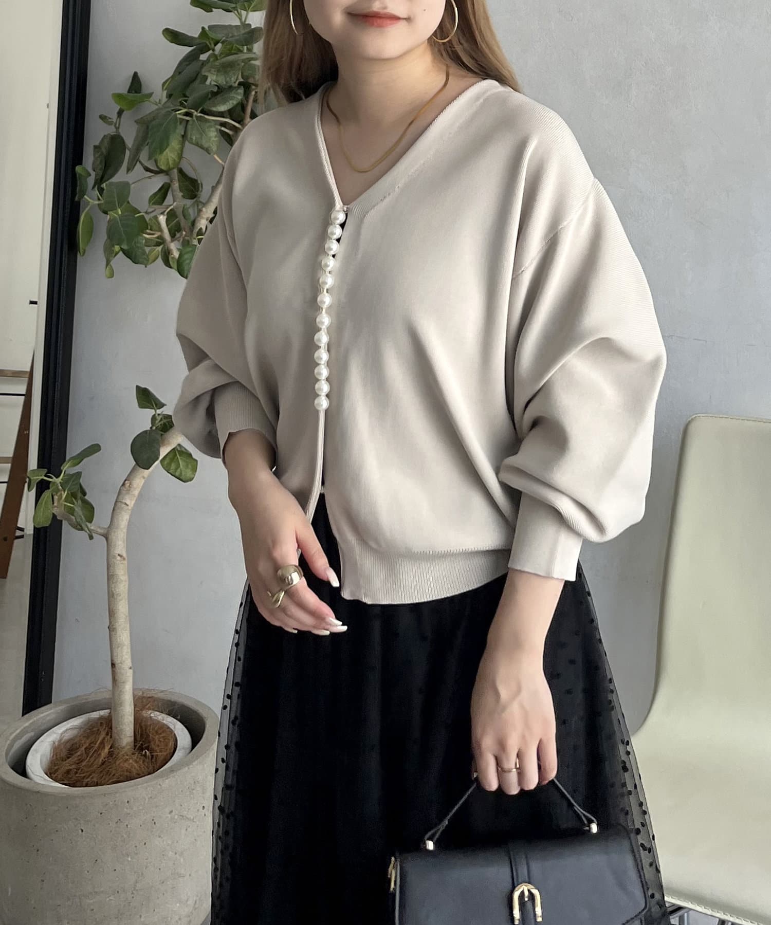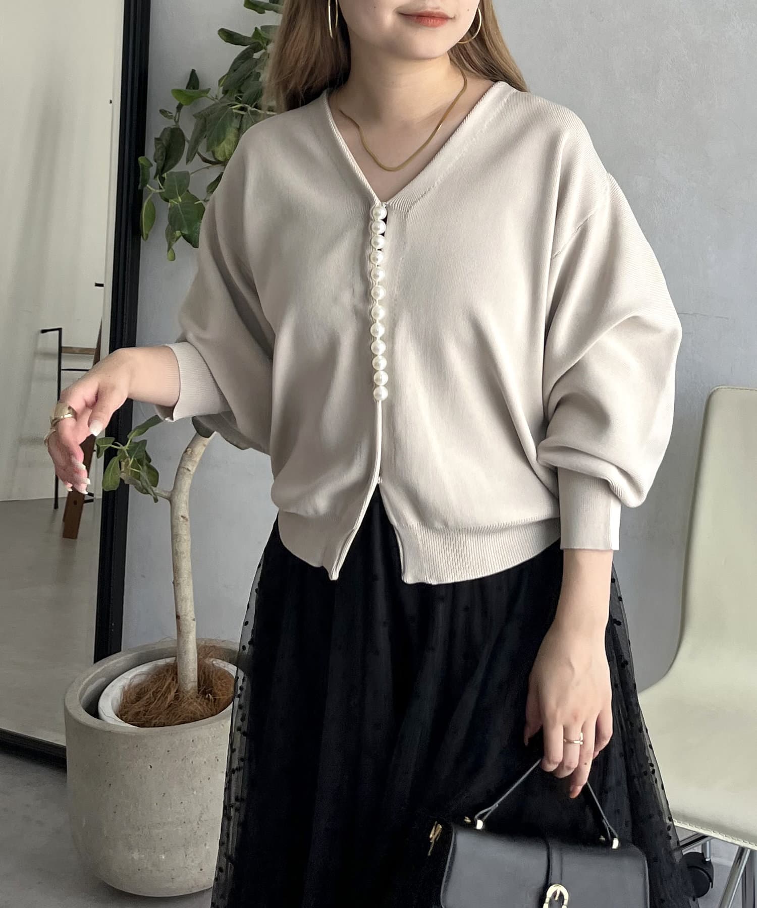 フロントパールがキレイめカジュアルに着こなせカーディガン