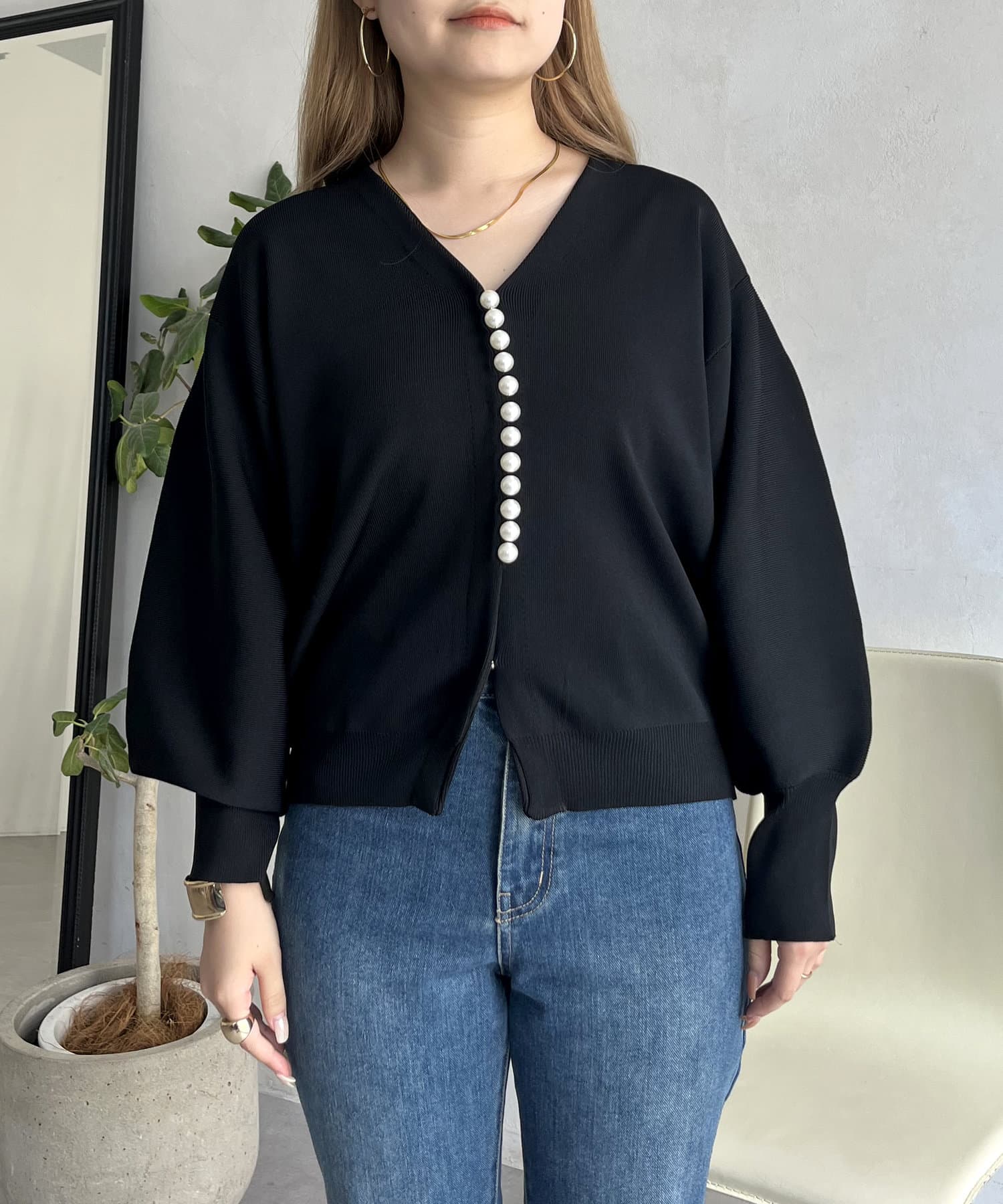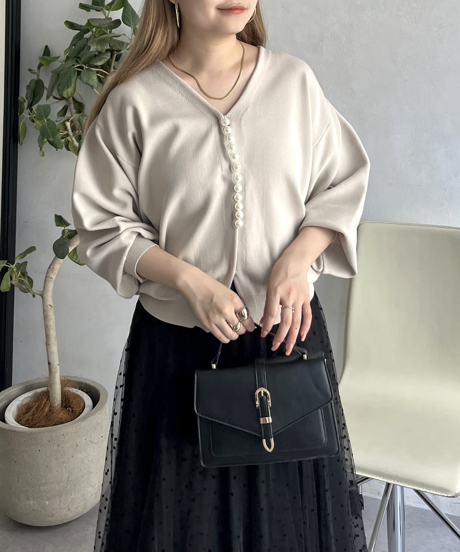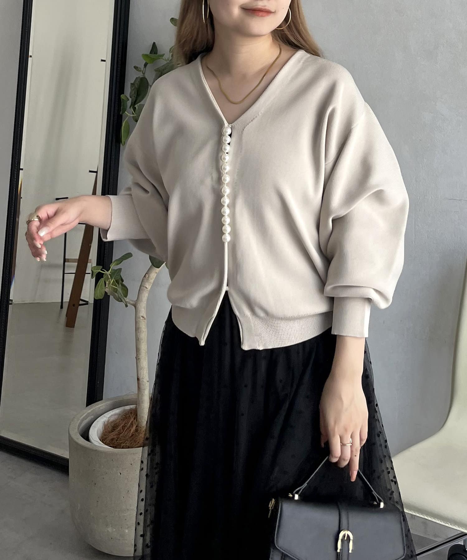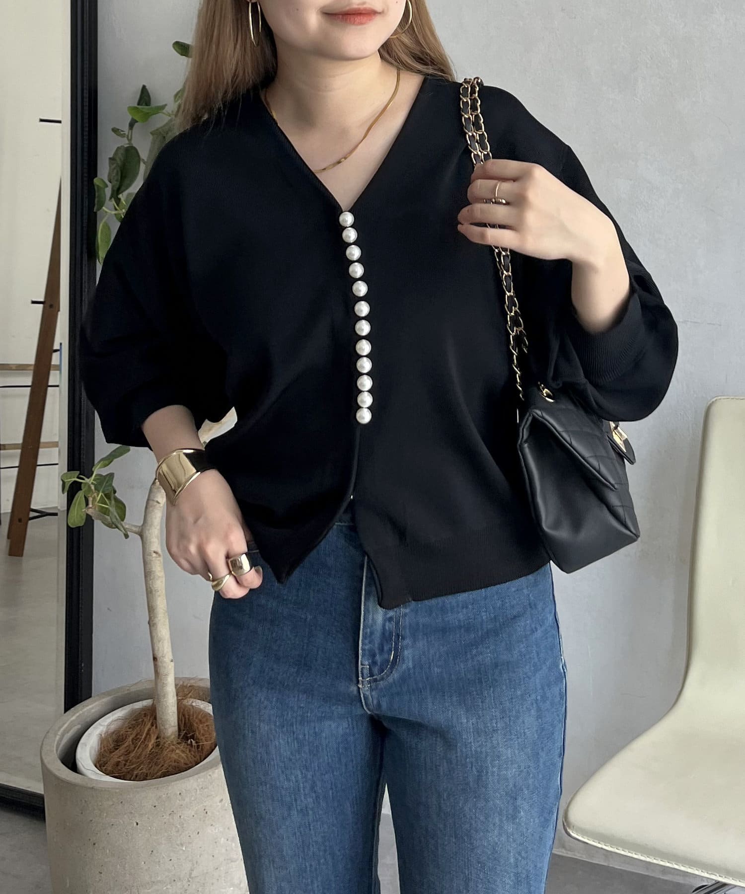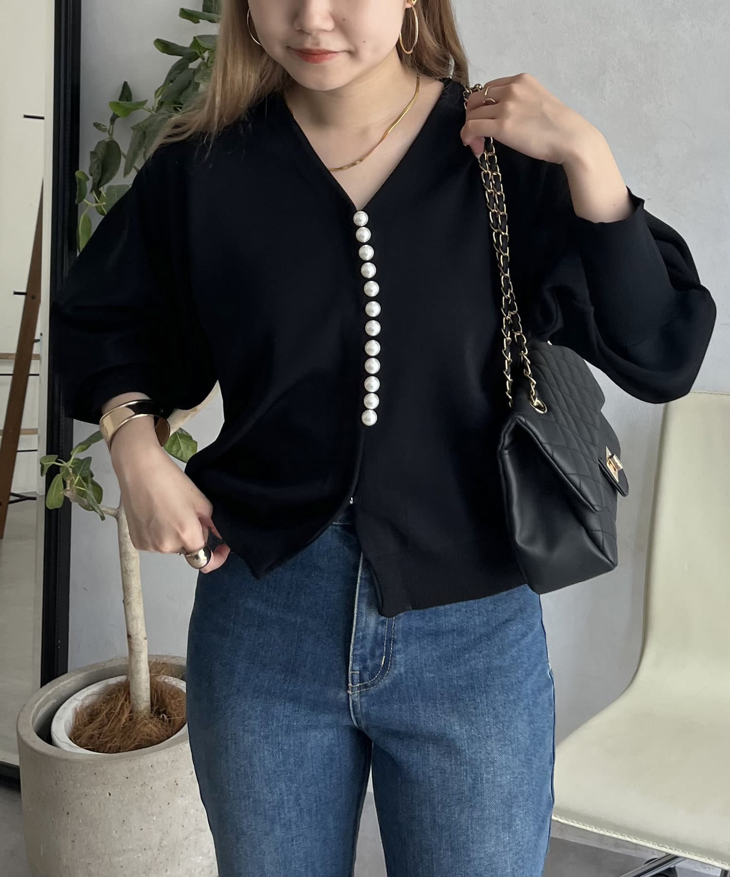 フロントパールがキレイめカジュアルに着こなせカーディガン