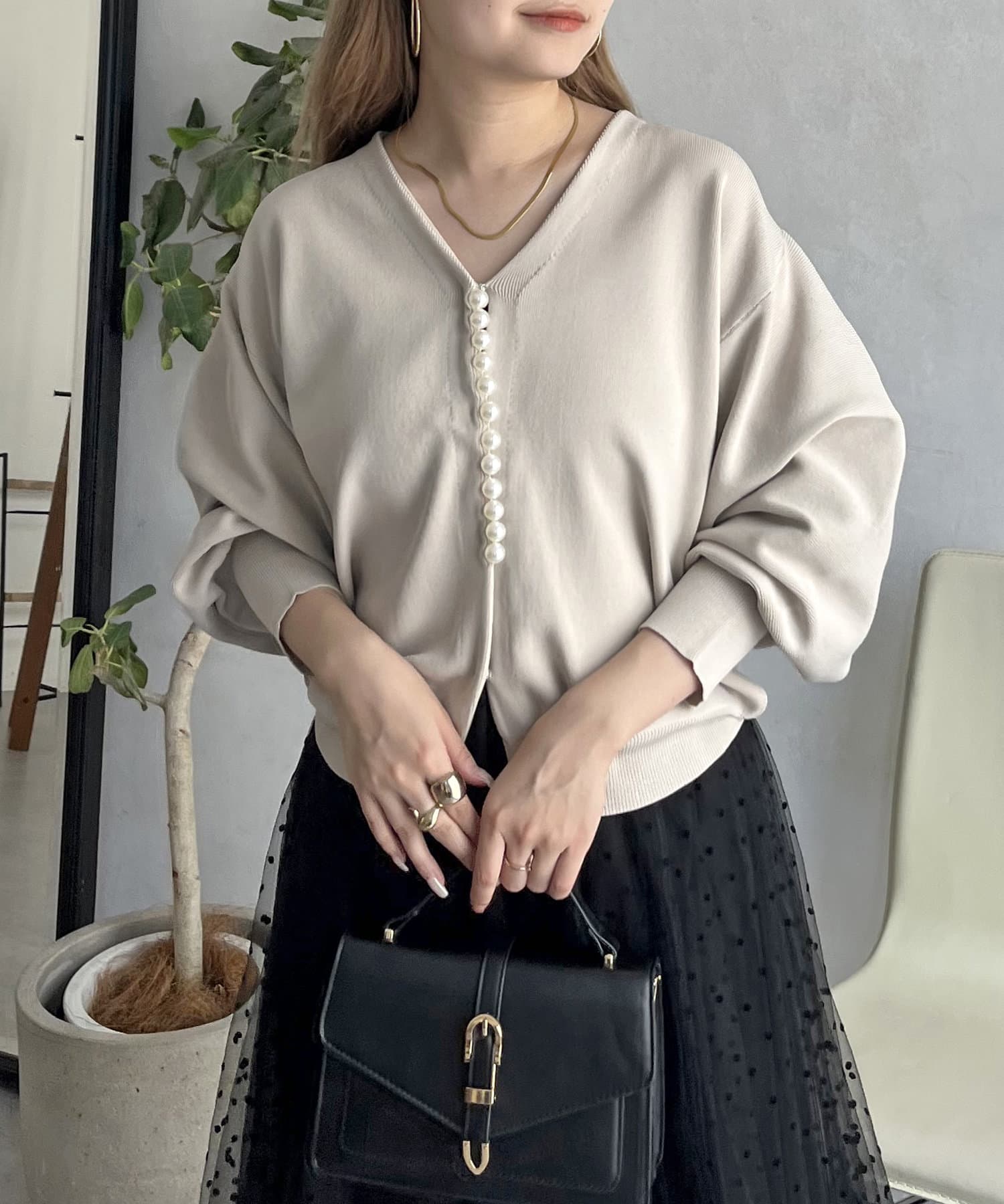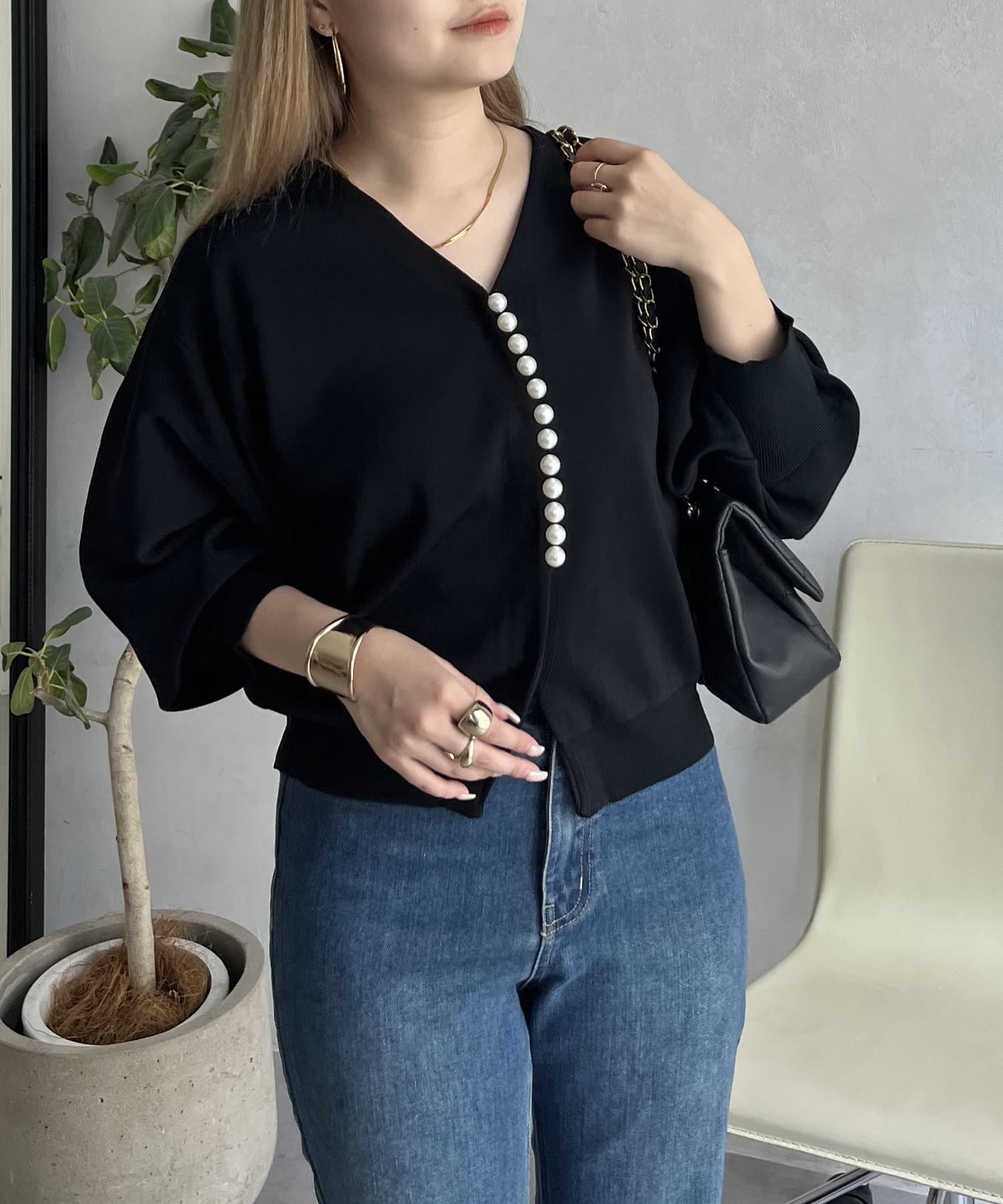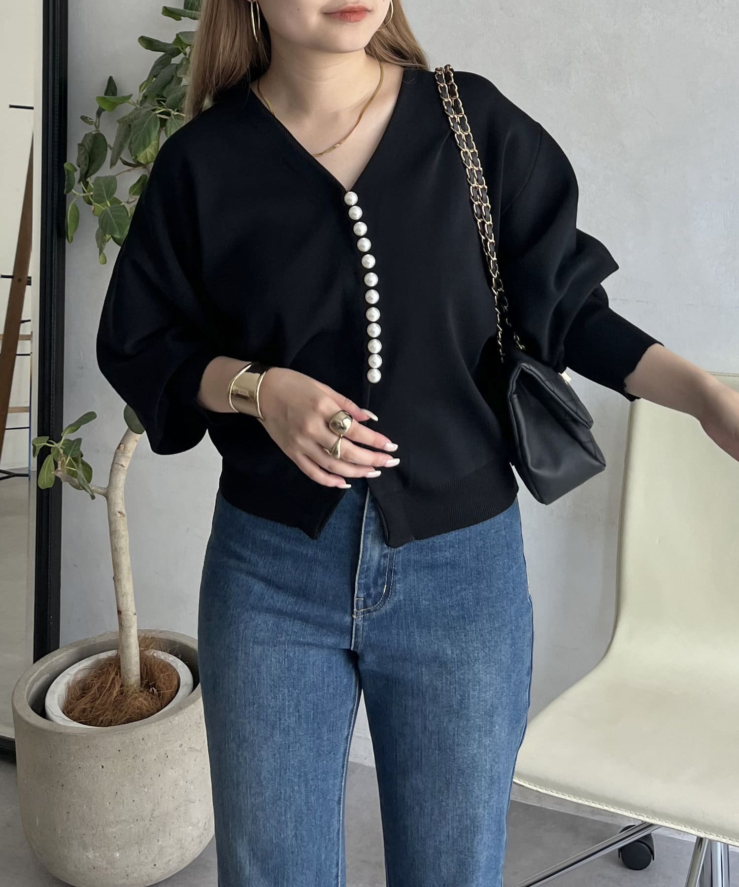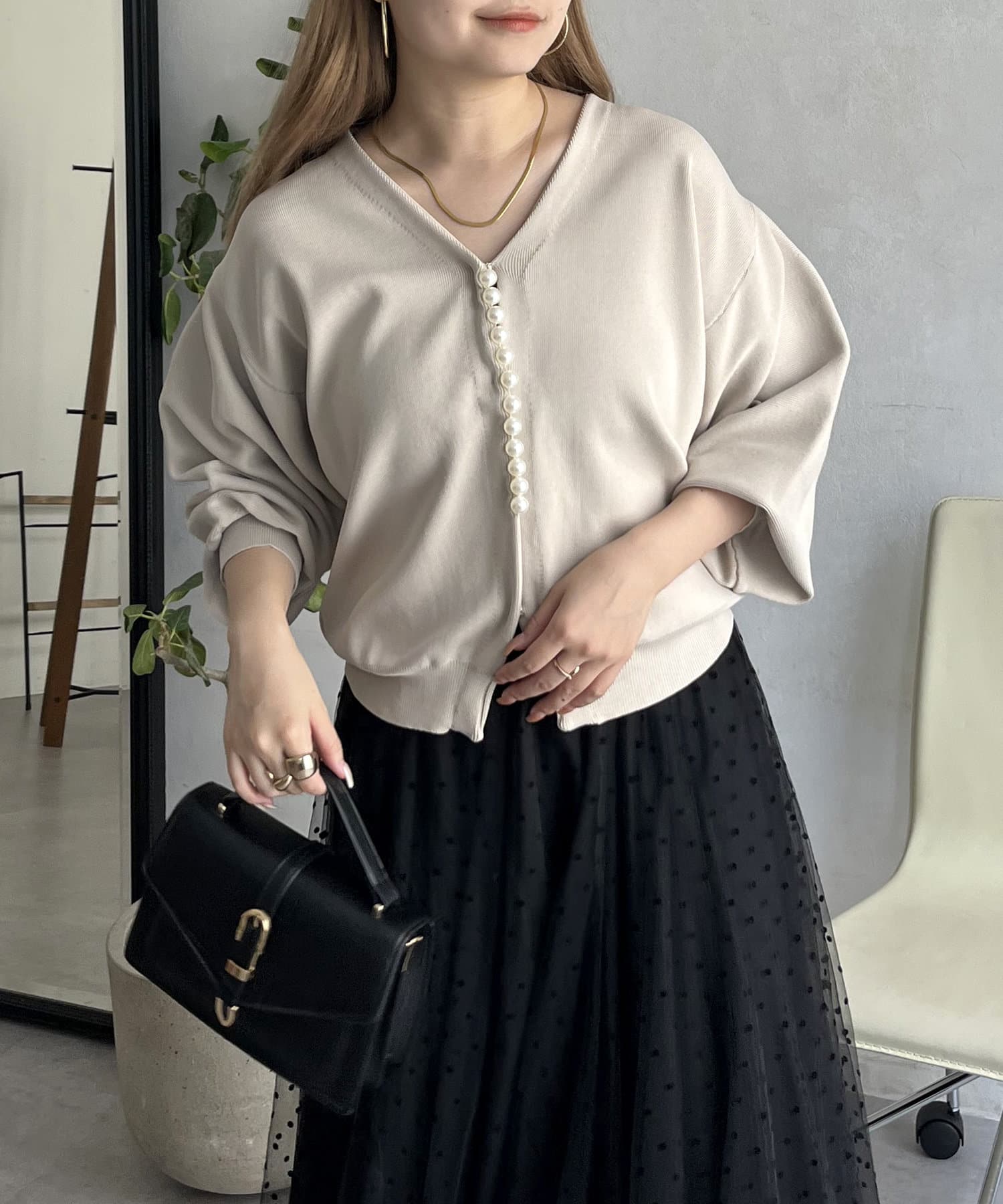 フロントパールがキレイめカジュアルに着こなせカーディガン