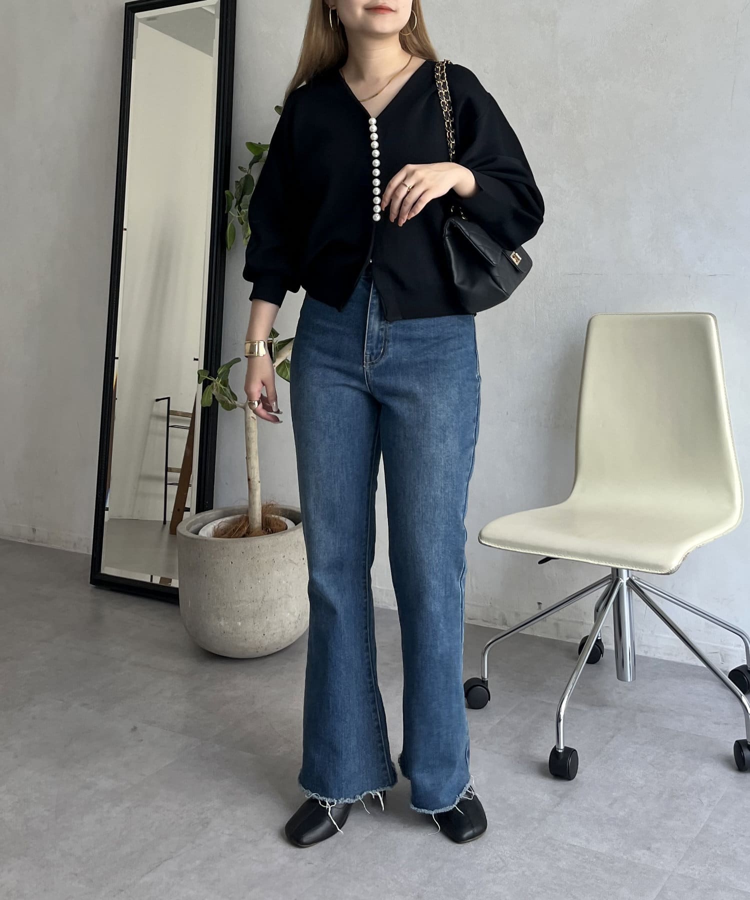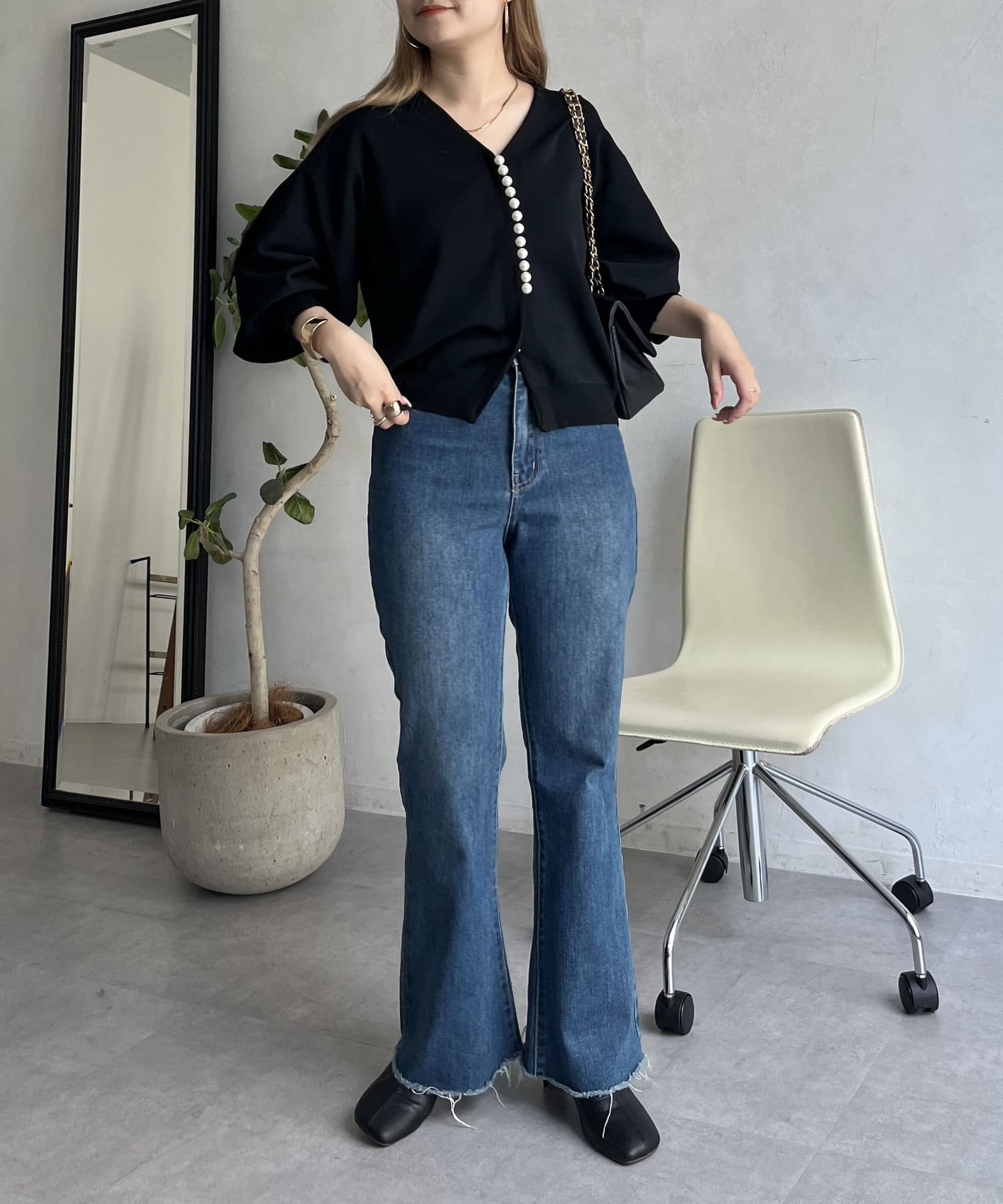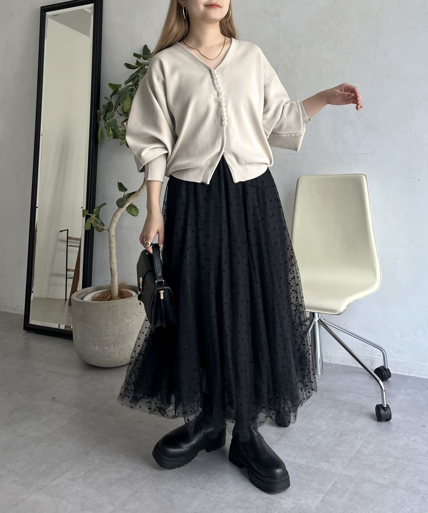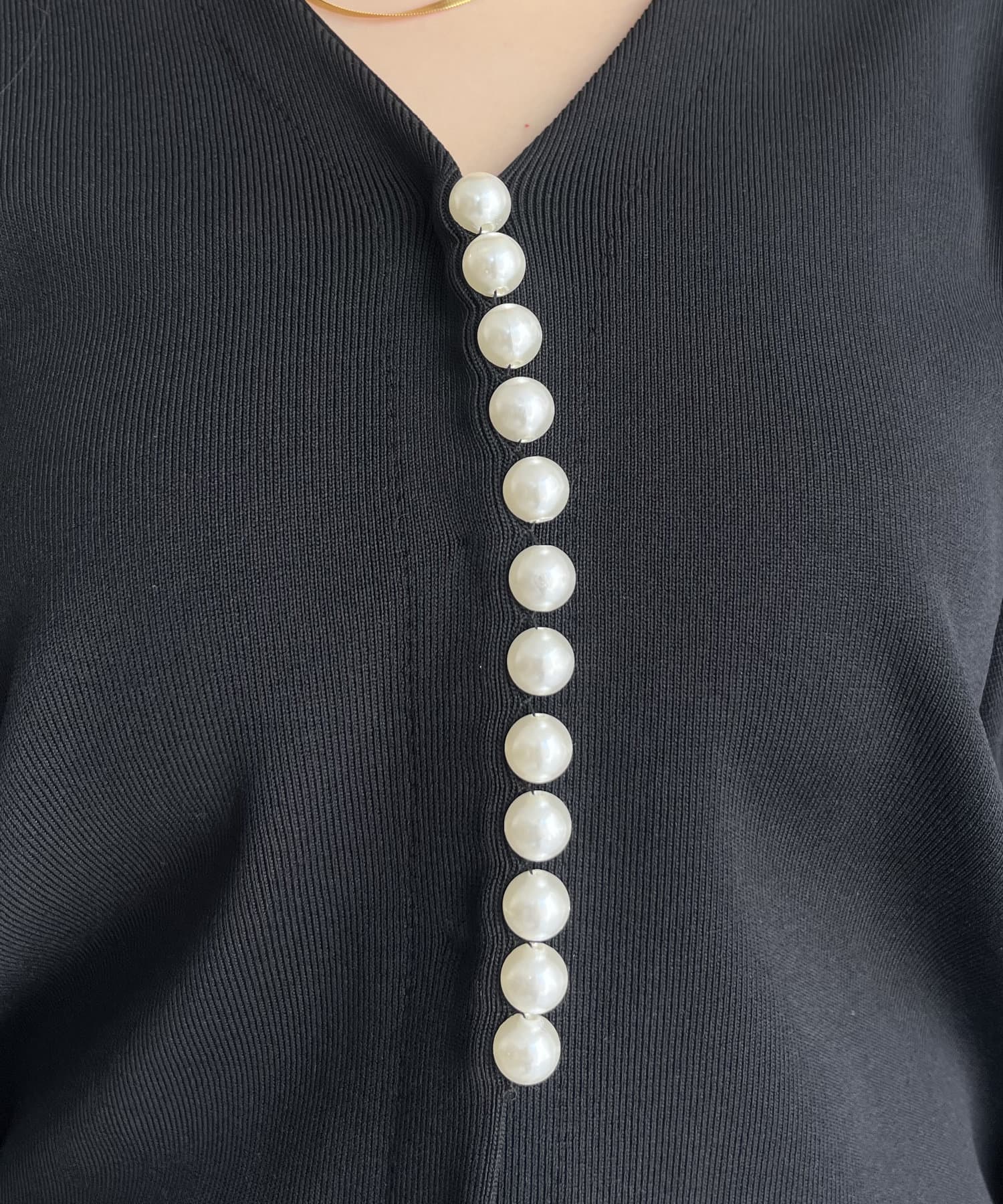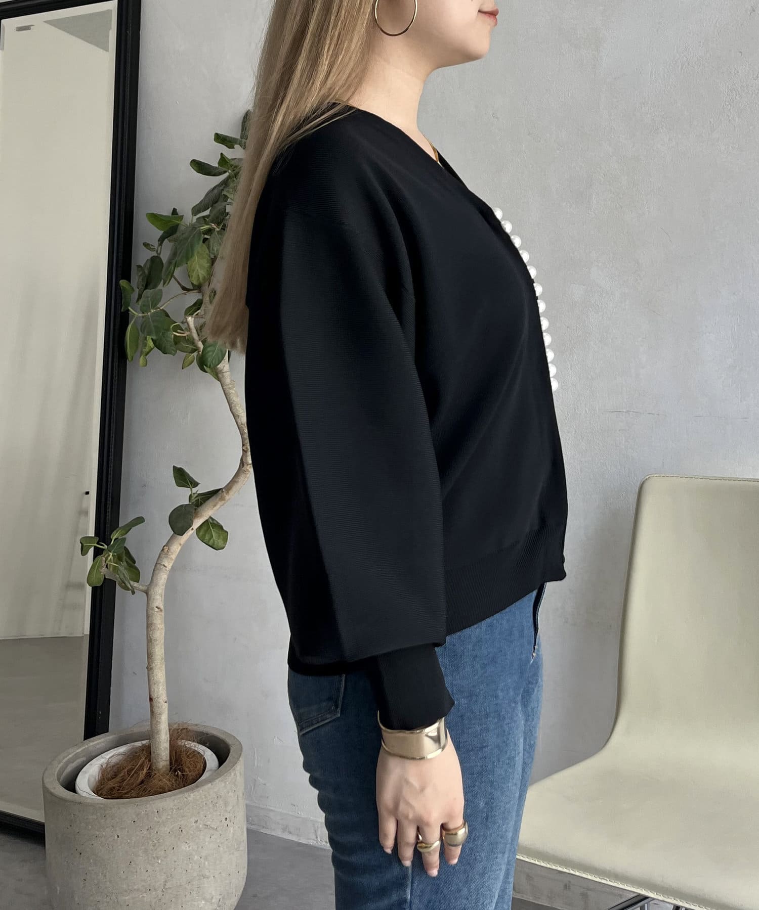 フロントパールがキレイめカジュアルに着こなせカーディガン
