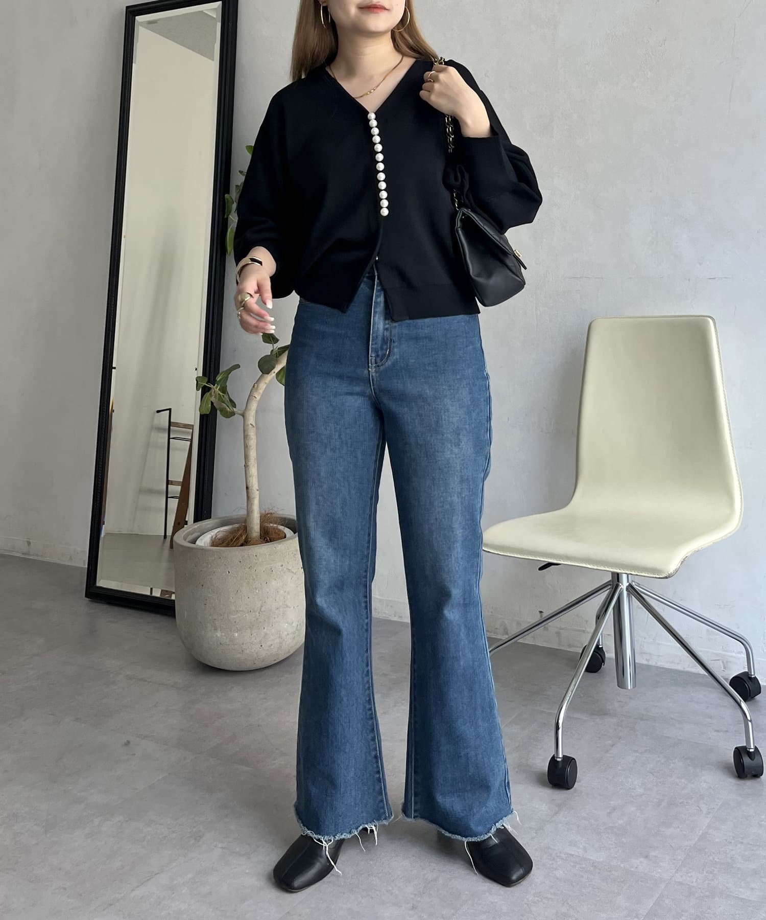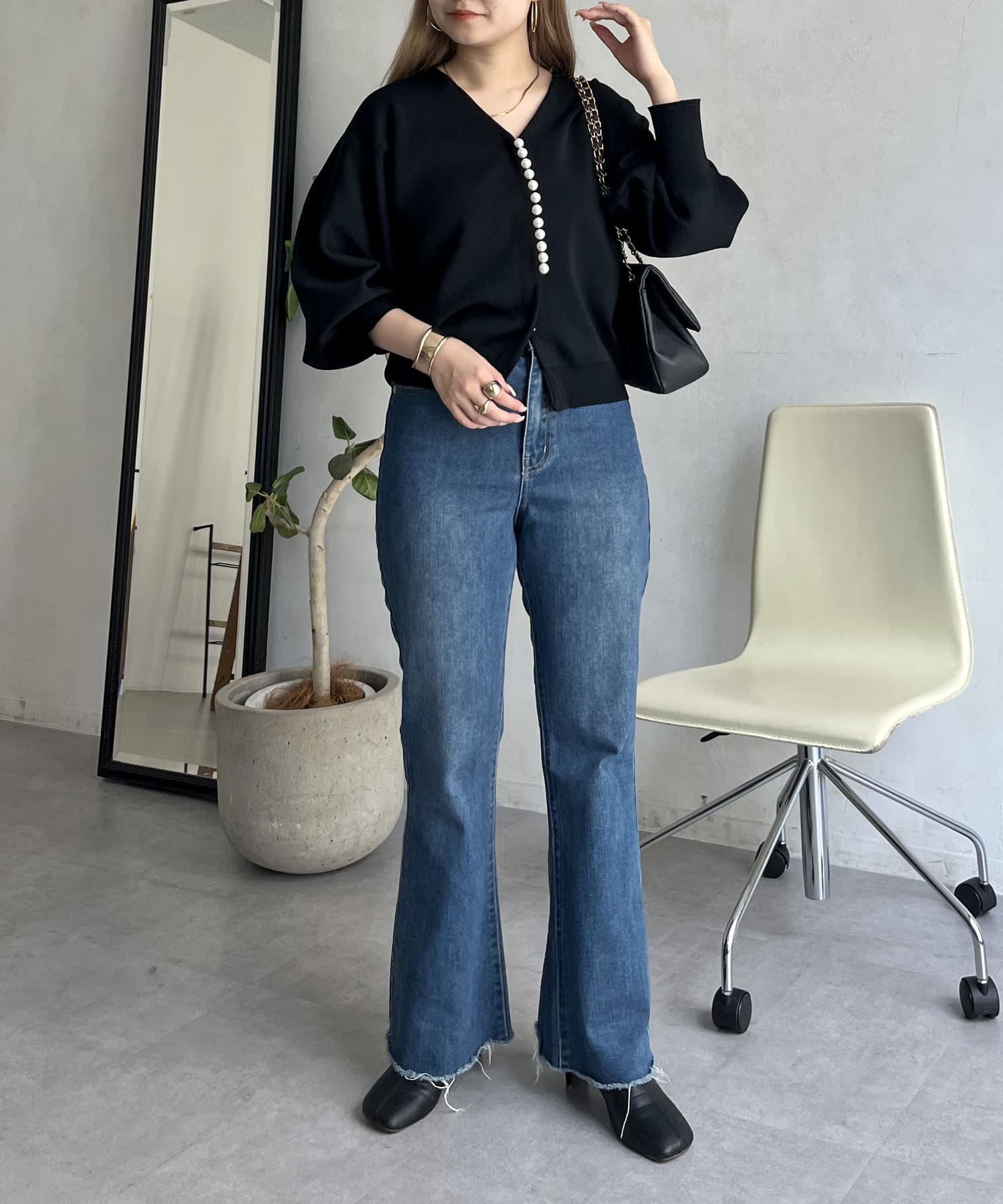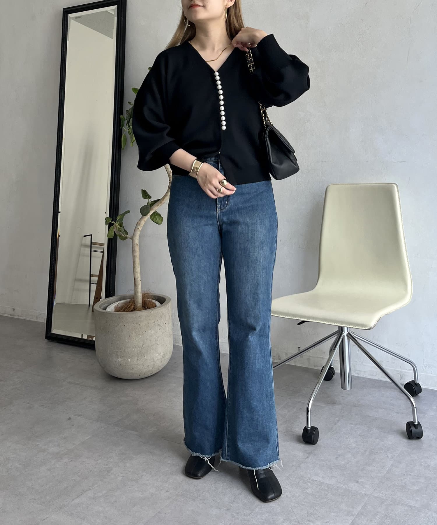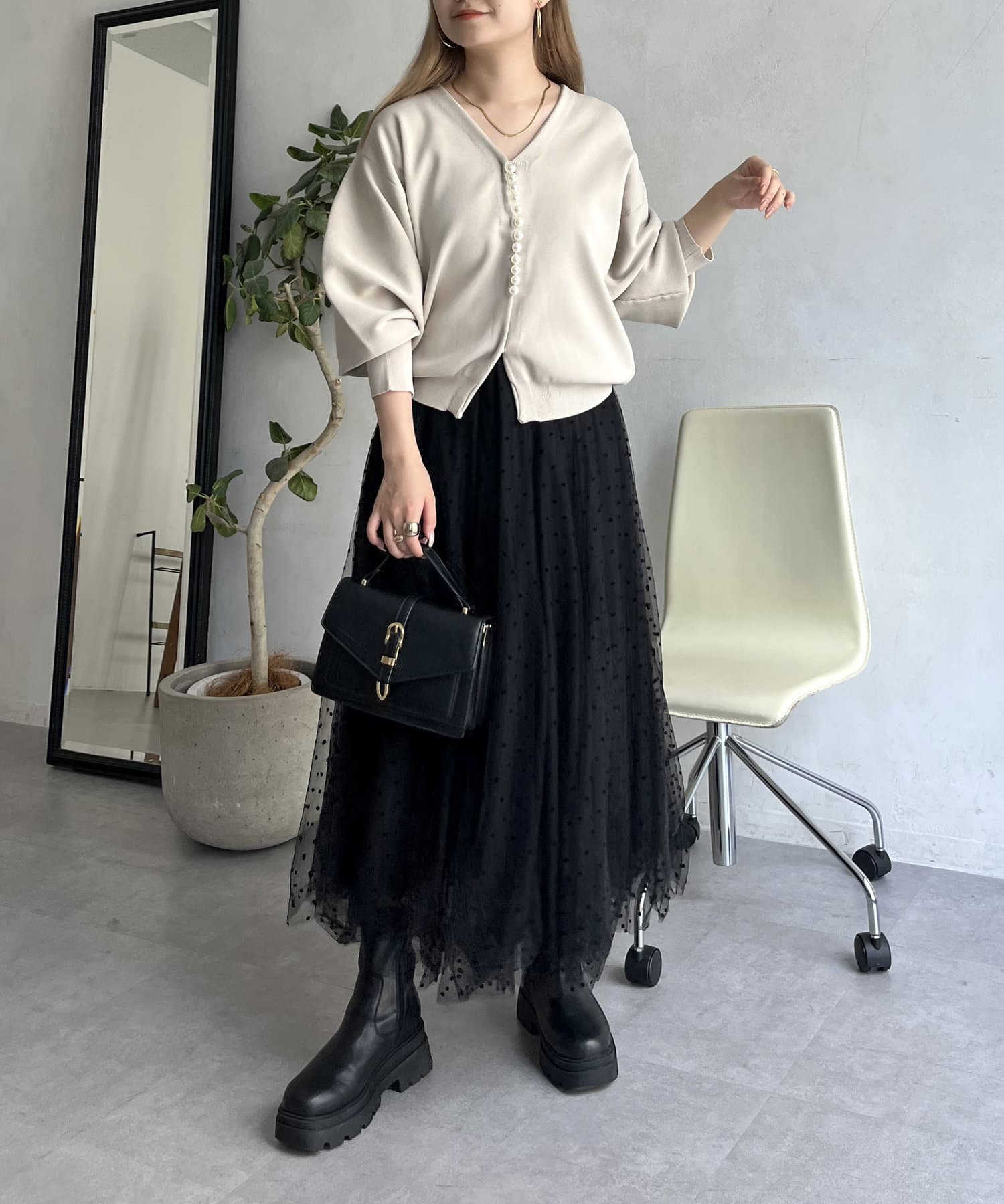 フロントパールがキレイめカジュアルに着こなせカーディガン