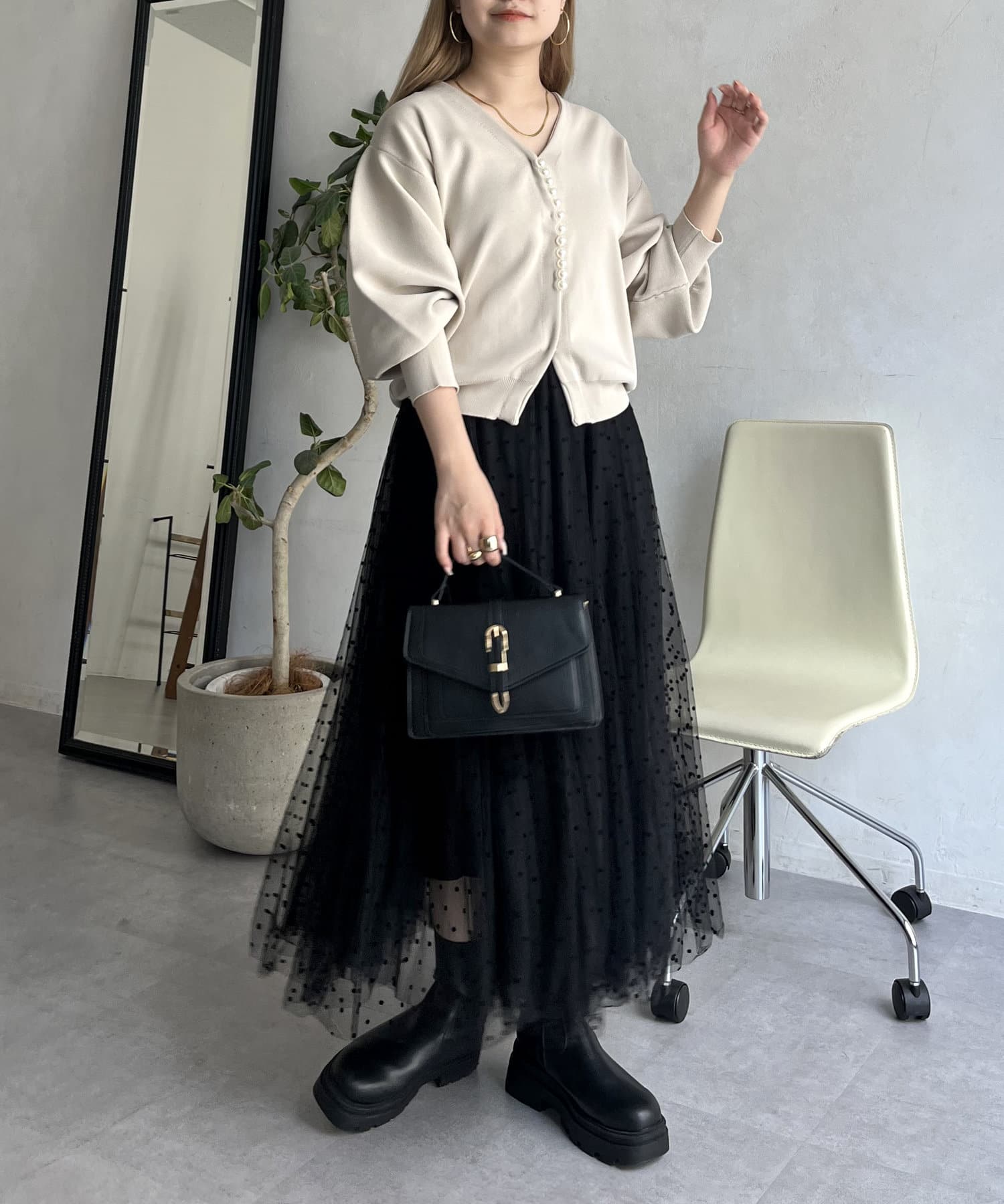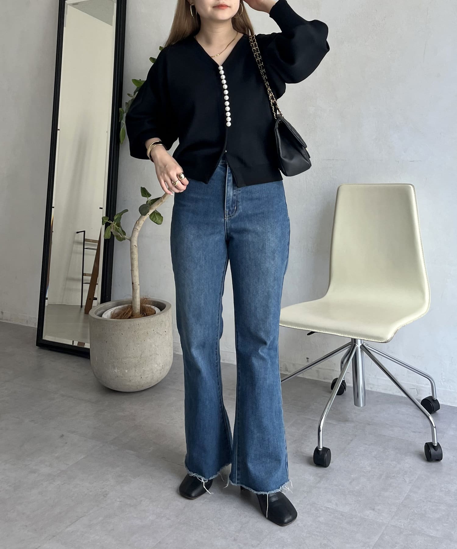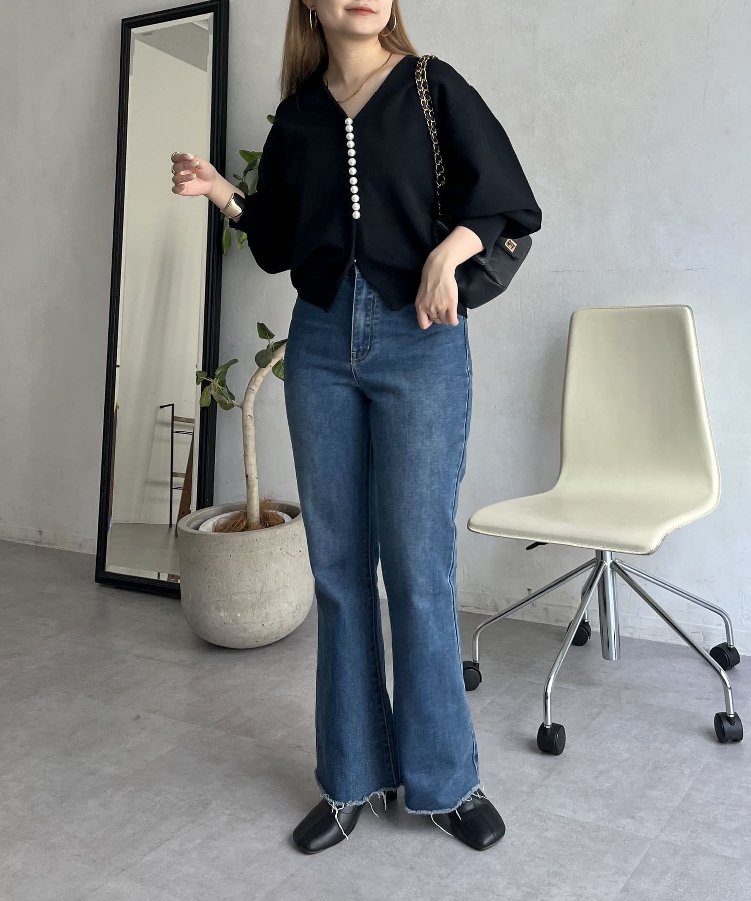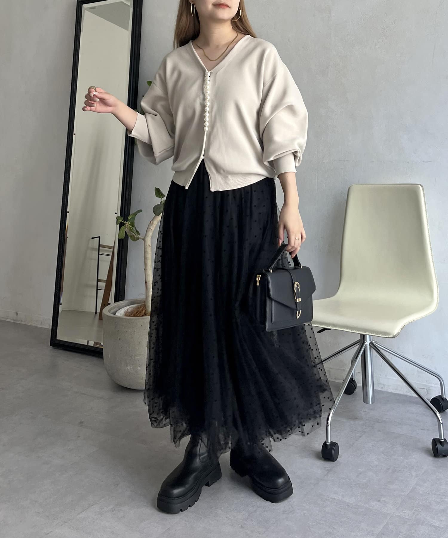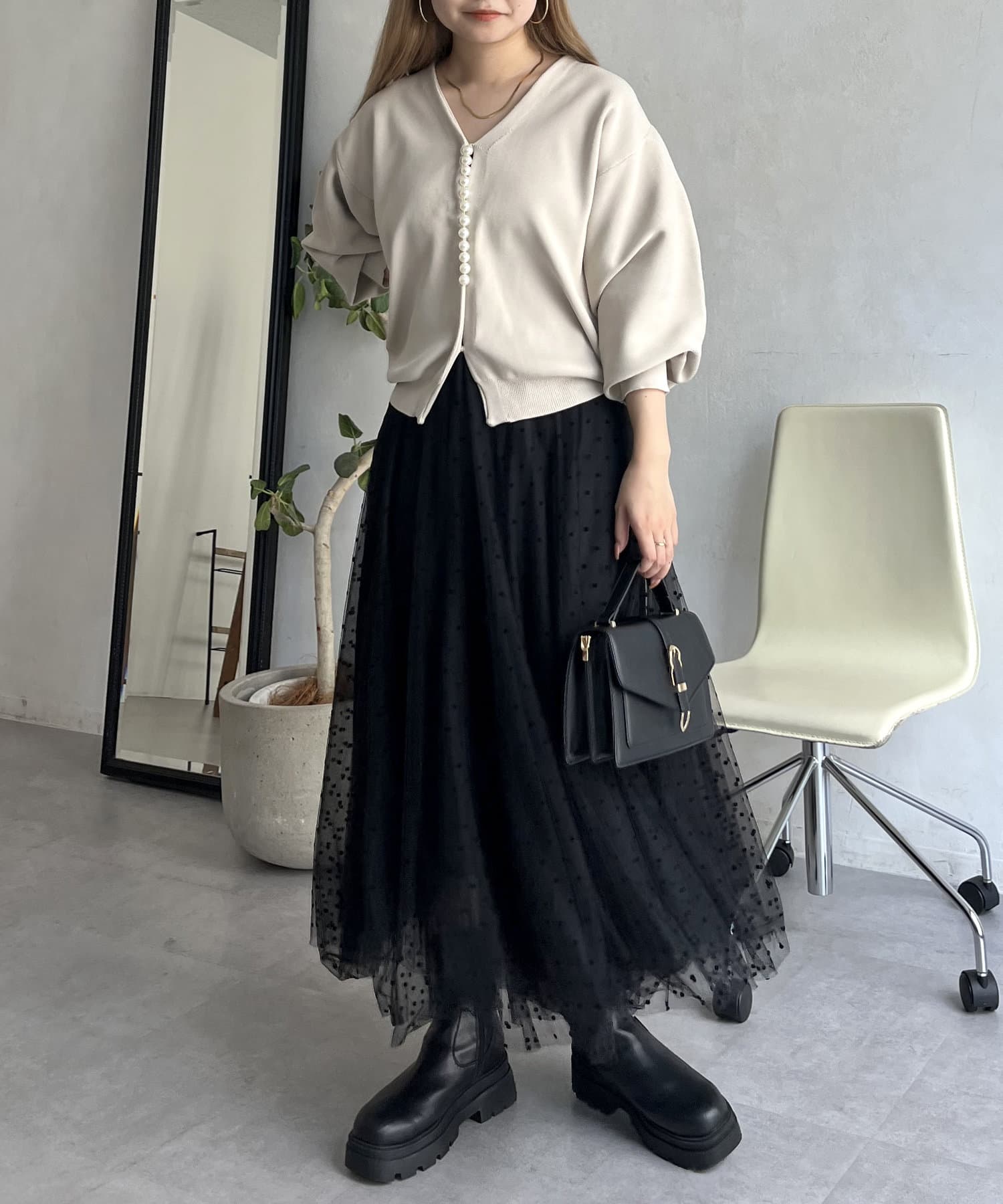 フロントパールがキレイめカジュアルに着こなせカーディガン