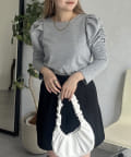 肩のデザインがとても可愛い。生地は想像していたよりも硬めで良い感じ。グレー購入で甘すぎず使いやすい。