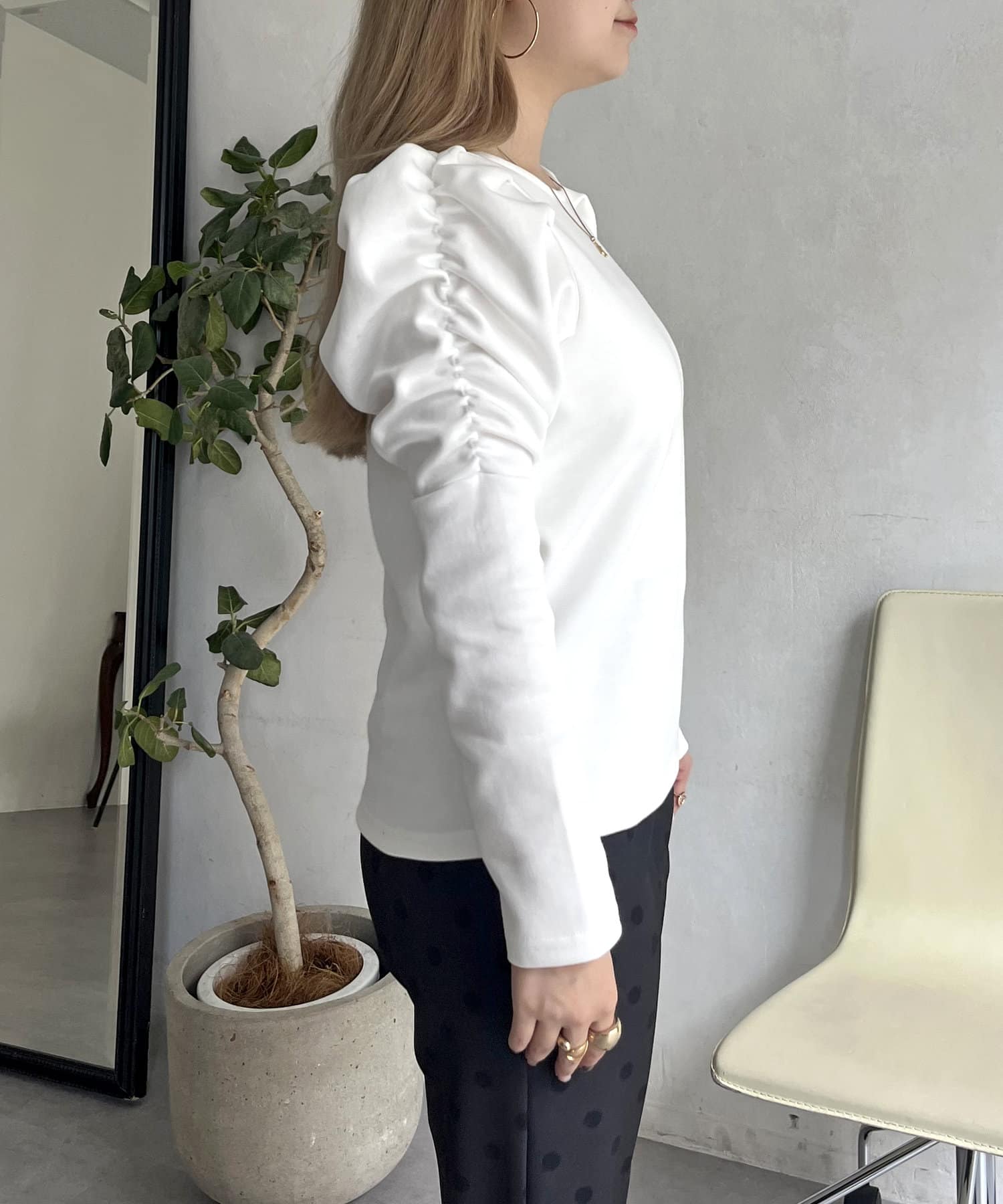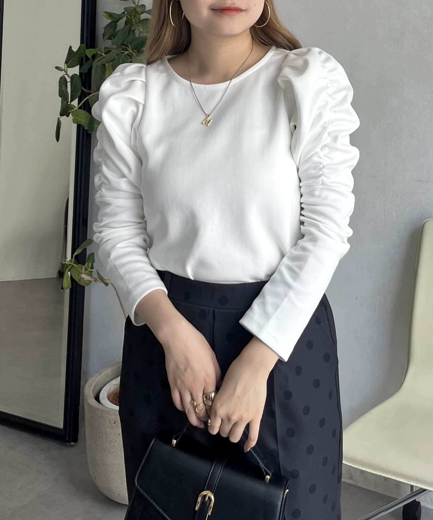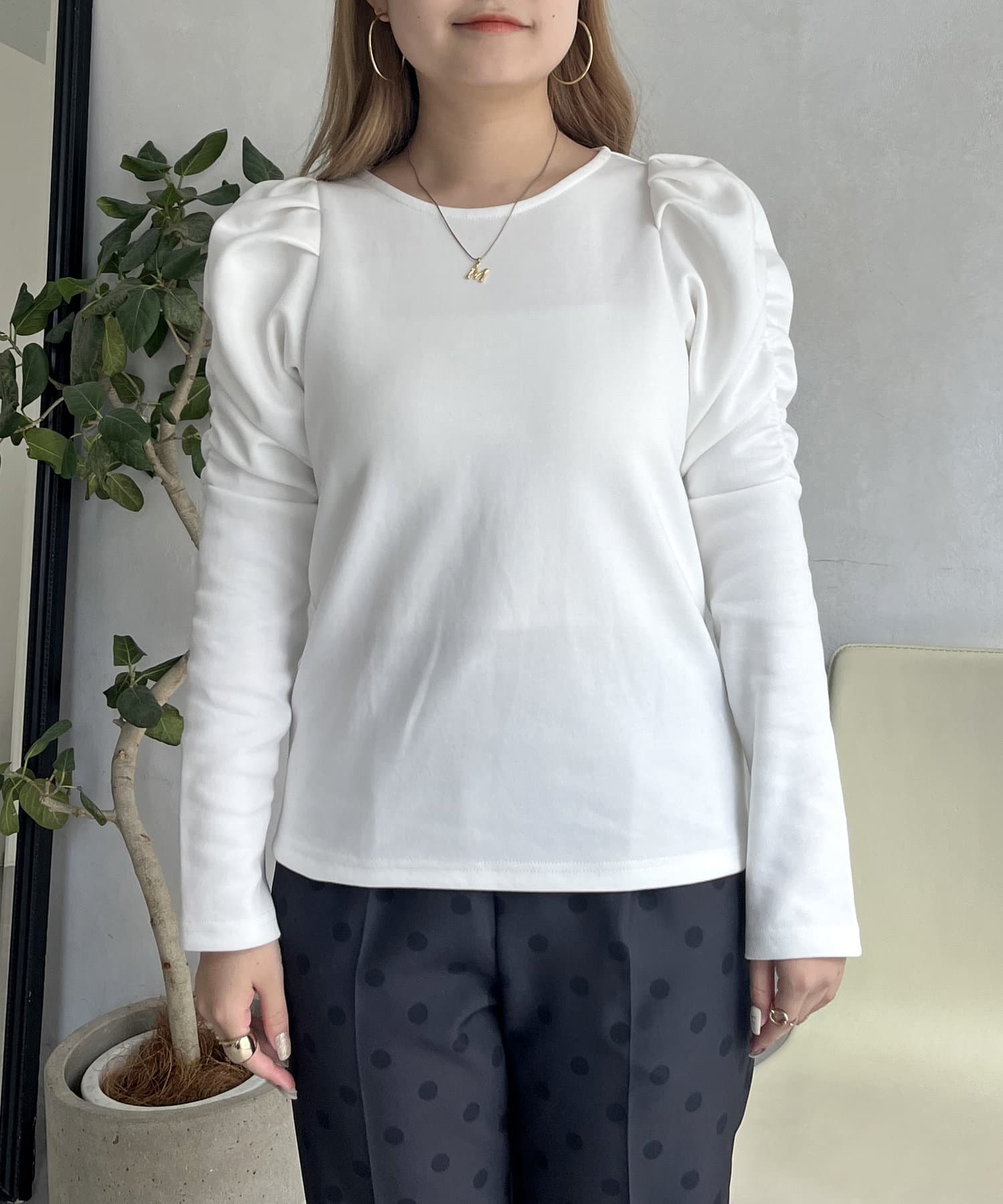 TOP > prose verse > レディース > トップス > Tシャツ/カットソー > シャーリングボリュームスリーブカットソー