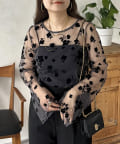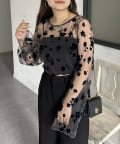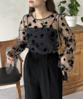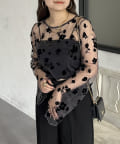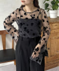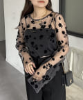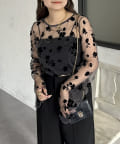 一枚で着映えするフロッキフラワーシアートップス