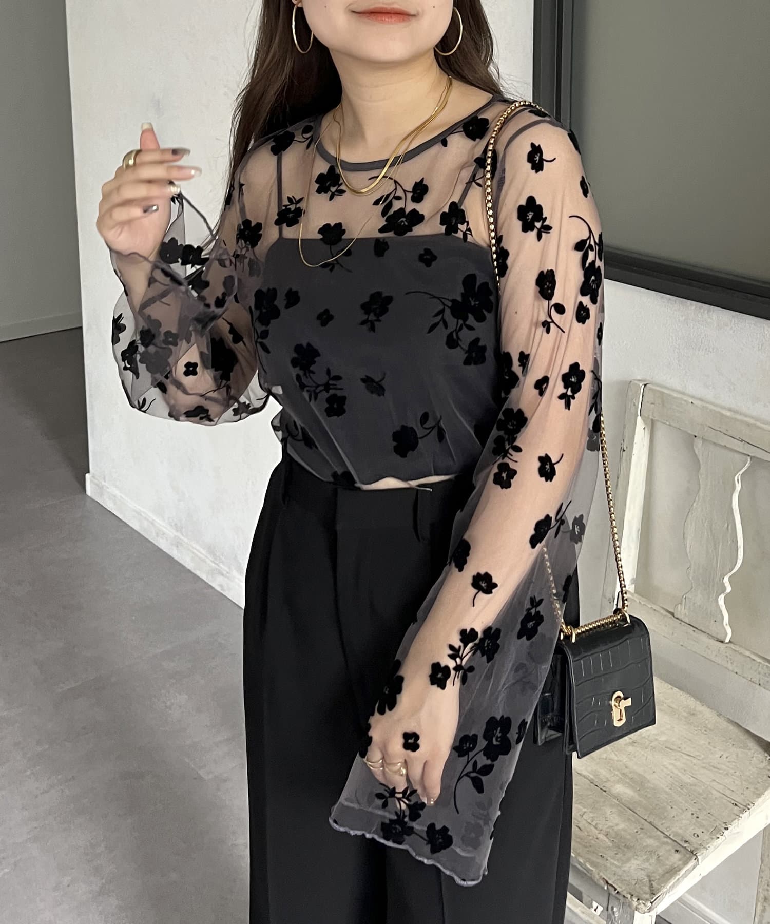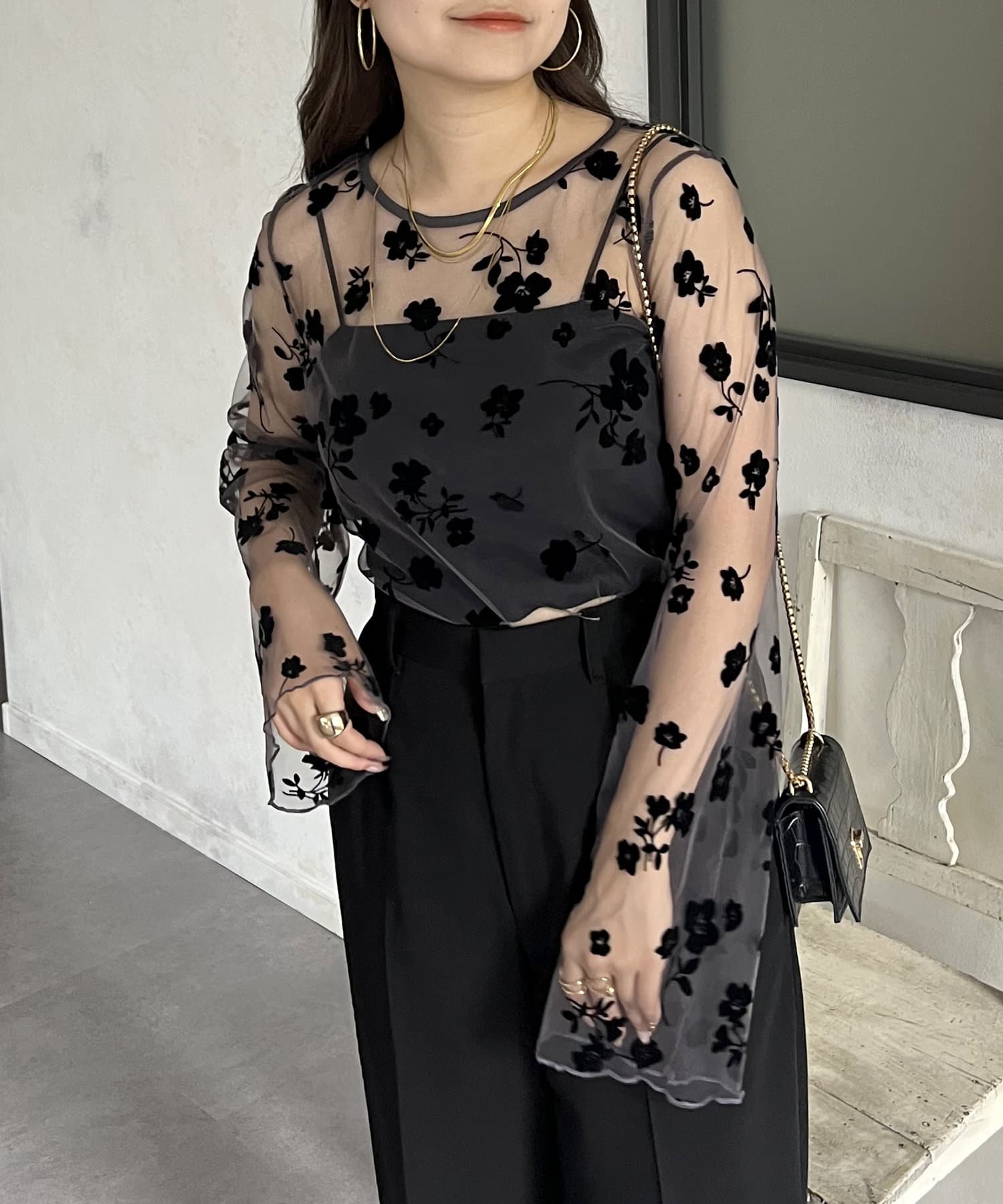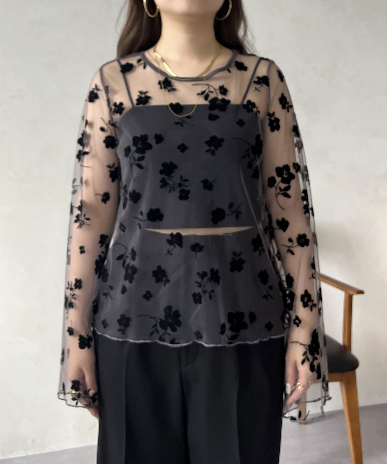 シアー/フロッキー/フロッキーフラワー/フラワー/ こなれ感 / 大人キレイめカジュアル /