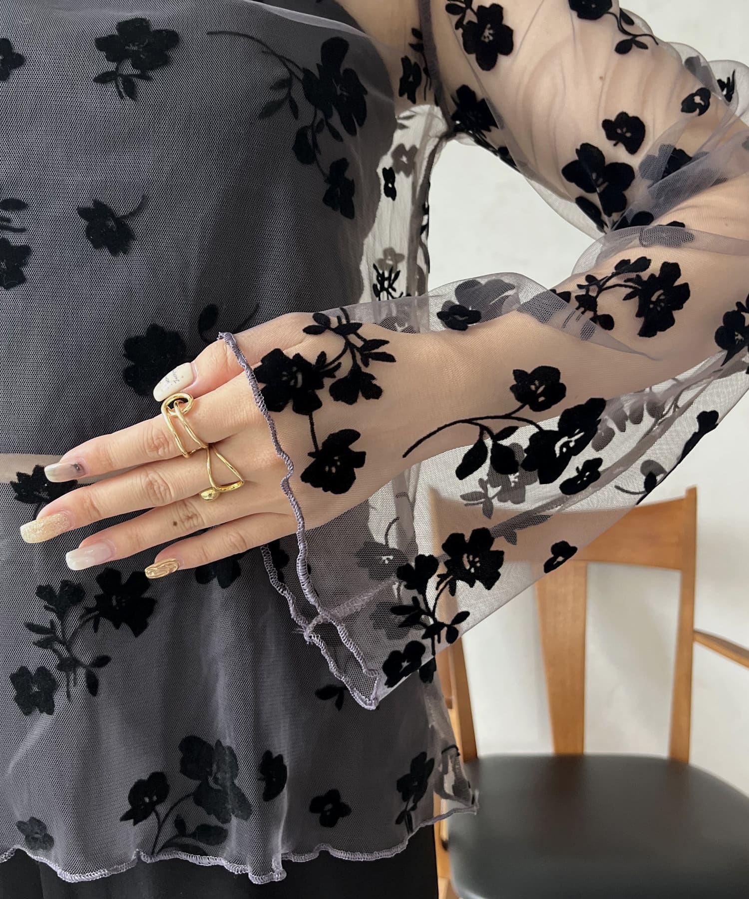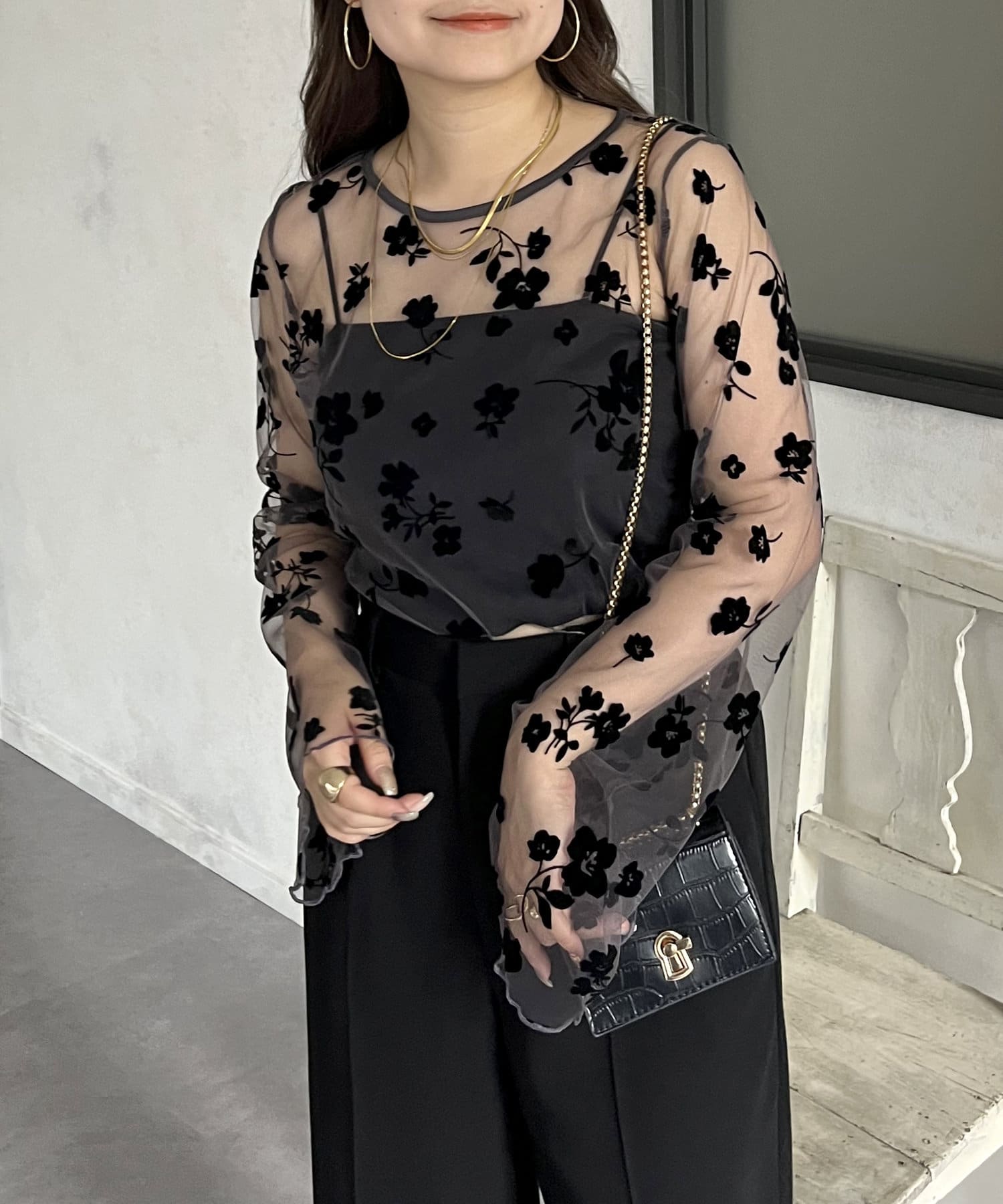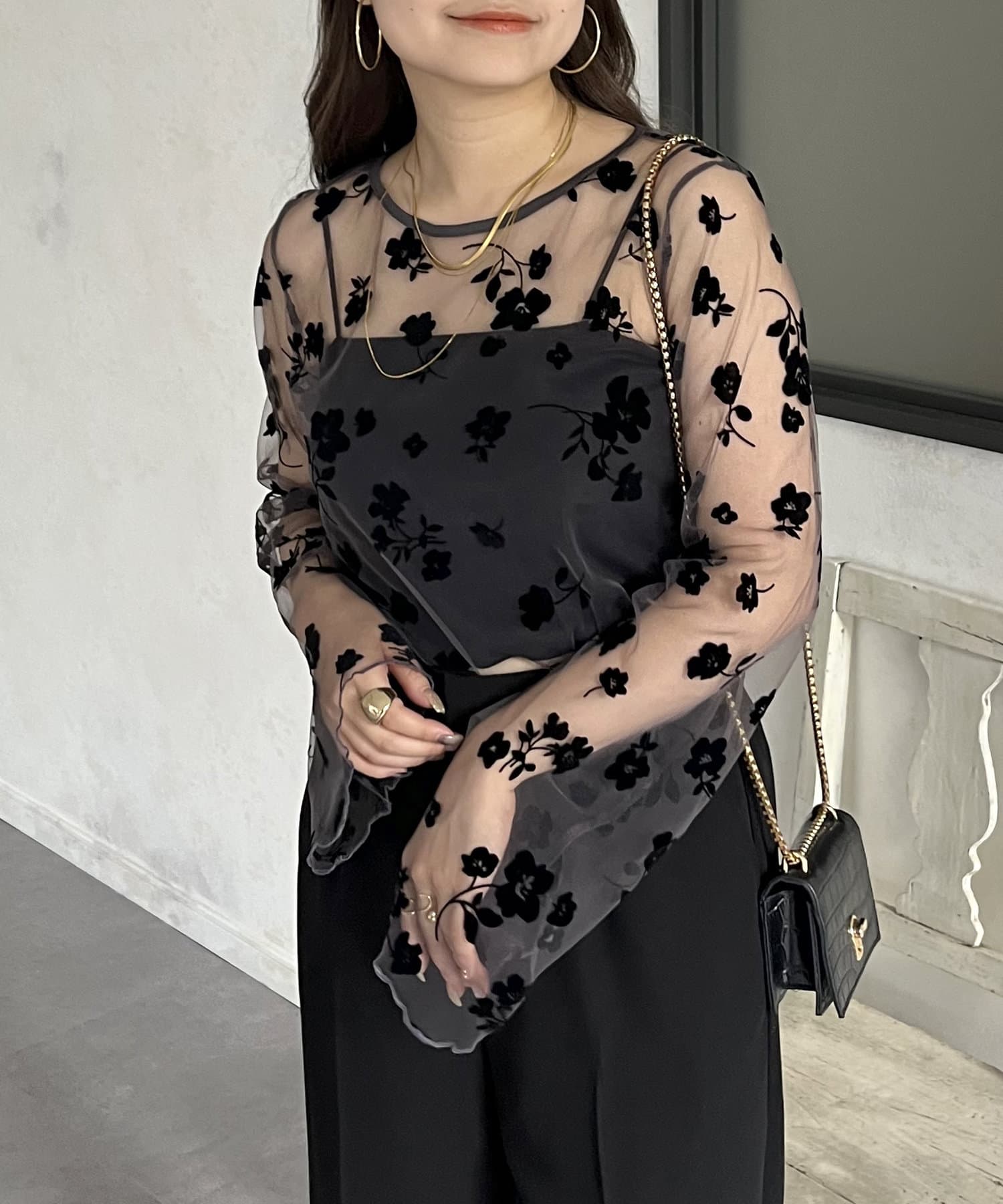 シアー/フロッキー/フロッキーフラワー/フラワー/ こなれ感 / 大人キレイめカジュアル /