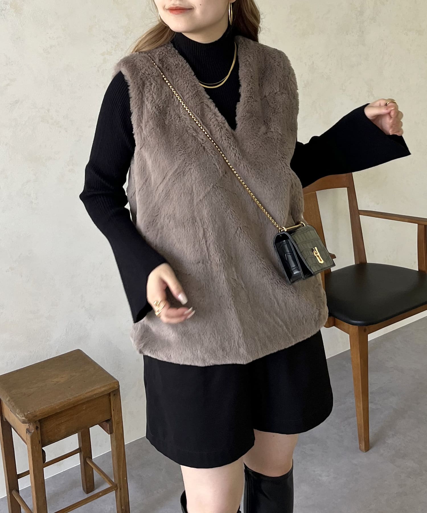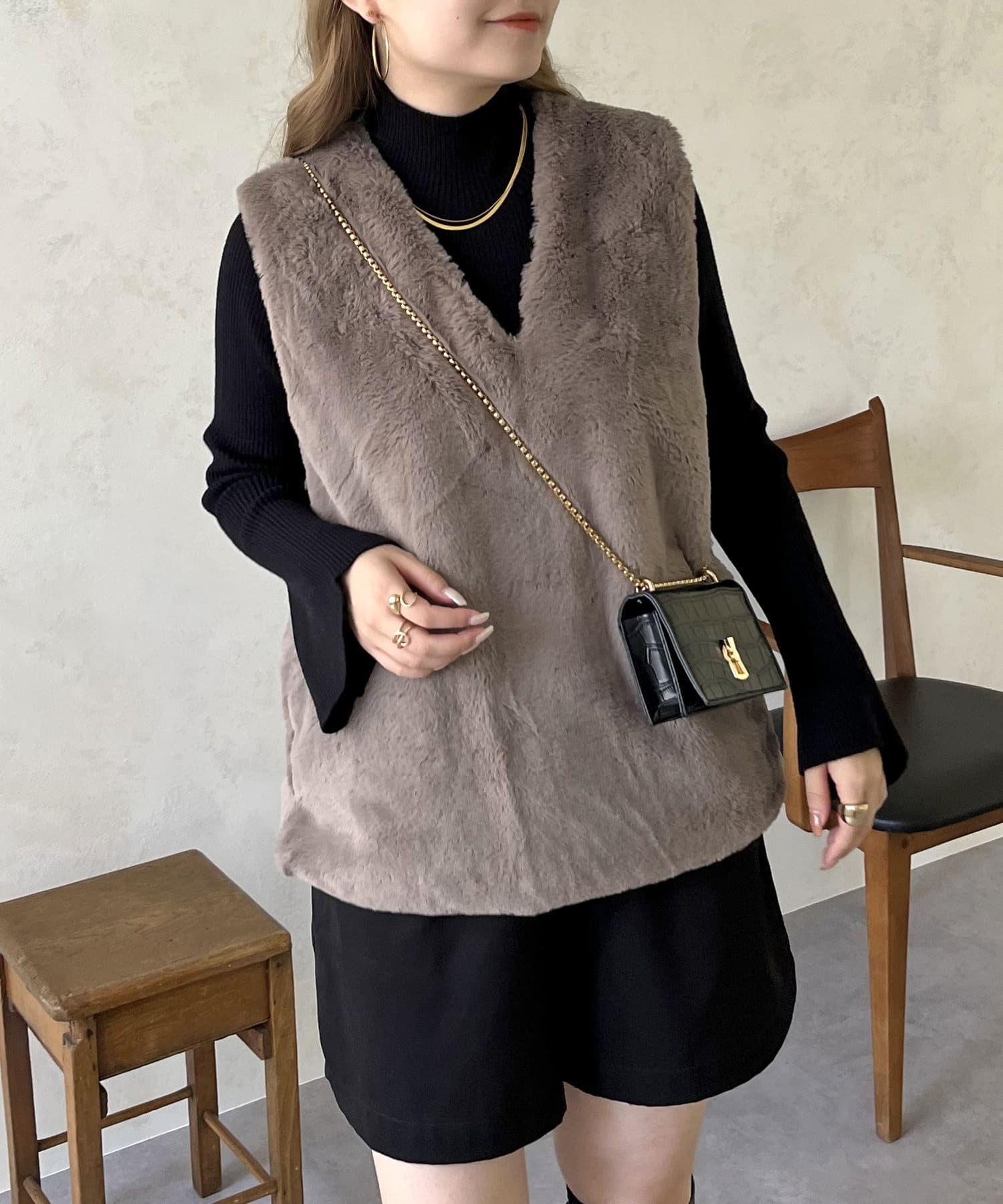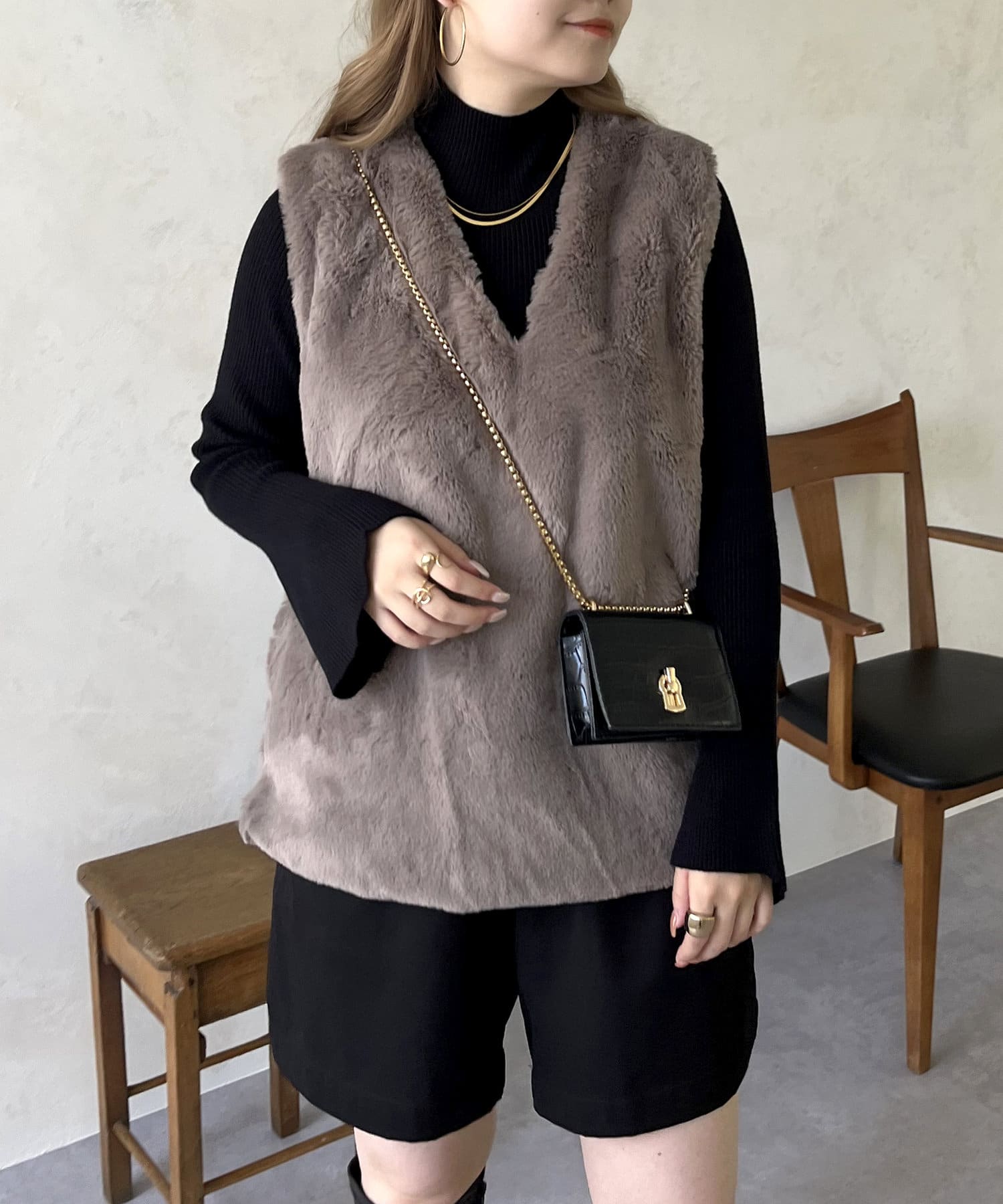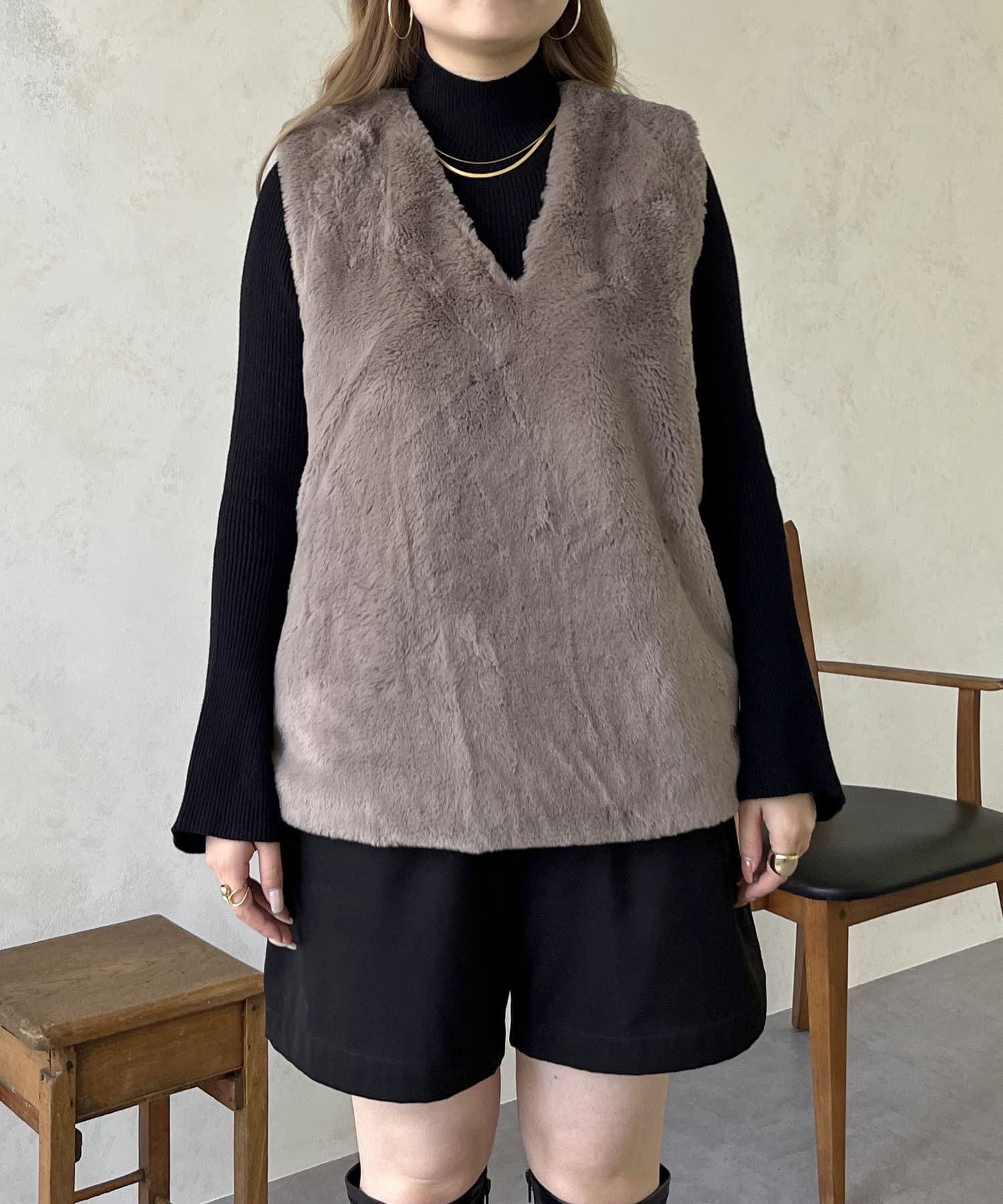ファー/ ファーベスト / フェイクファー / Vネック/大人キレイめカジュアル/