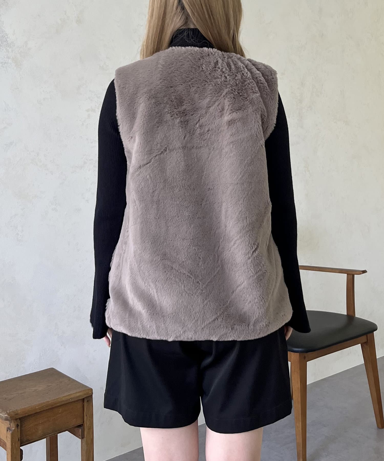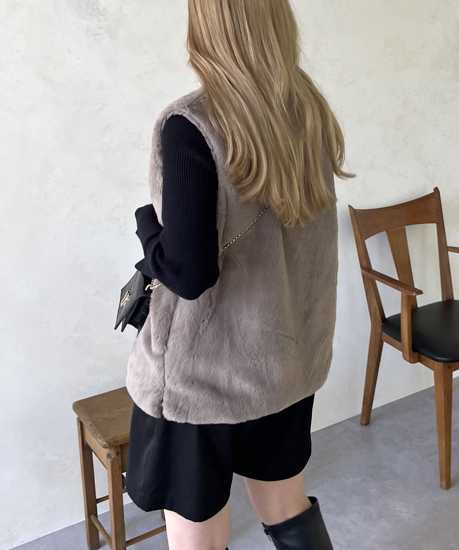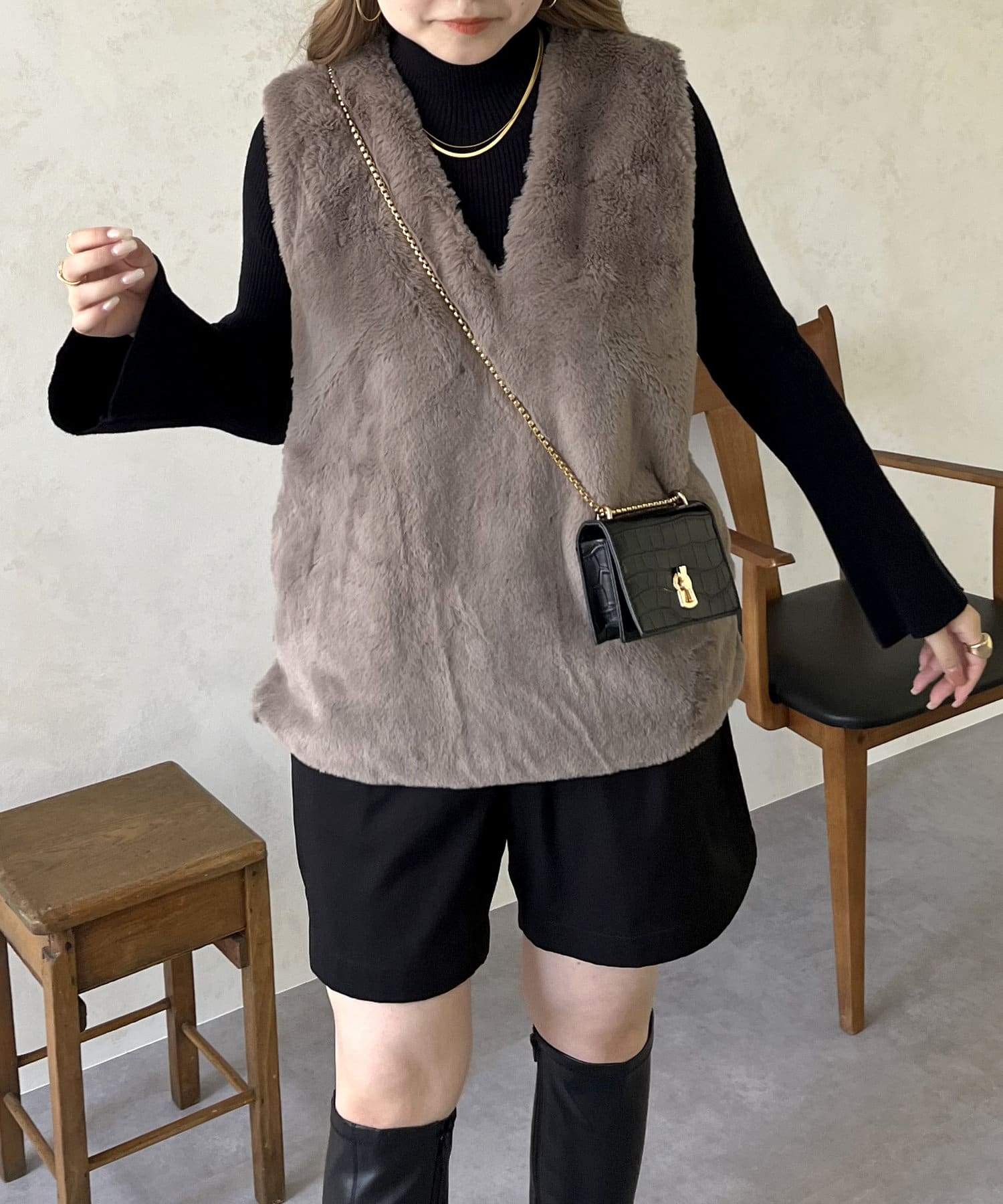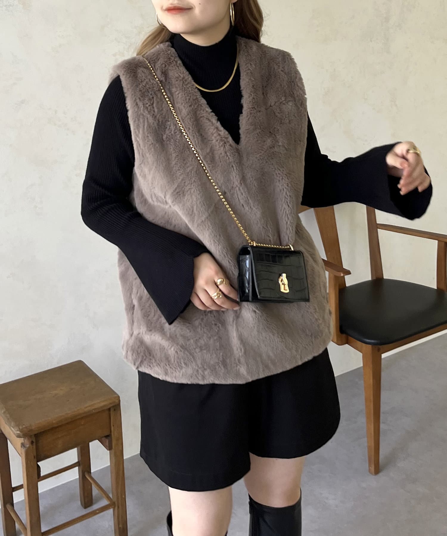 ファー/ ファーベスト / フェイクファー / Vネック/大人キレイめカジュアル/