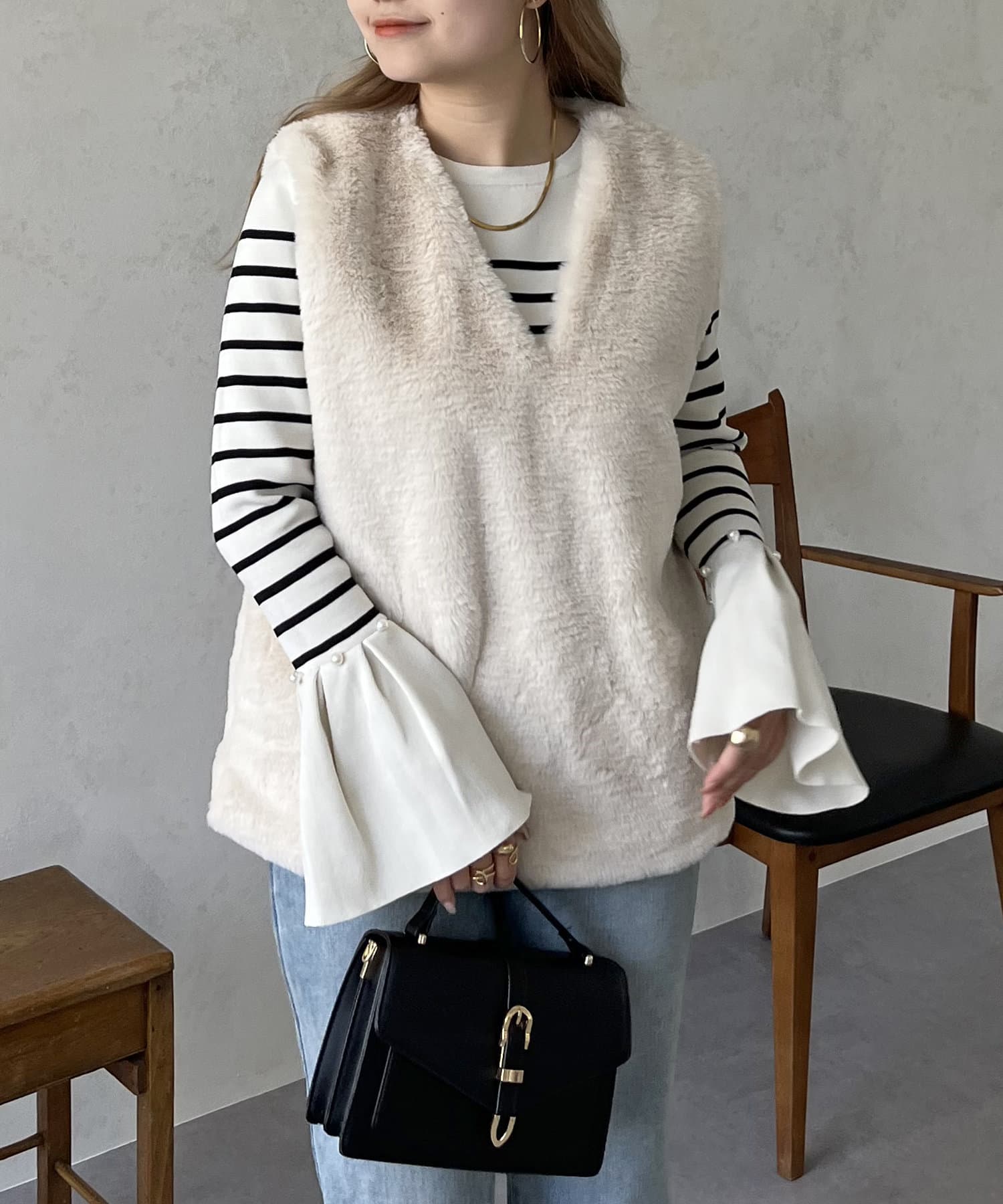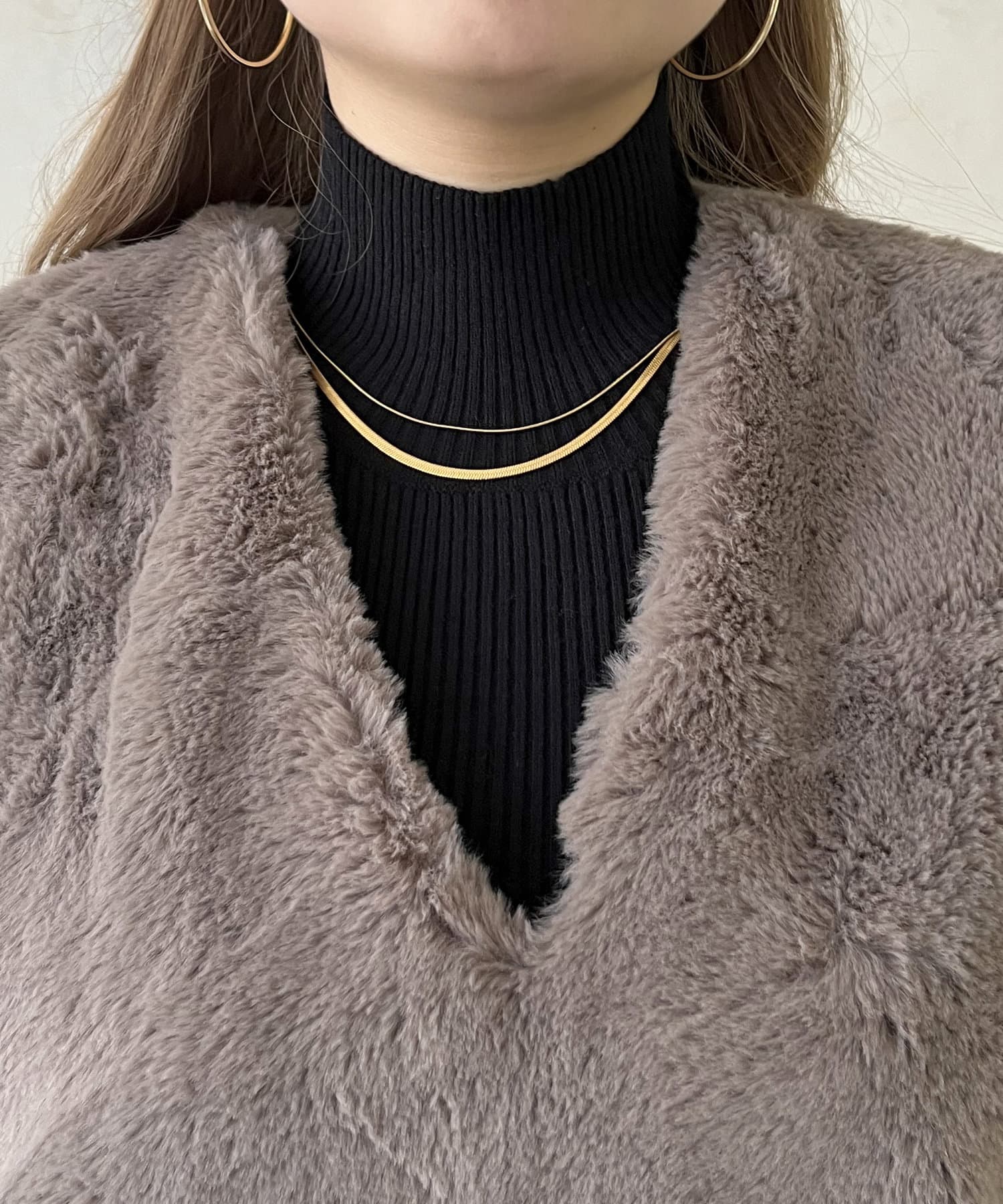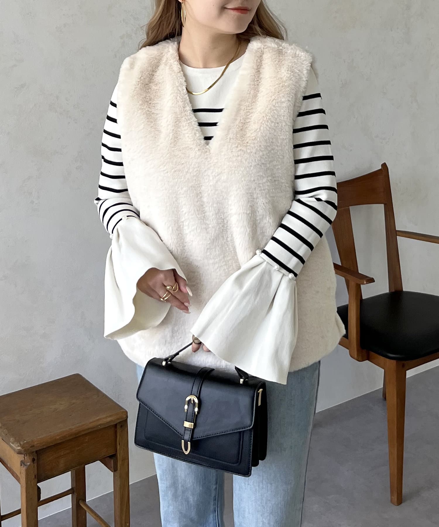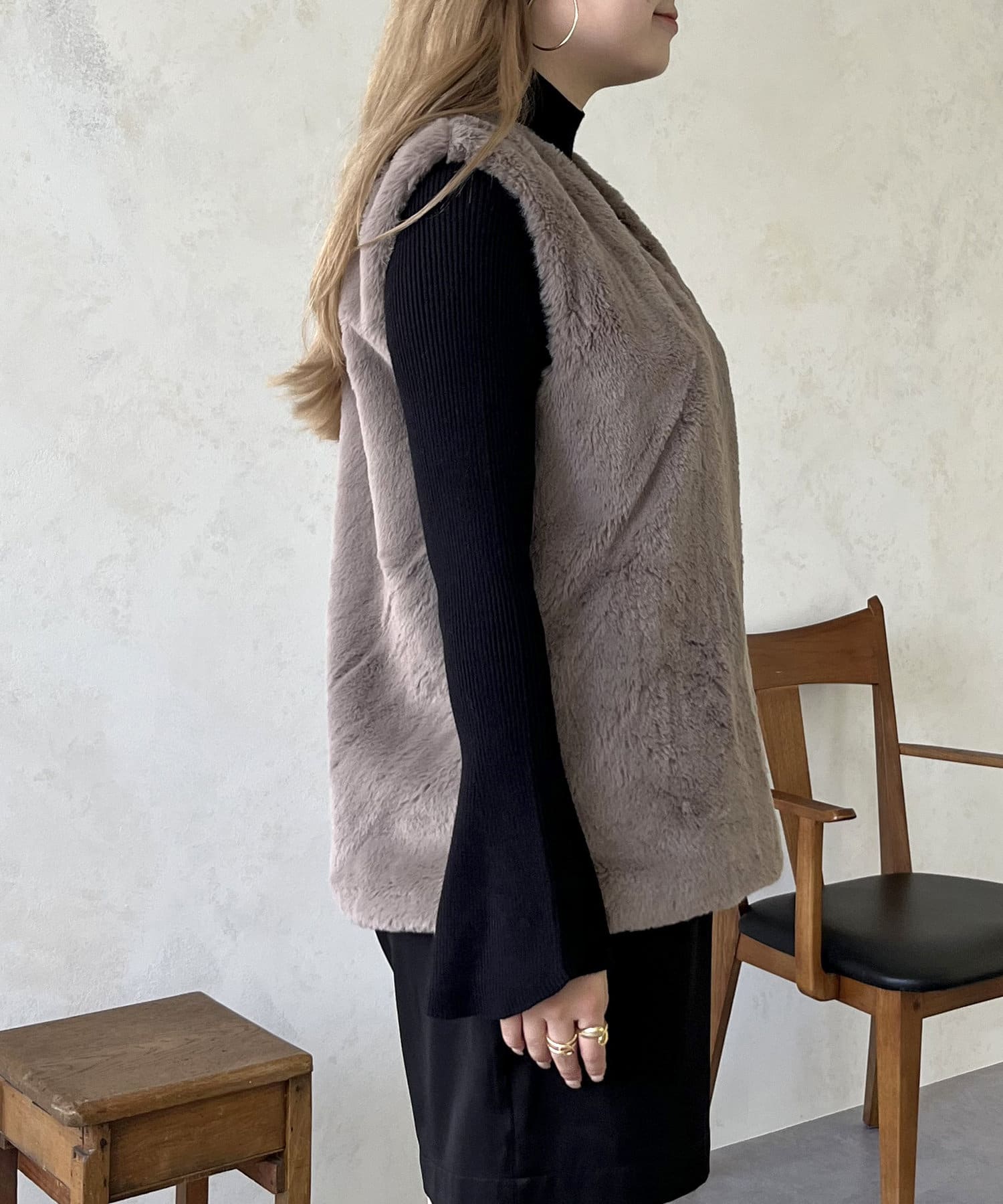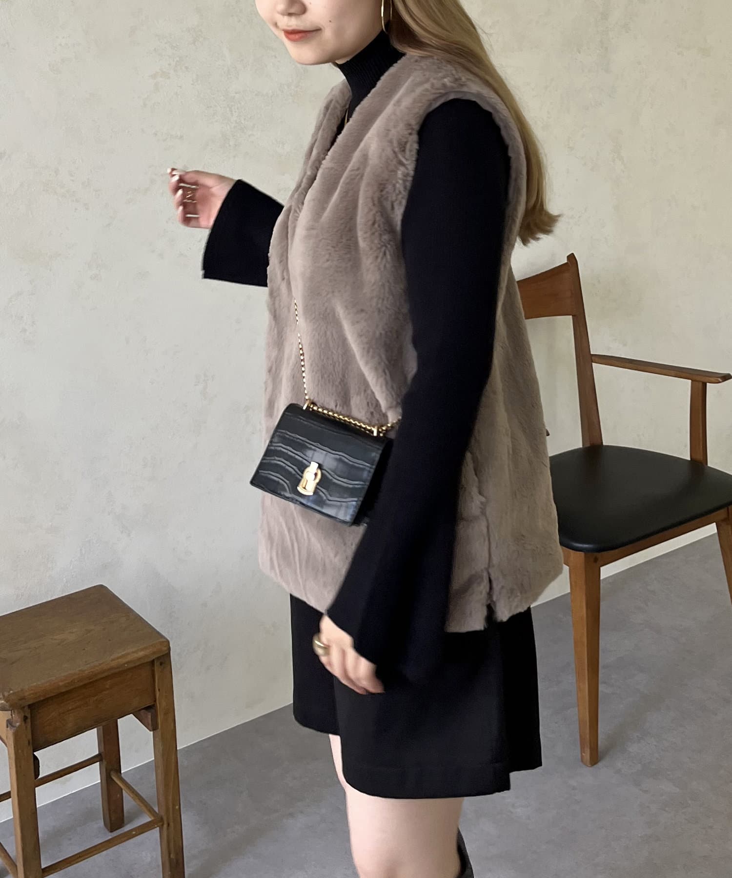 ファー/ ファーベスト / フェイクファー / Vネック/大人キレイめカジュアル/