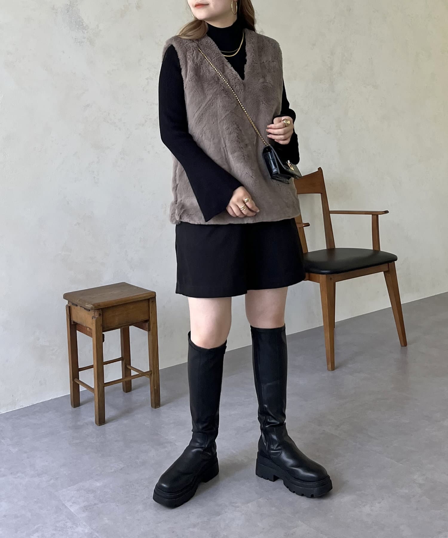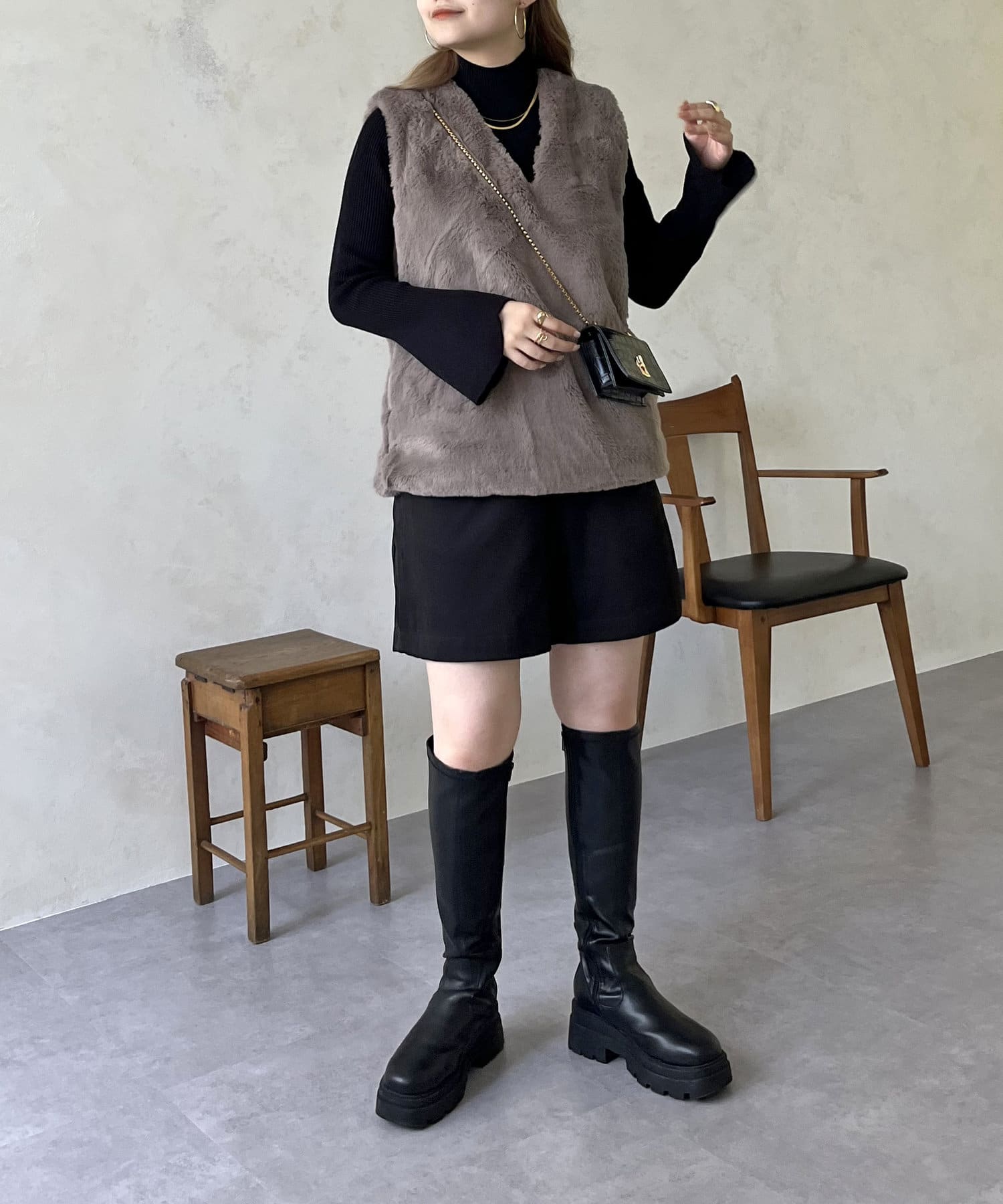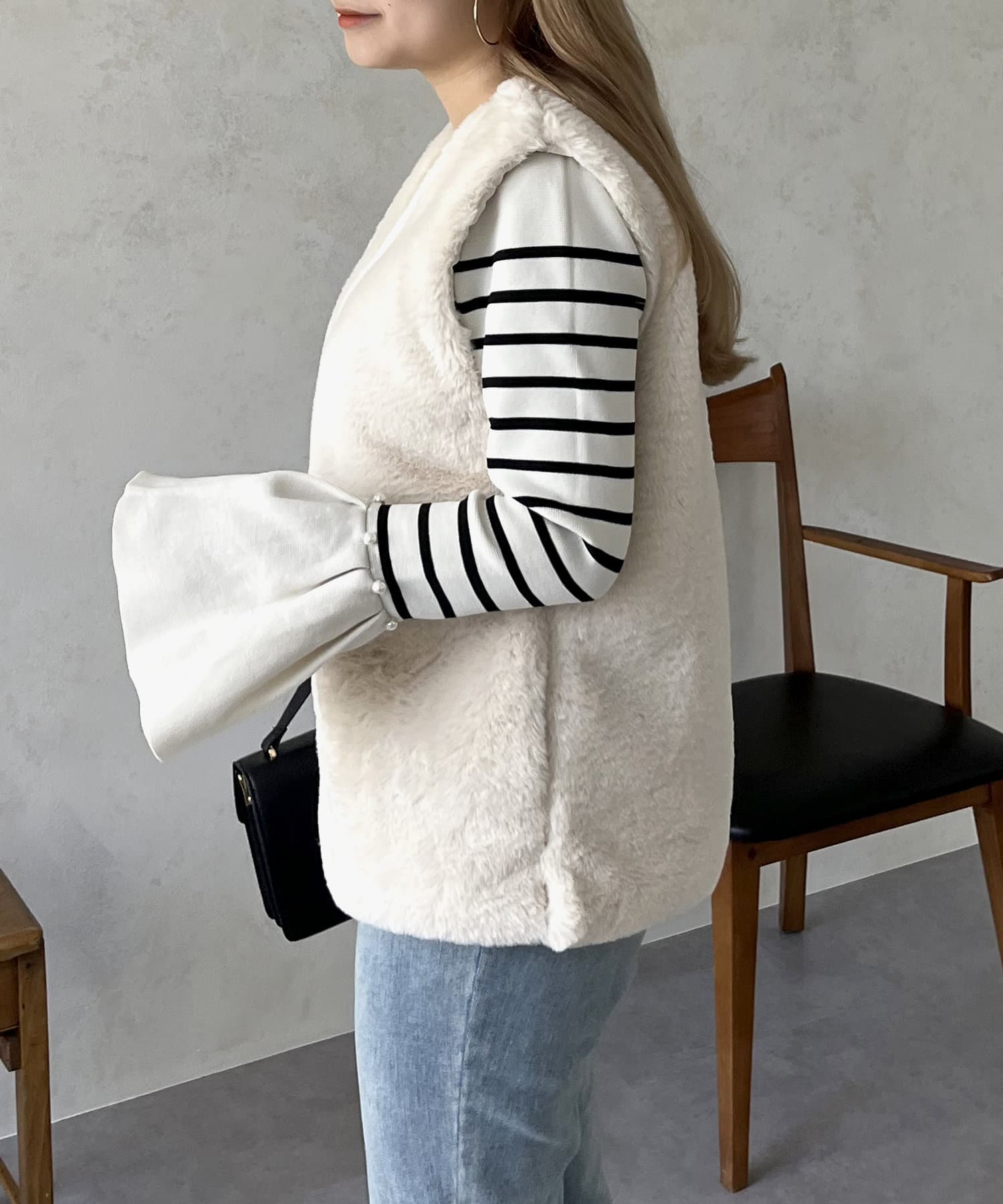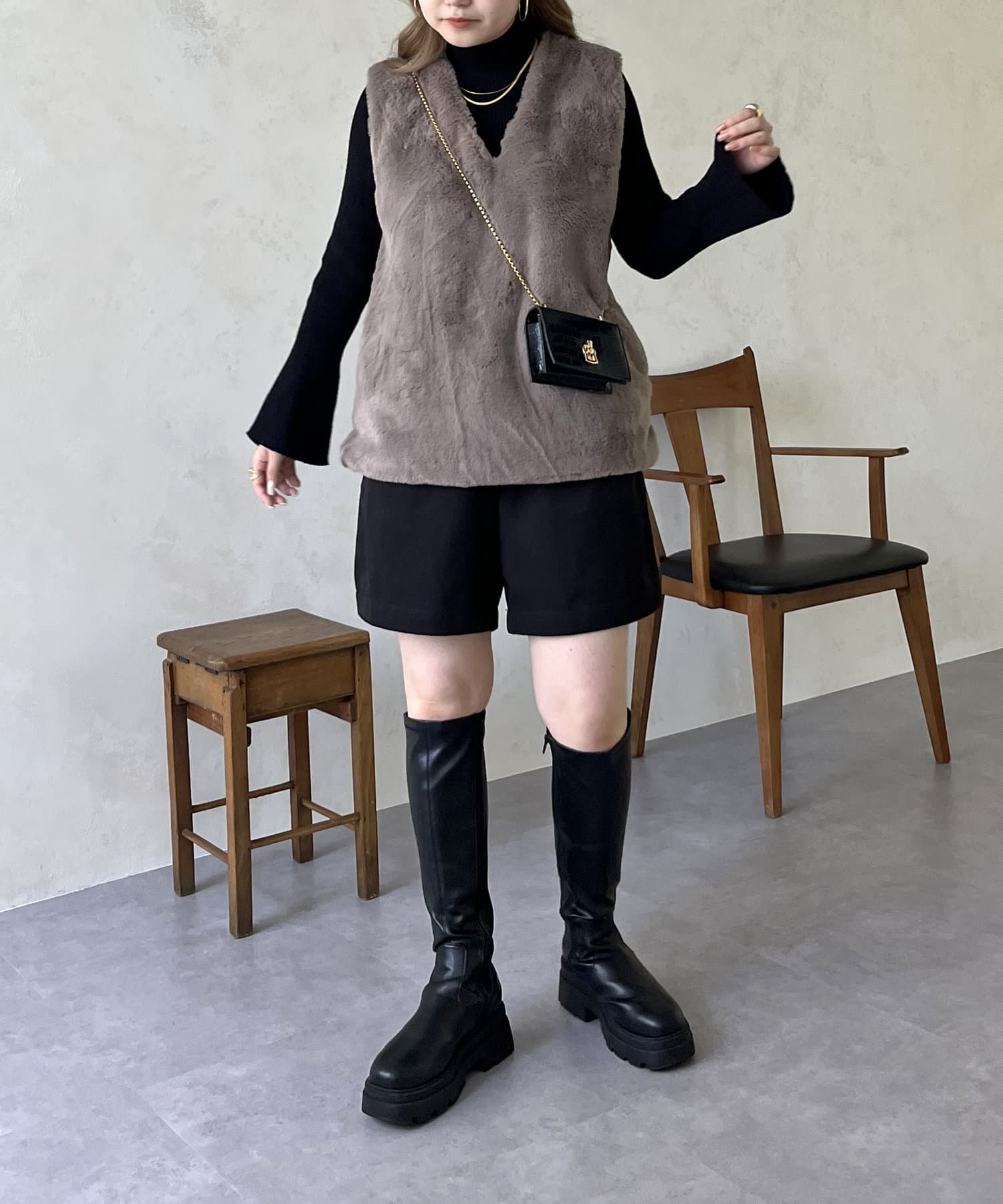 ファー/ ファーベスト / フェイクファー / Vネック/大人キレイめカジュアル/