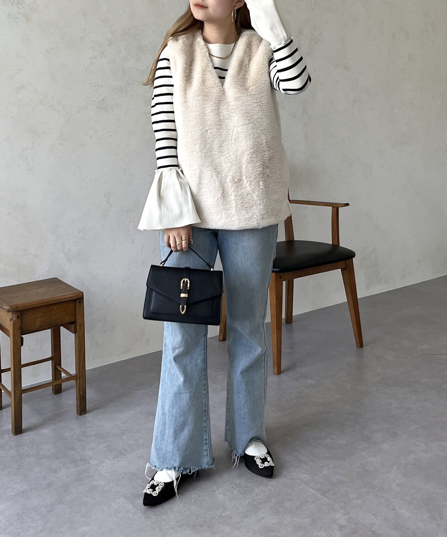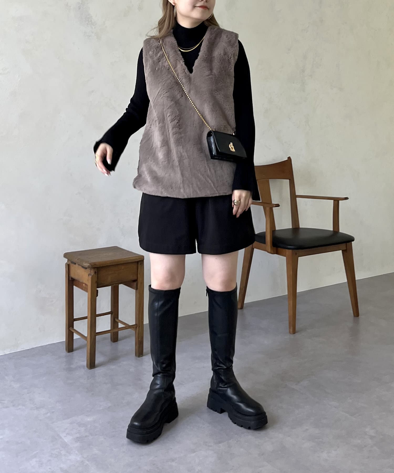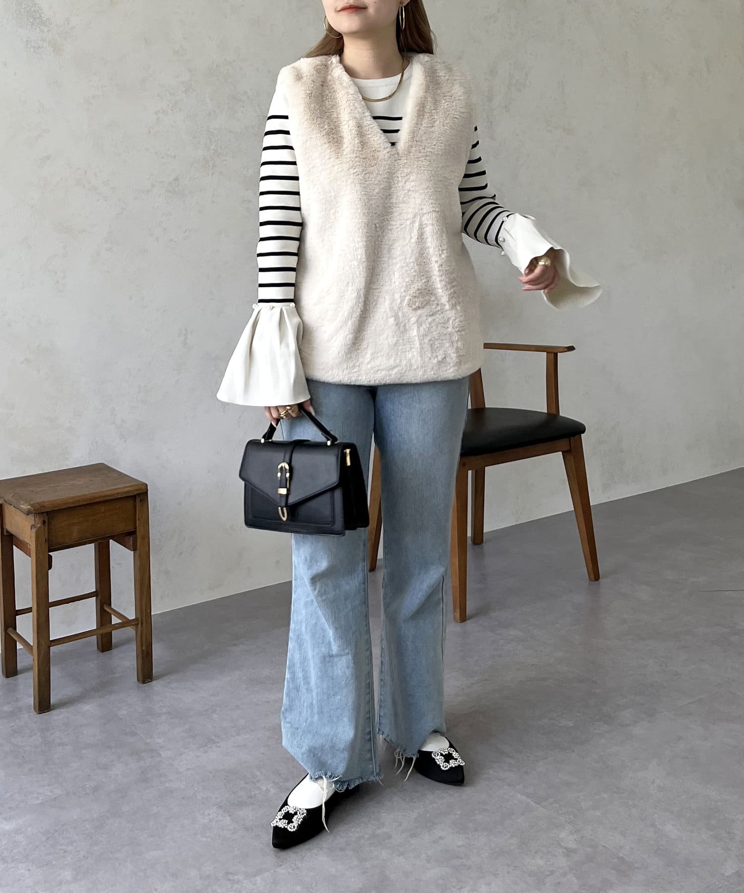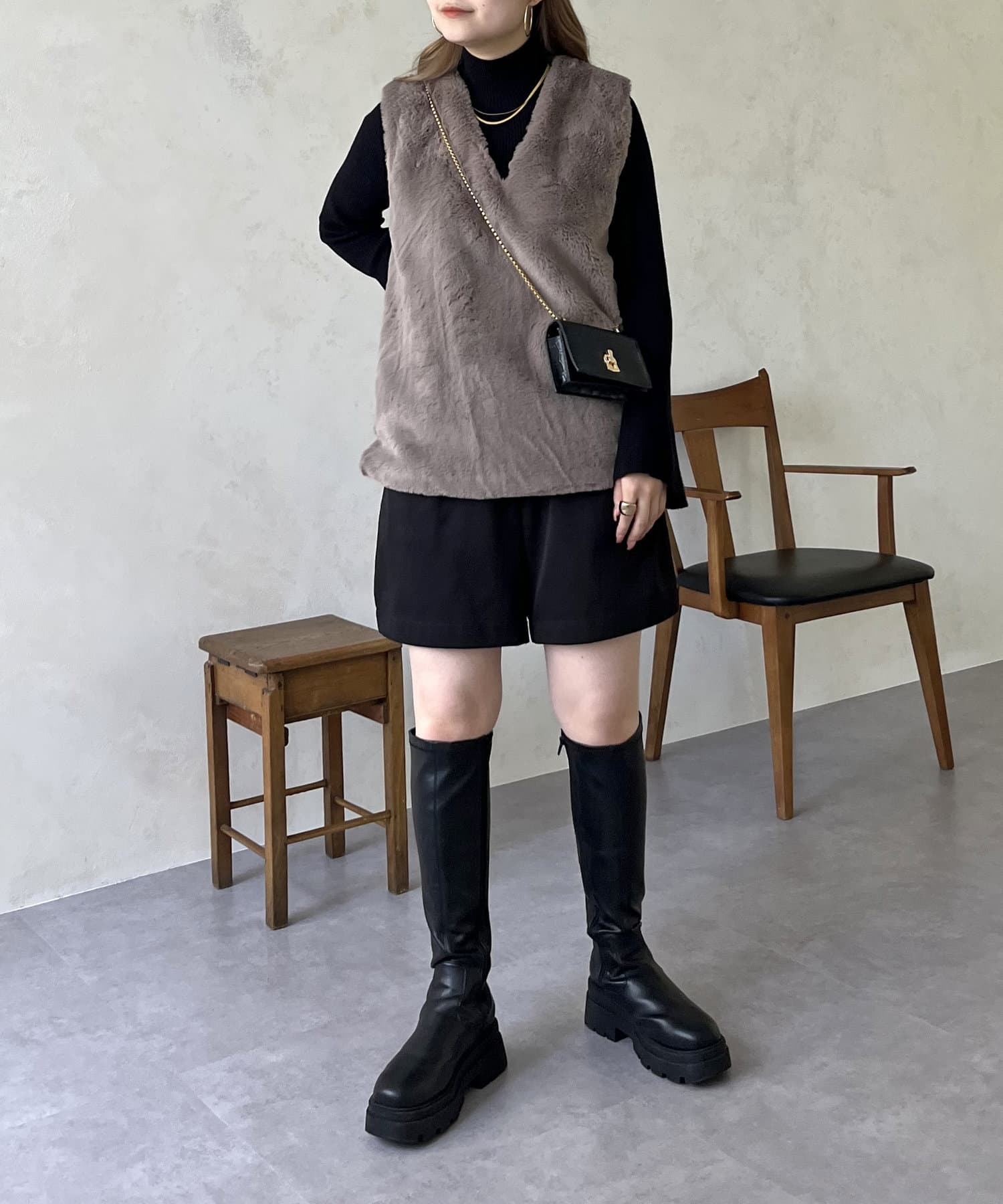 ファー/ ファーベスト / フェイクファー / Vネック/大人キレイめカジュアル/