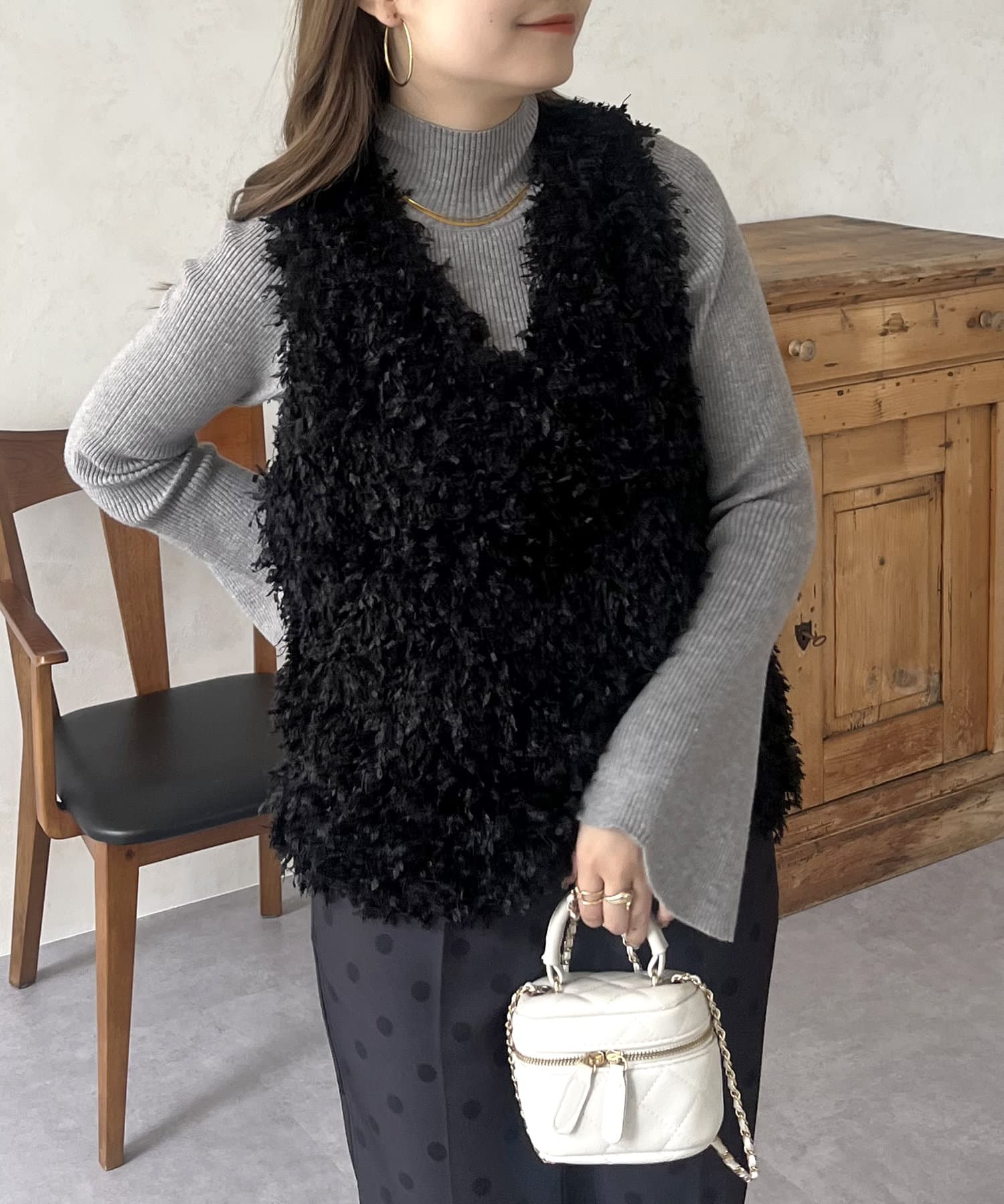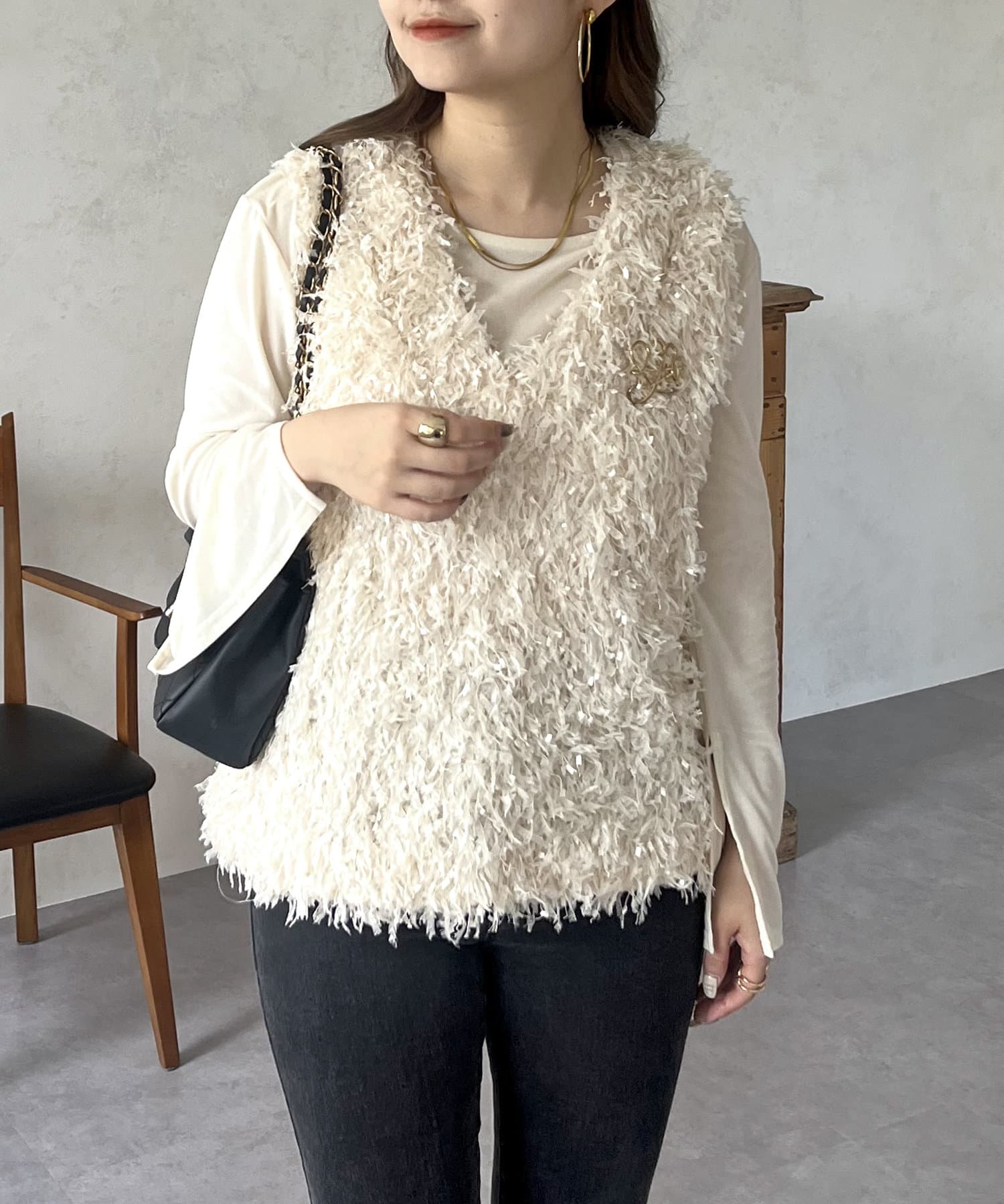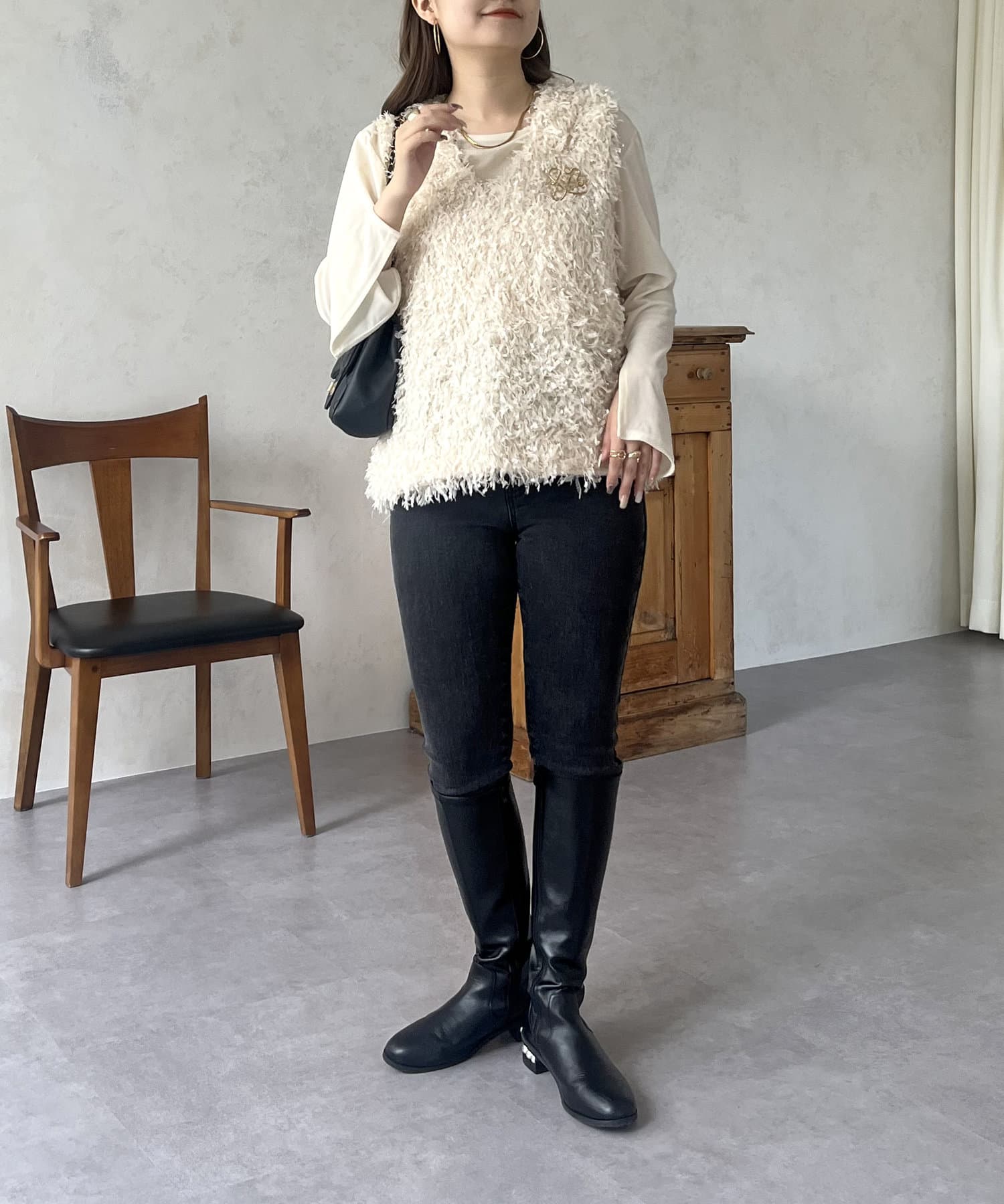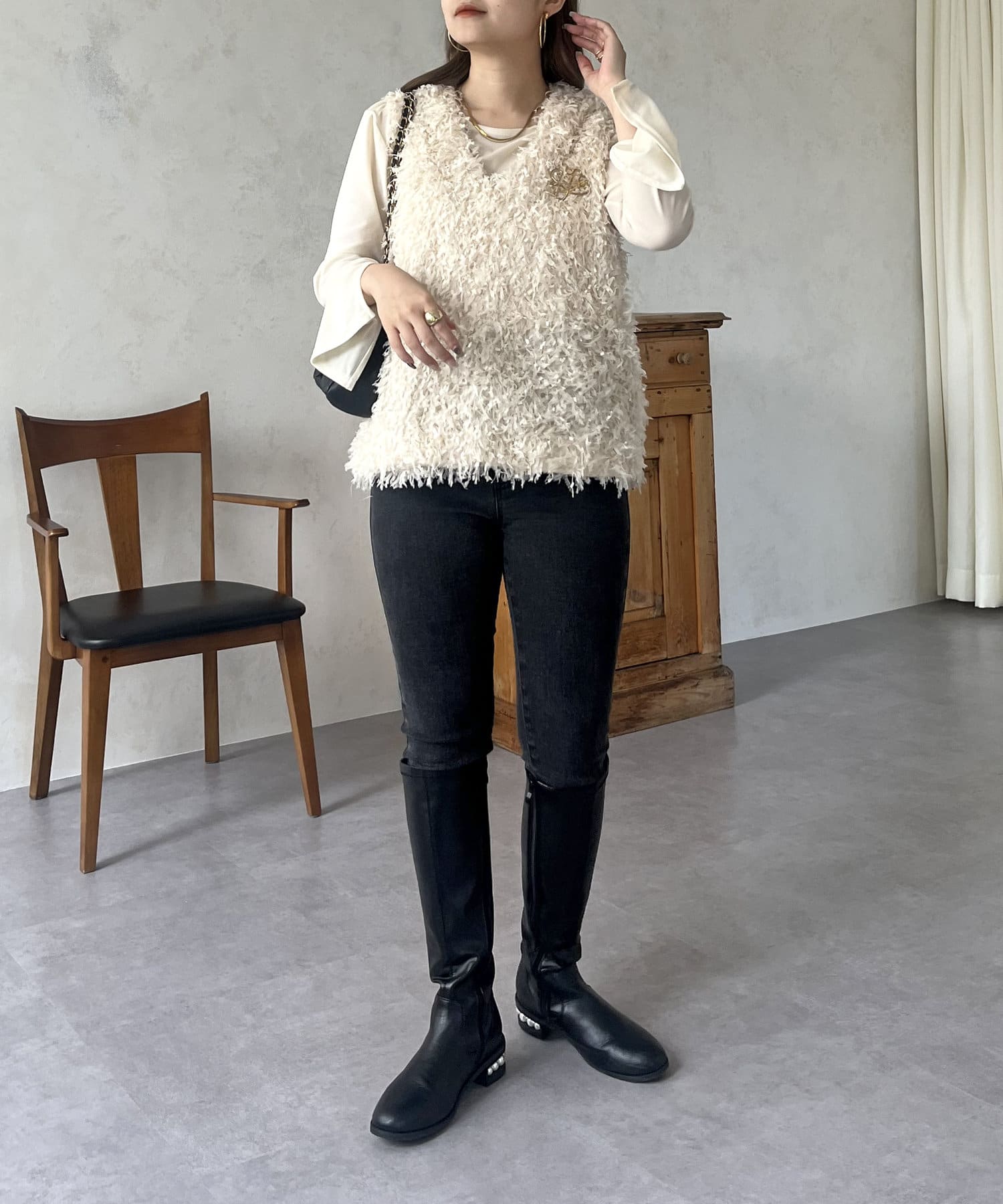 ●深Vネックで詰まったインナーでも顔周りスッキリと見せてくれます