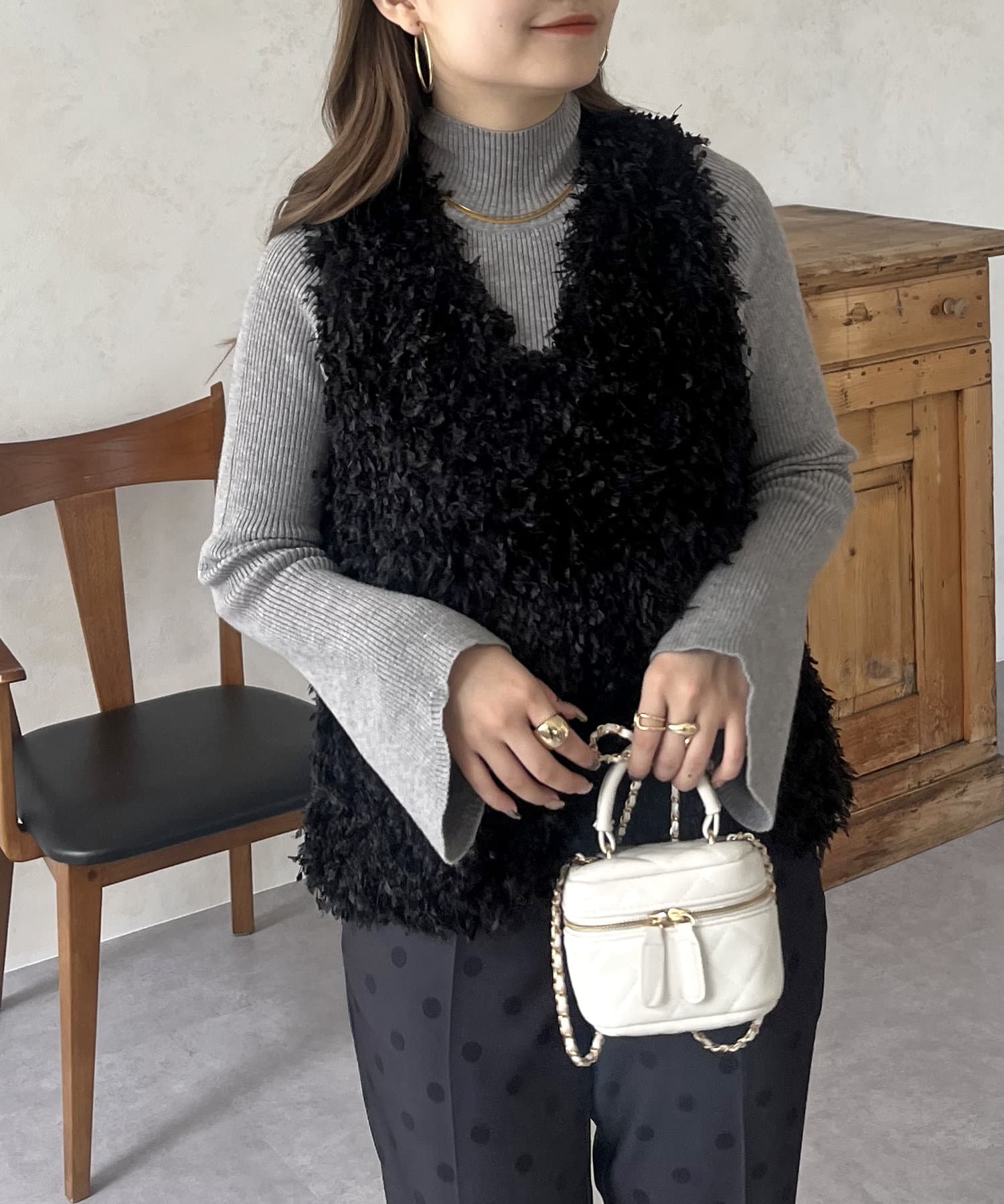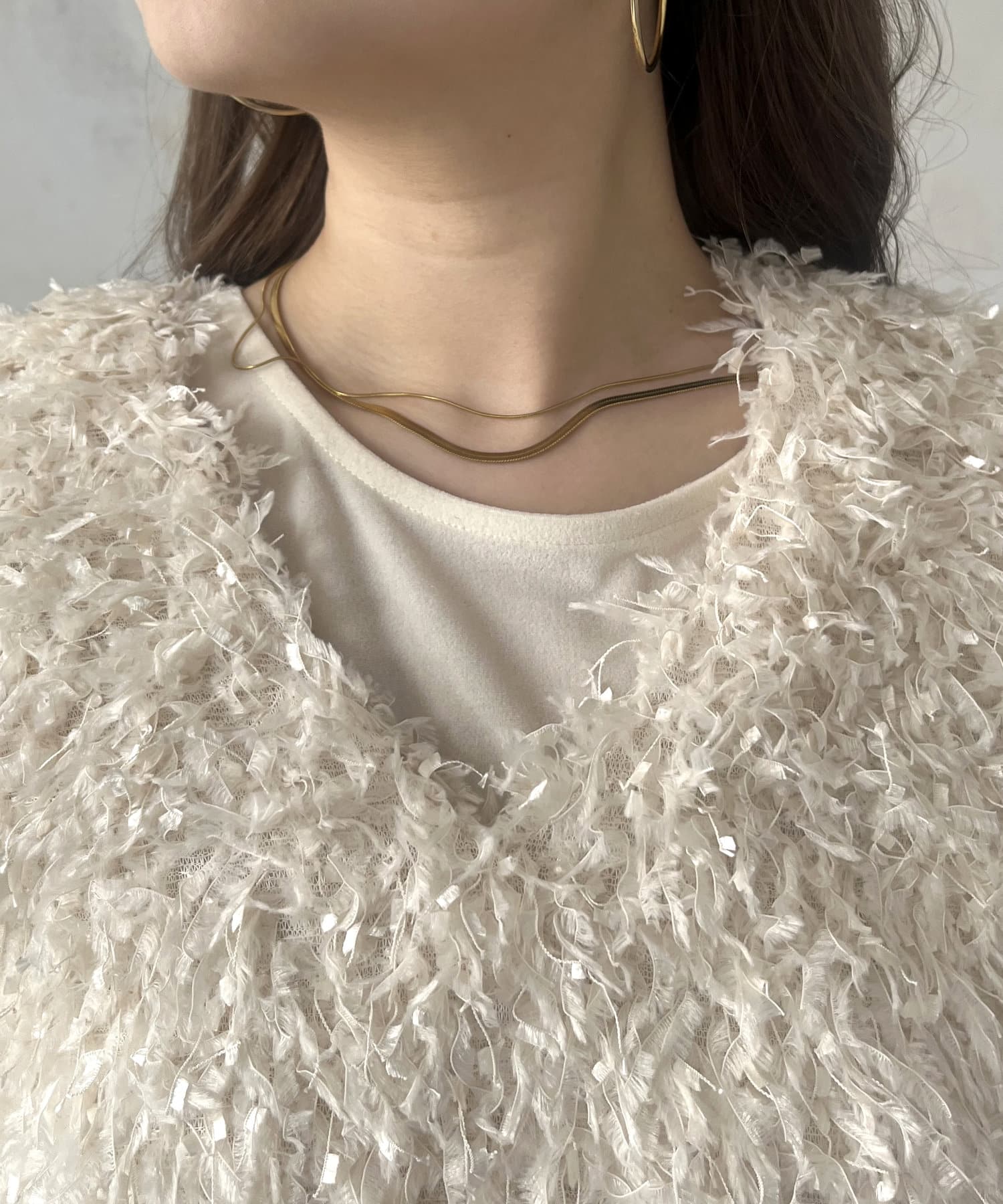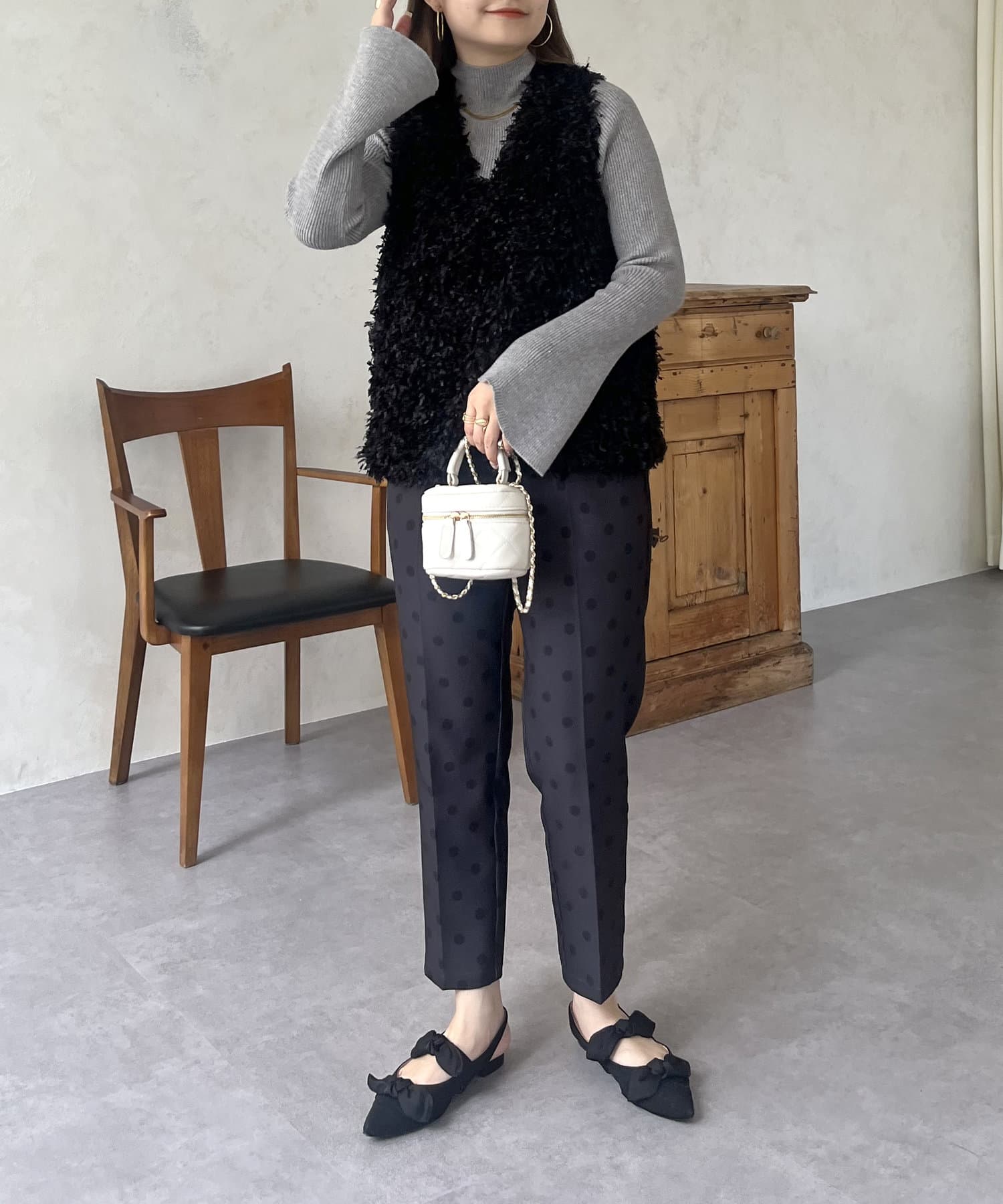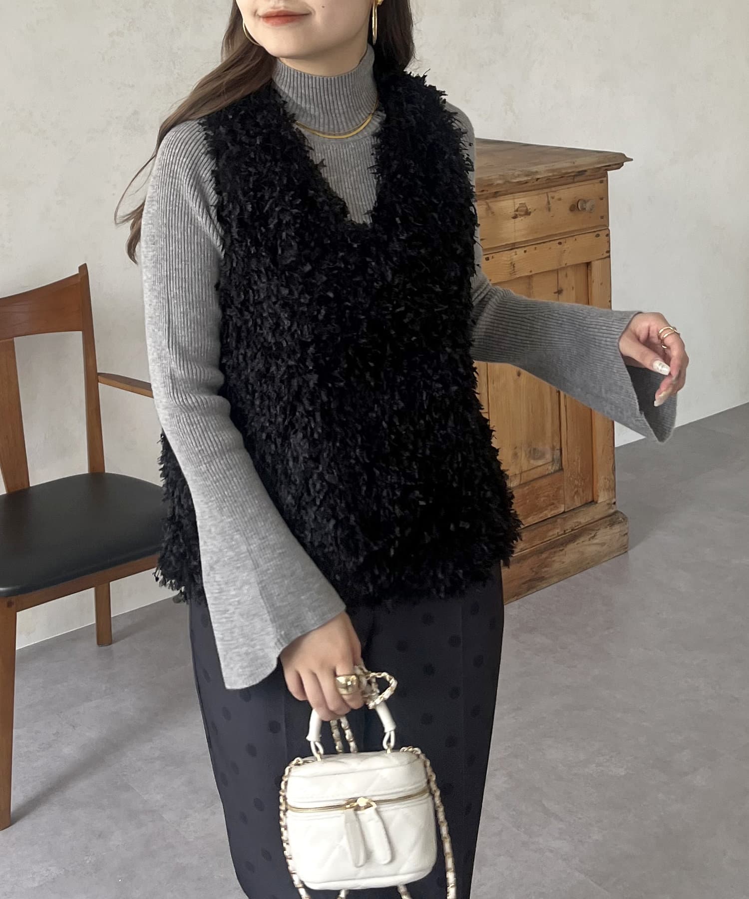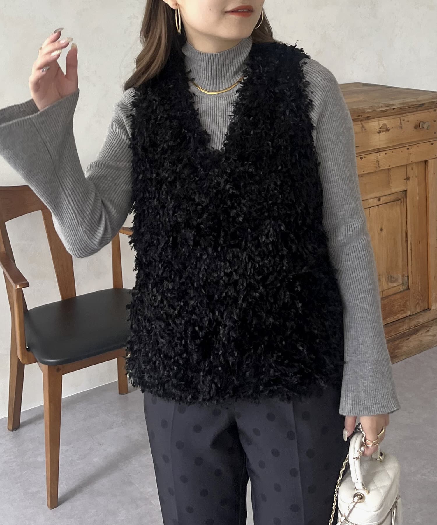 ●深Vネックで詰まったインナーでも顔周りスッキリと見せてくれます