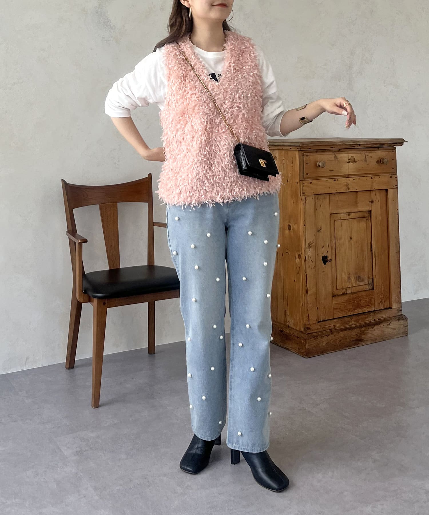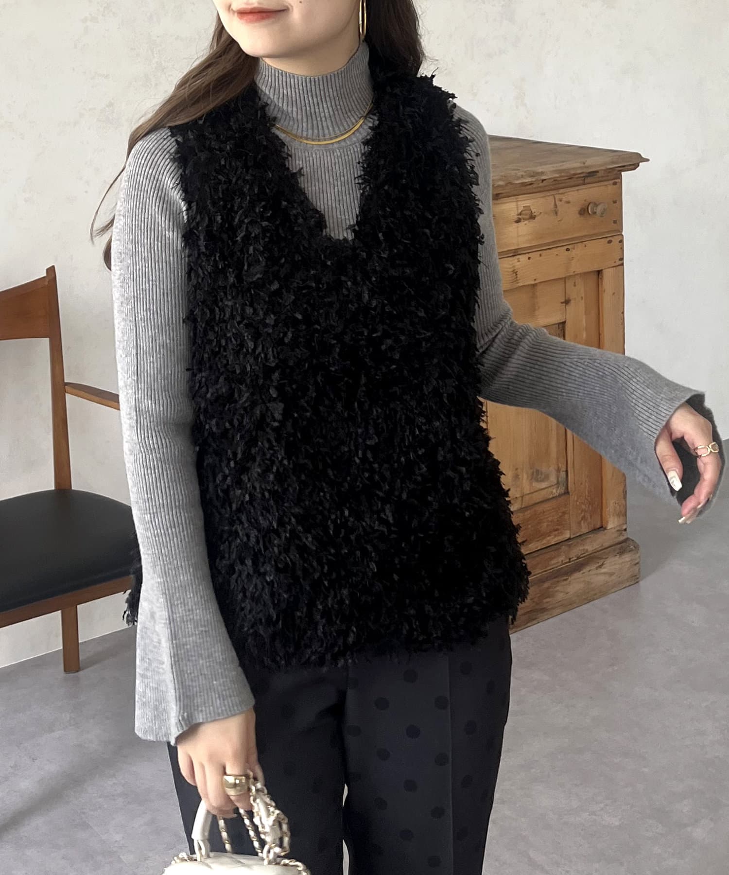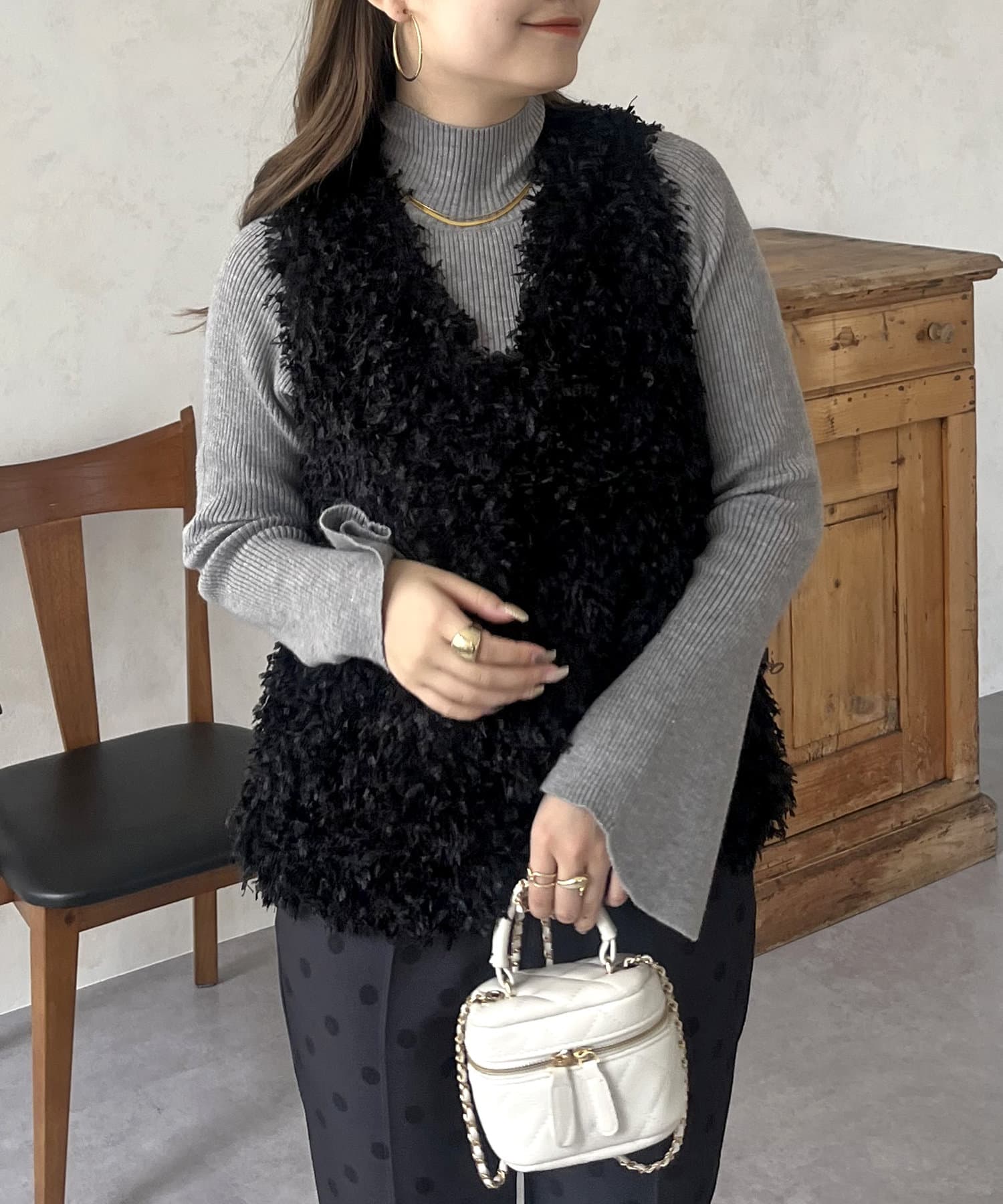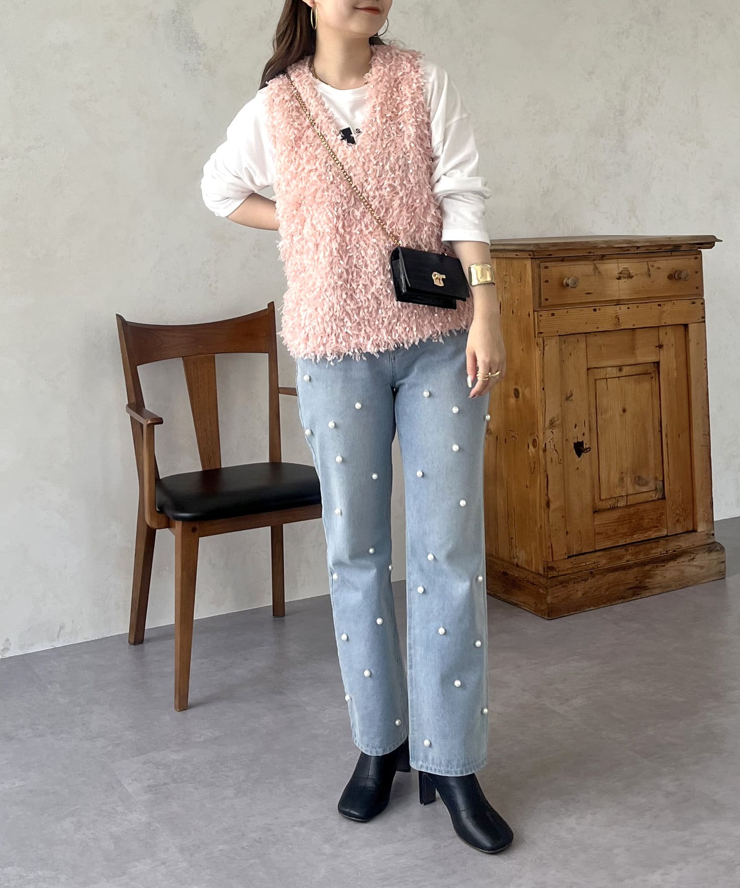 ●深Vネックで詰まったインナーでも顔周りスッキリと見せてくれます