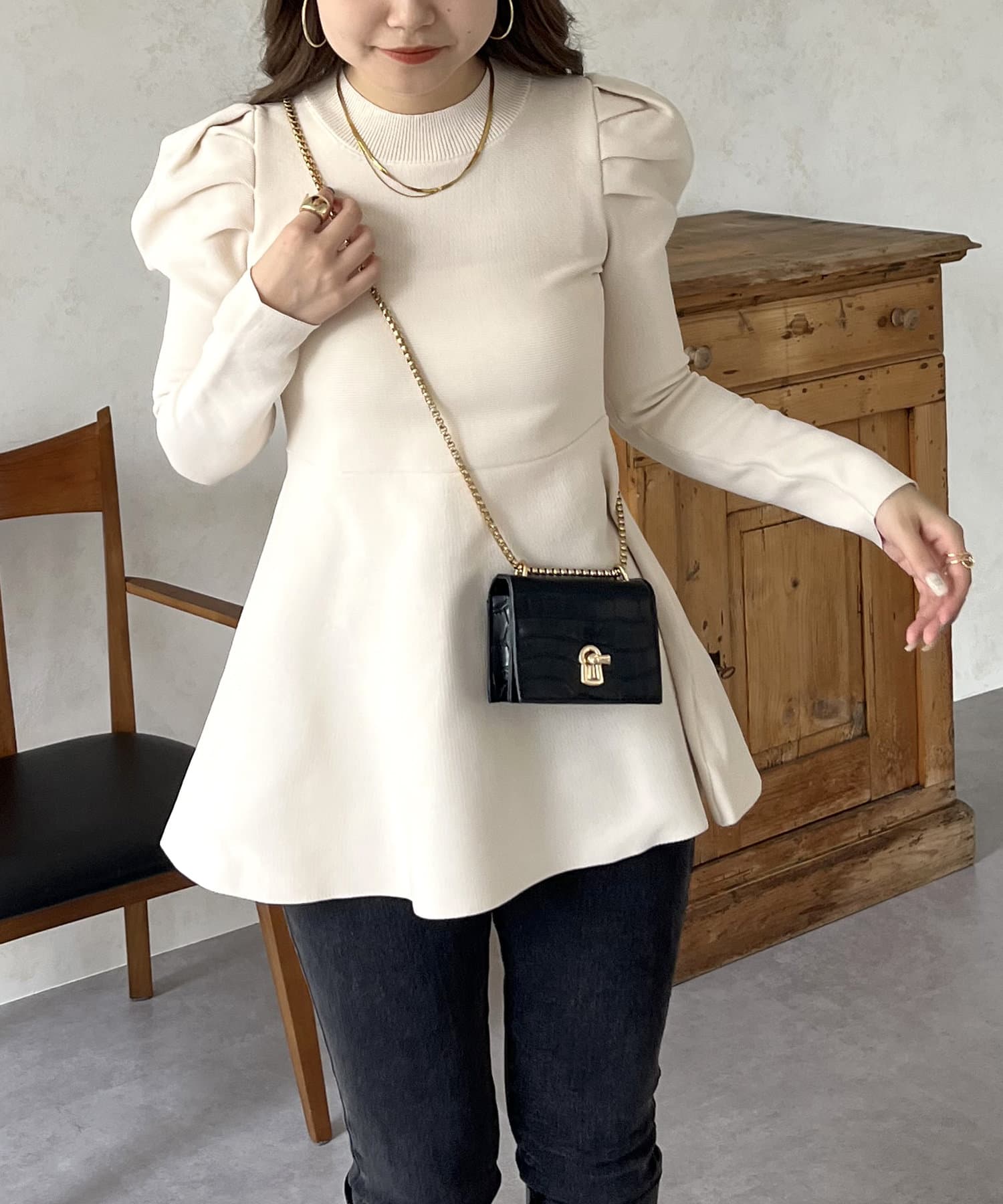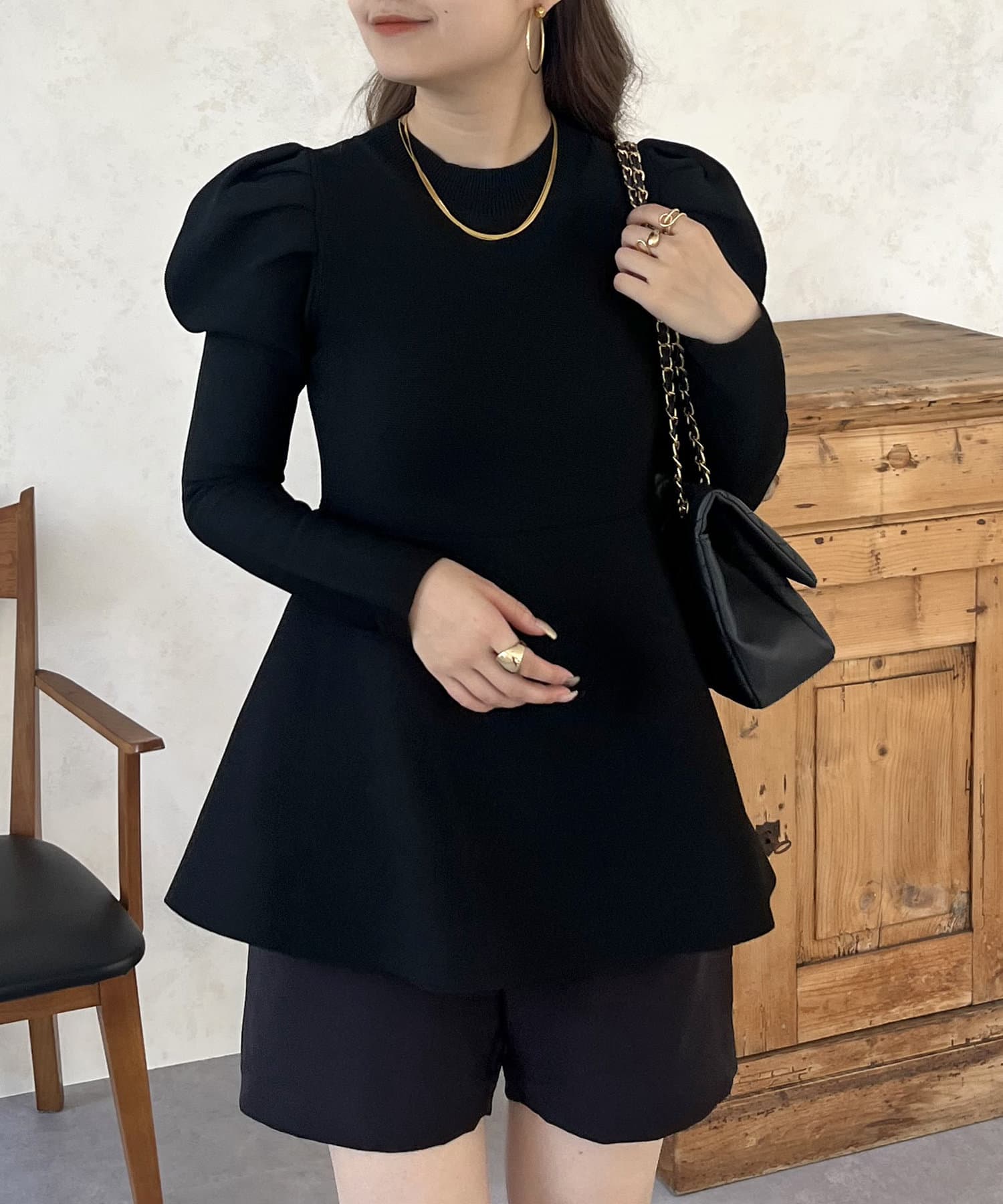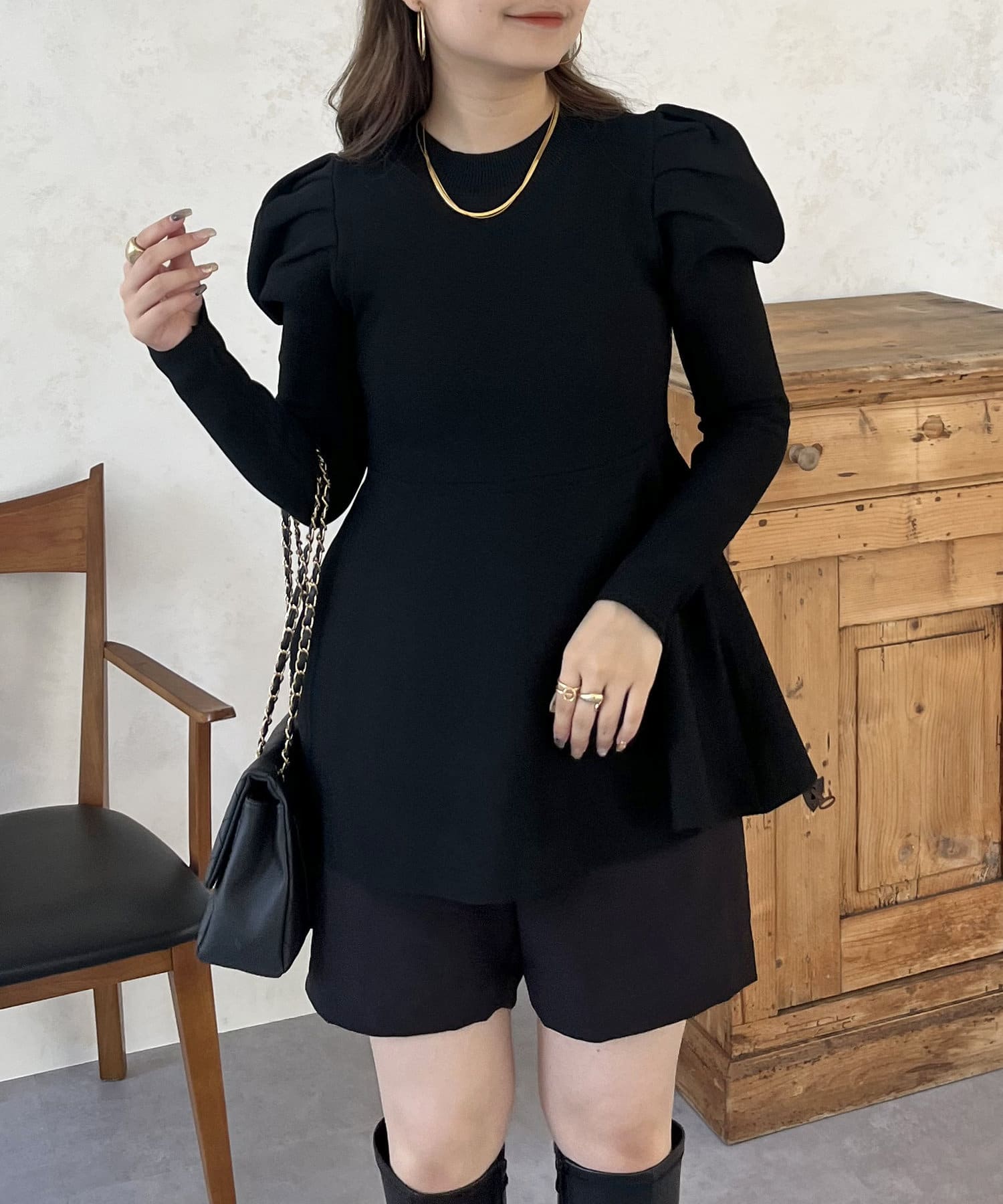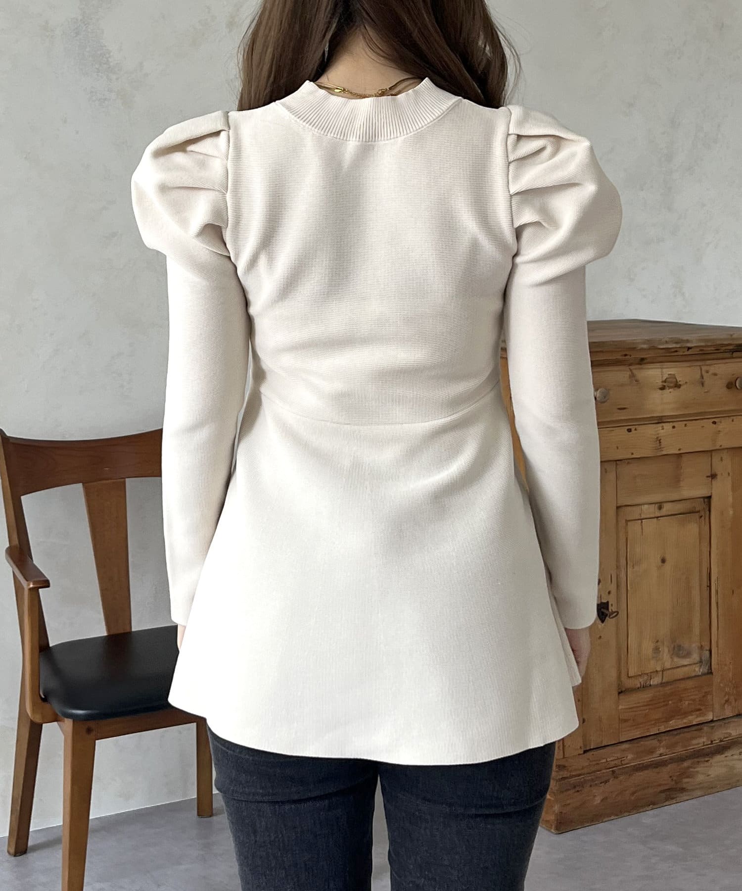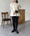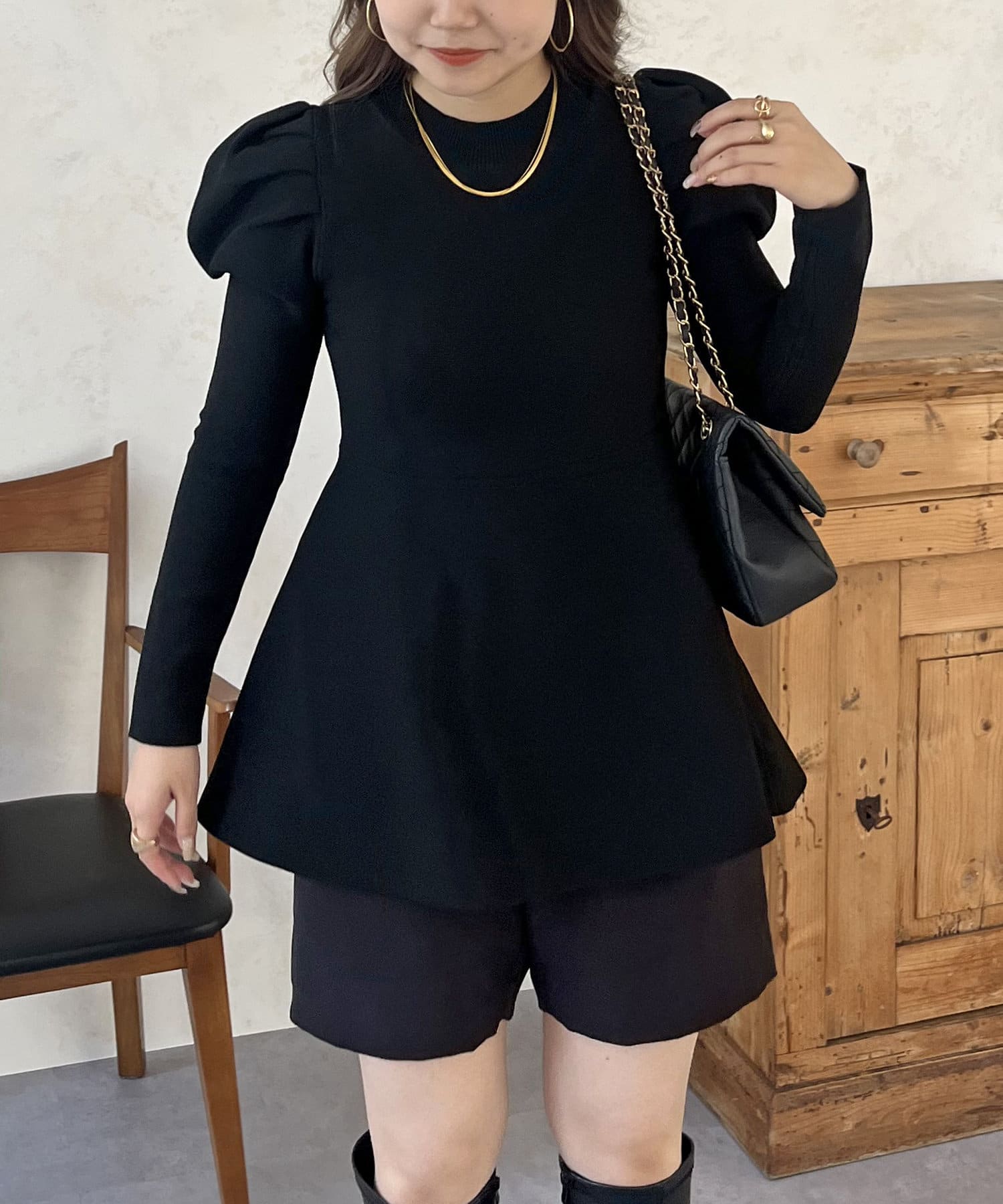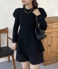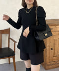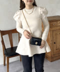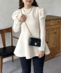 パフスリーブペプラムニット