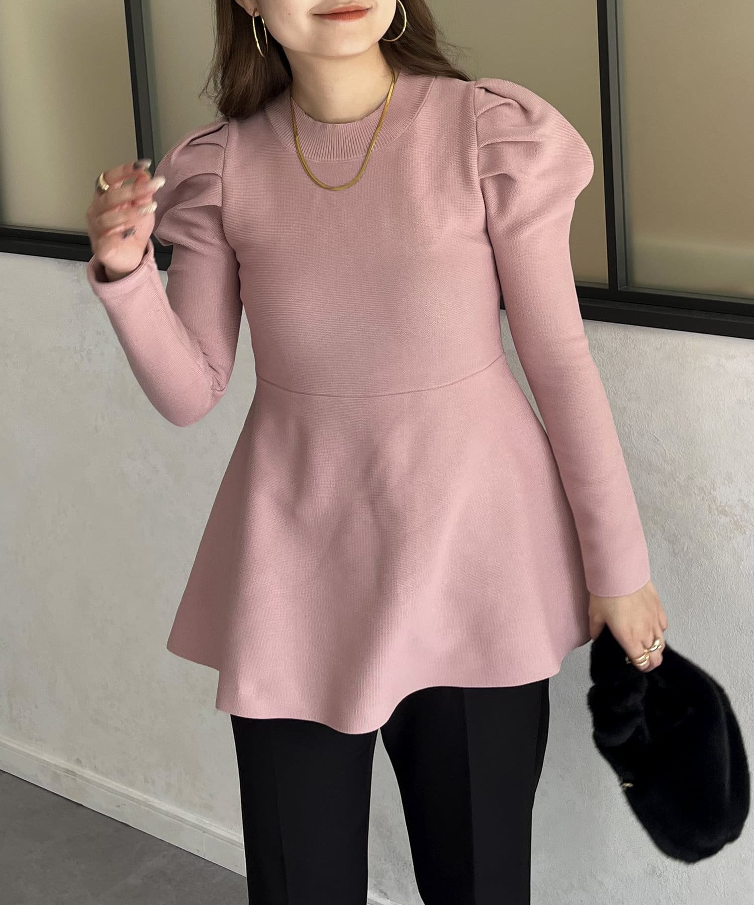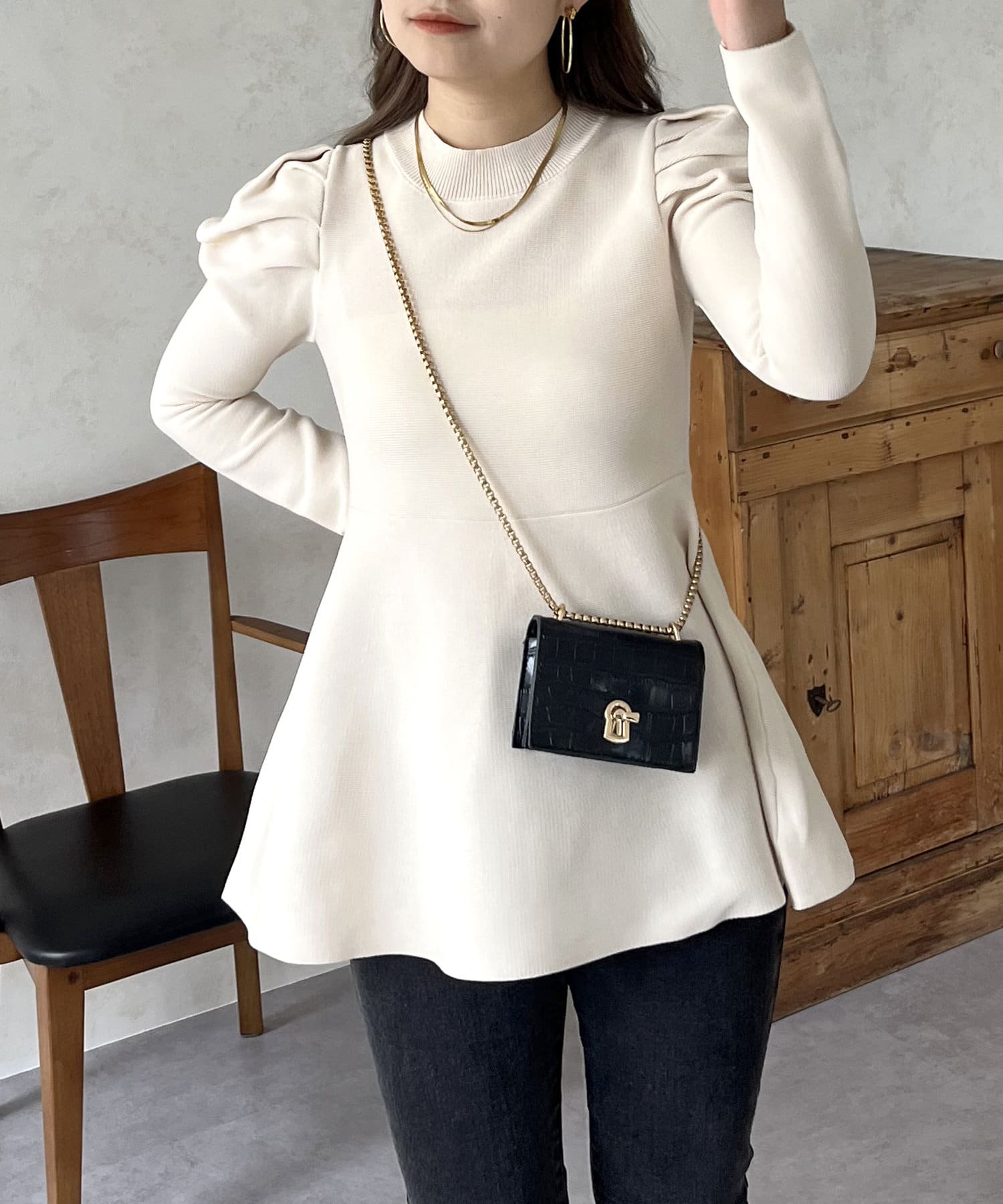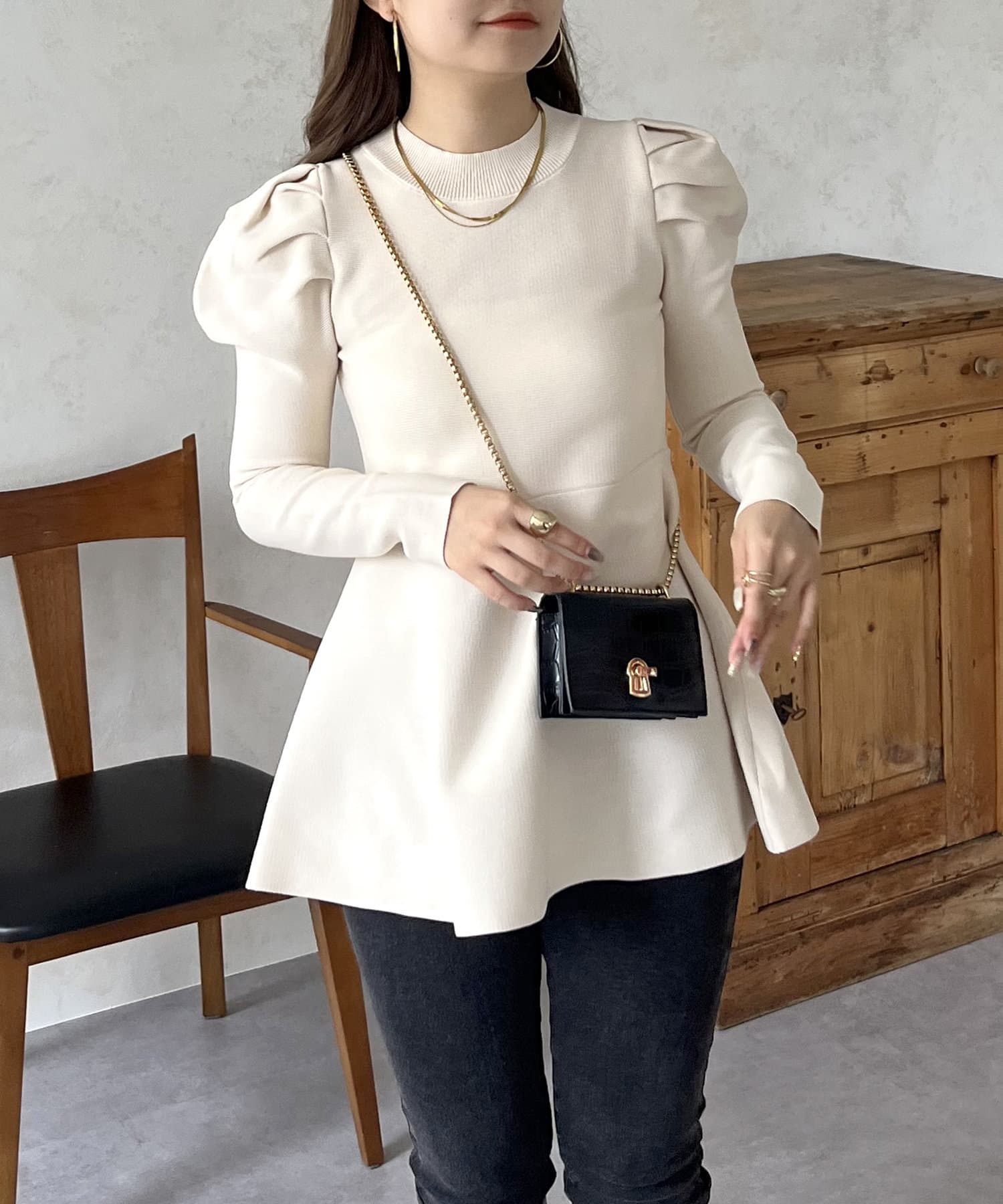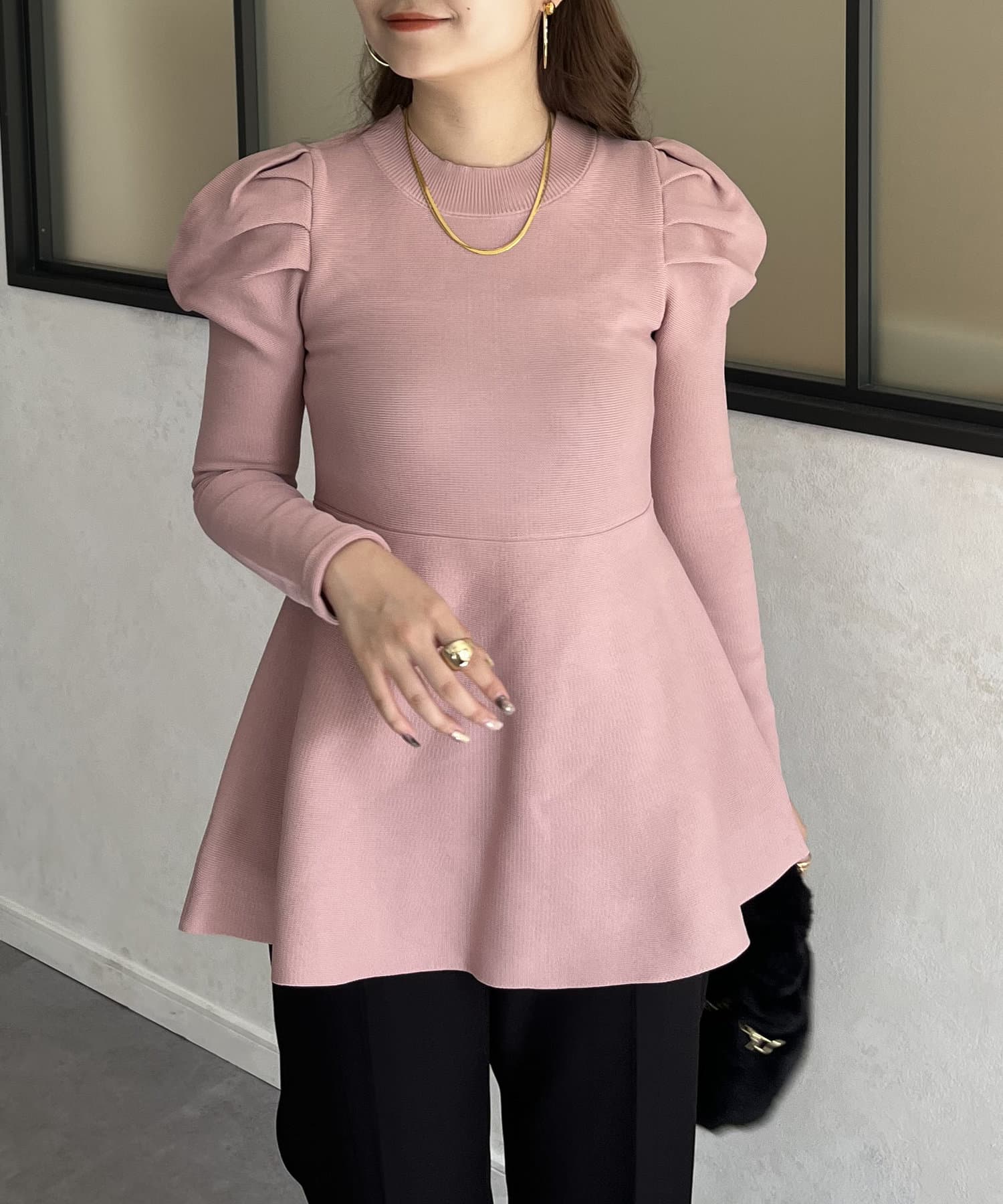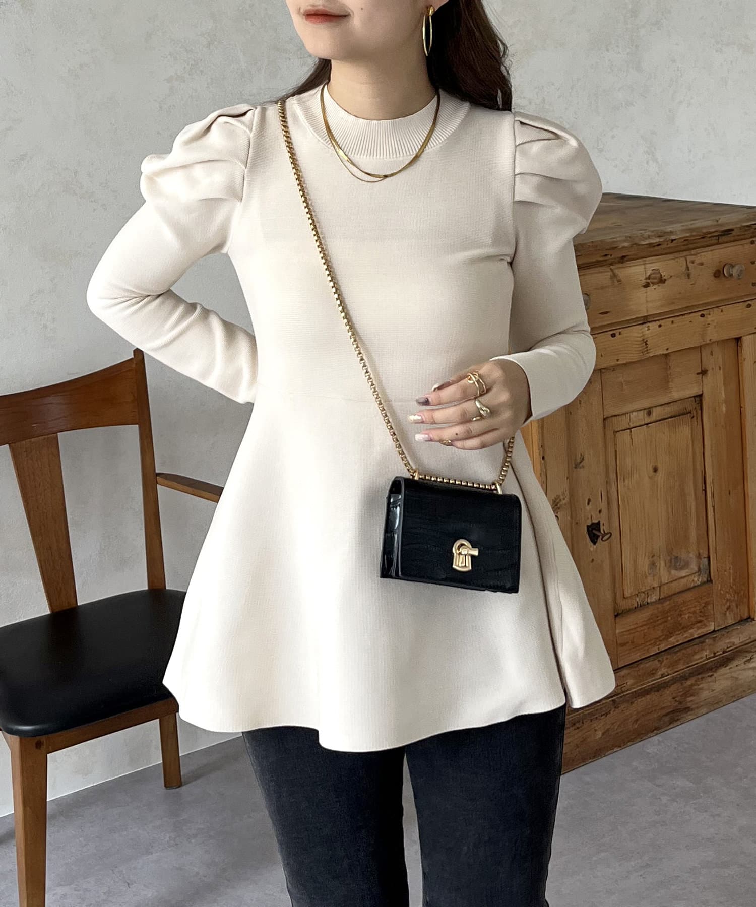 パフスリーブペプラムニット