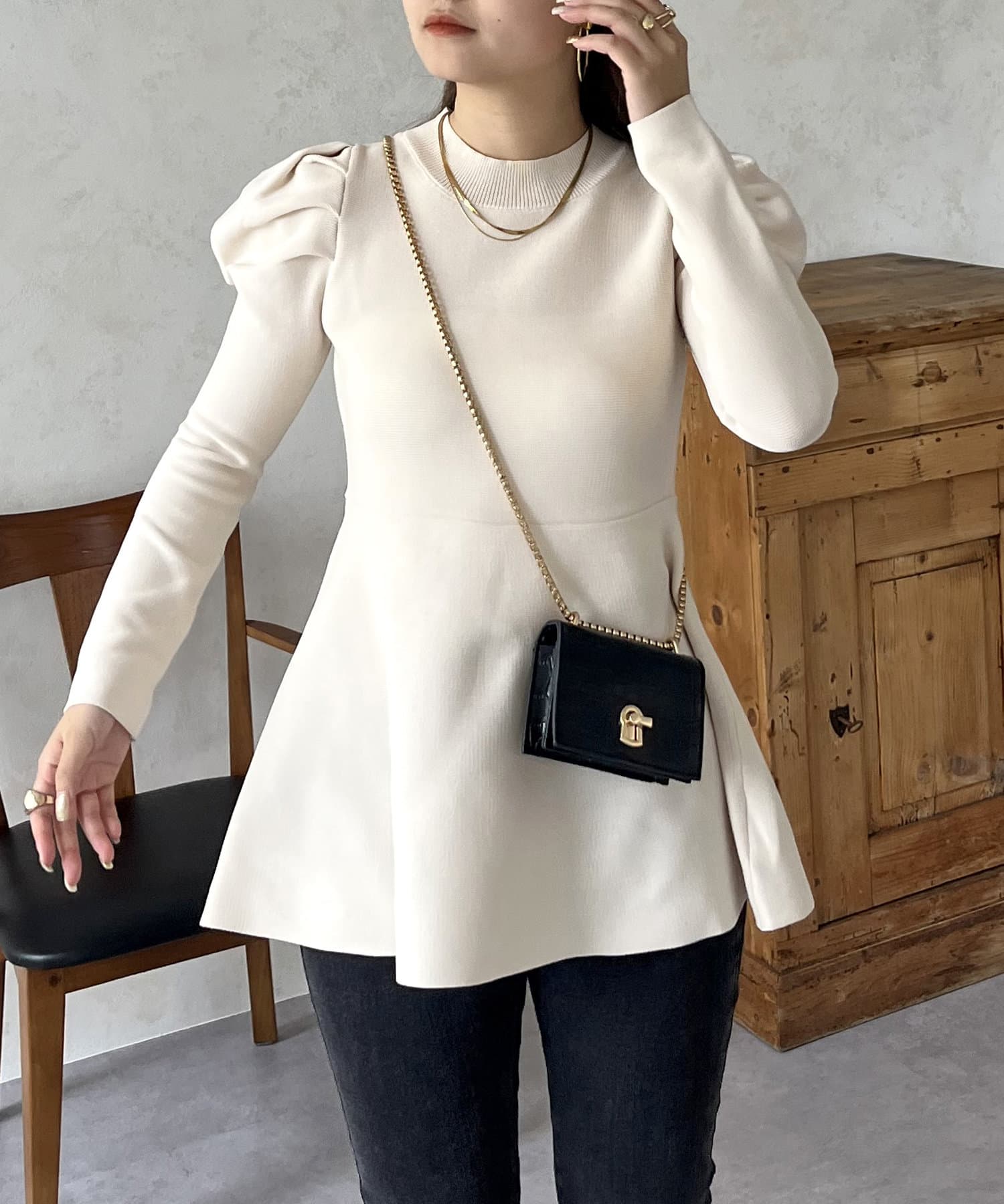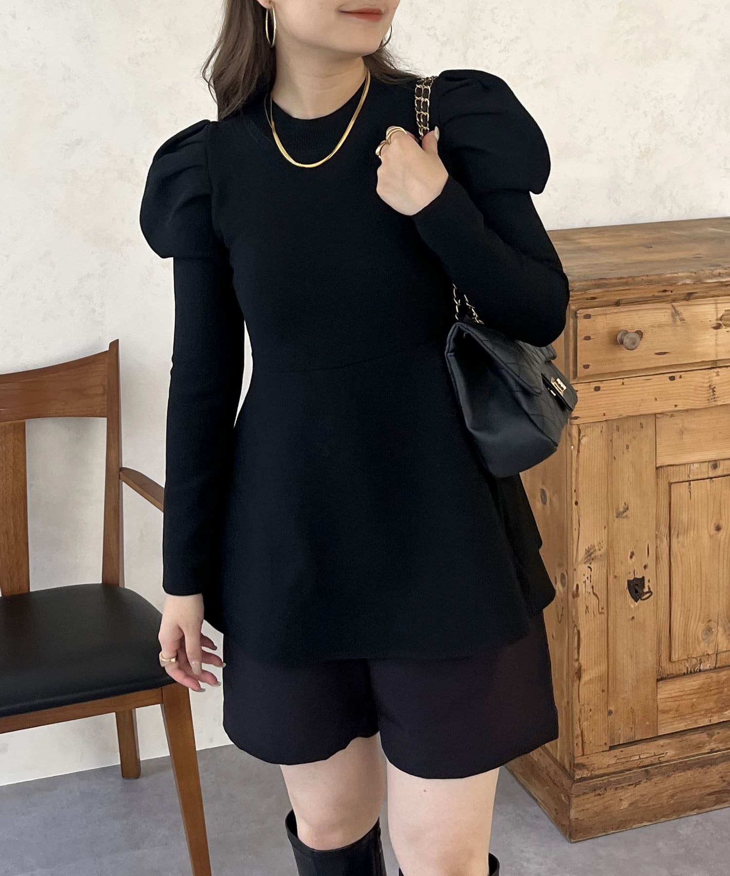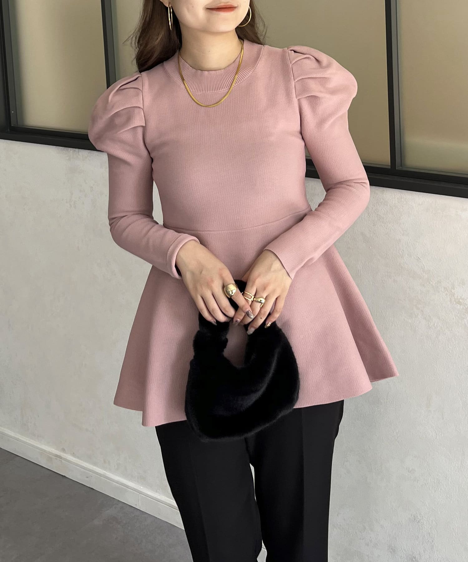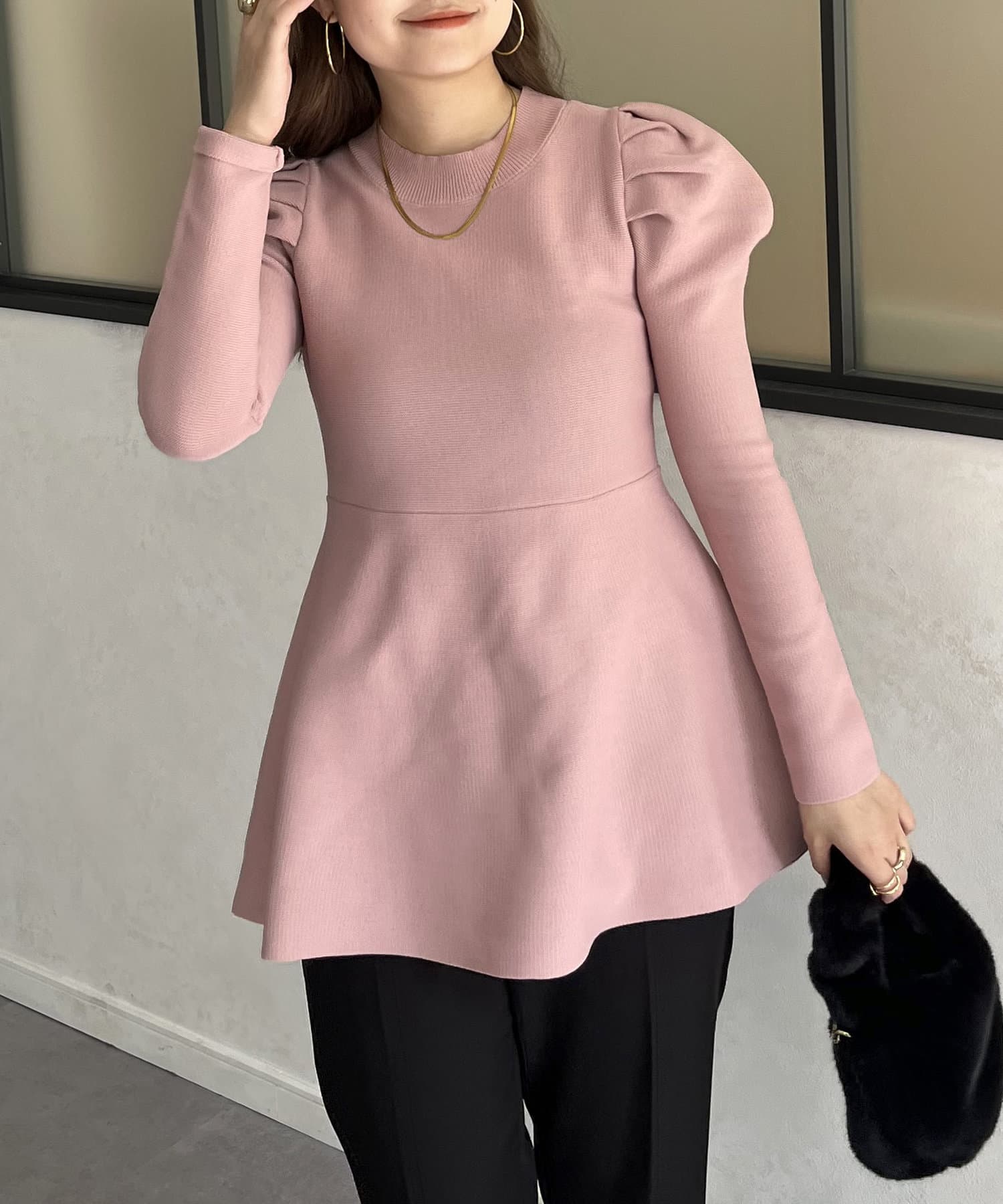 パフスリーブペプラムニット