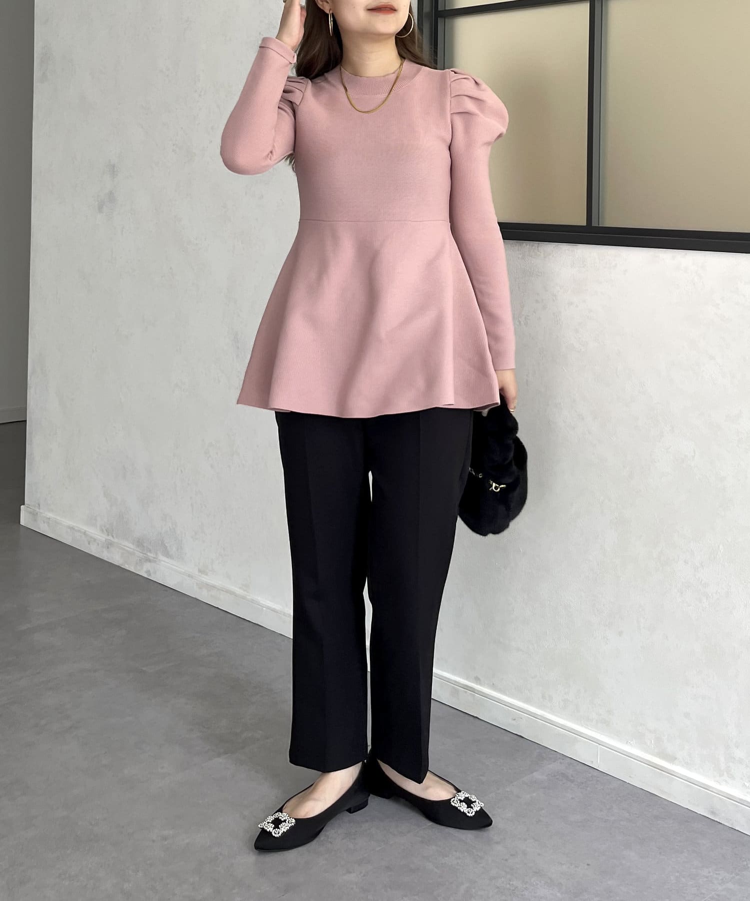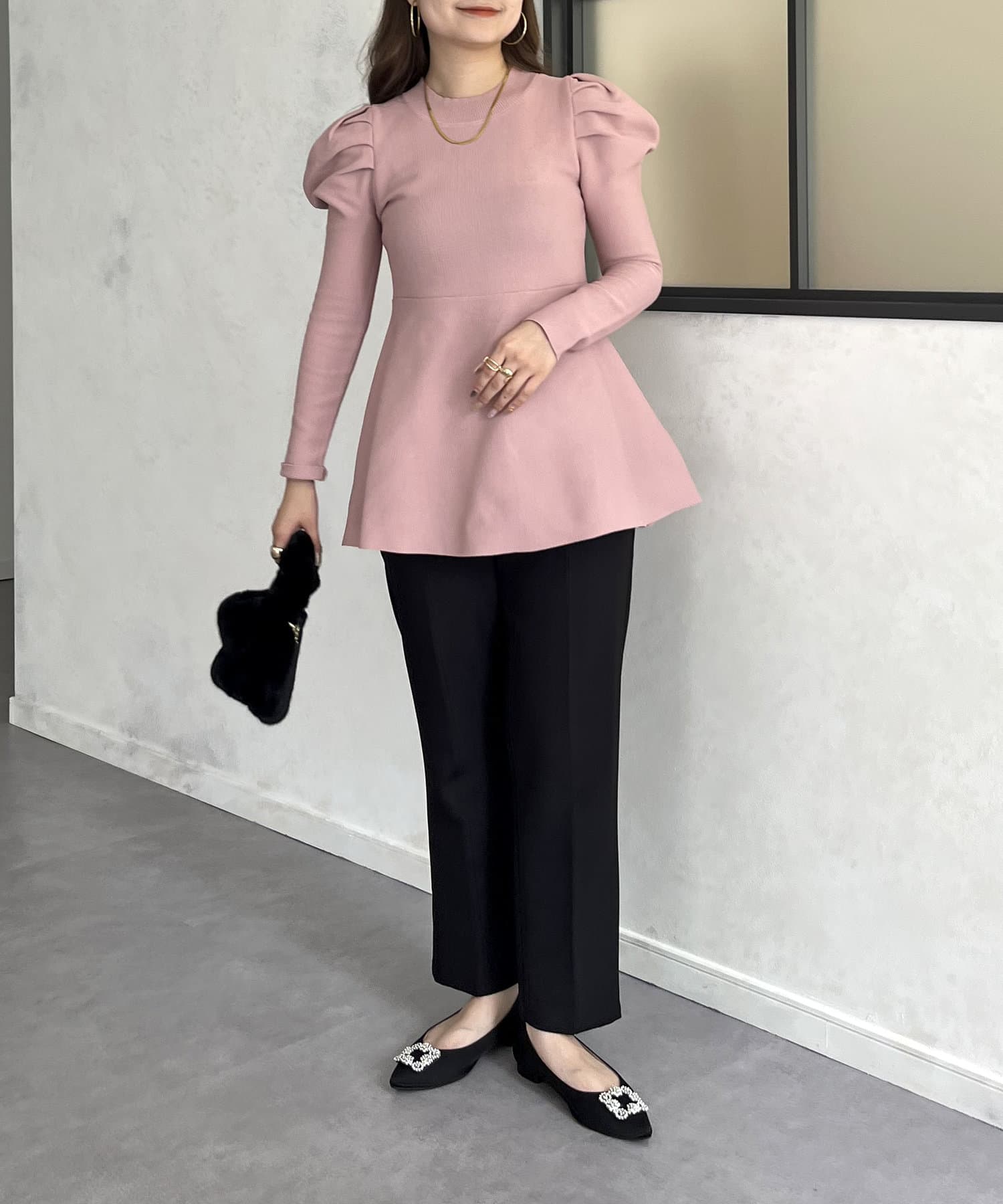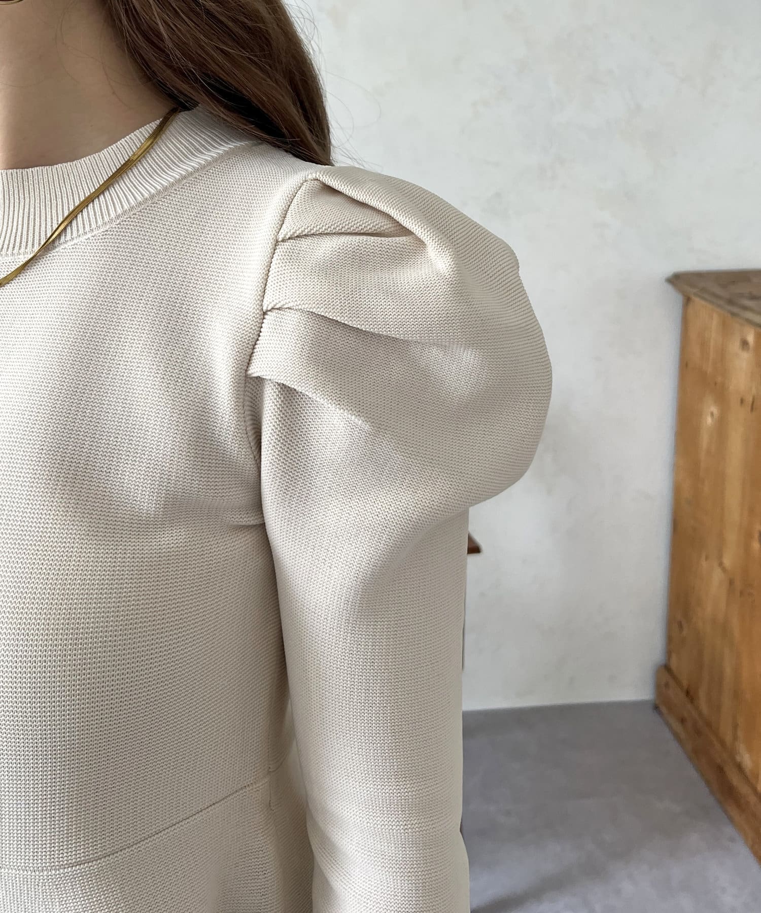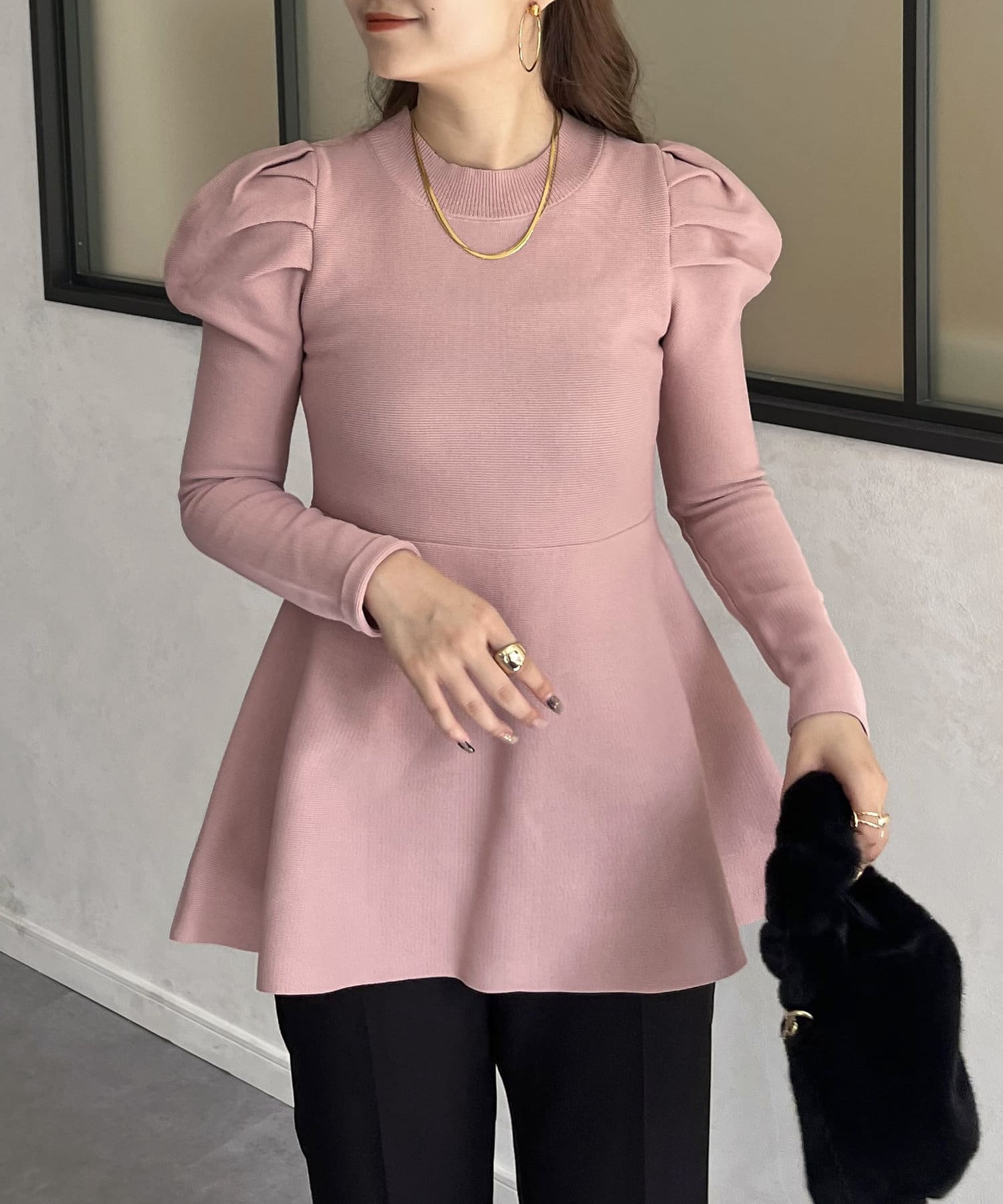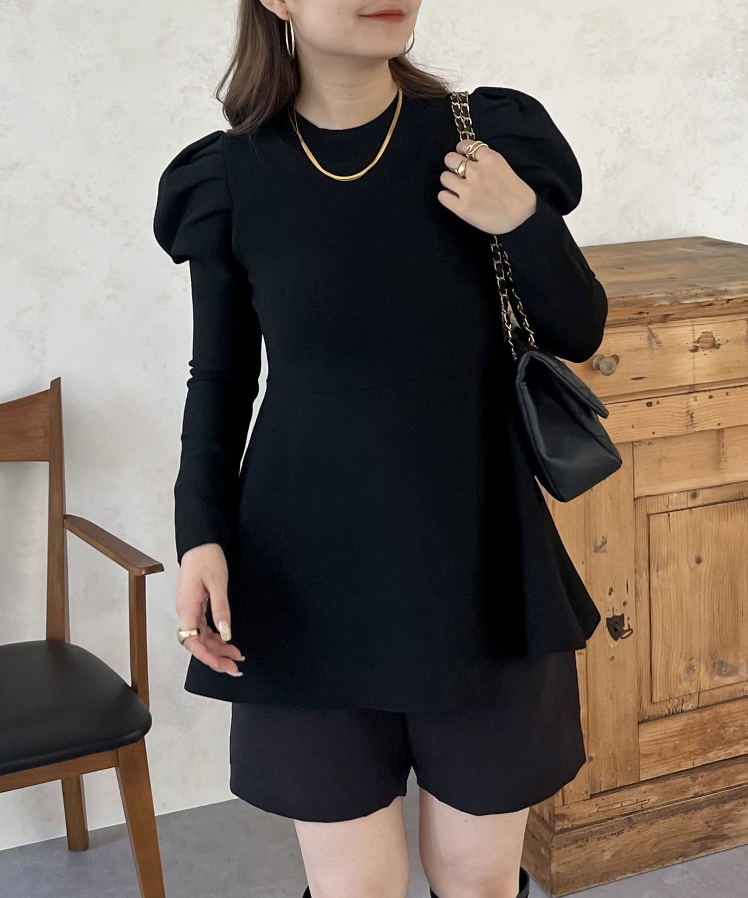 パフスリーブペプラムニット