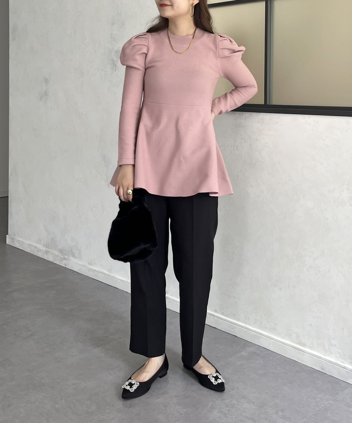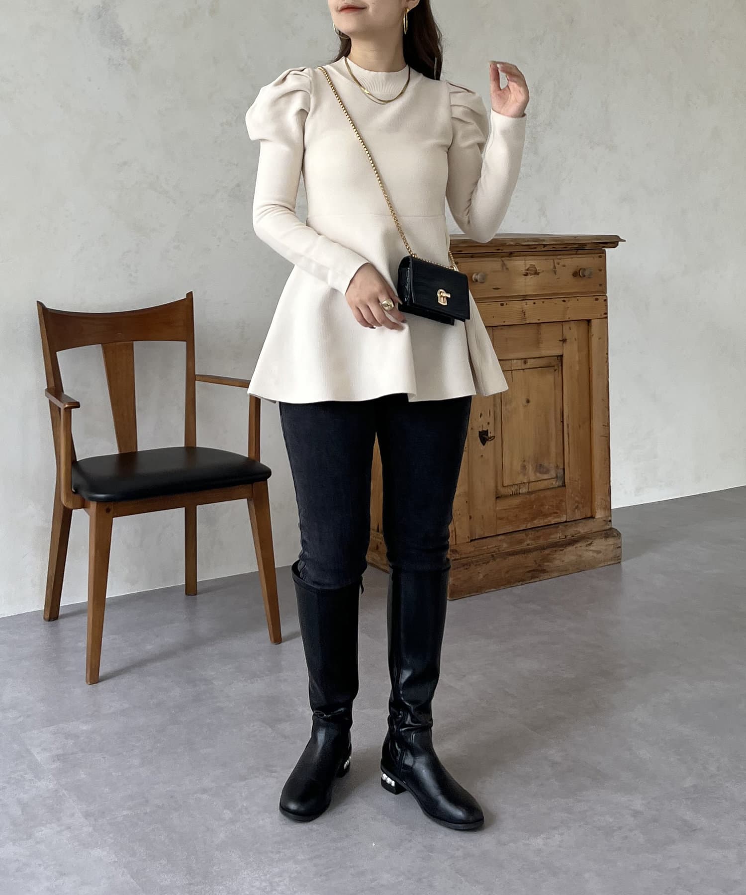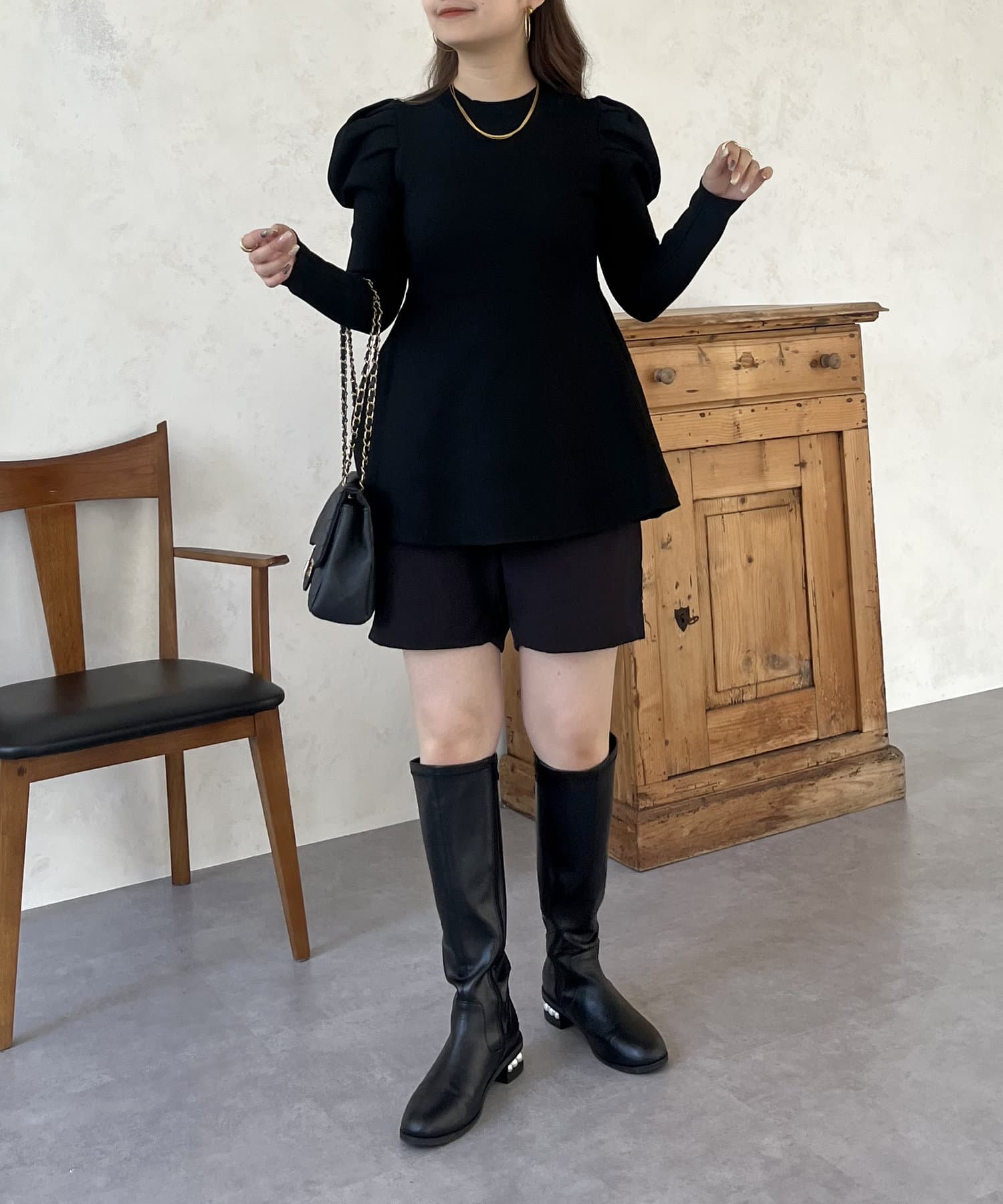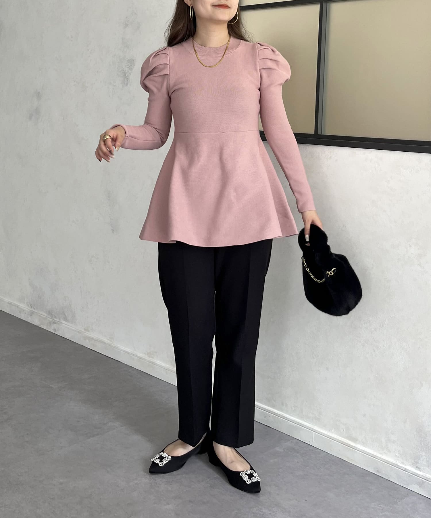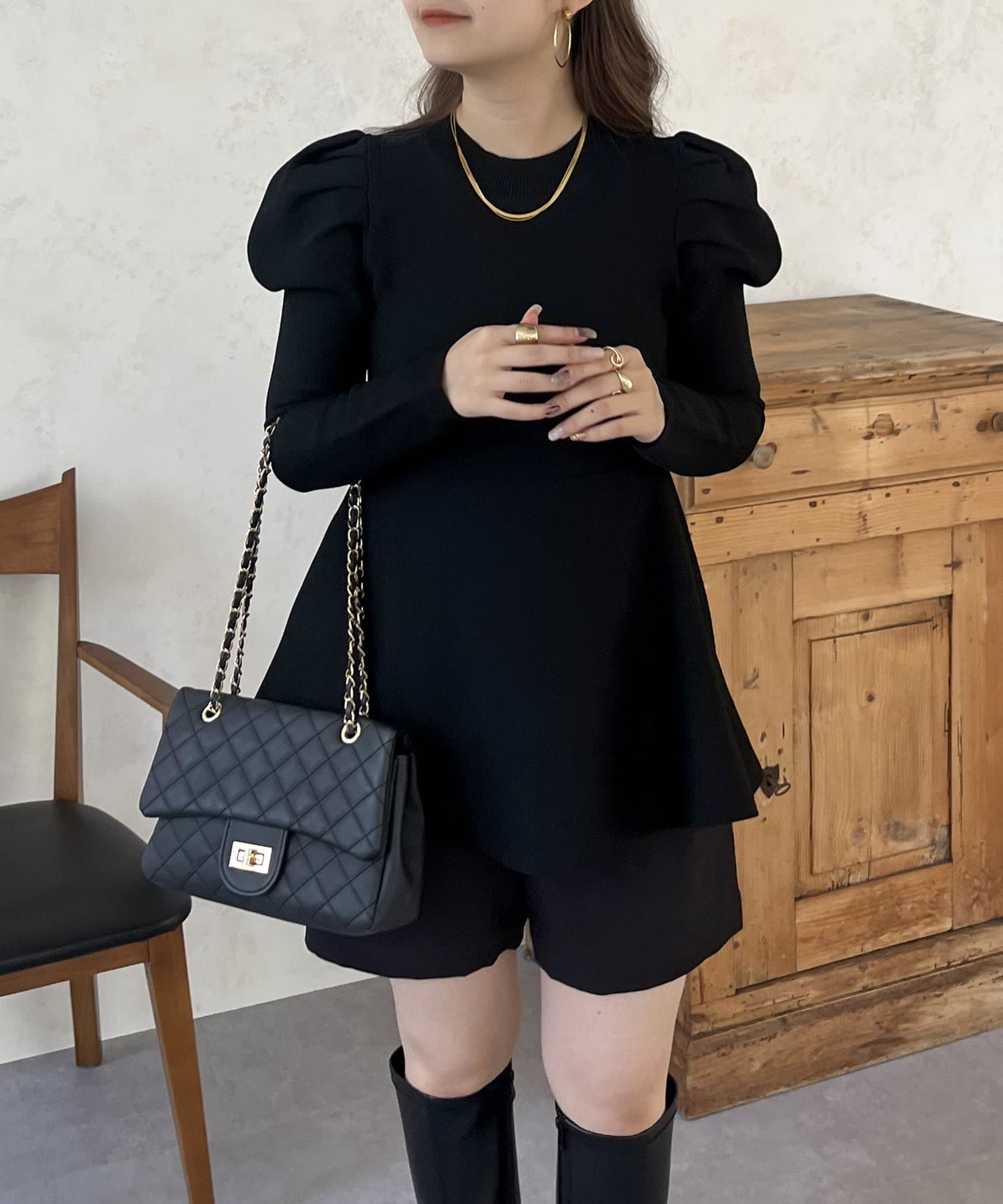 パフスリーブペプラムニット