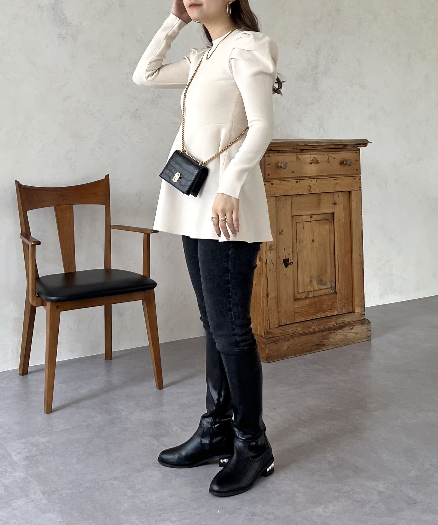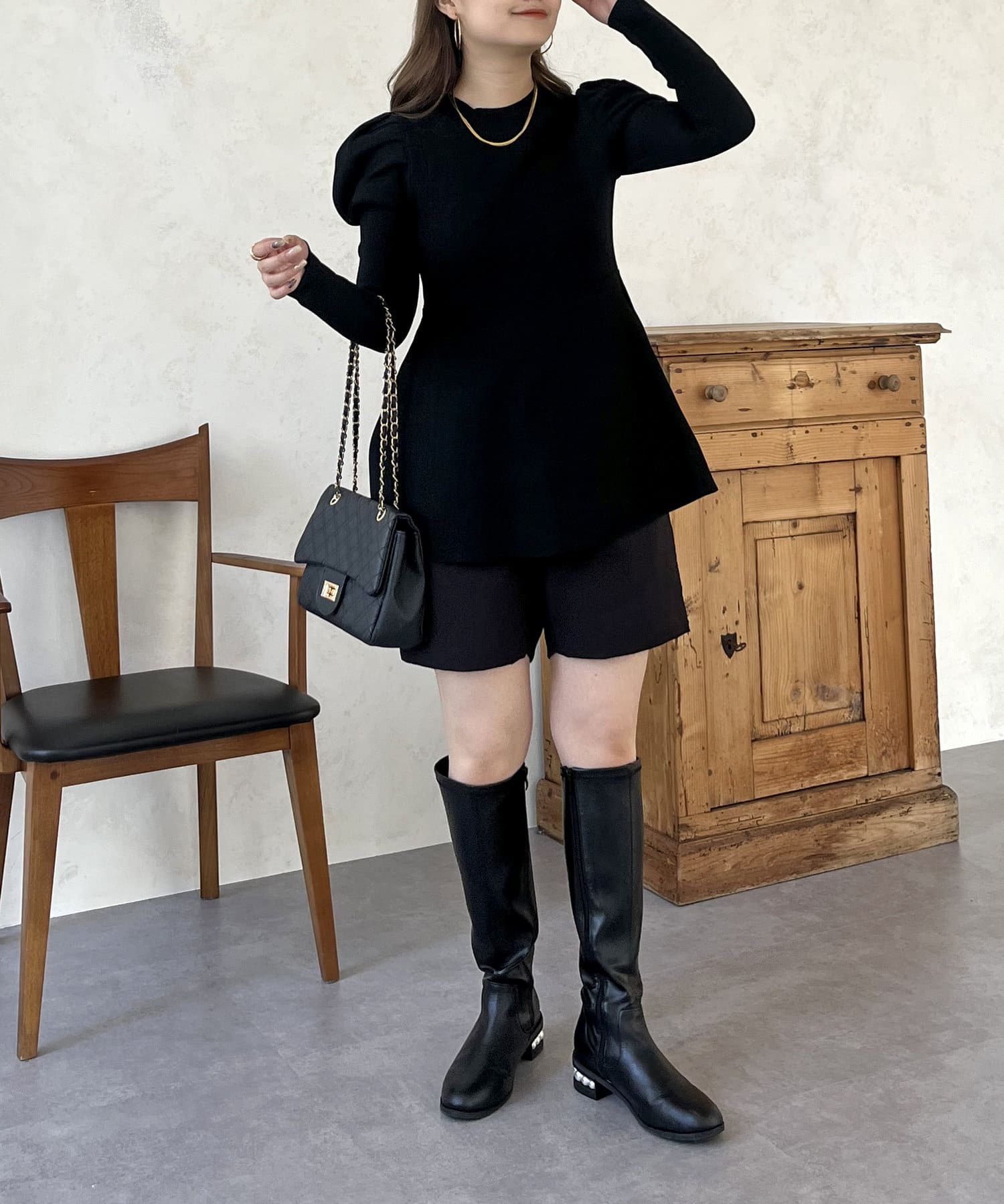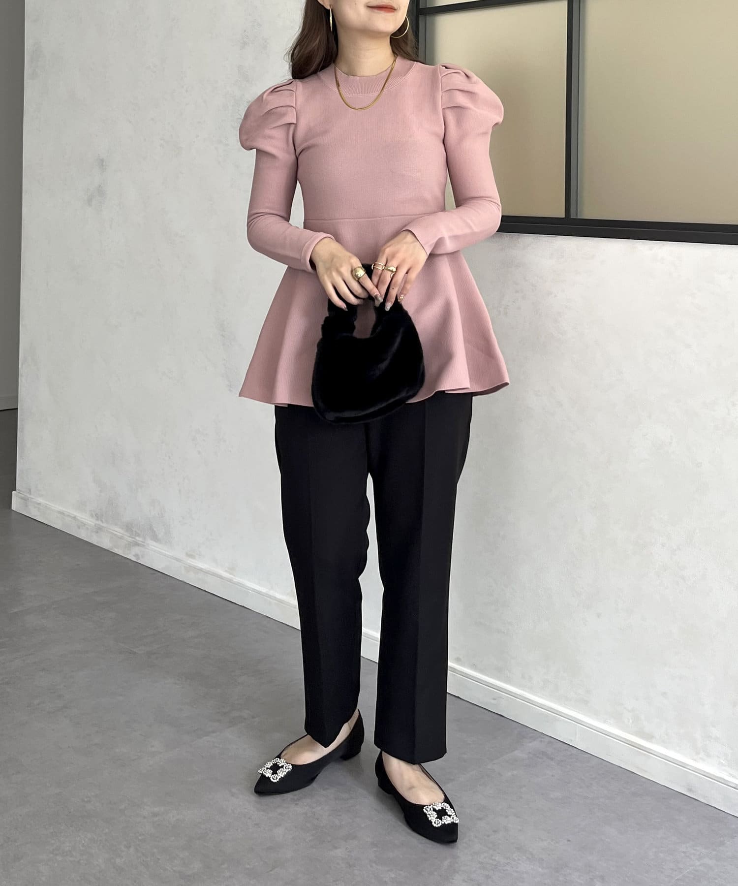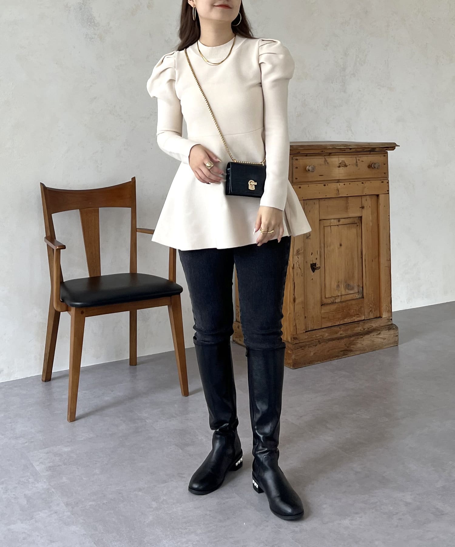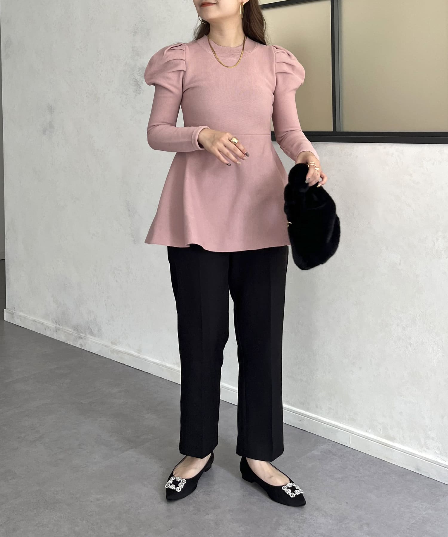 パフスリーブペプラムニット