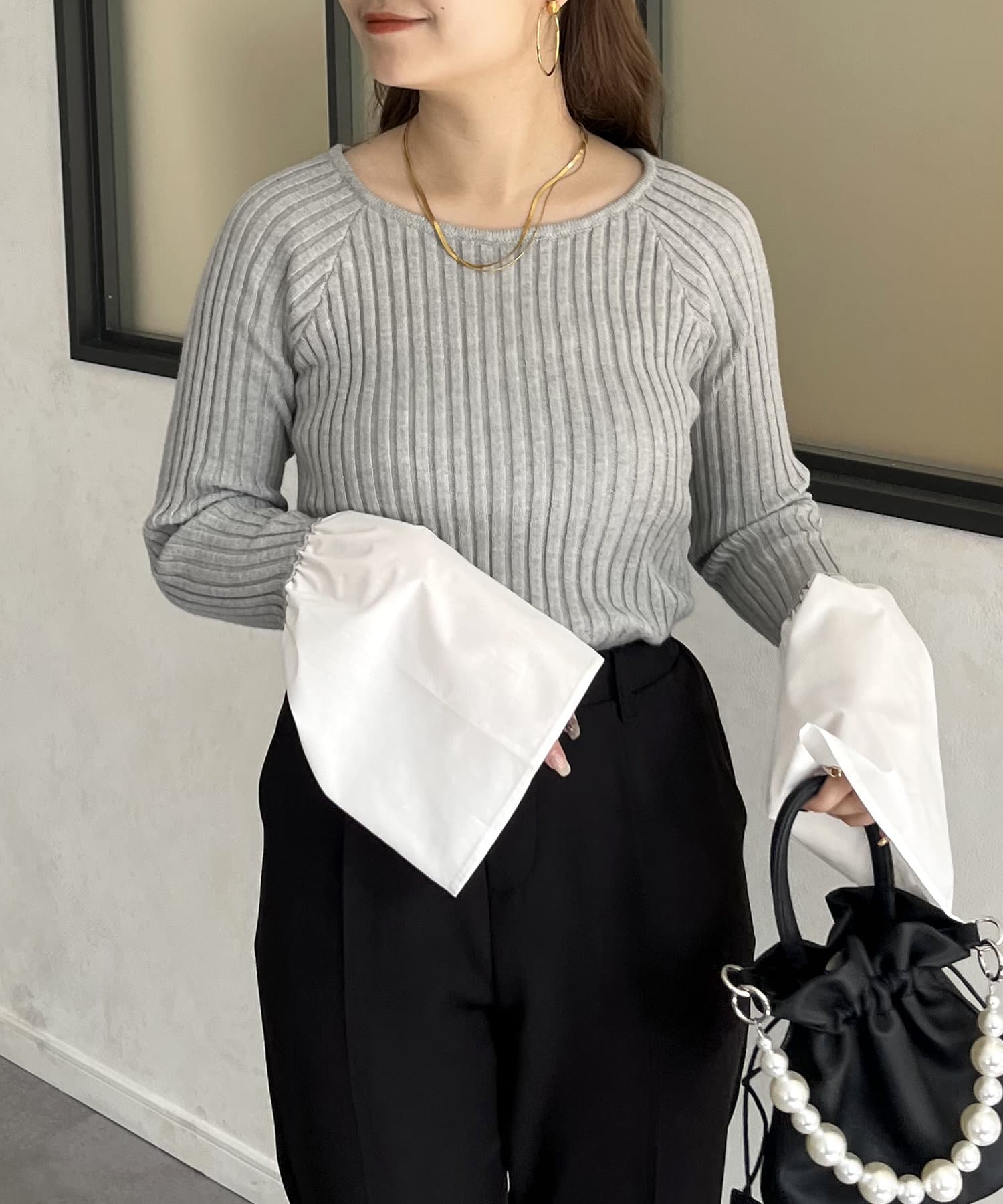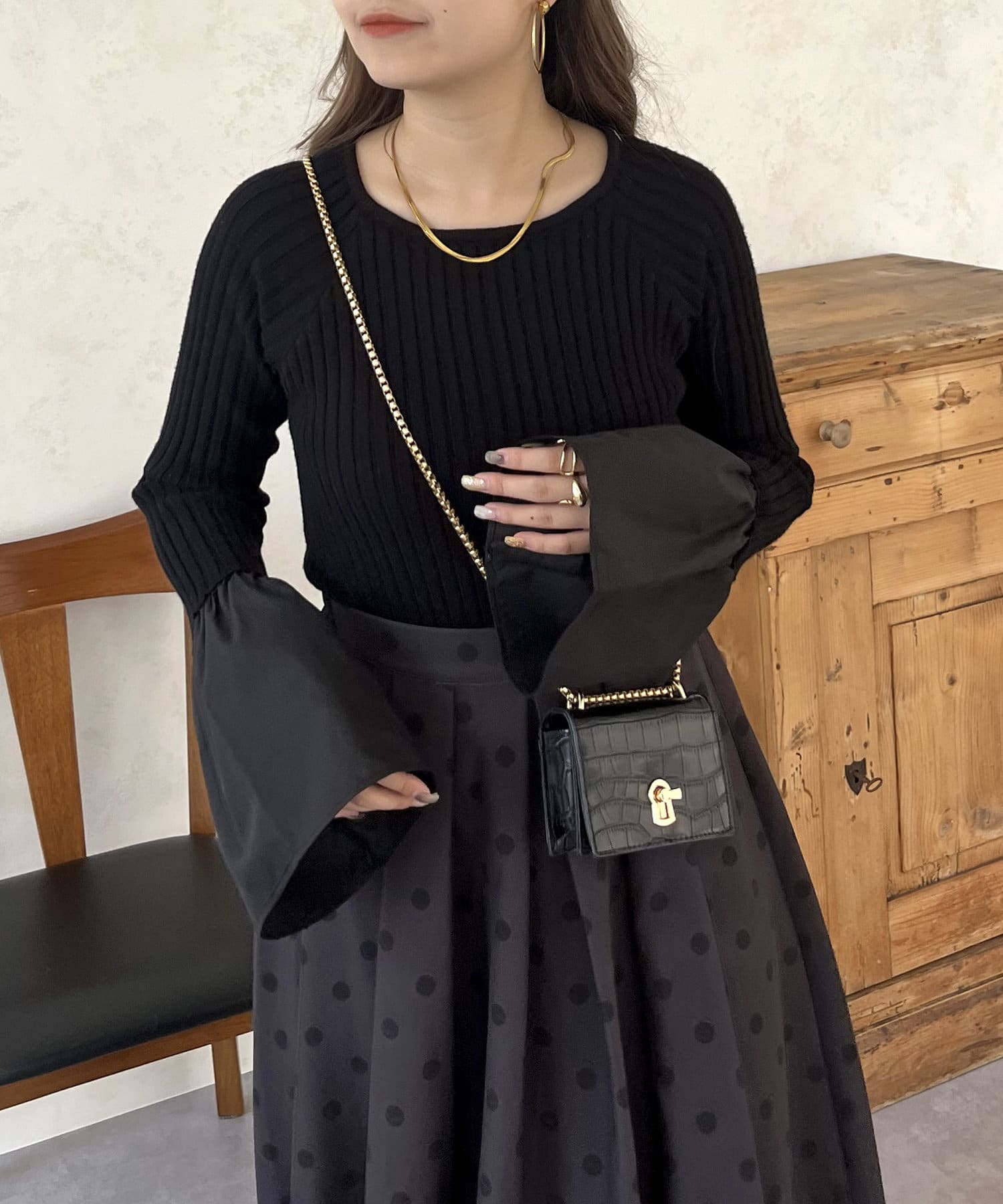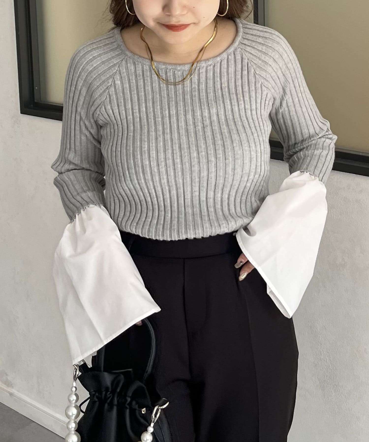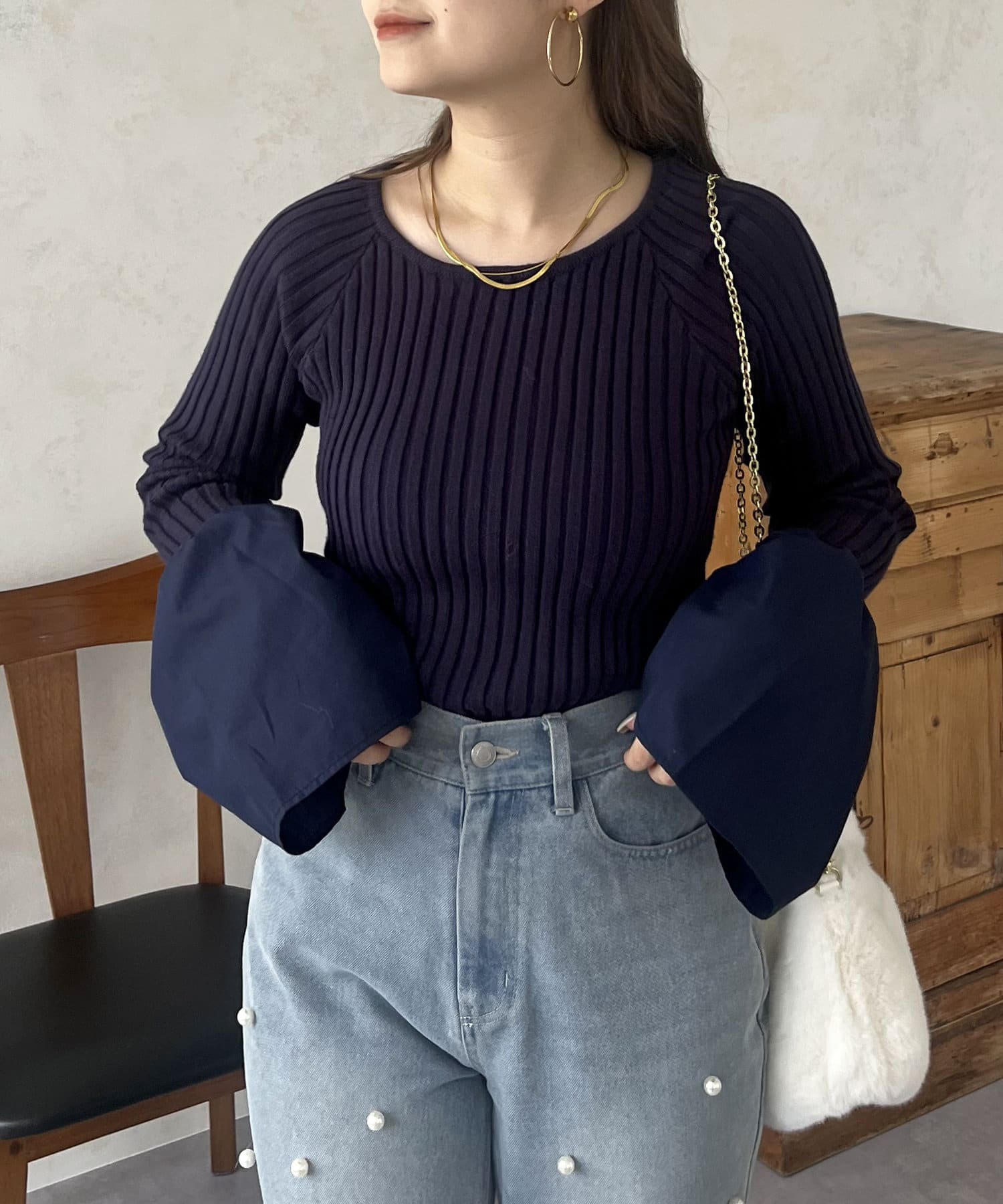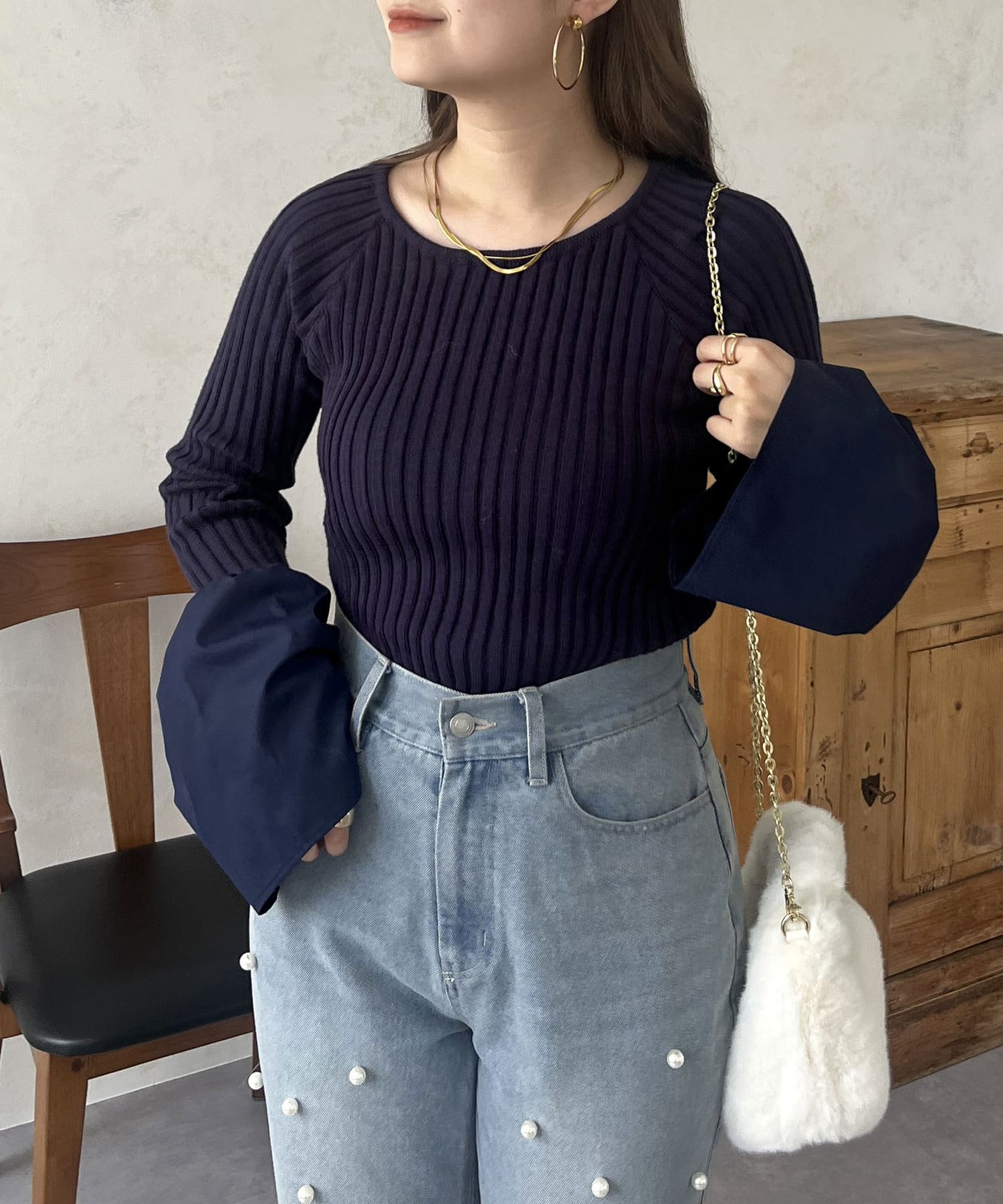 フレアスリーブ/リブニット/大人カジュアル/高見え/こなれ感