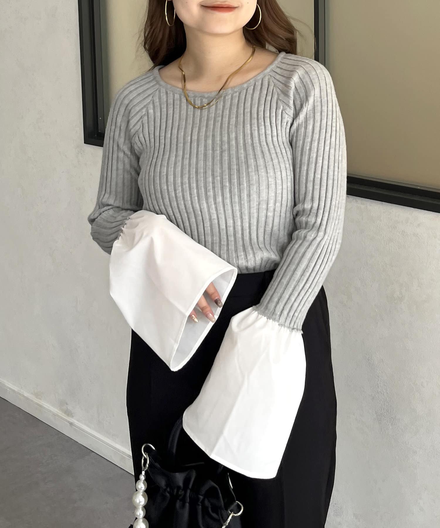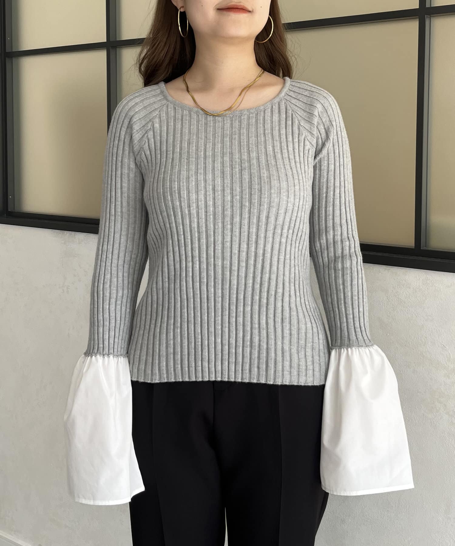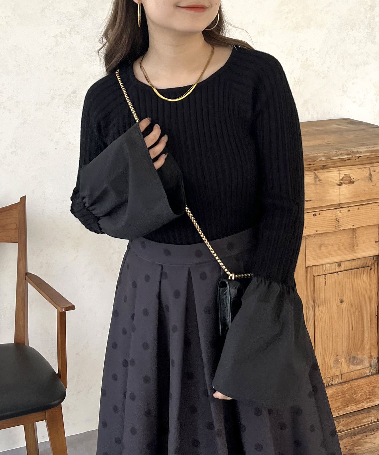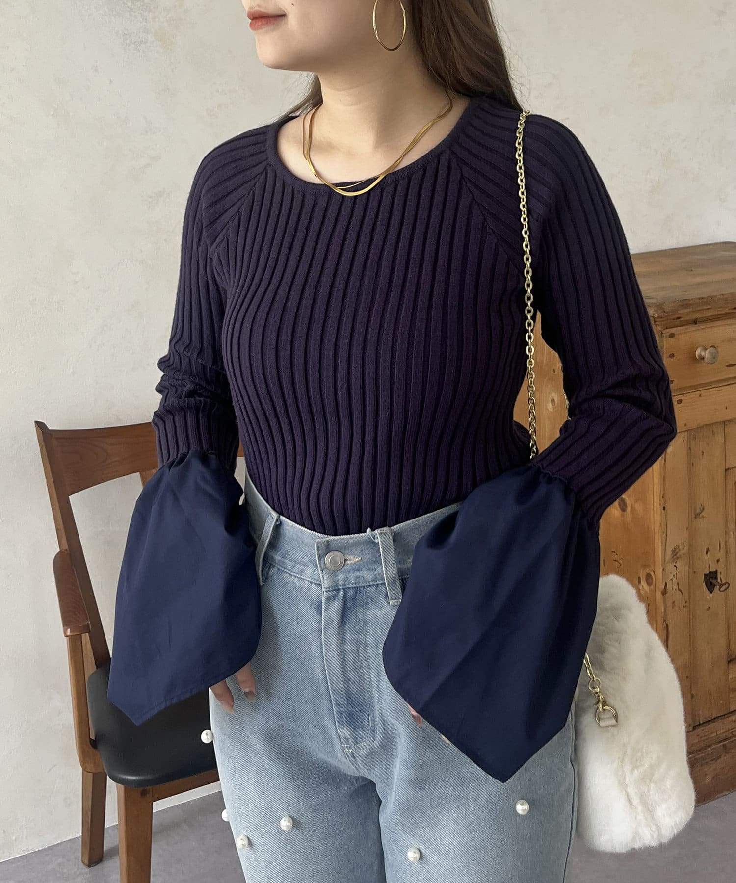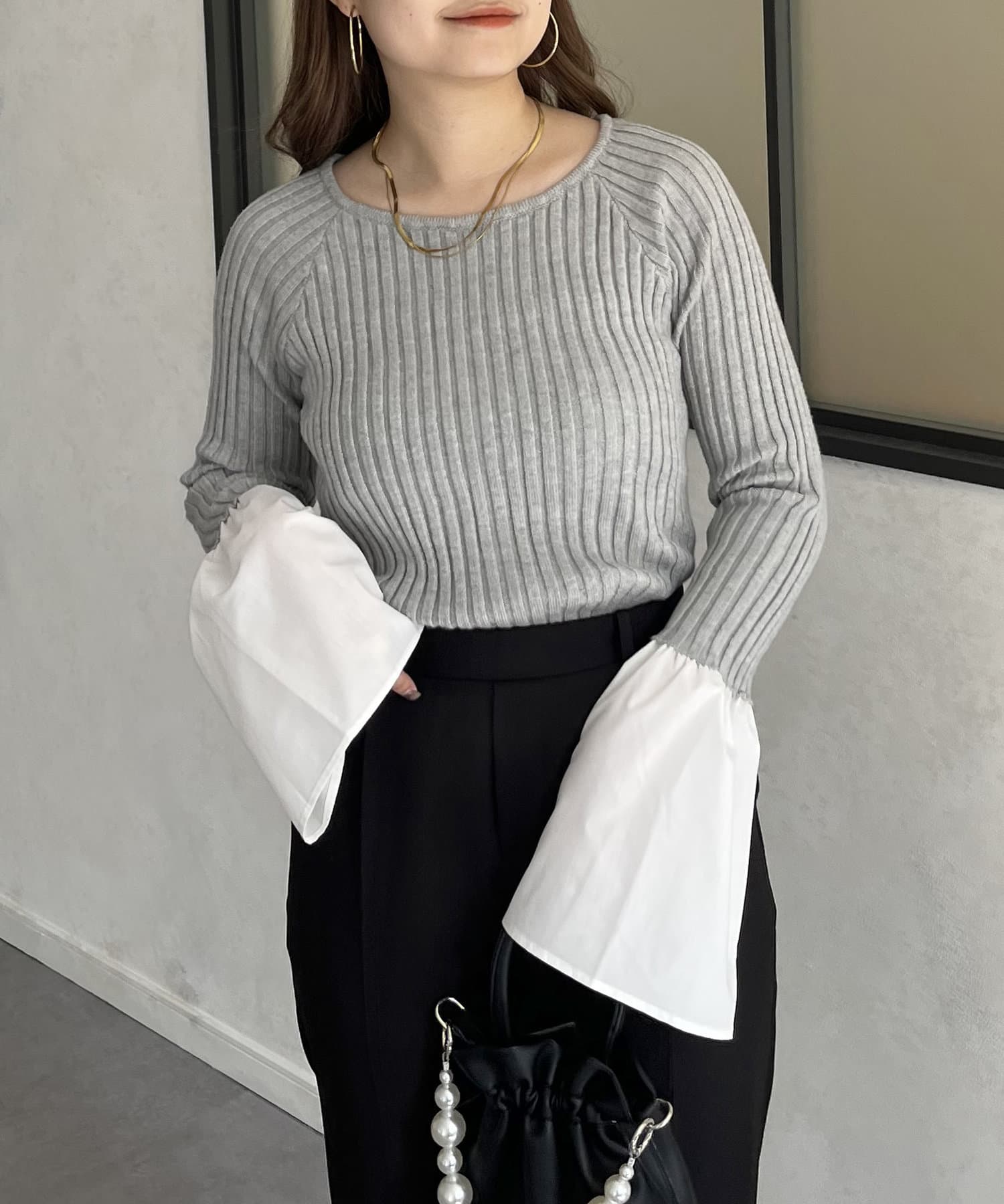 フレアスリーブ/リブニット/大人カジュアル/高見え/こなれ感