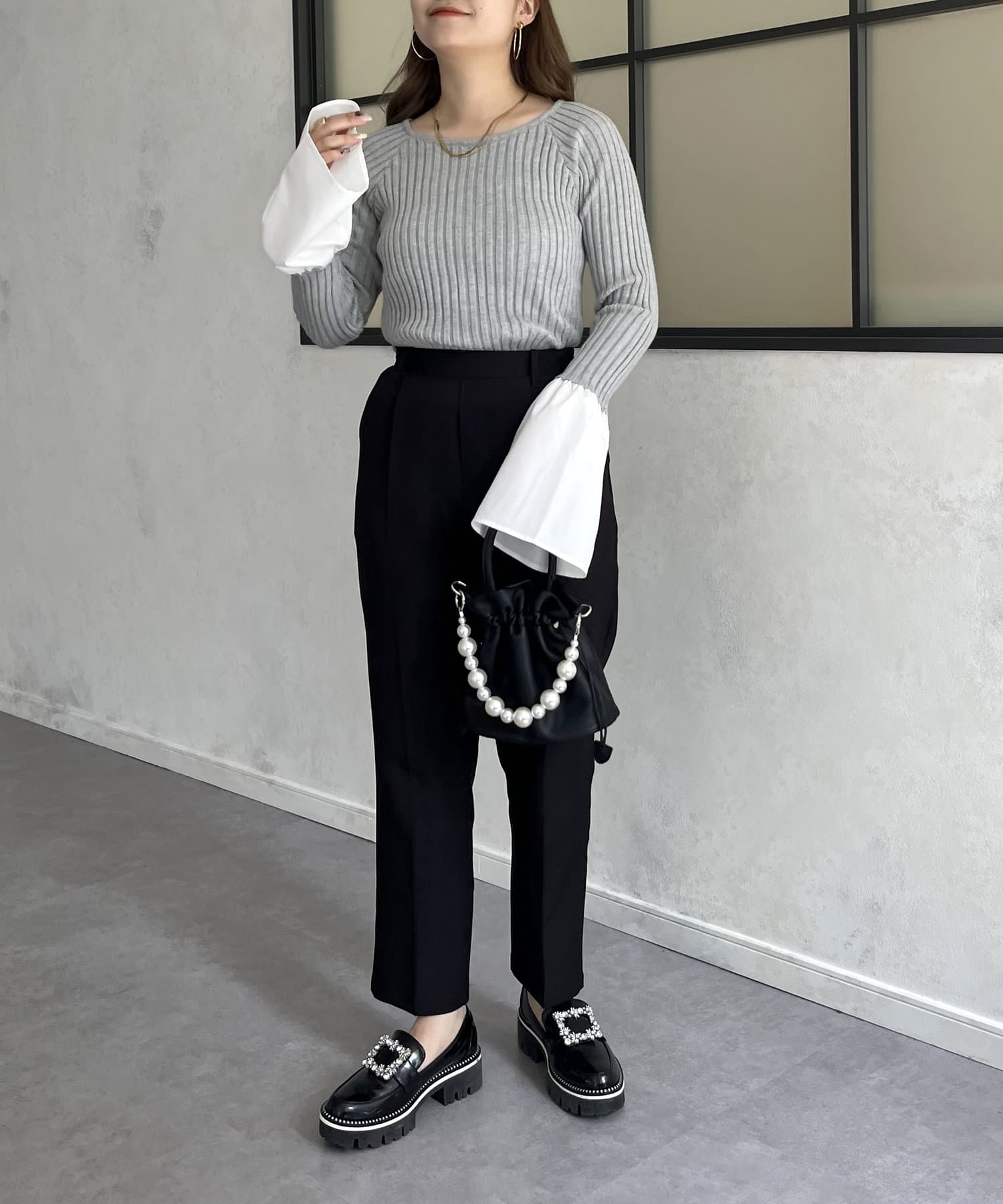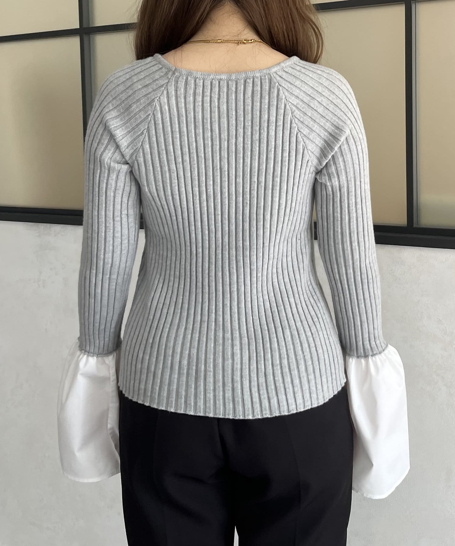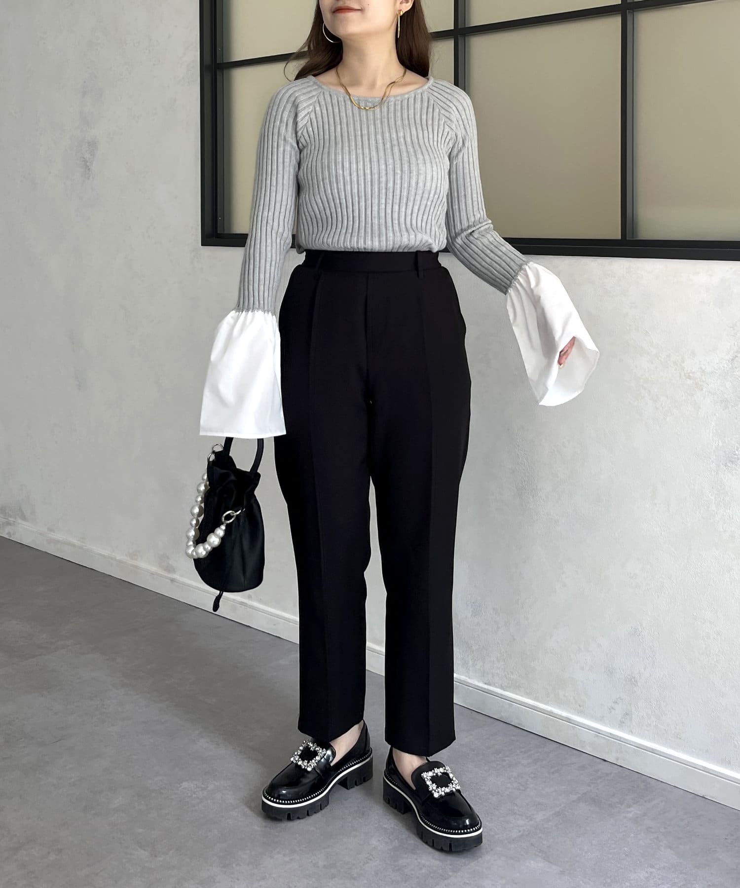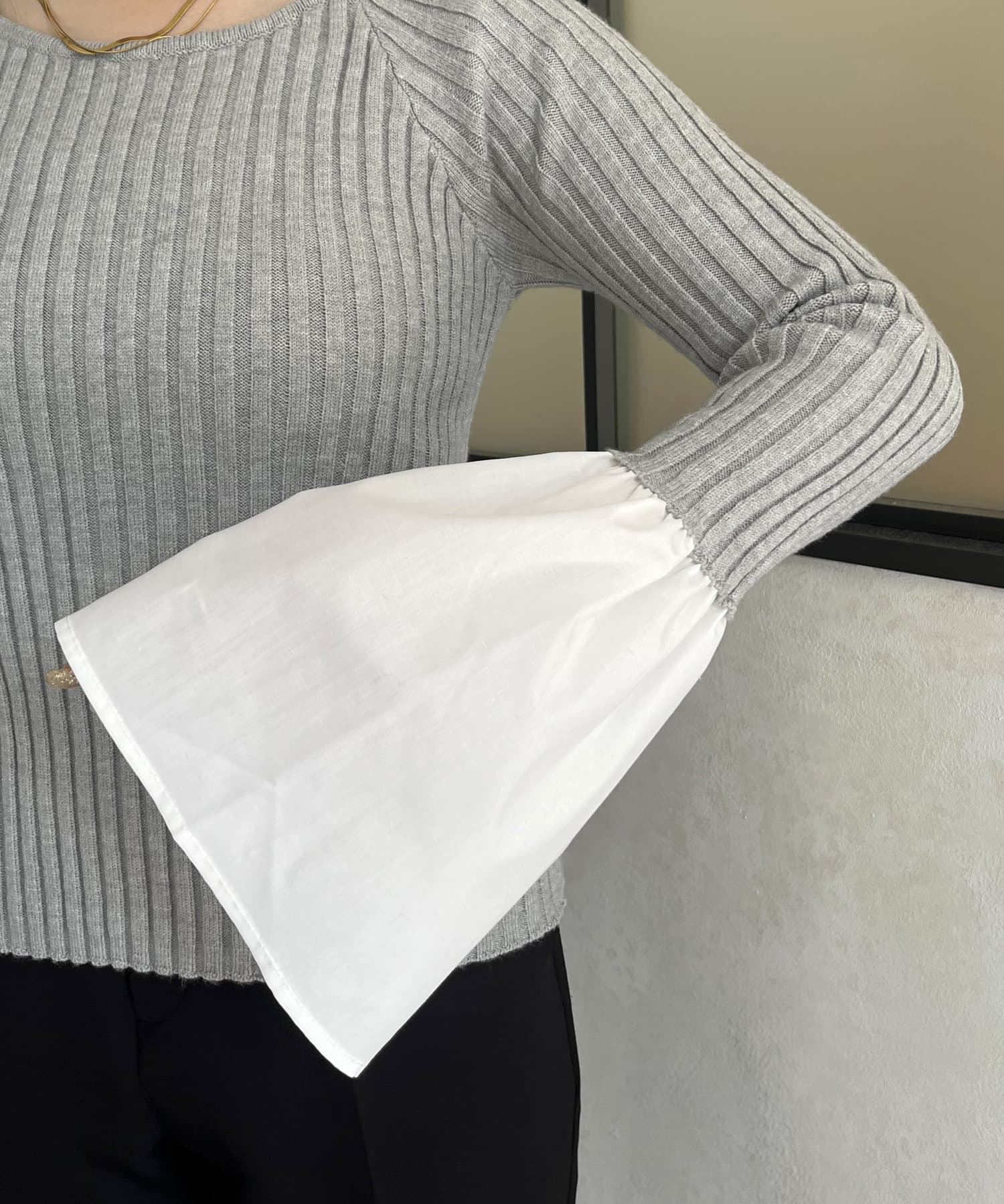 フレアスリーブ/リブニット/大人カジュアル/高見え/こなれ感