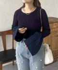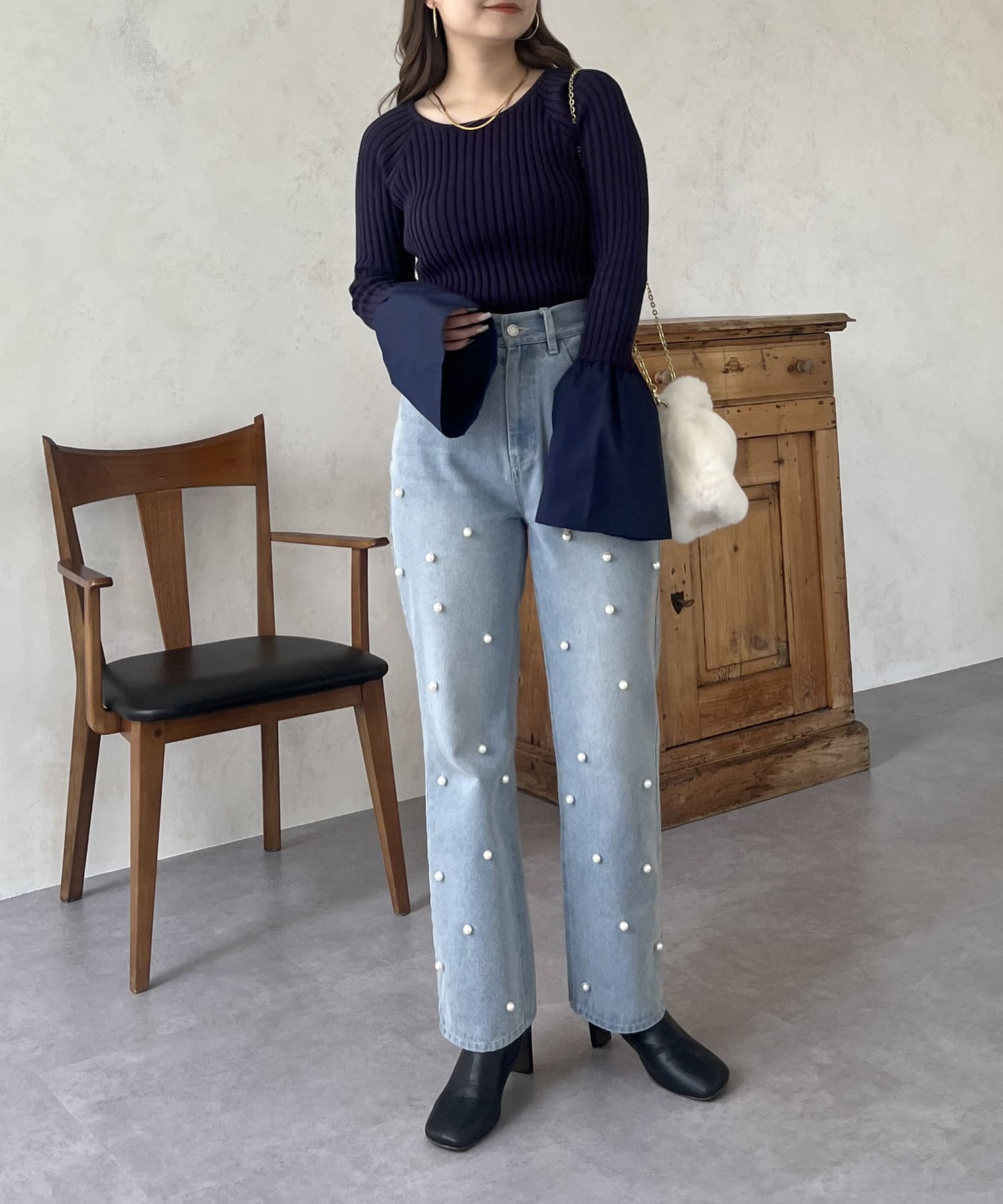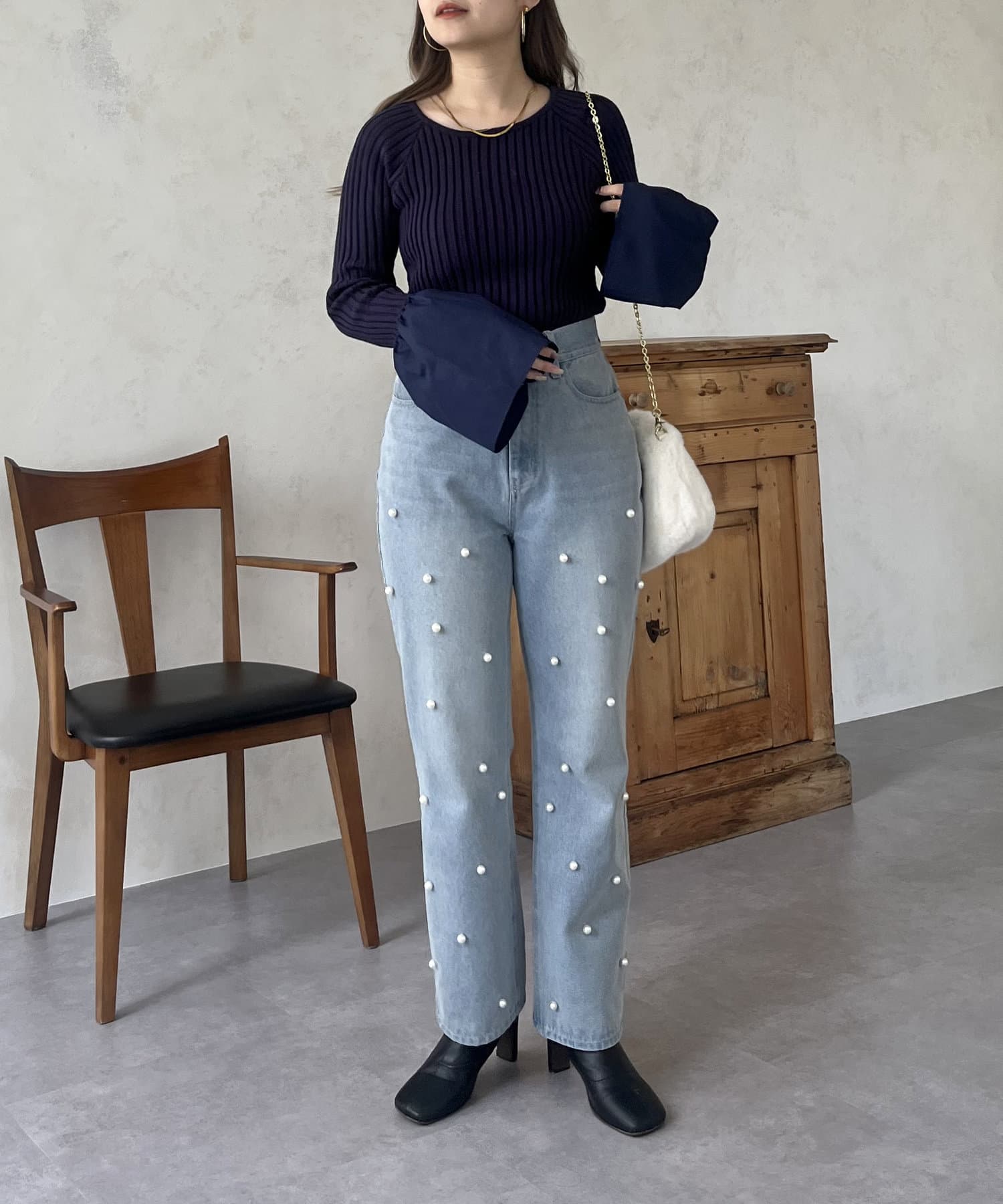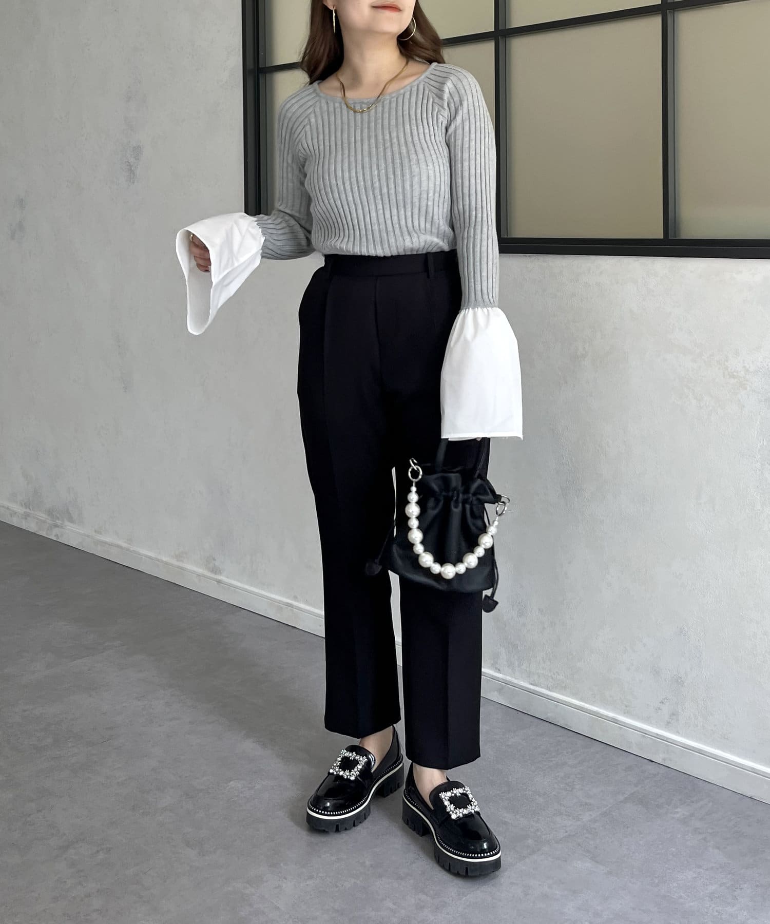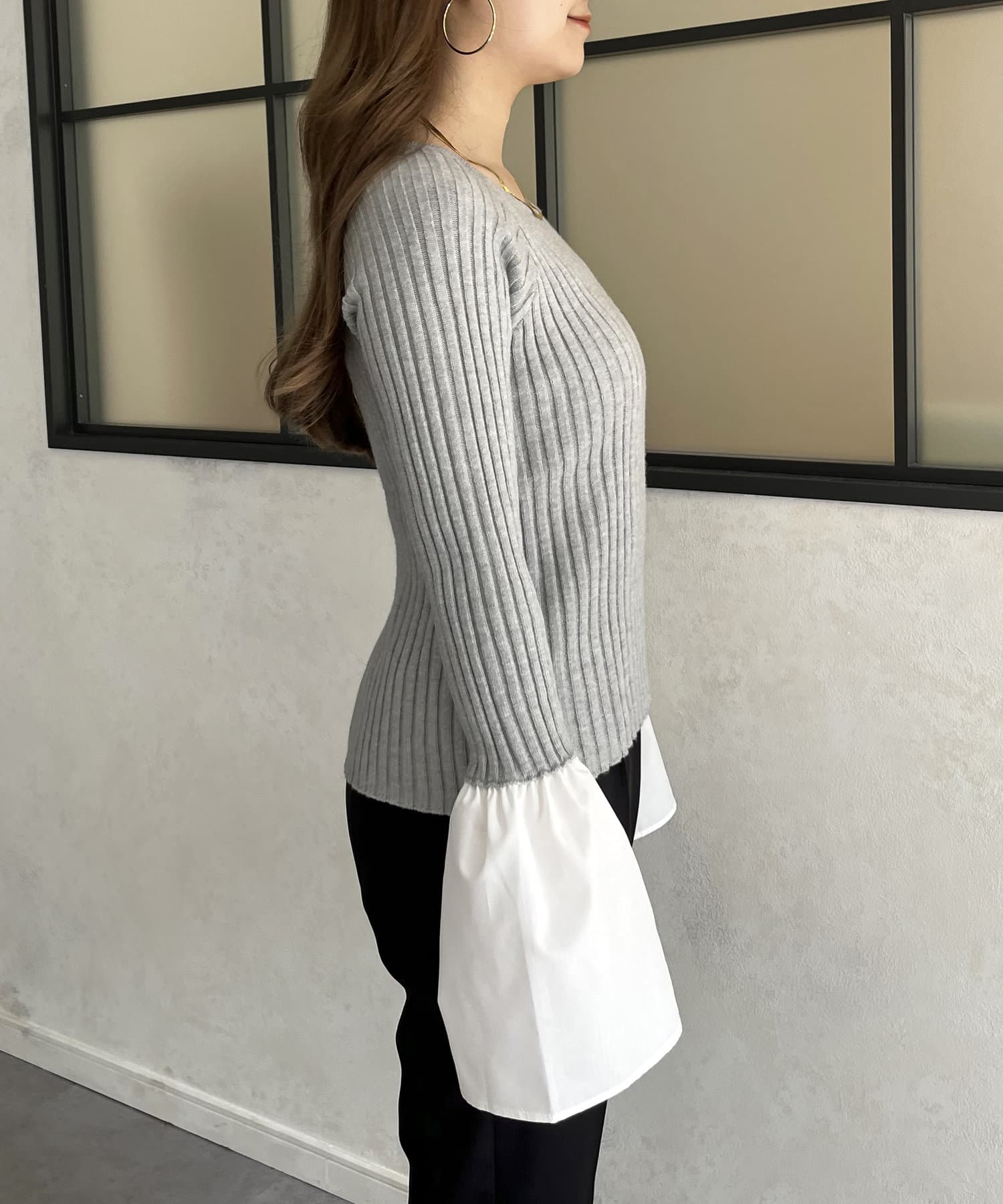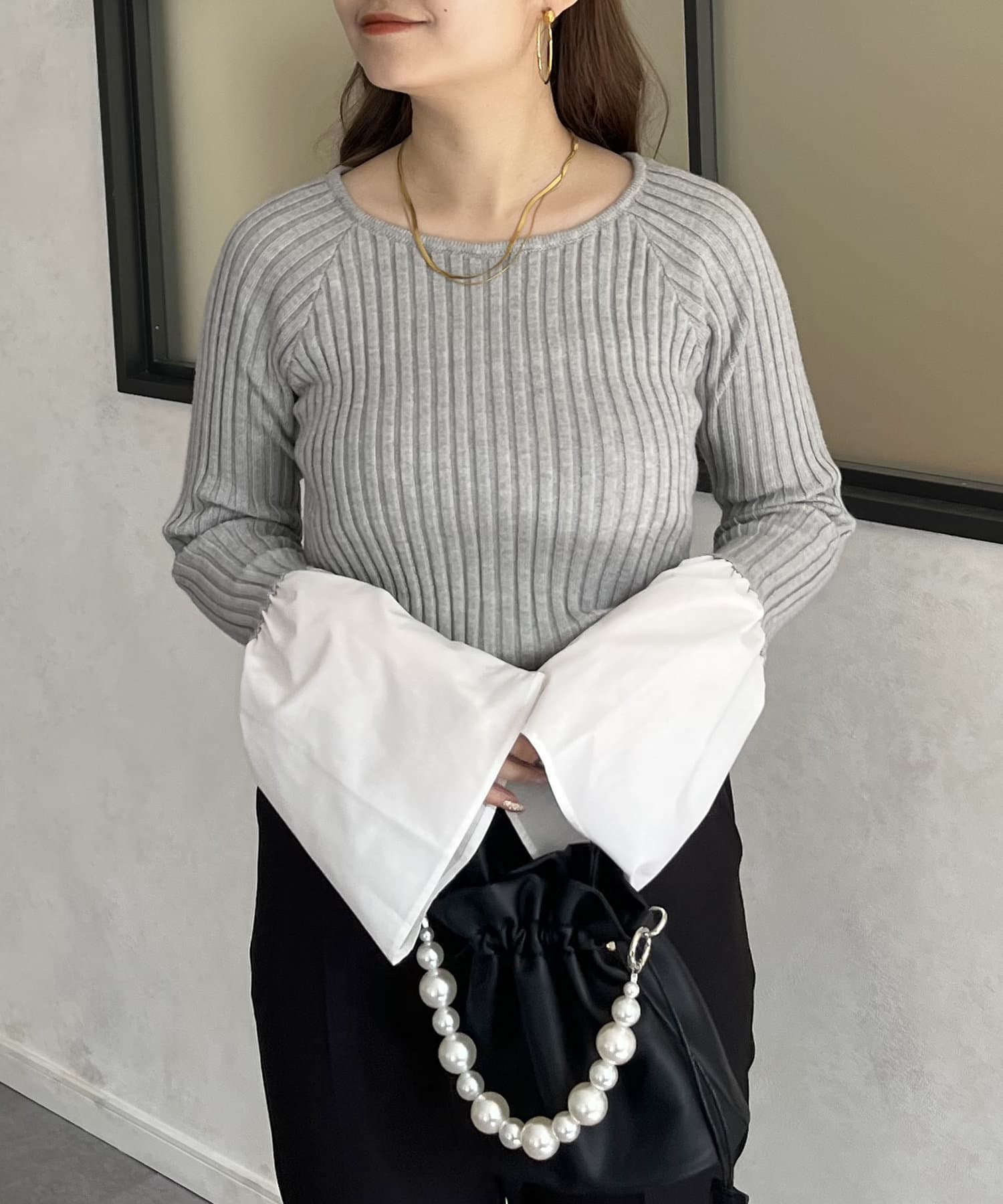 フレアスリーブ/リブニット/大人カジュアル/高見え/こなれ感