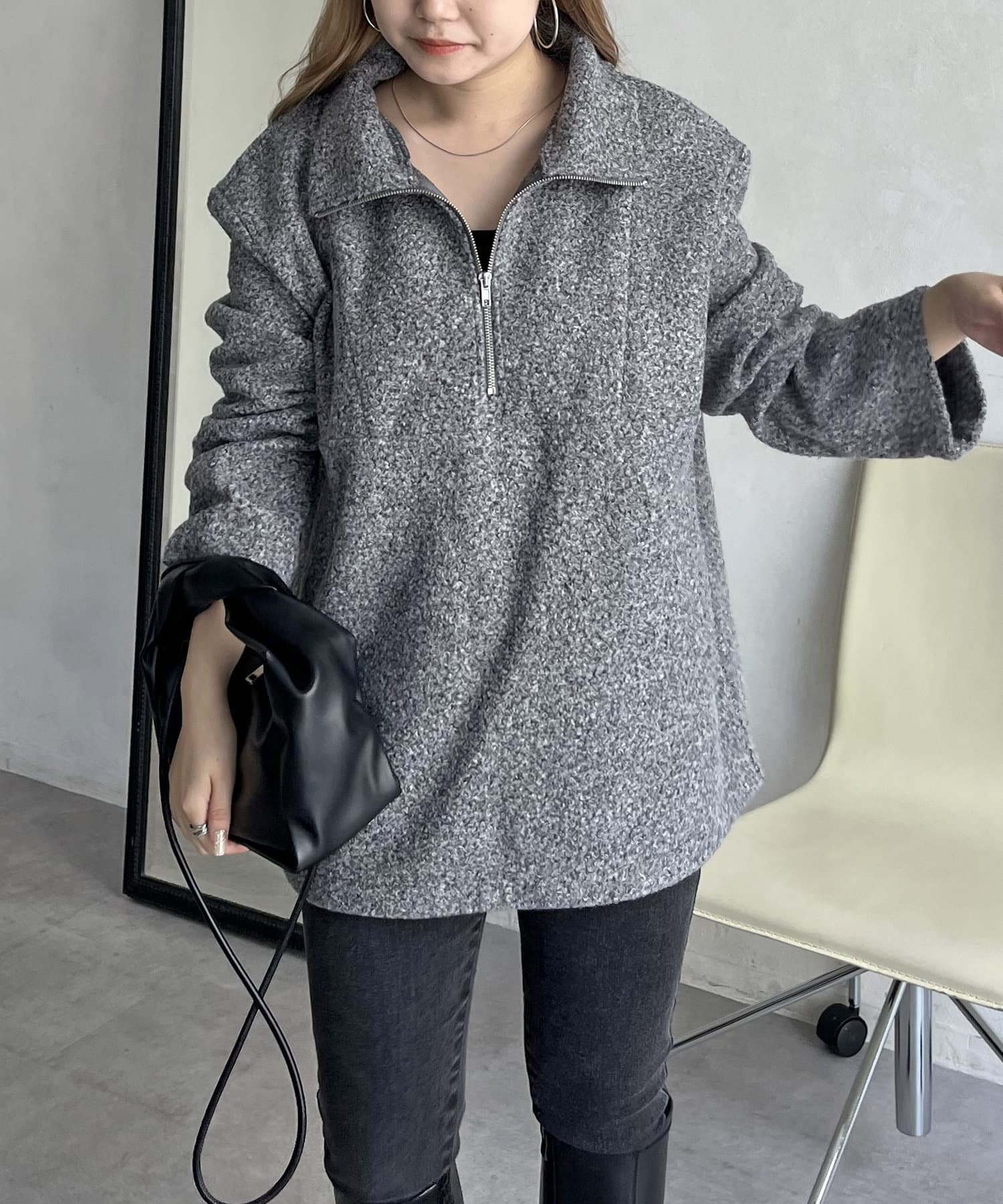 TOP > prose verse > レディース > トップス > スキッパー > リングフェイクウールハーフジッププルオーバー