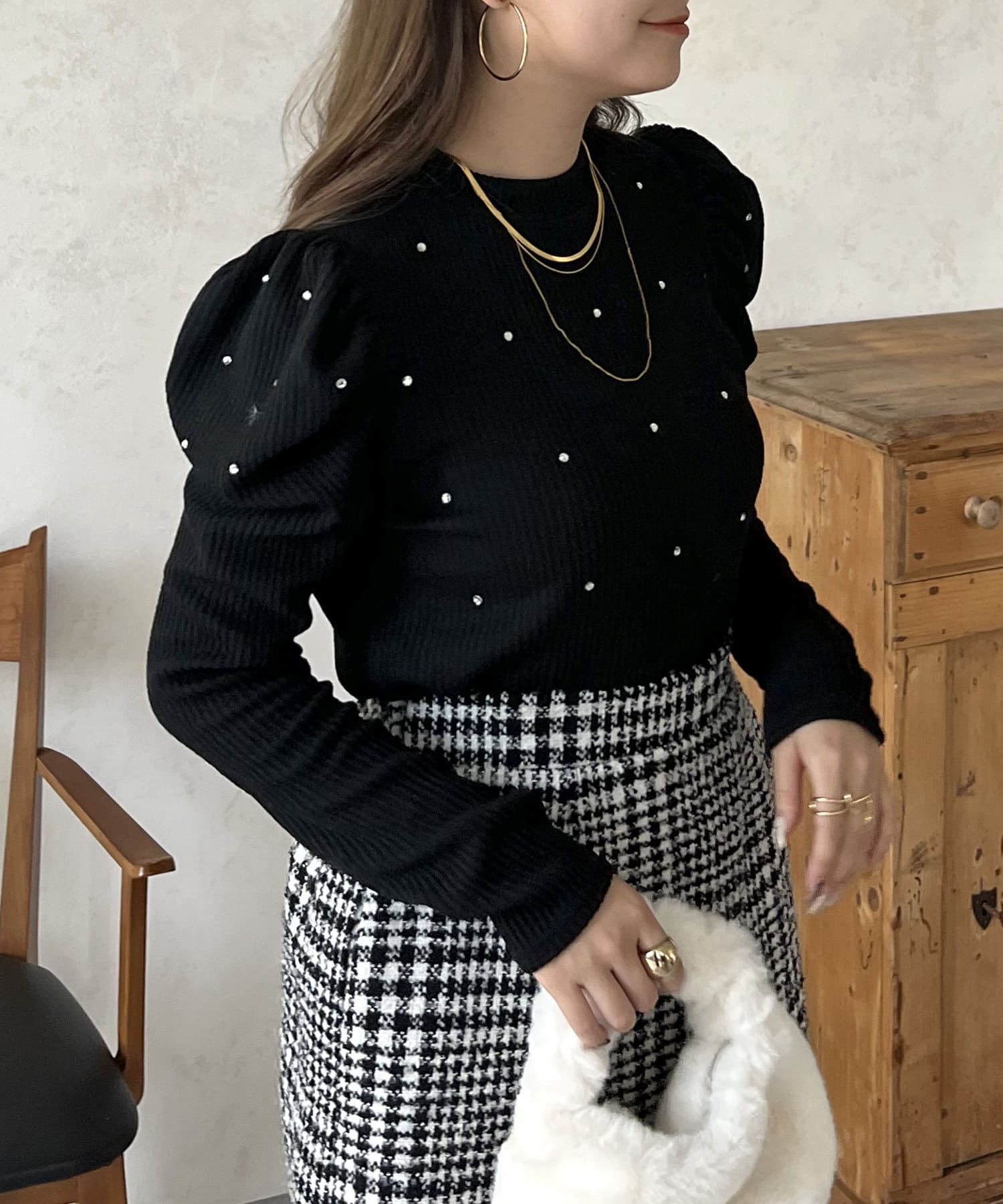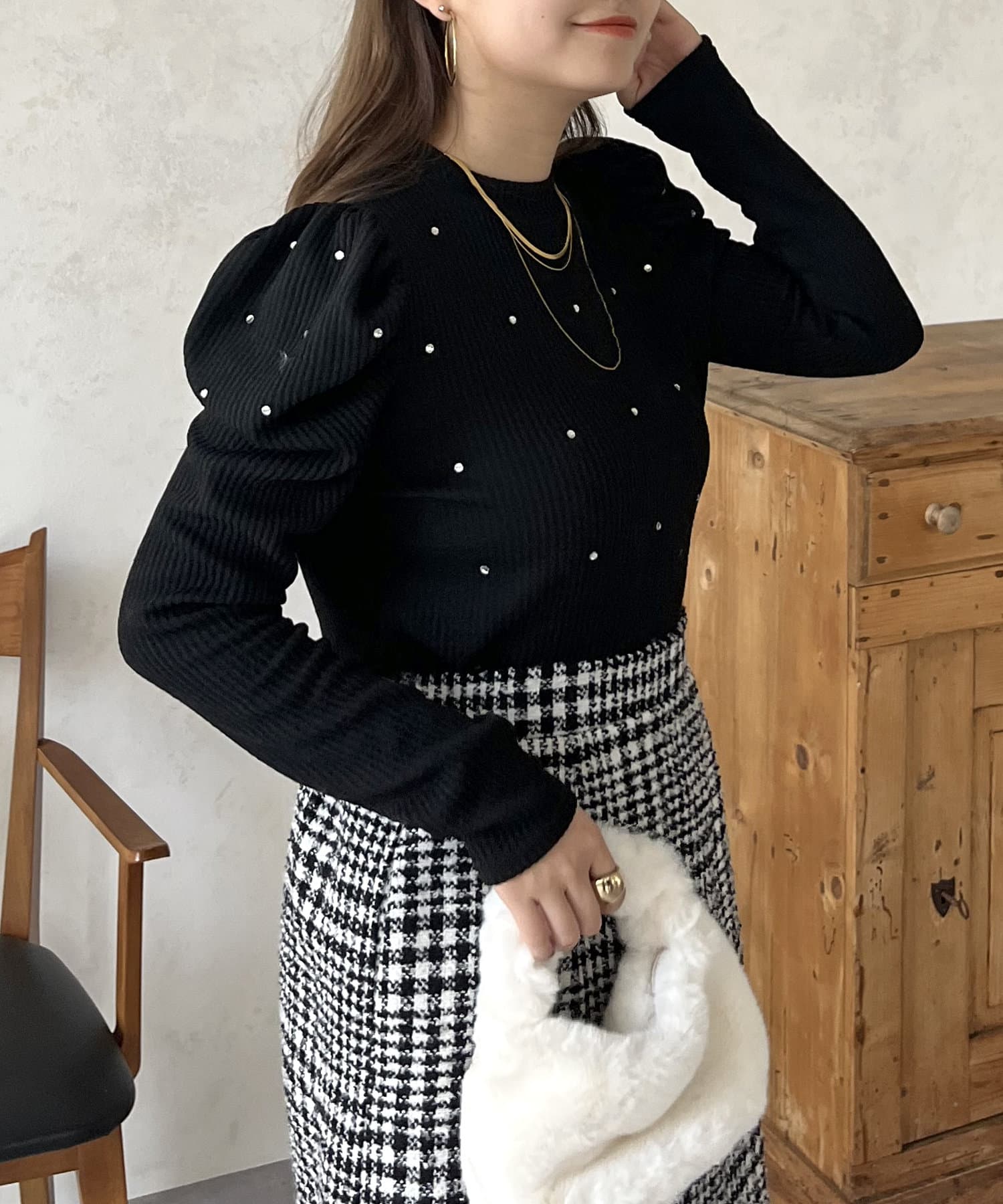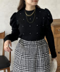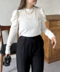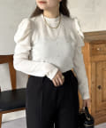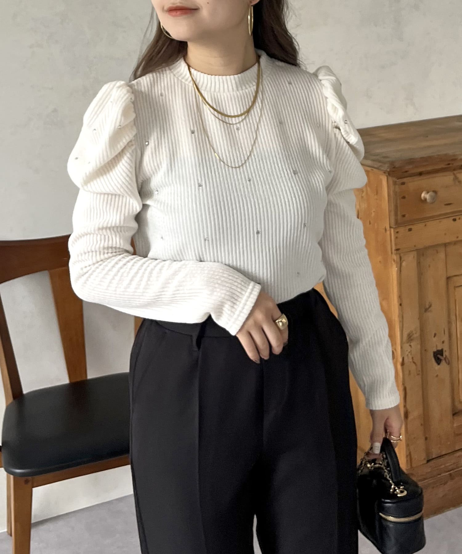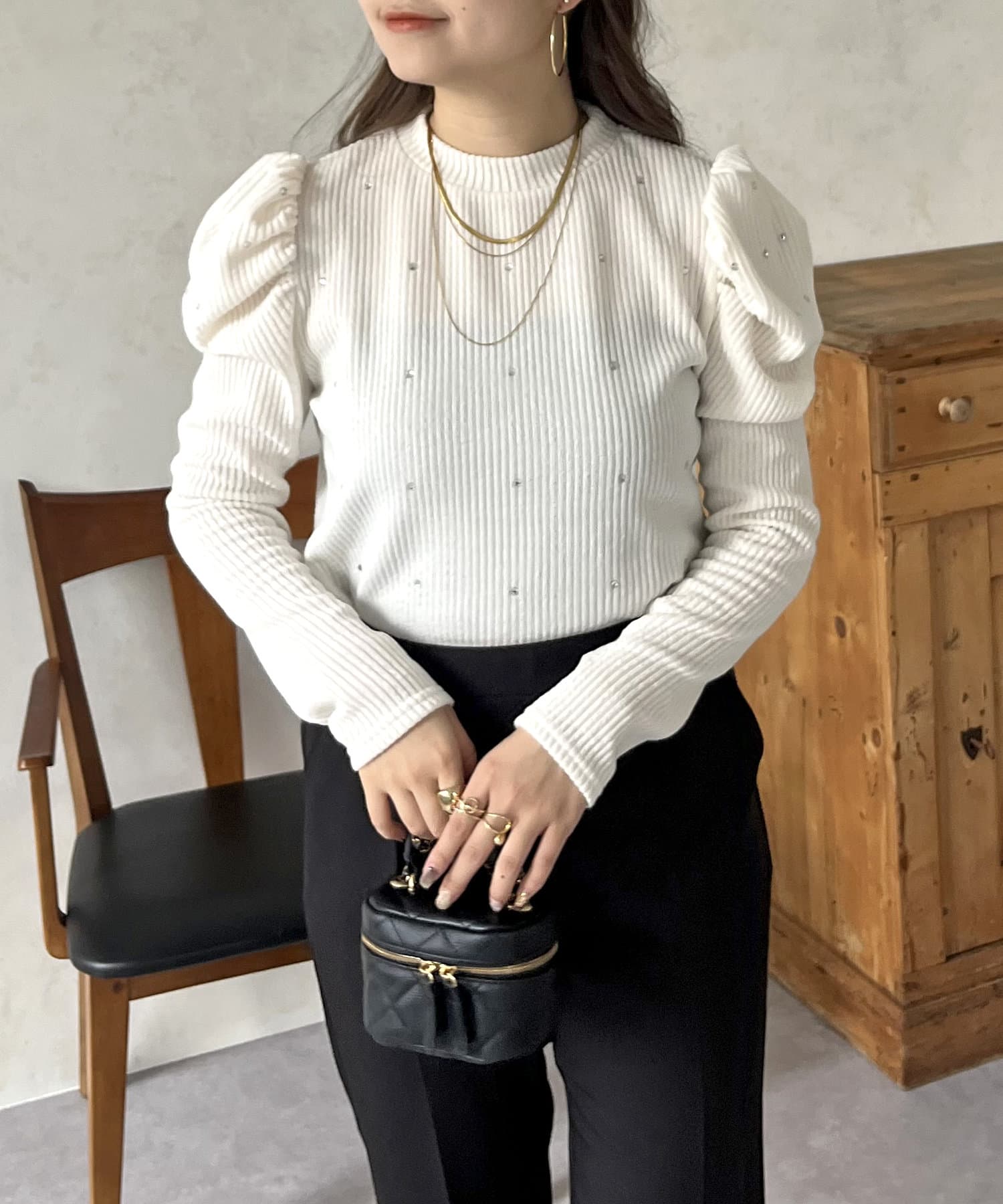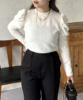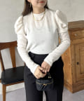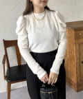 ラインストーン/シャーリング/ボリュームスリーブ/袖ボリューム/上品見え
