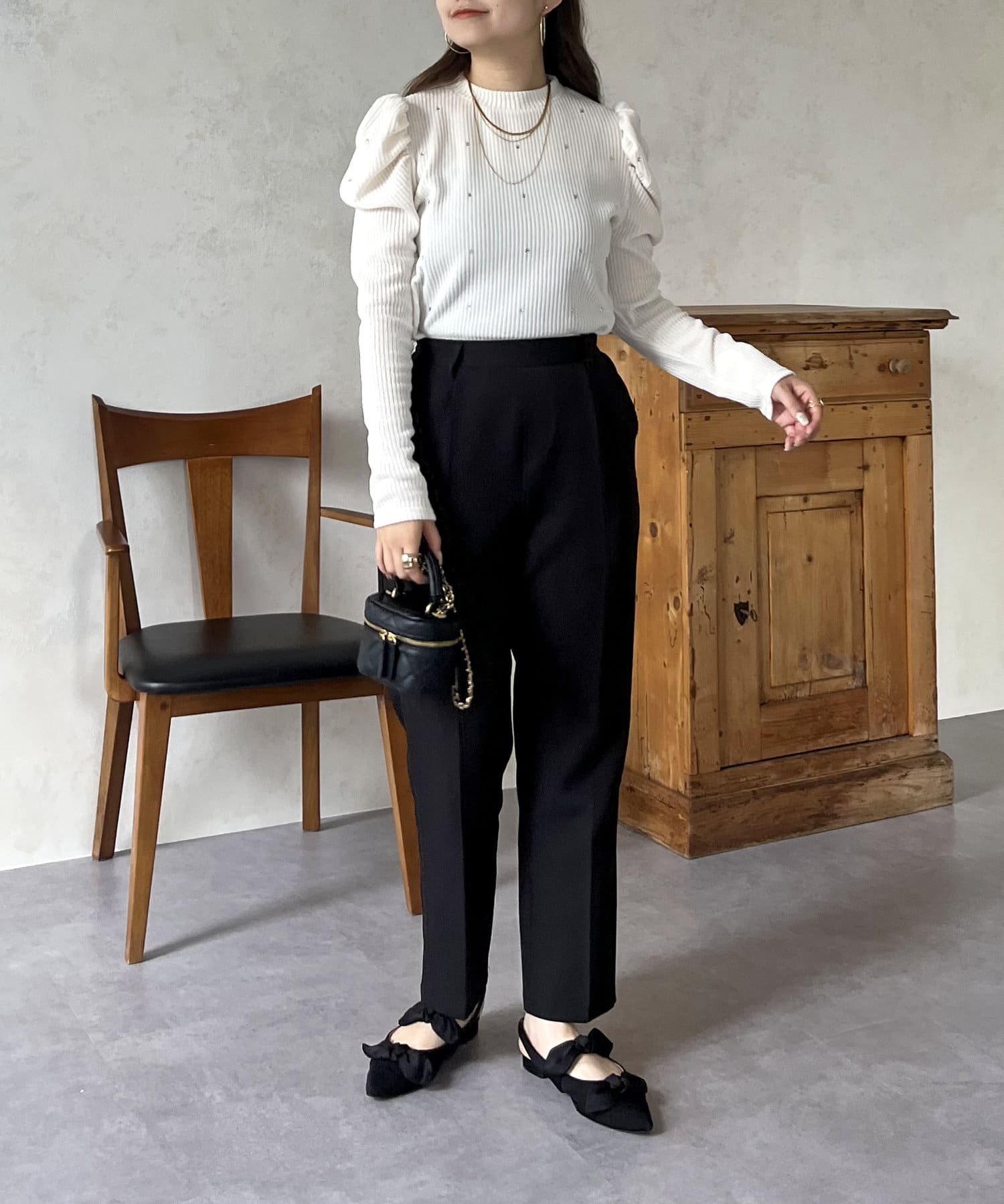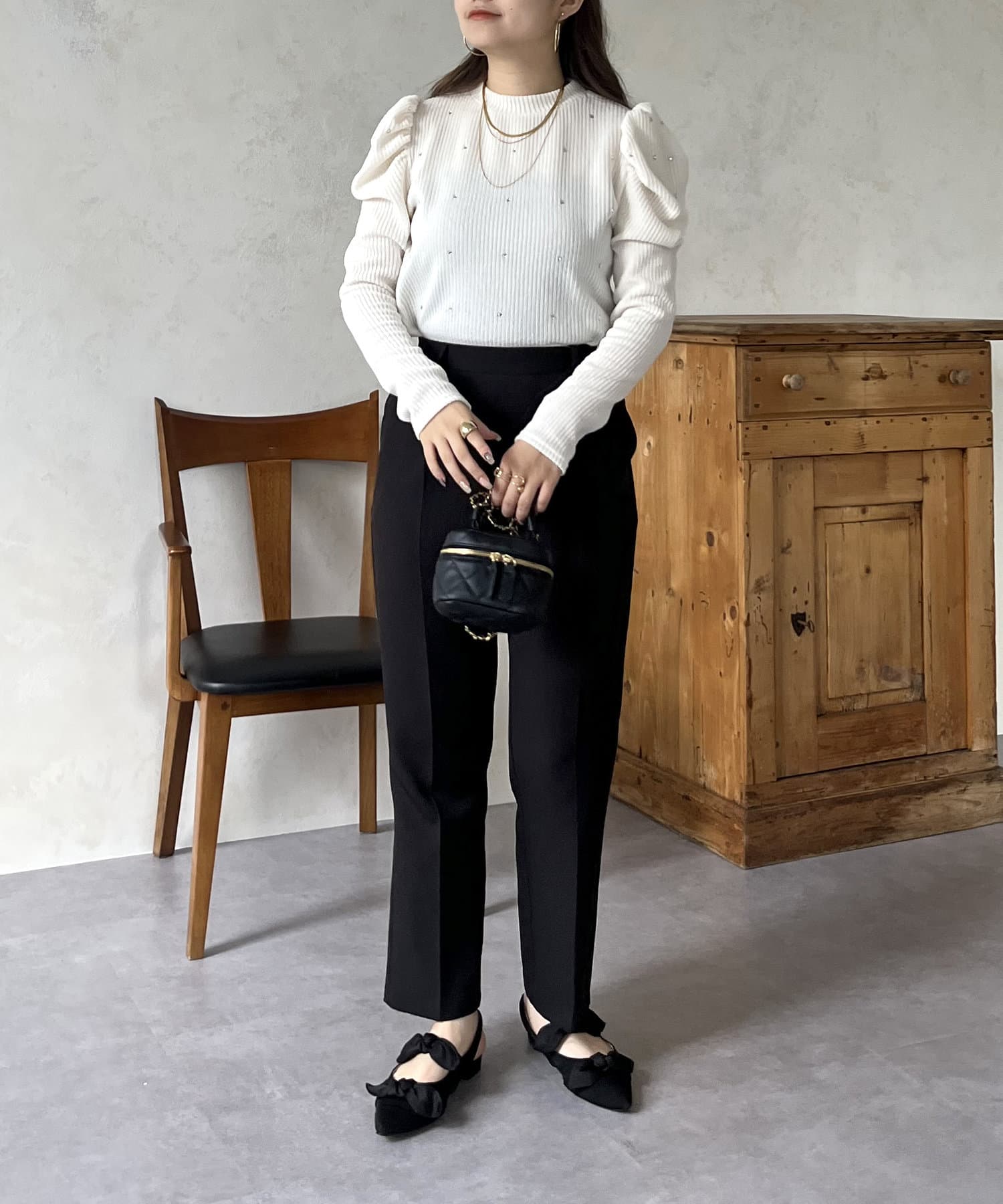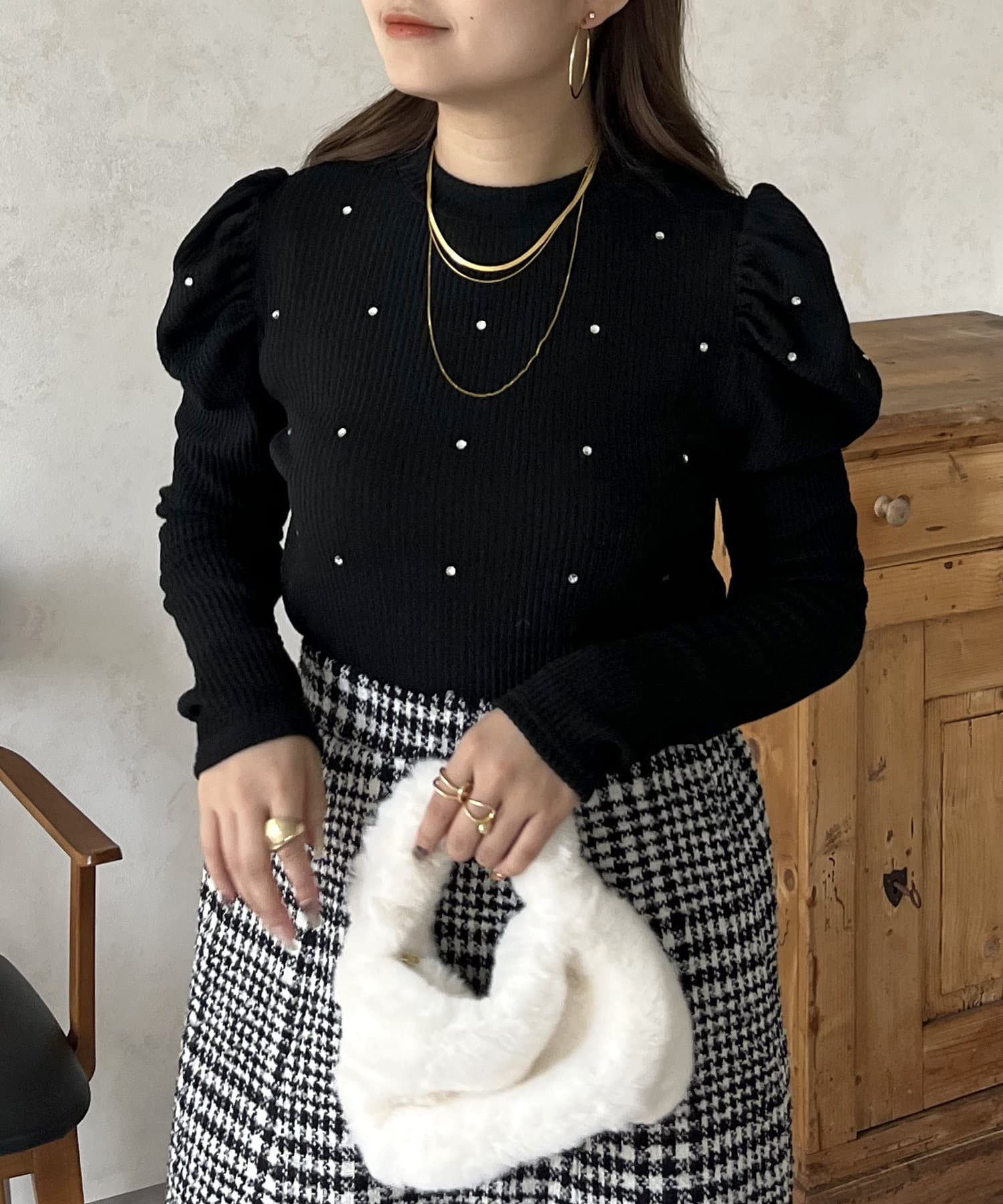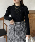 ラインストーン/シャーリング/ボリュームスリーブ/袖ボリューム/上品見え
