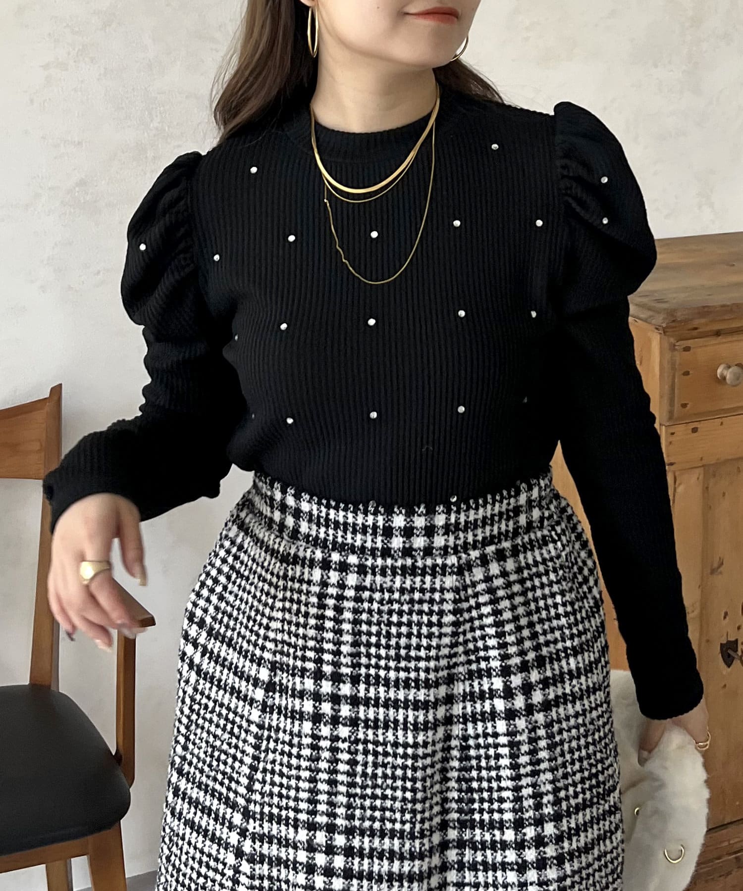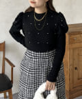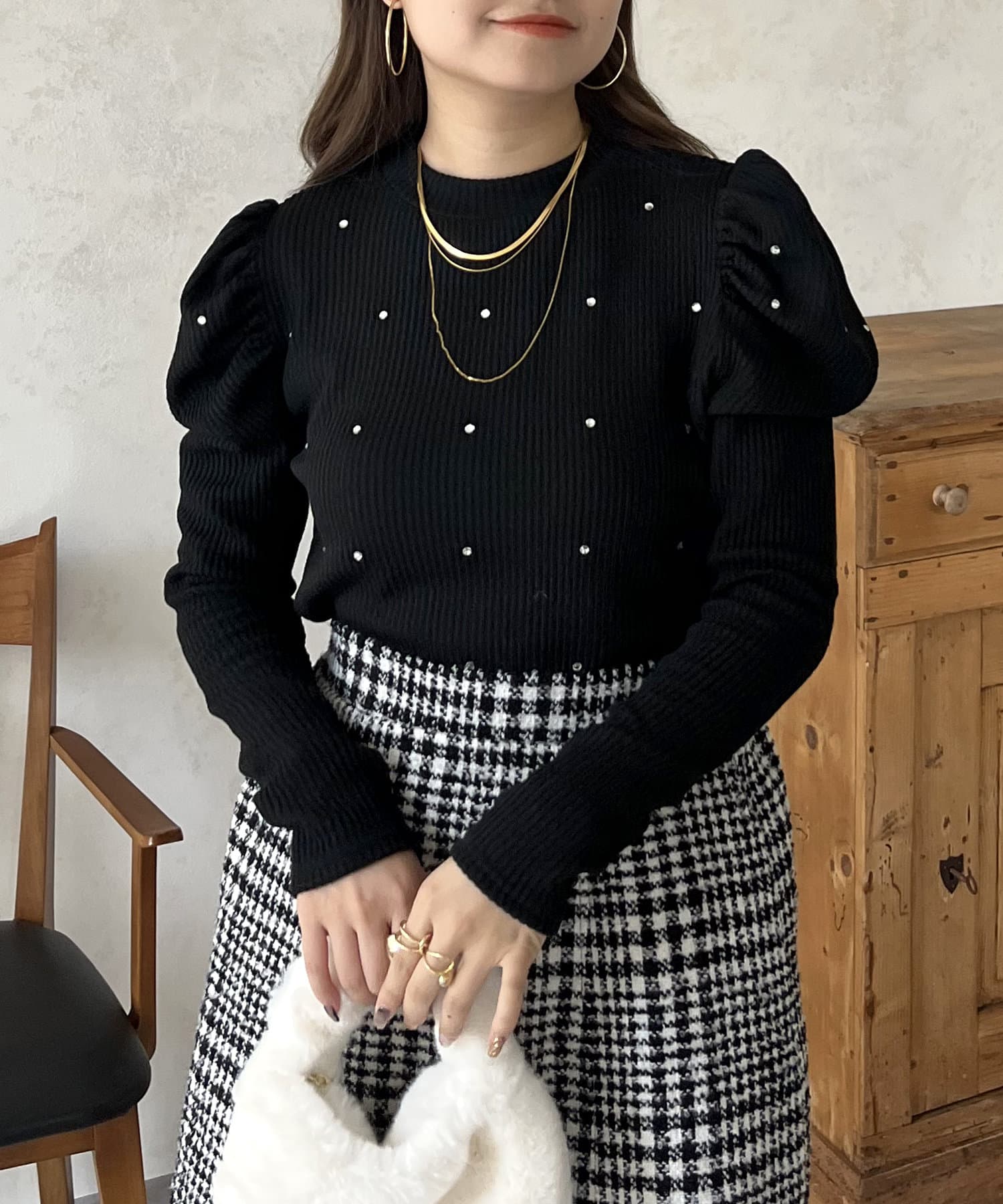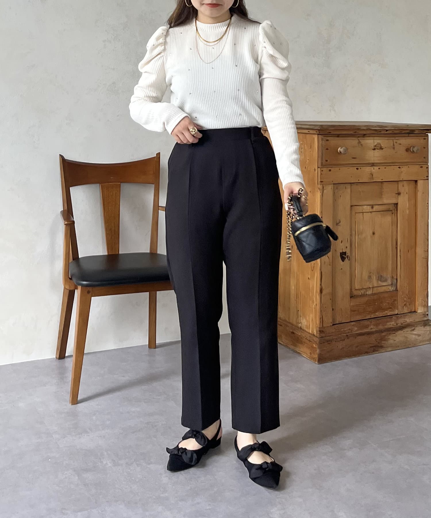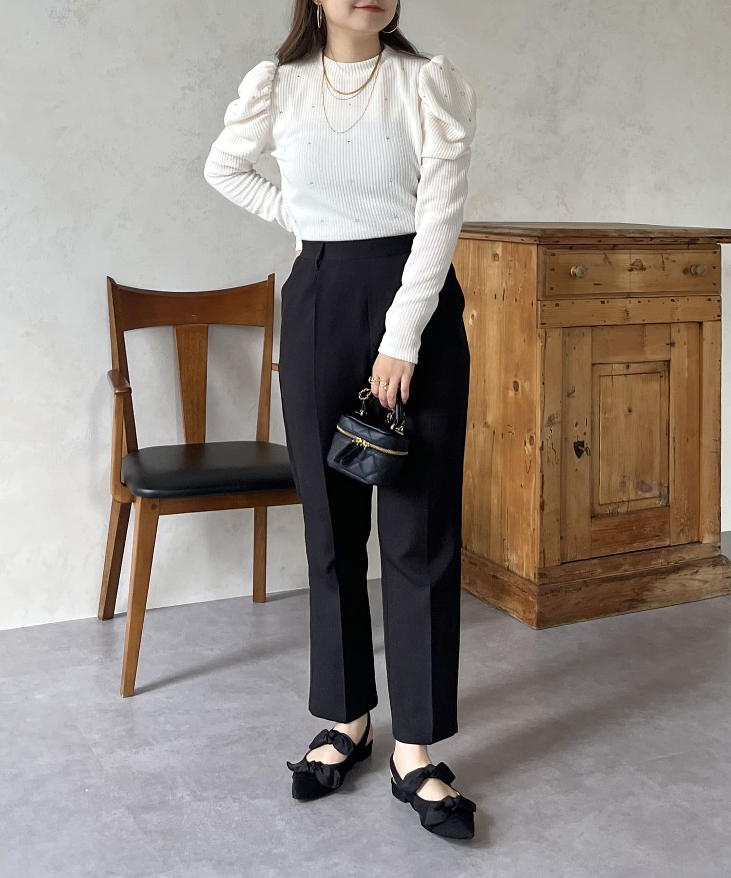 ラインストーン/シャーリング/ボリュームスリーブ/袖ボリューム/上品見え