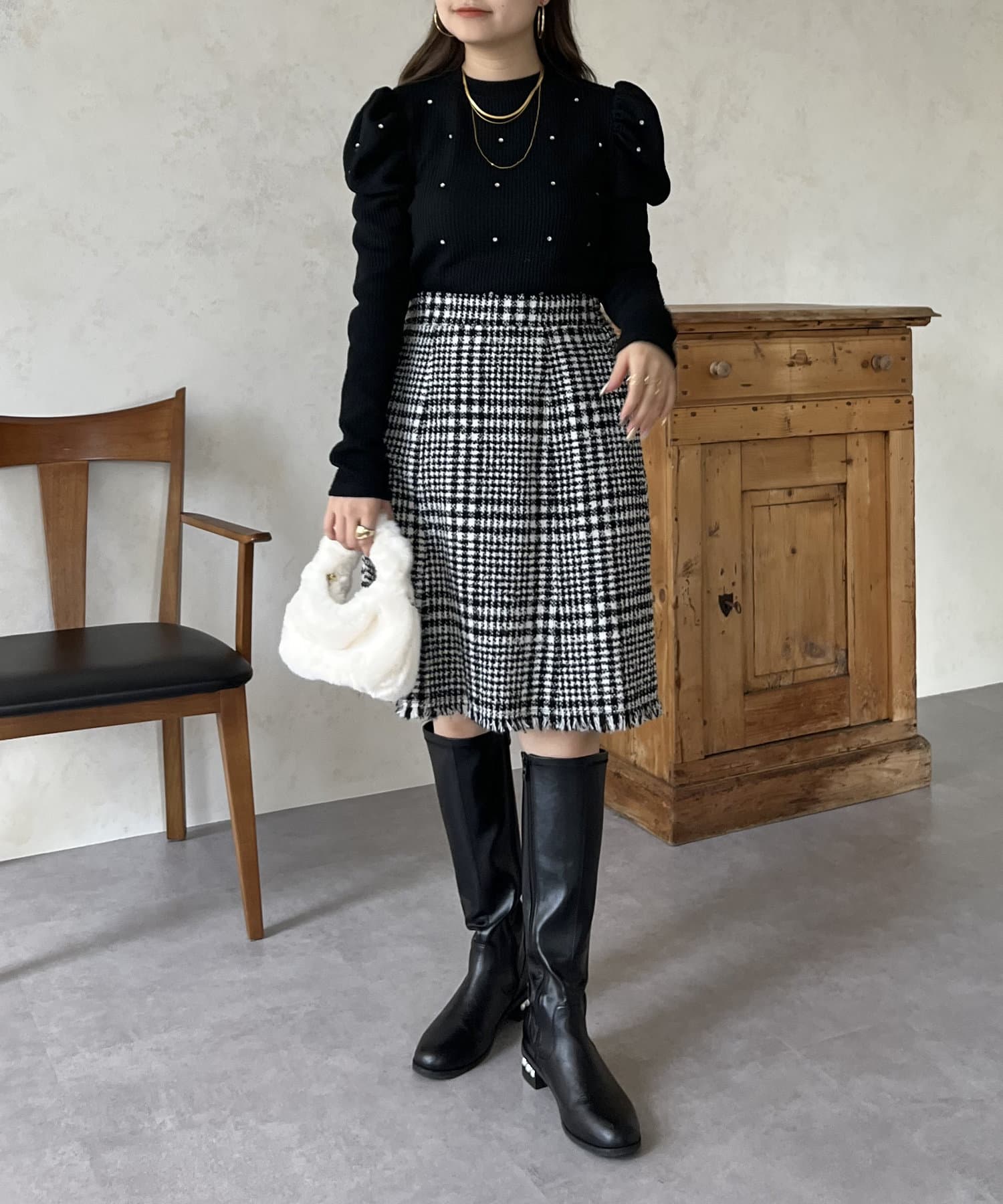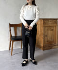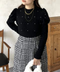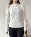ラインストーンが目に惹くパワショルリブ起毛カットソー