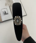 ビジュがアクセントになるベロアカチューシャ
