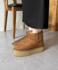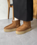 スタイルアップを叶えてくれるショート丈厚底ムートンブーツ