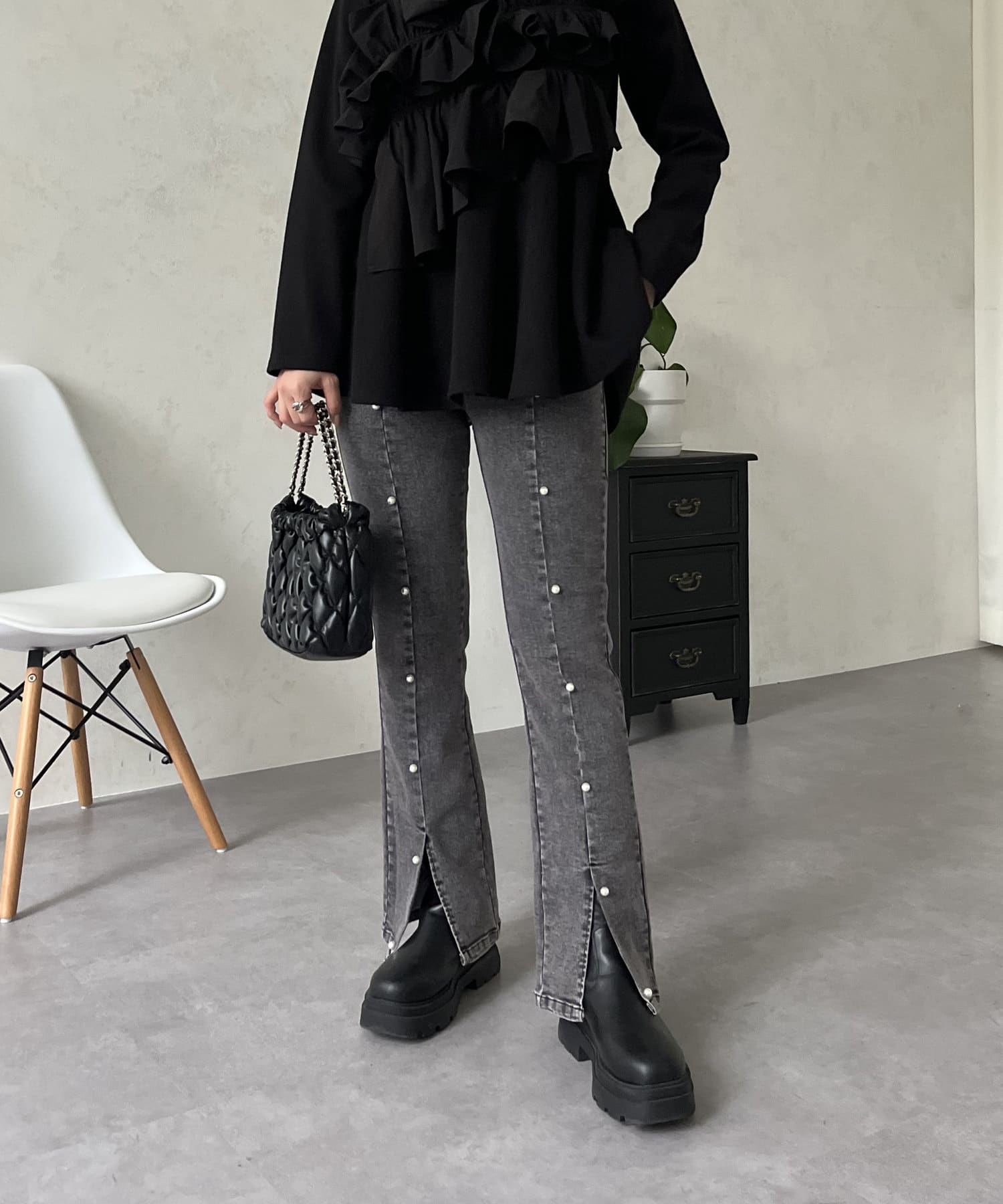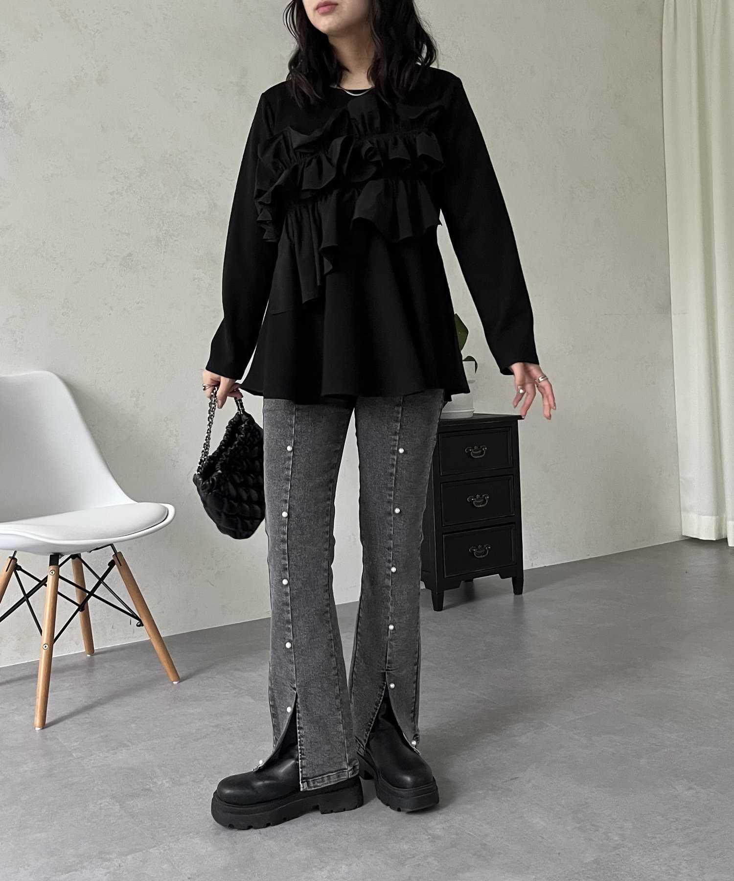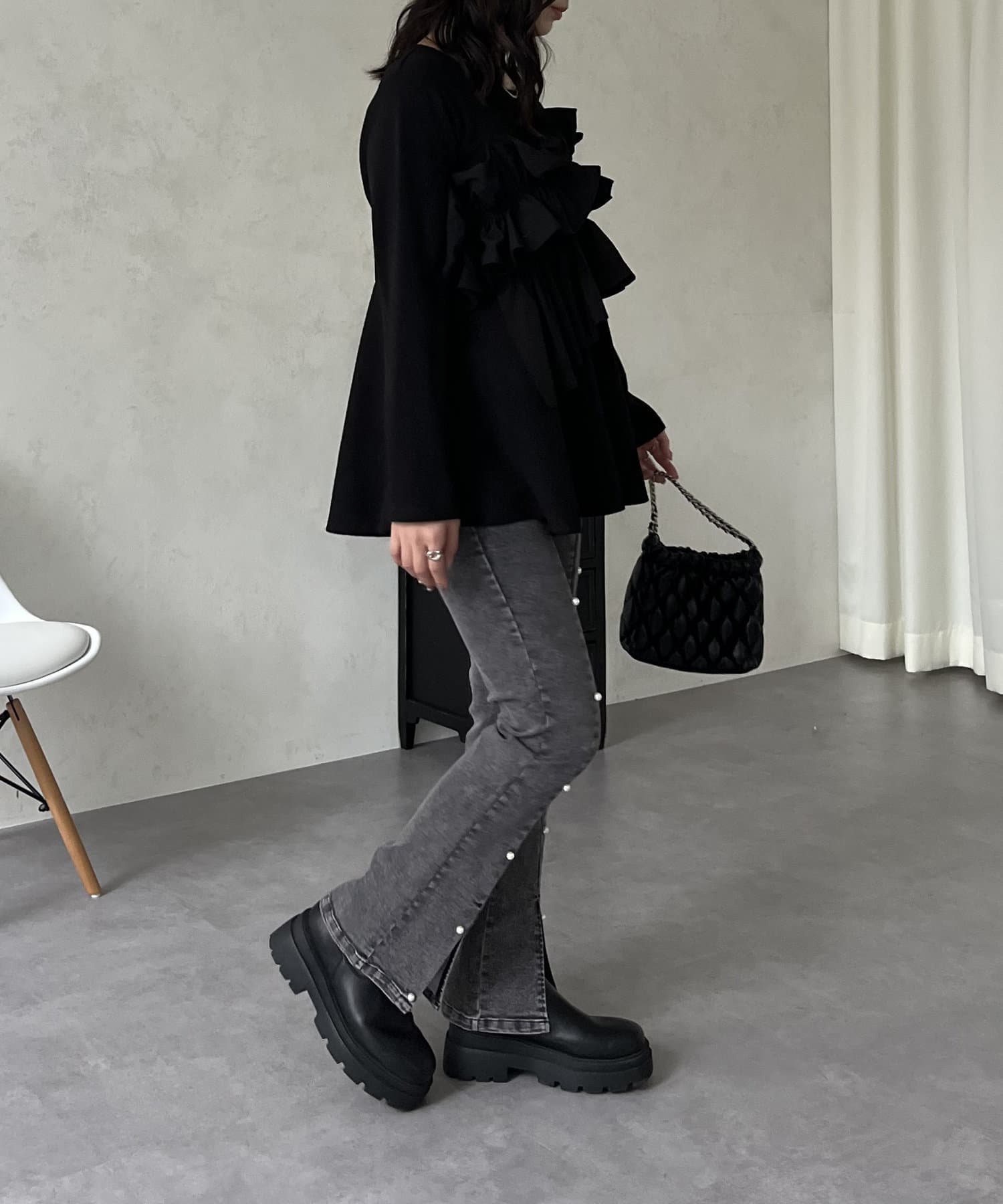 ●パールがあることで女性らしさを持ちつつカジュアルスタイルを楽しめます