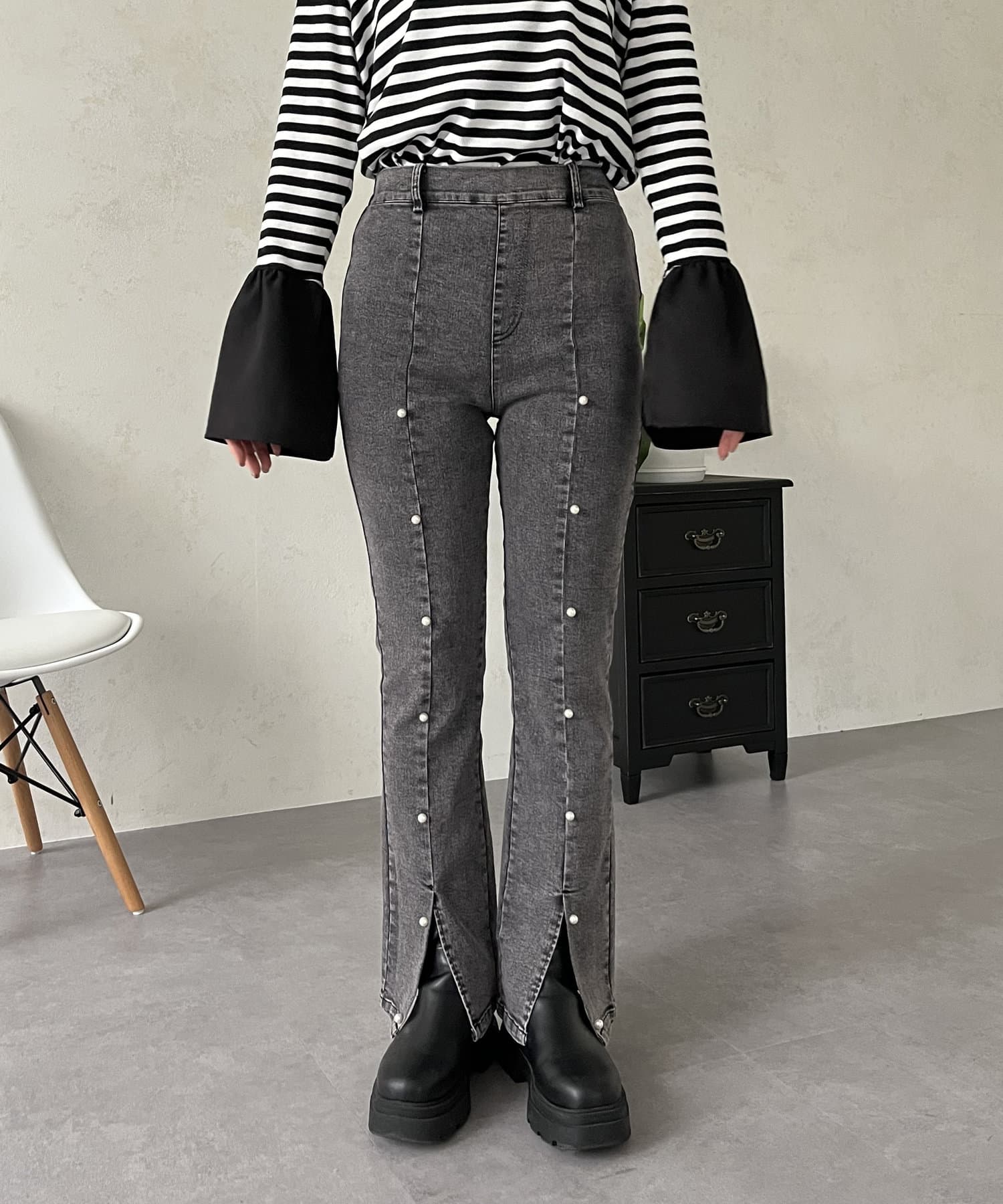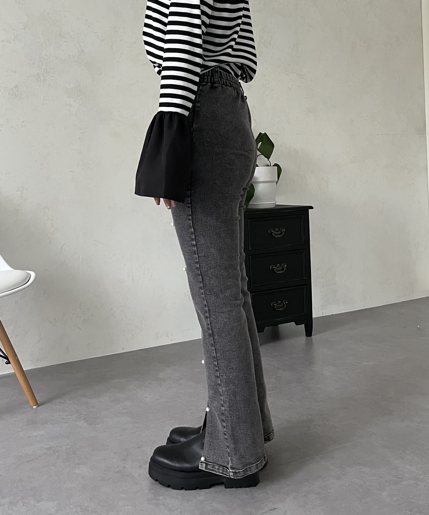 スーパーストレッチパールスリットパンツ