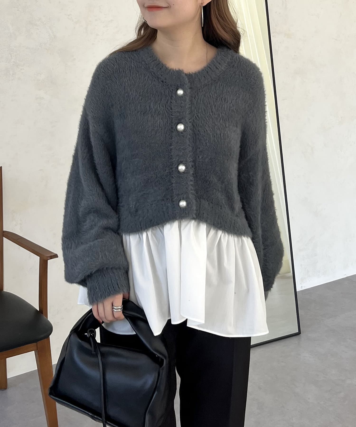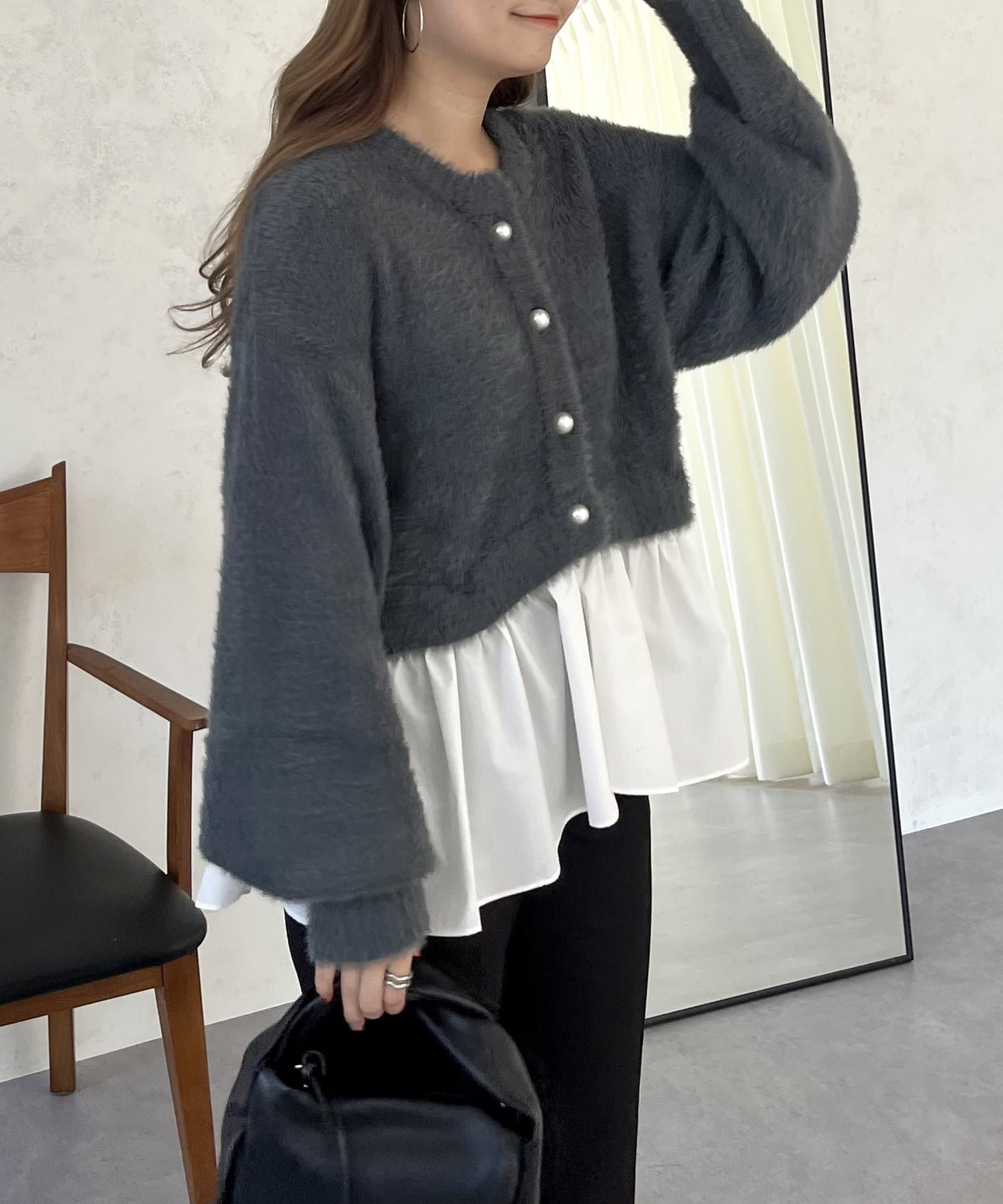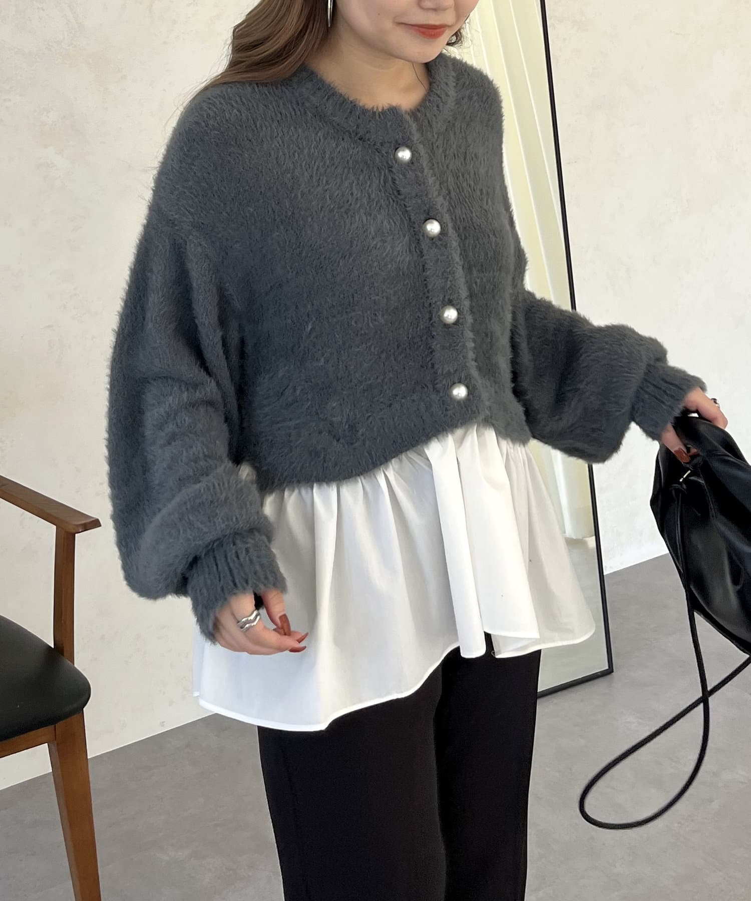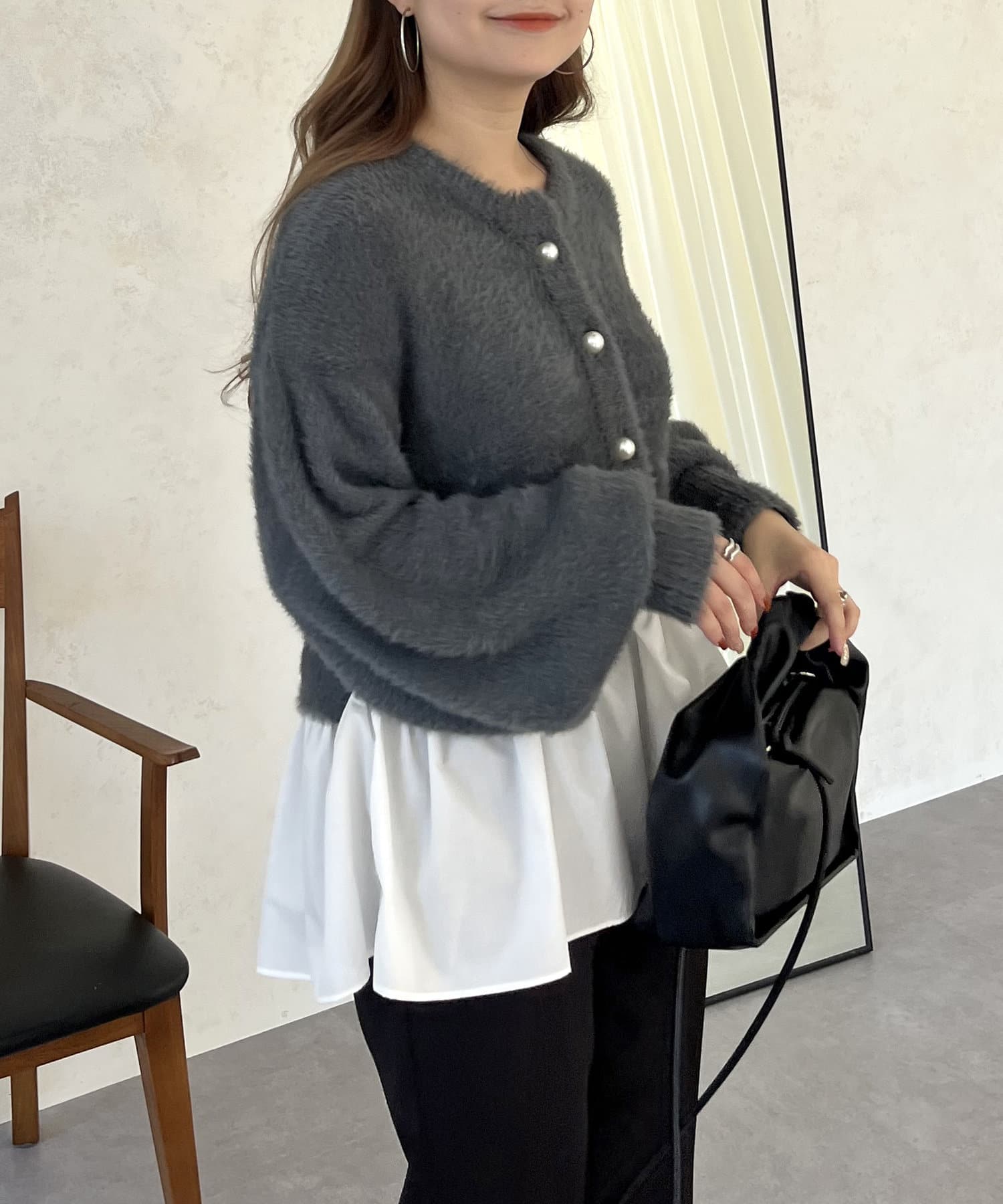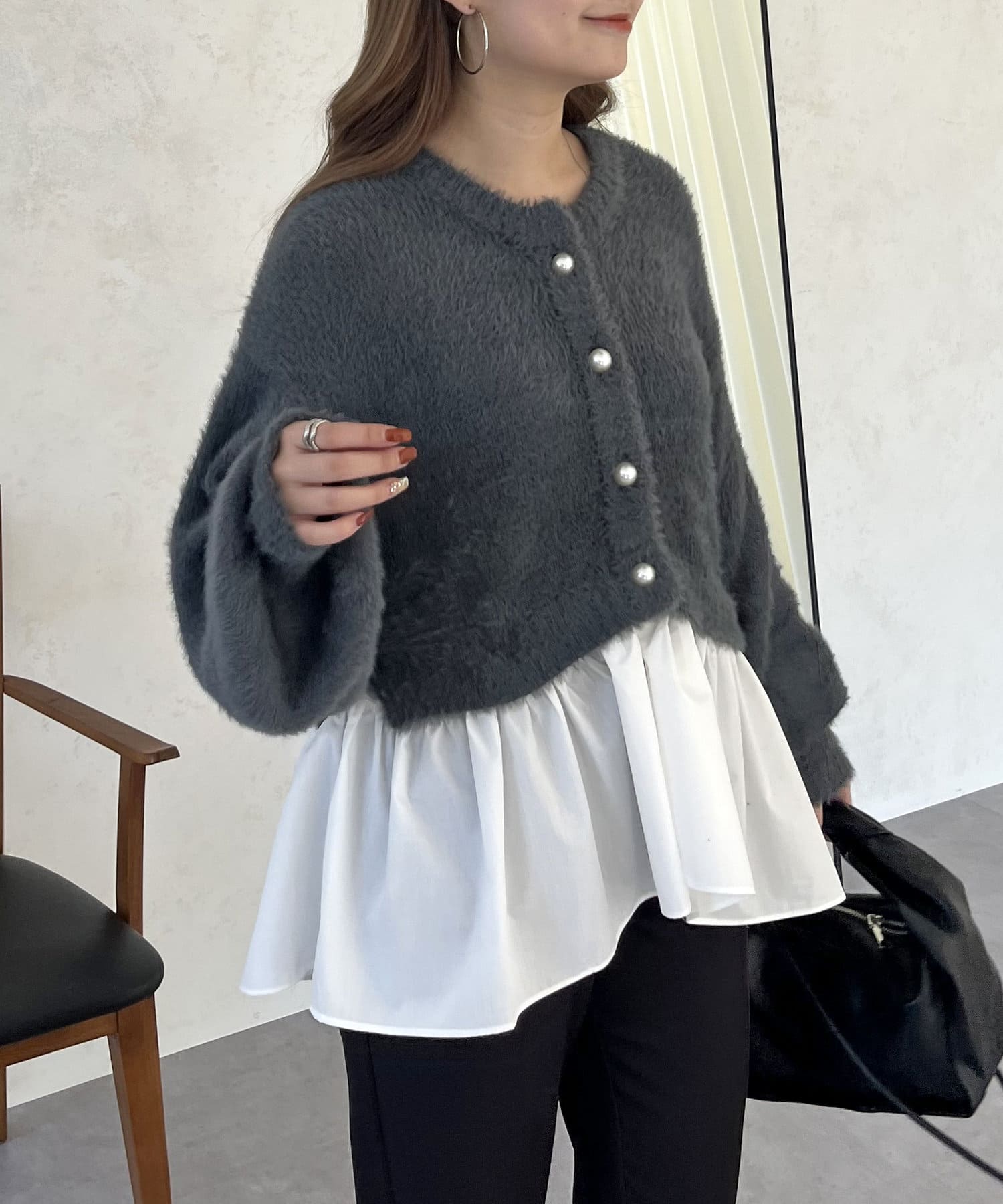 【裾取り外し可能】2wayパール釦シャギーペプラムカーディガン
