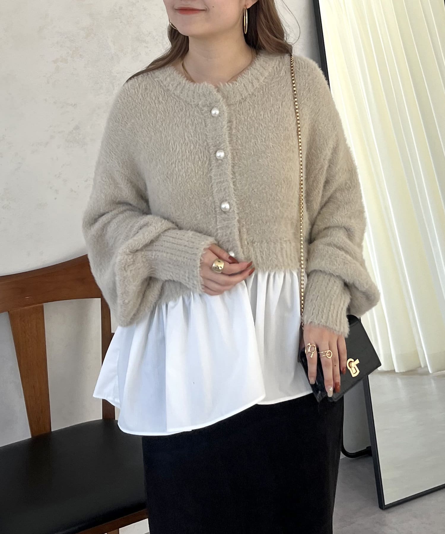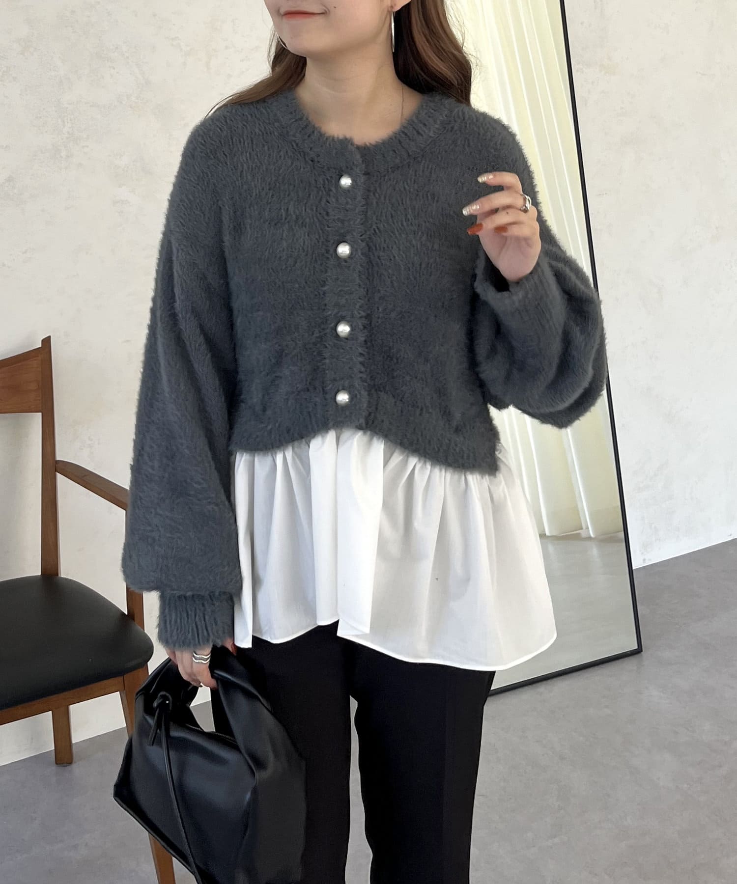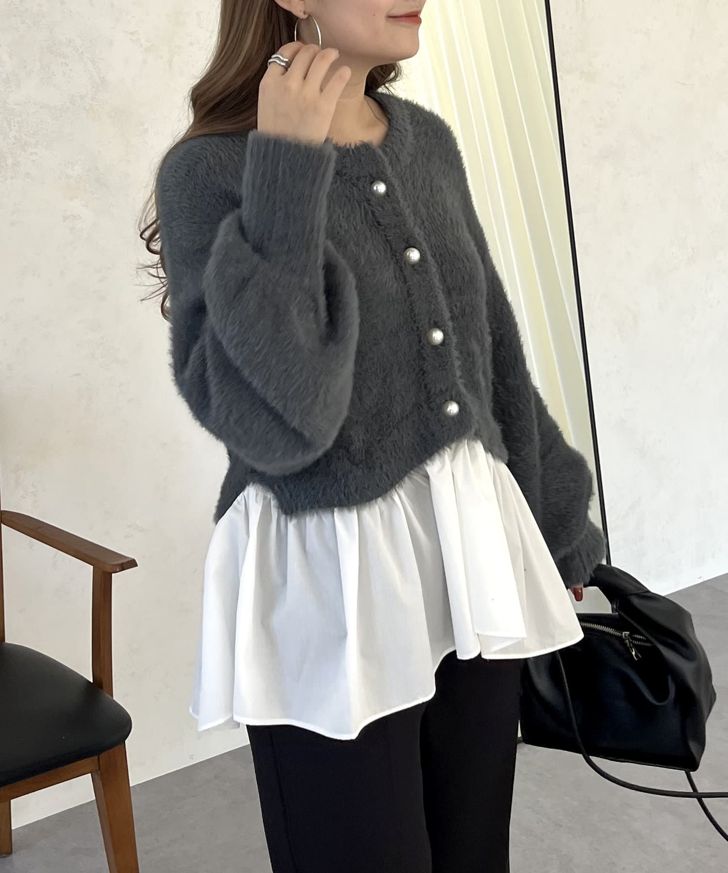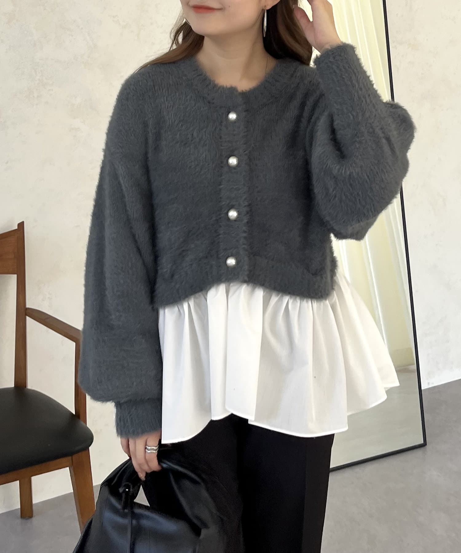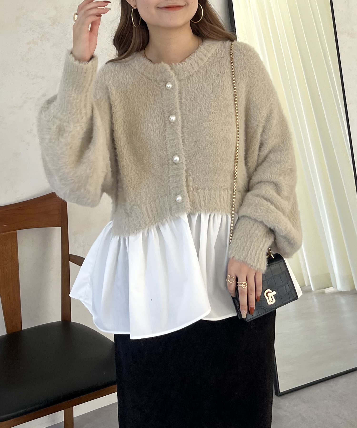 【裾取り外し可能】2wayパール釦シャギーペプラムカーディガン