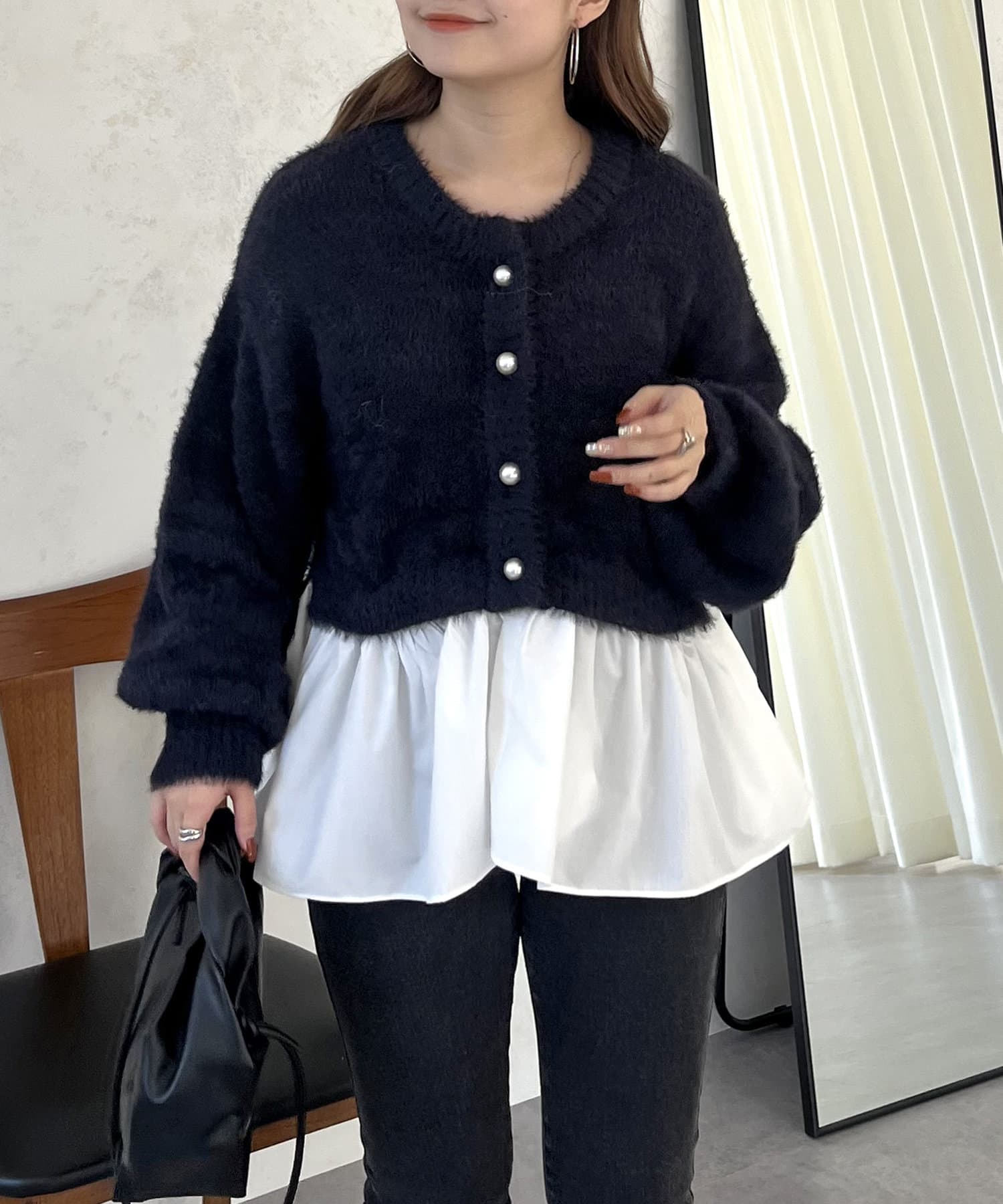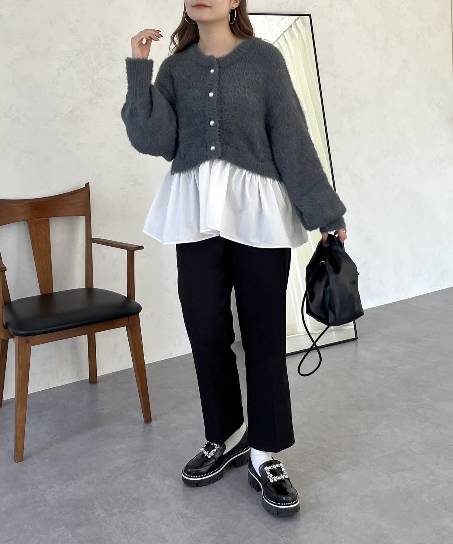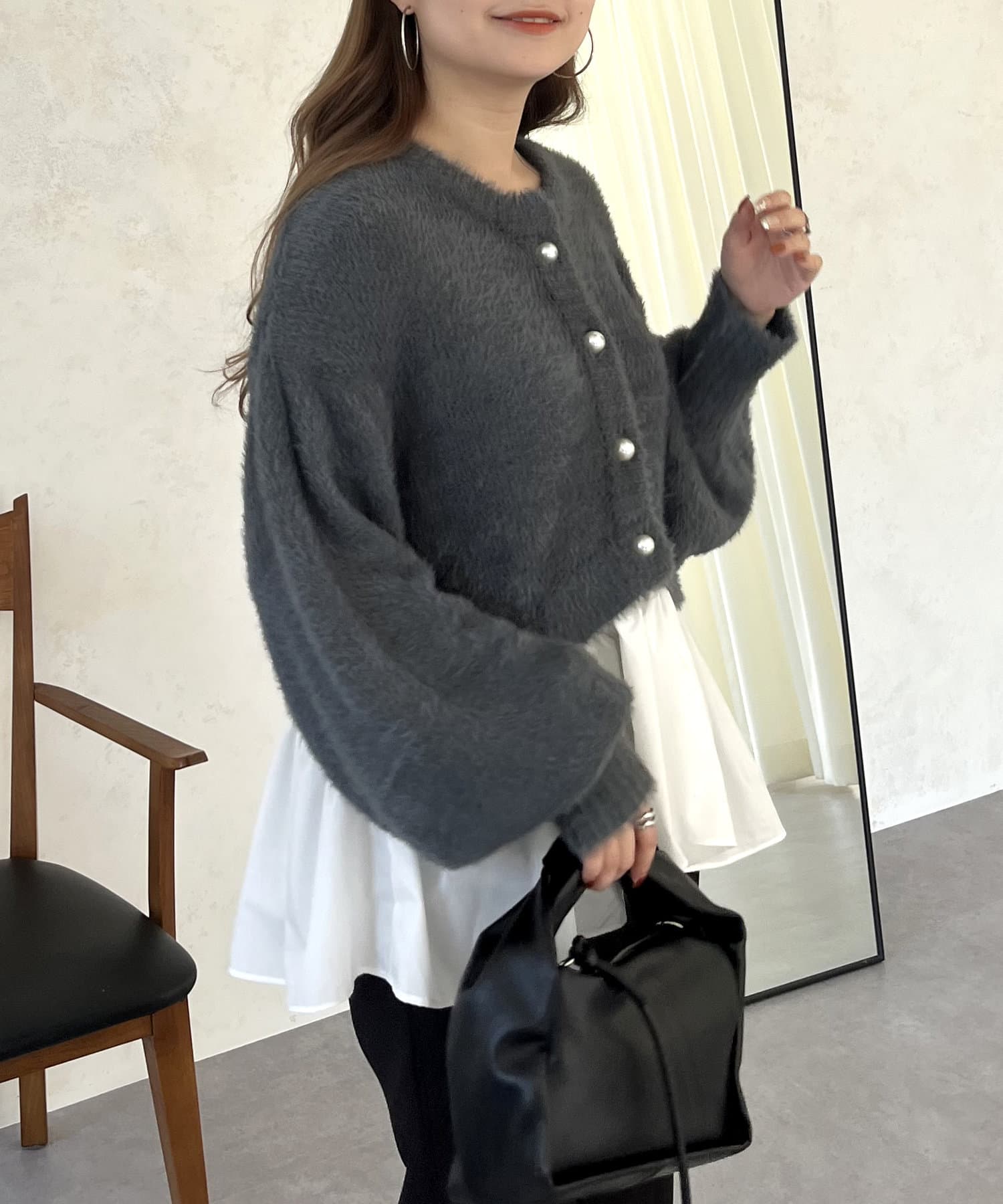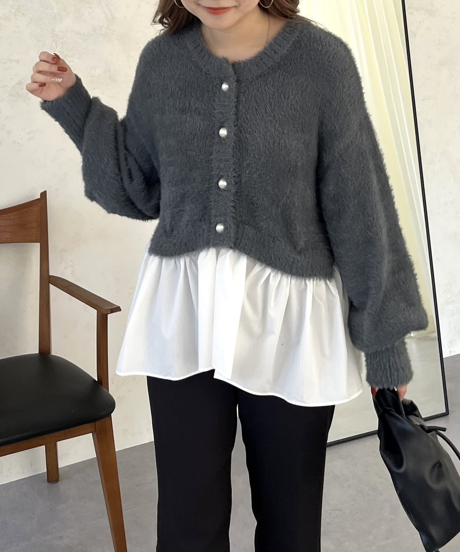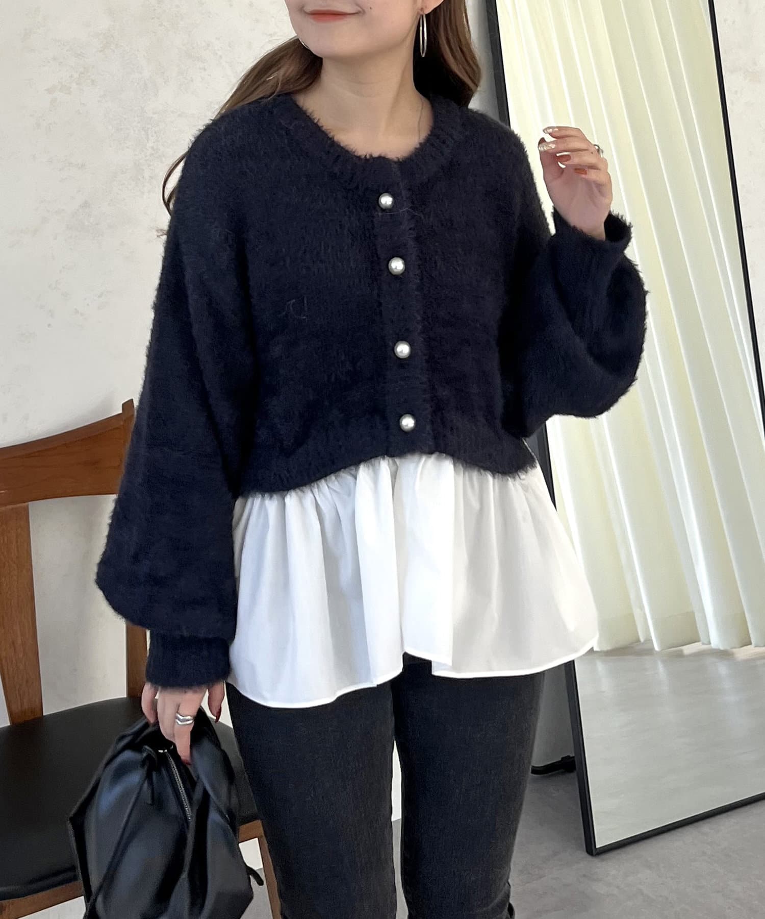 【裾取り外し可能】2wayパール釦シャギーペプラムカーディガン