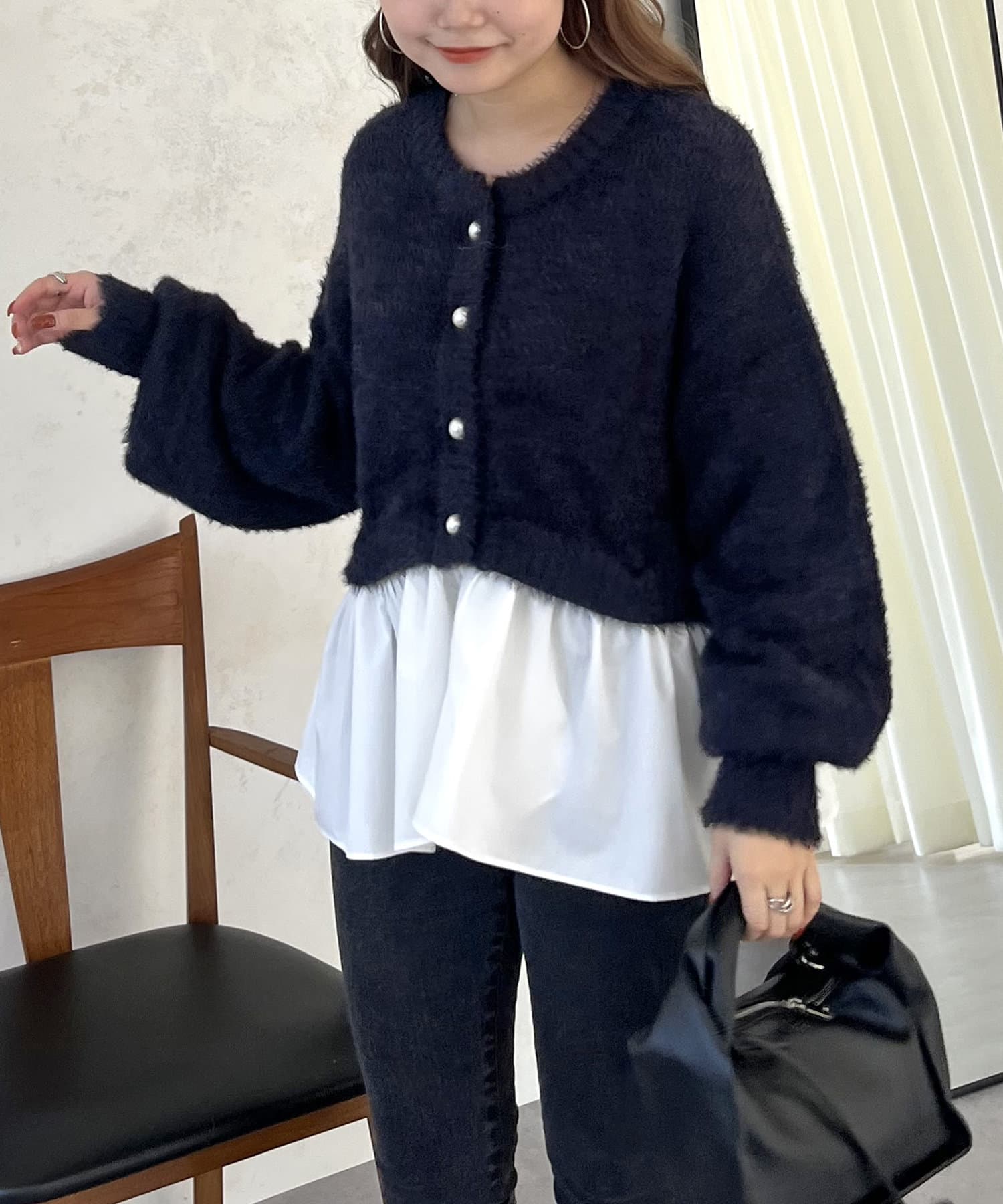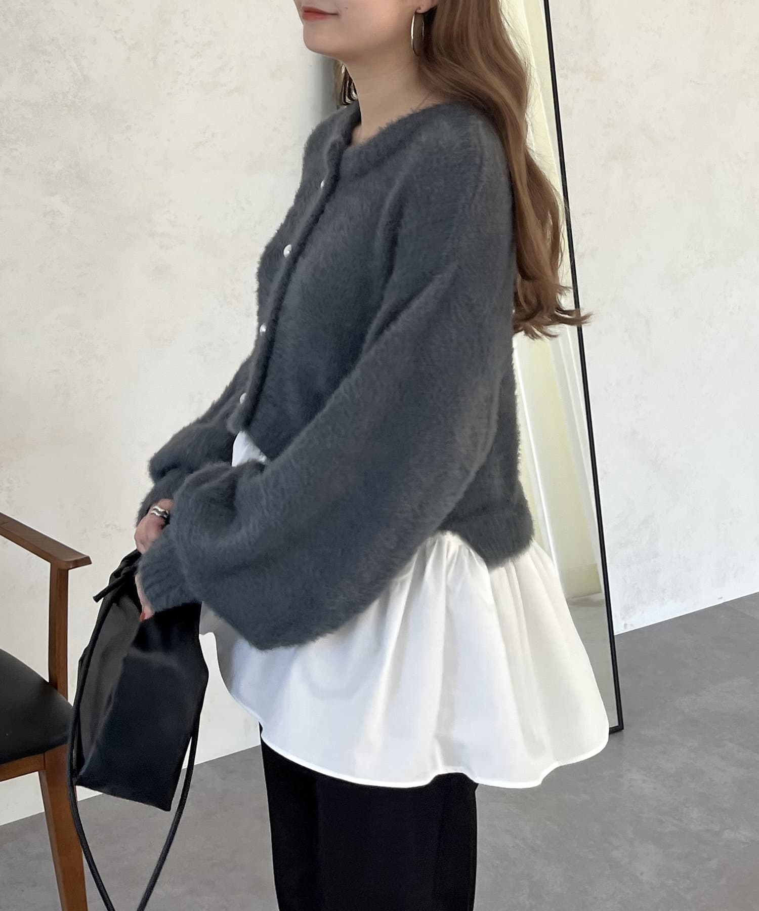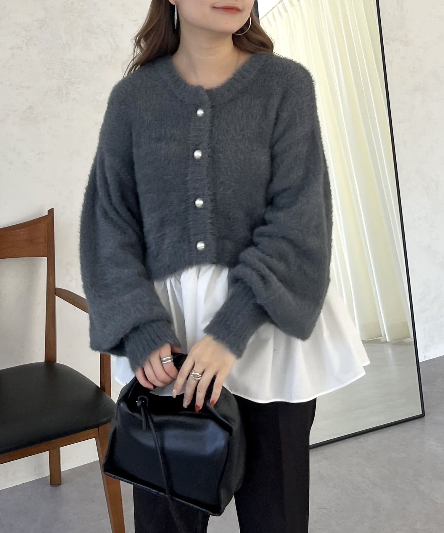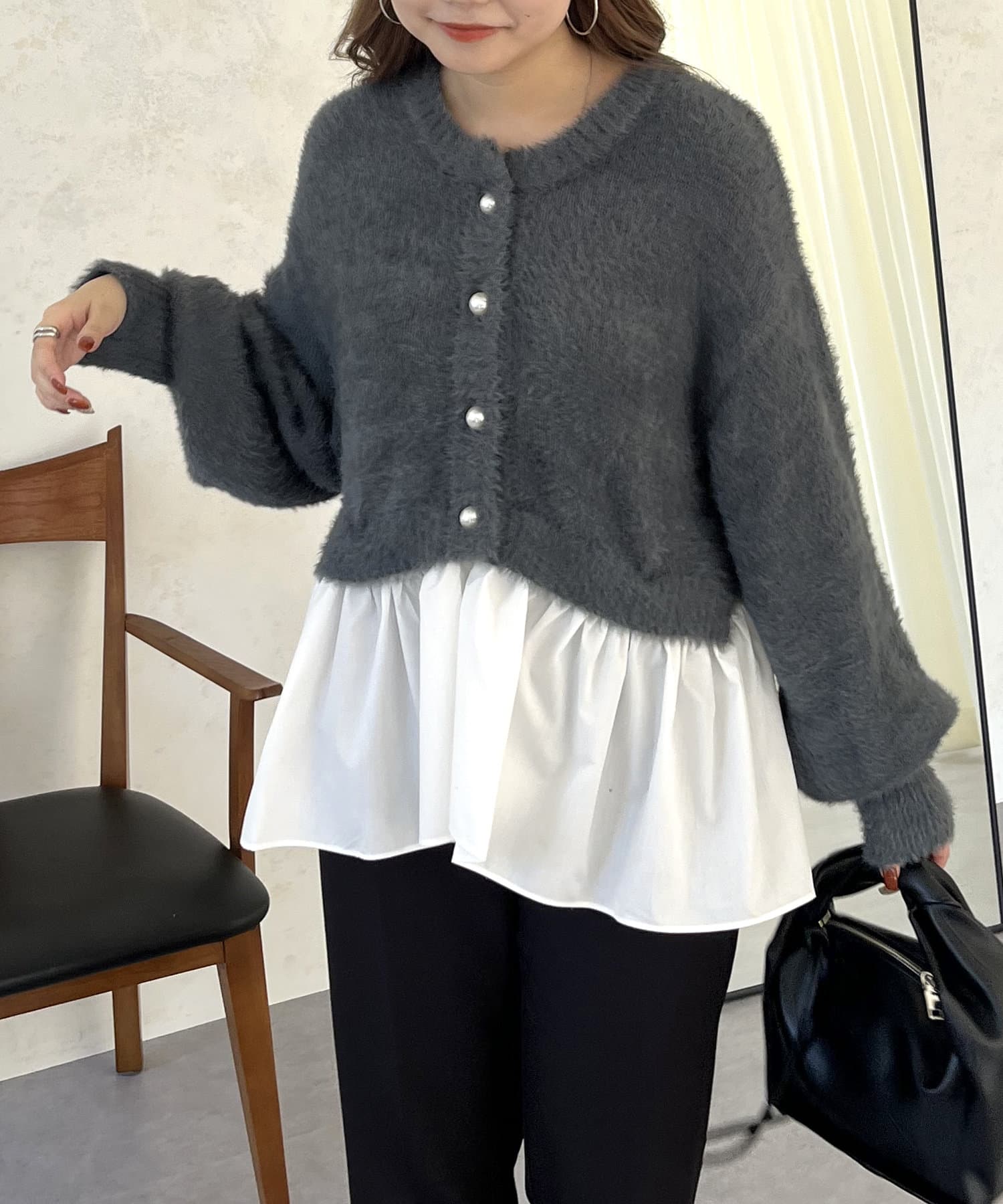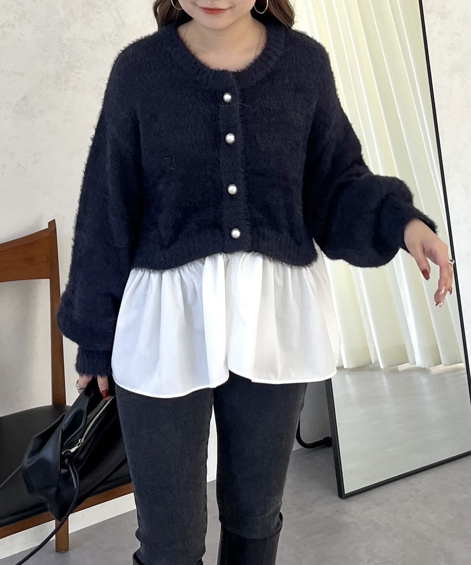 【裾取り外し可能】2wayパール釦シャギーペプラムカーディガン