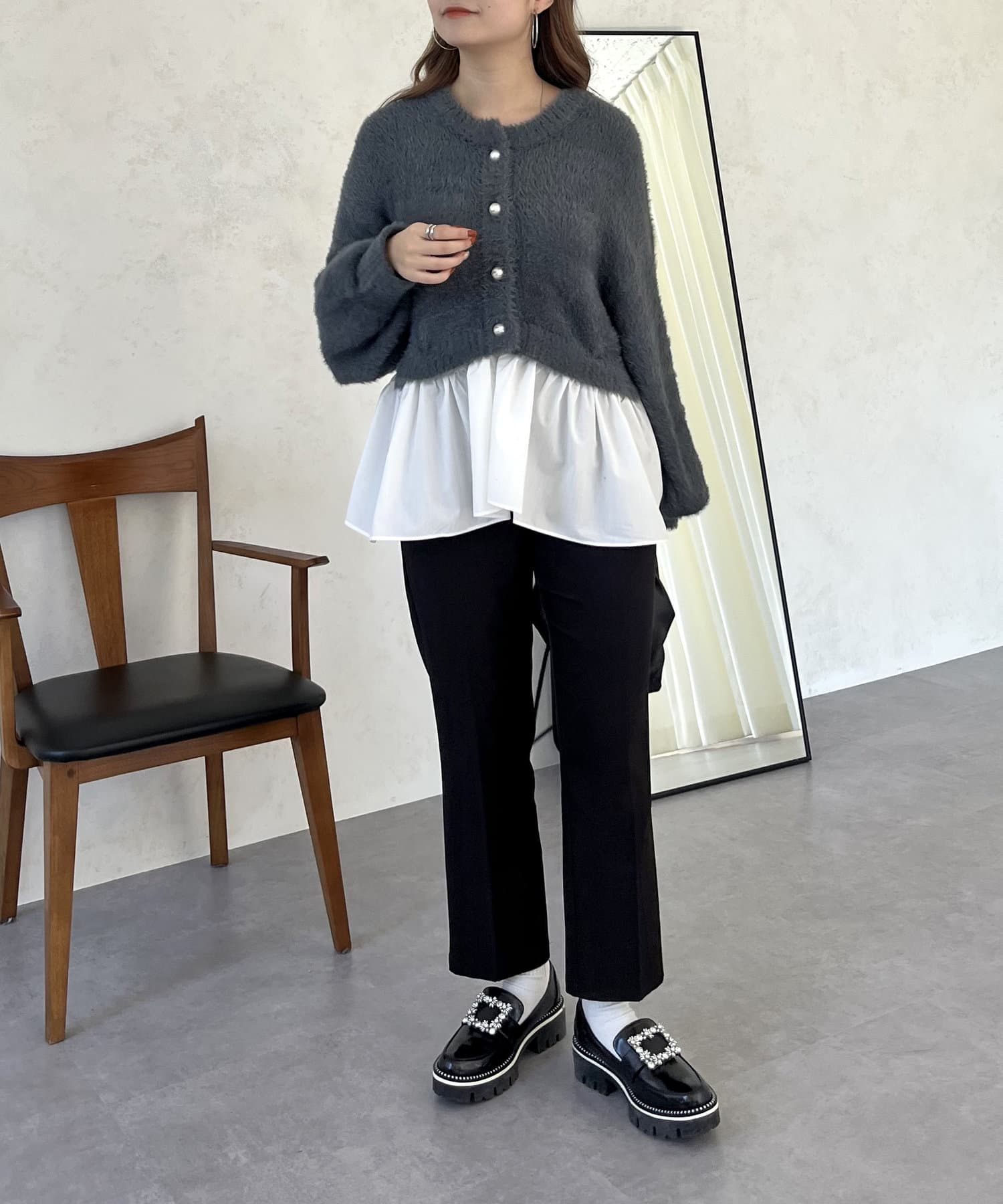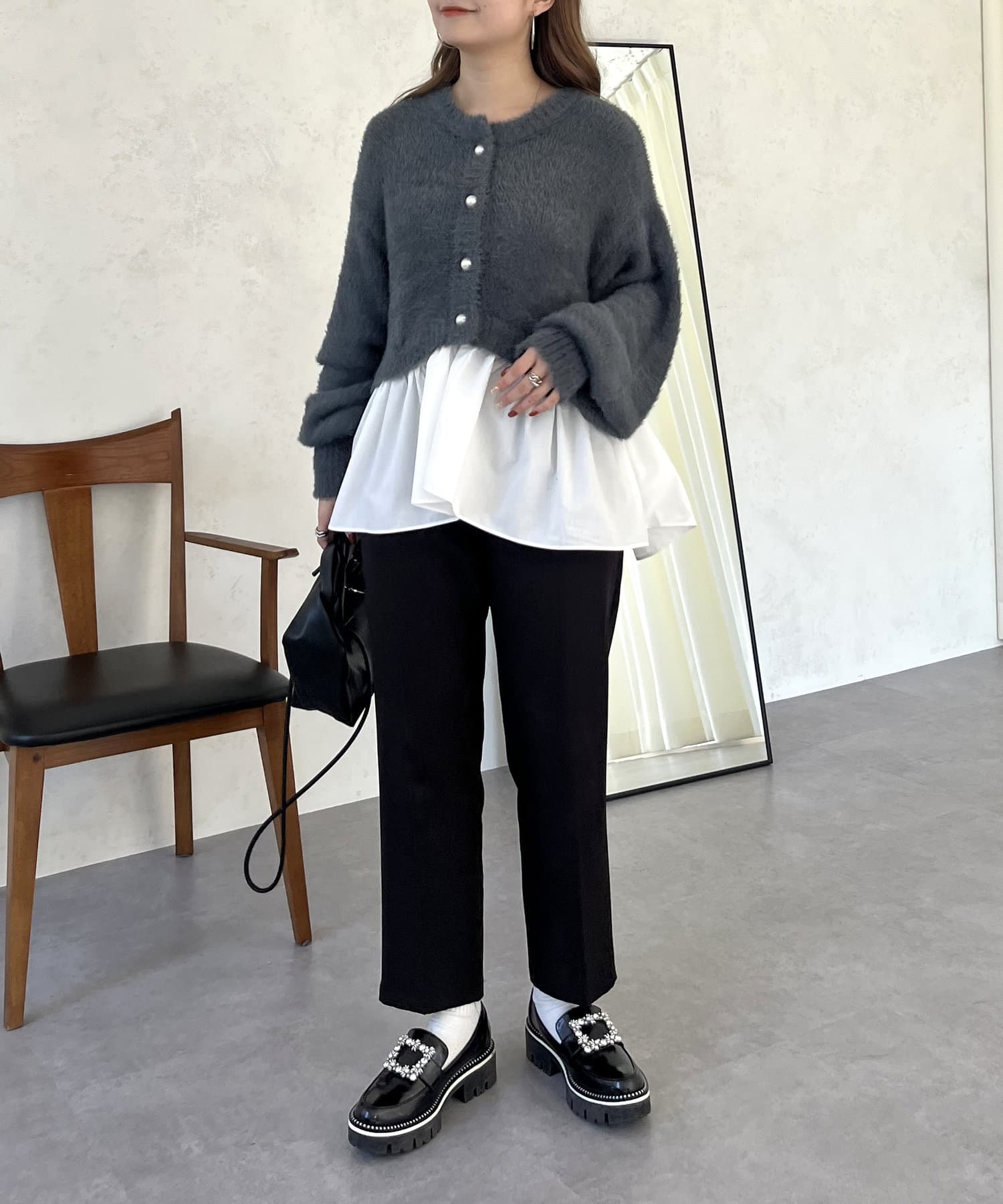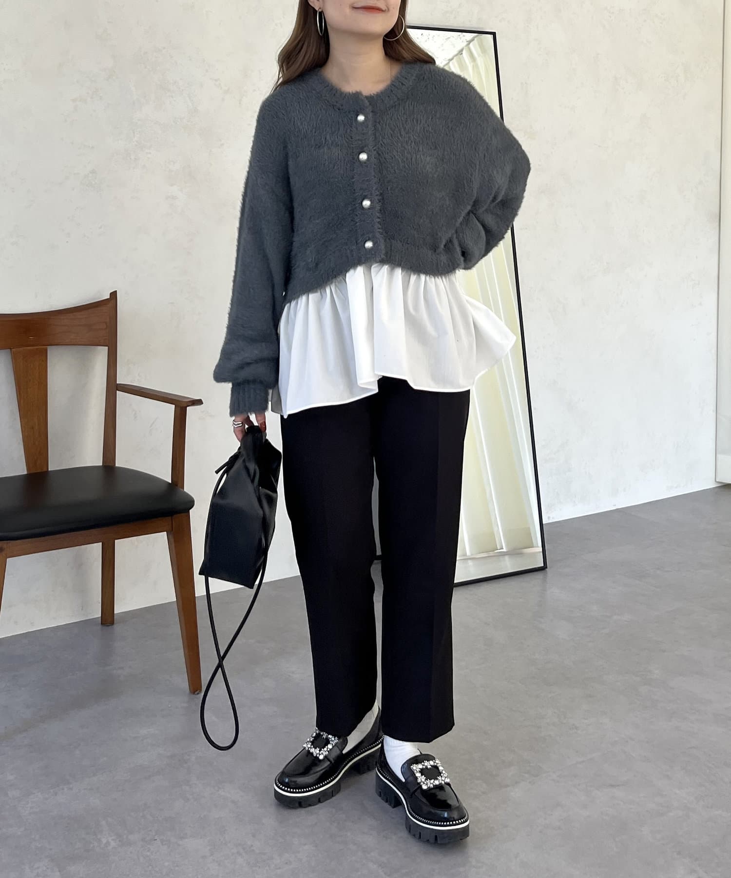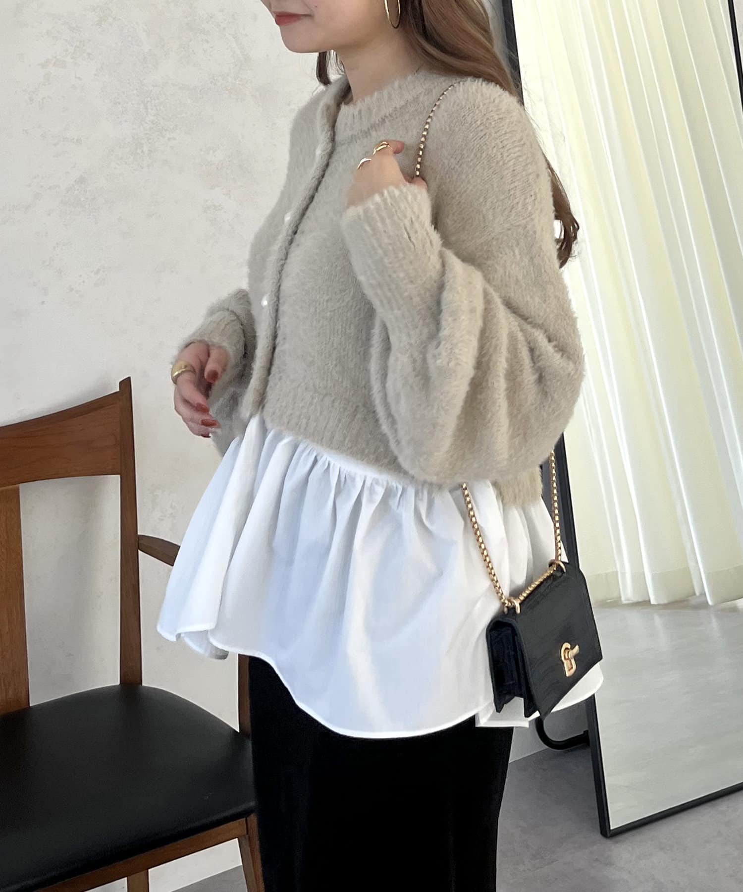【裾取り外し可能】2wayパール釦シャギーペプラムカーディガン