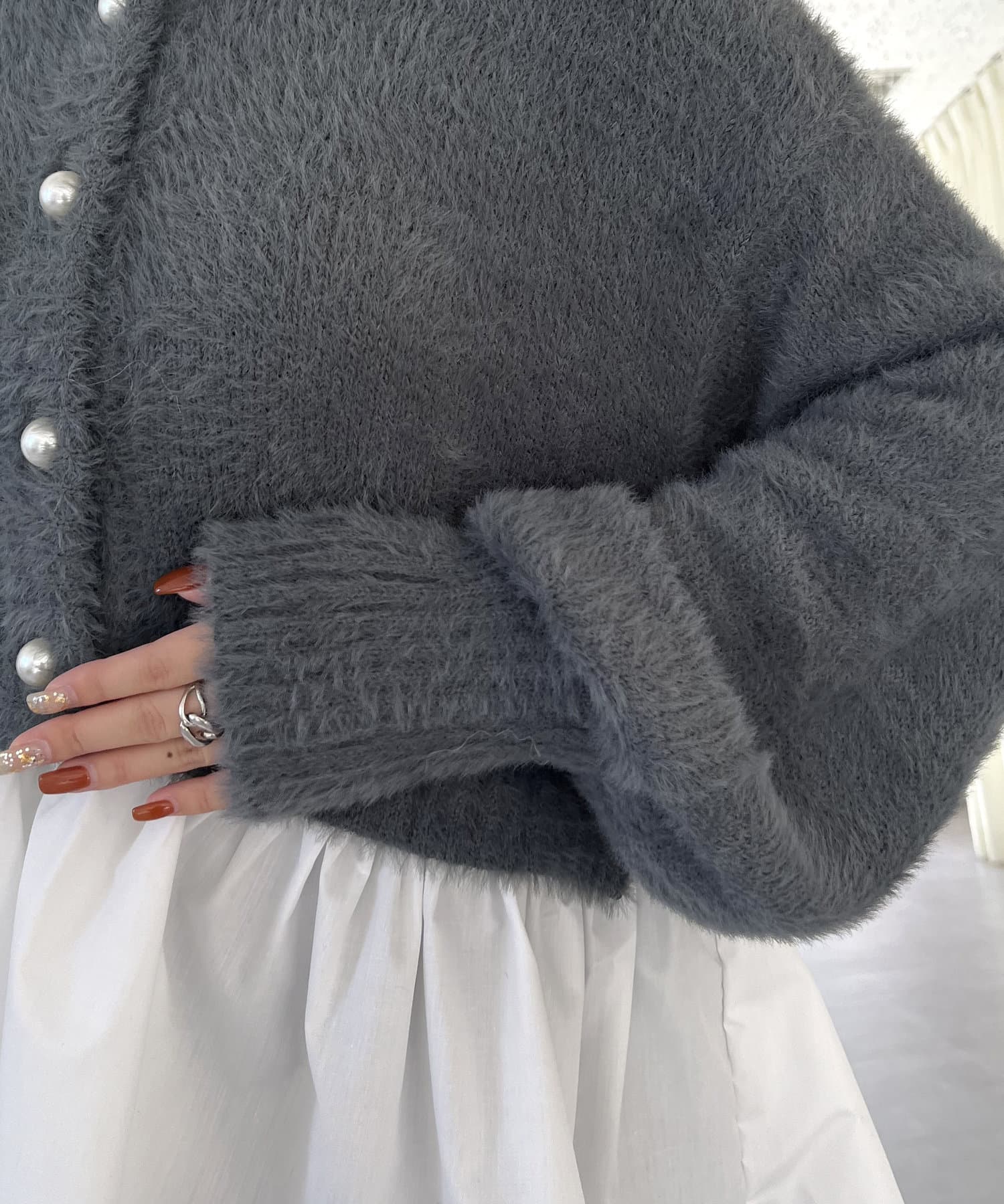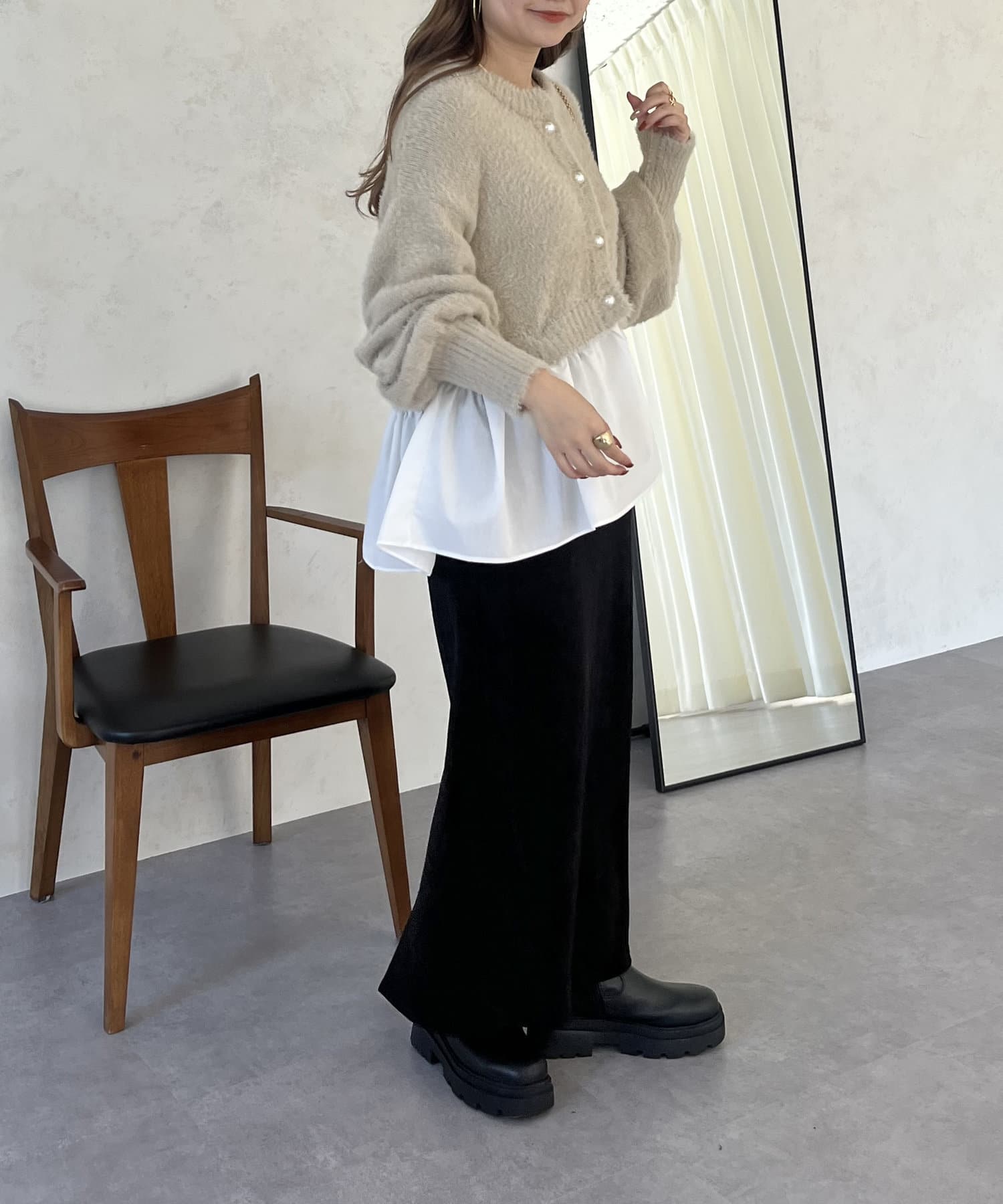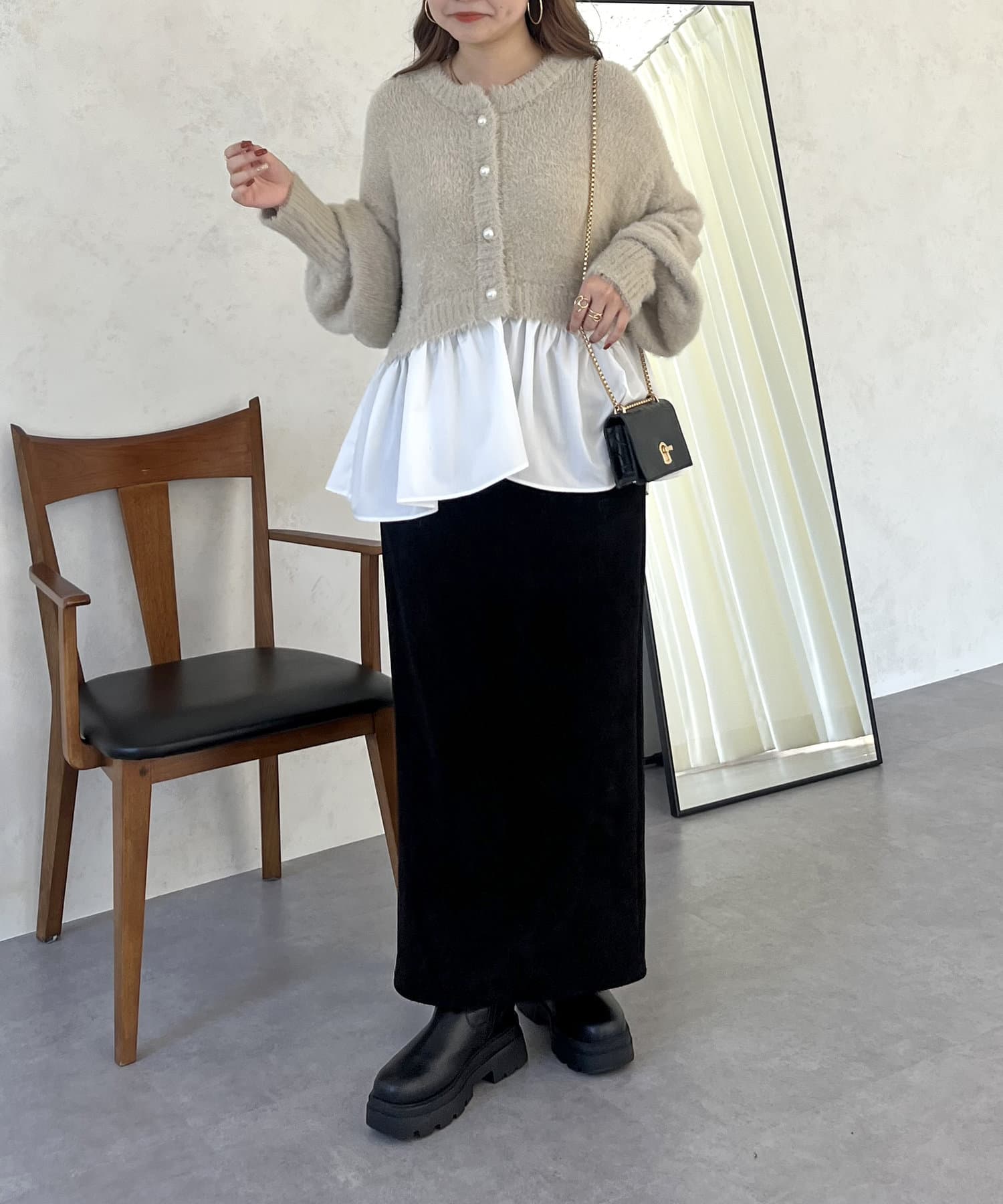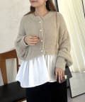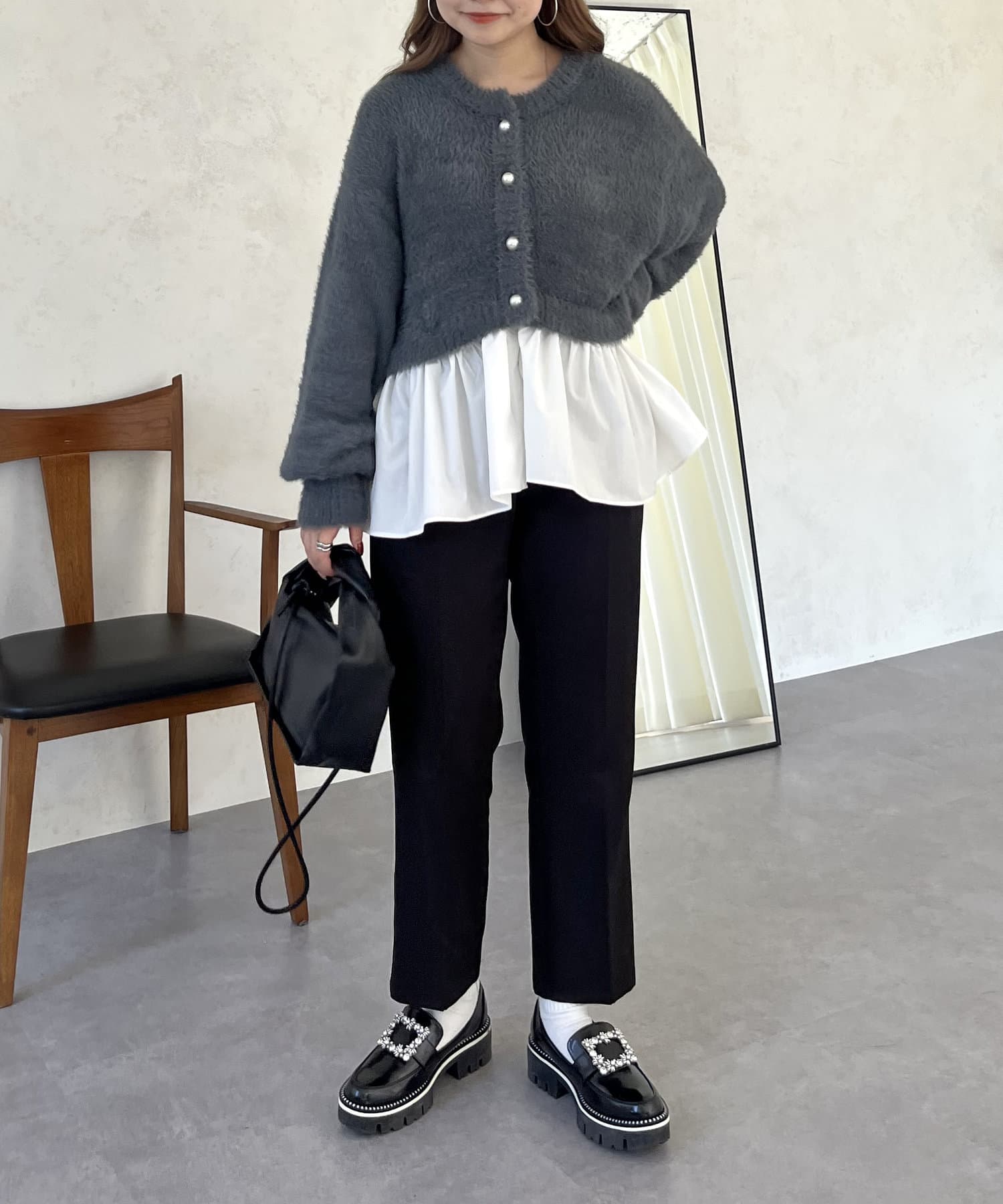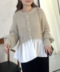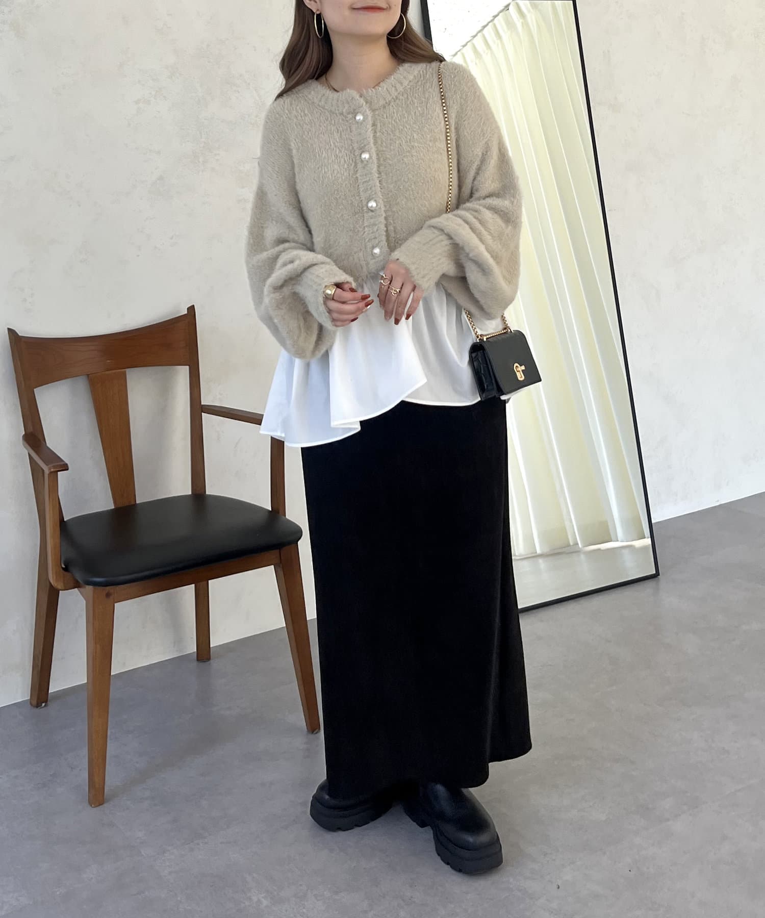 【裾取り外し可能】2wayパール釦シャギーペプラムカーディガン