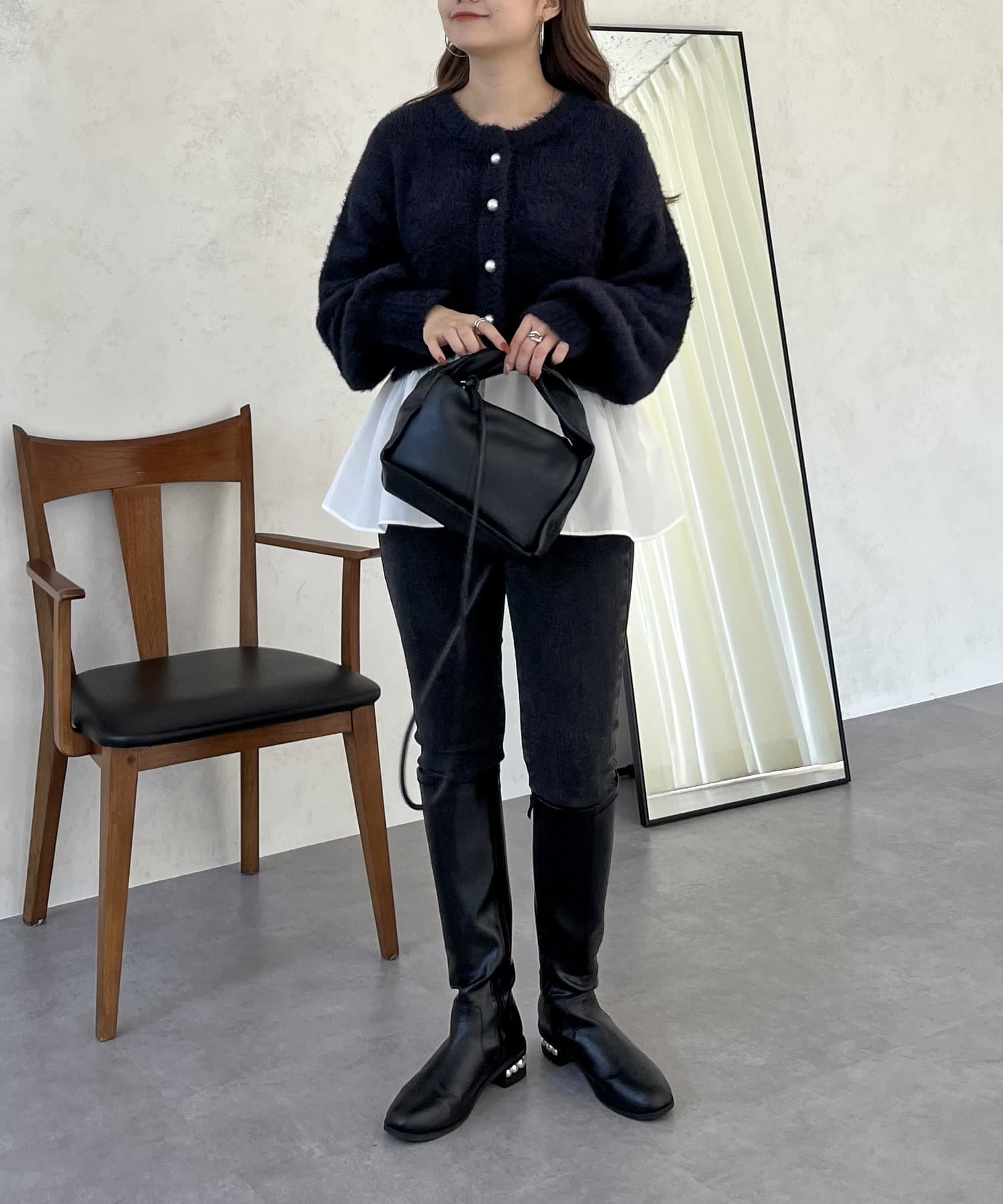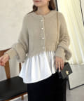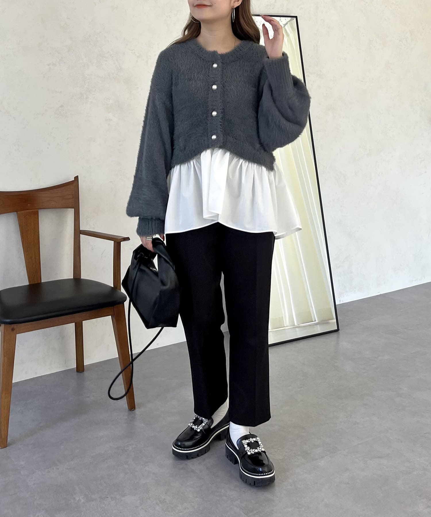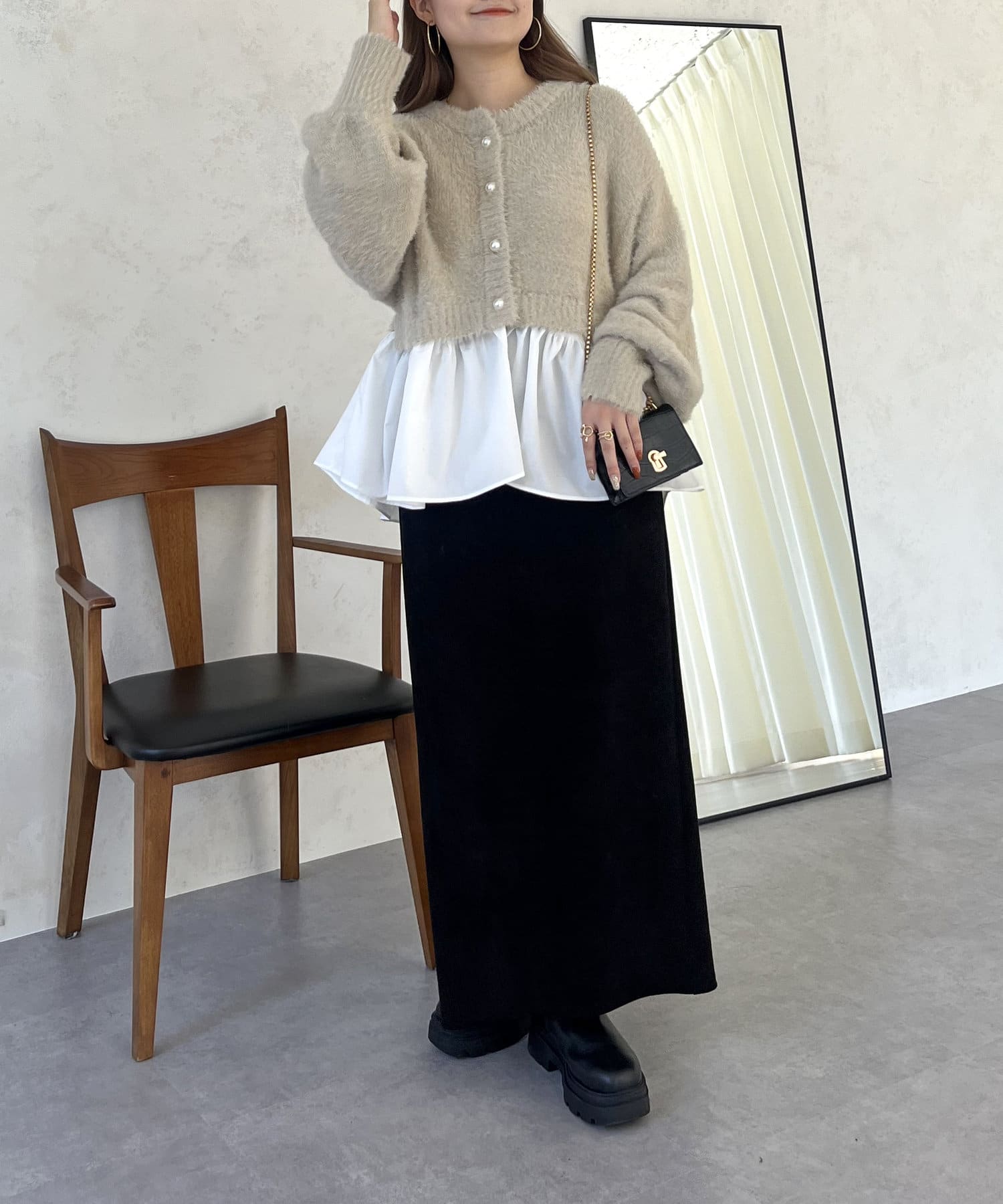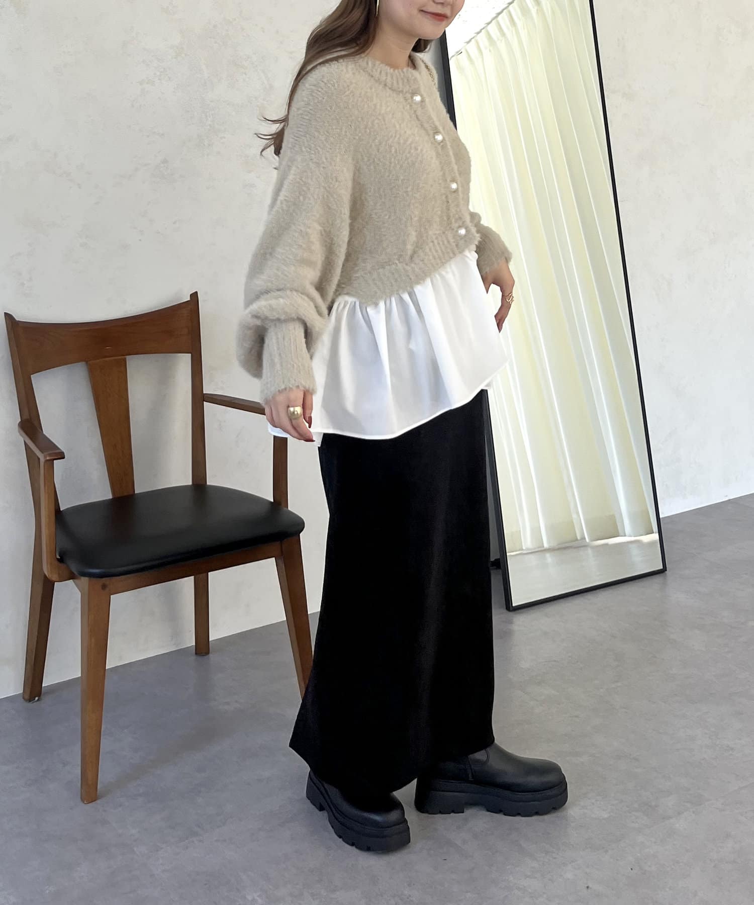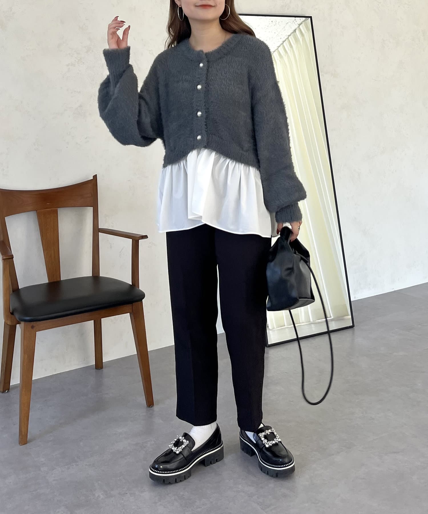 【裾取り外し可能】2wayパール釦シャギーペプラムカーディガン